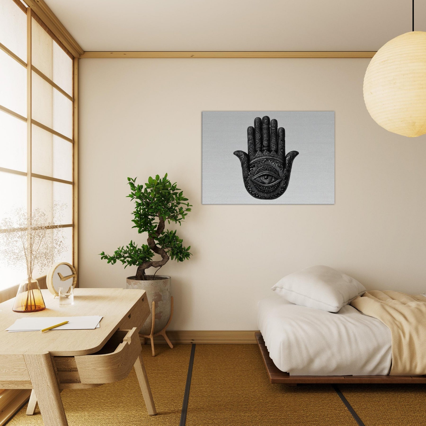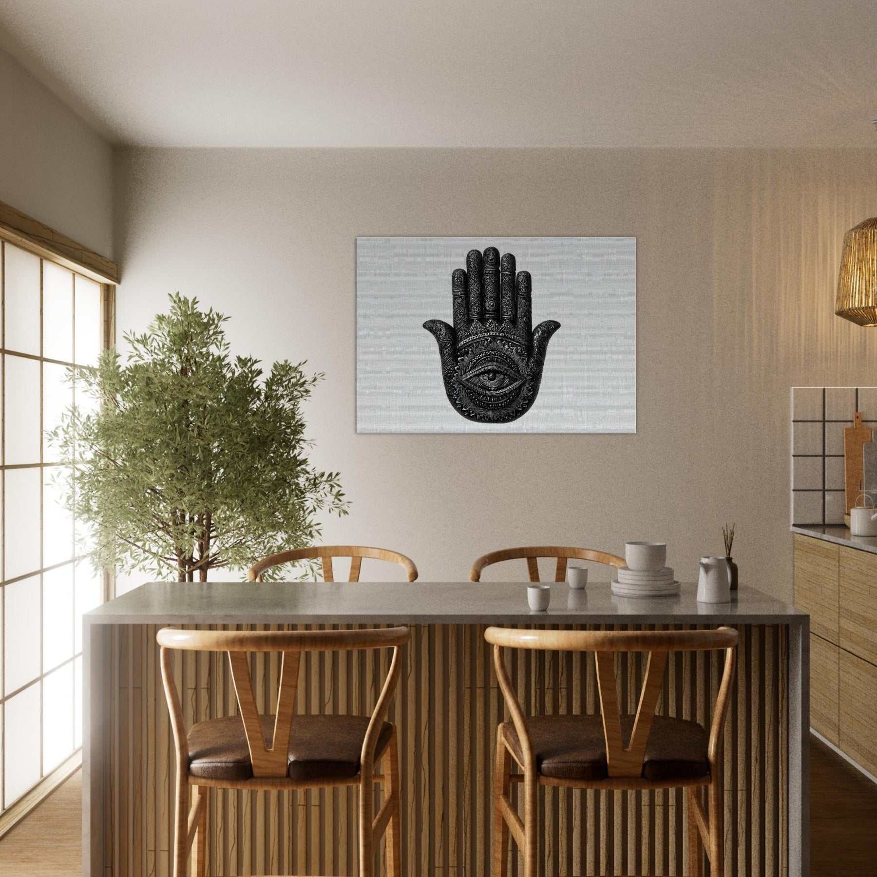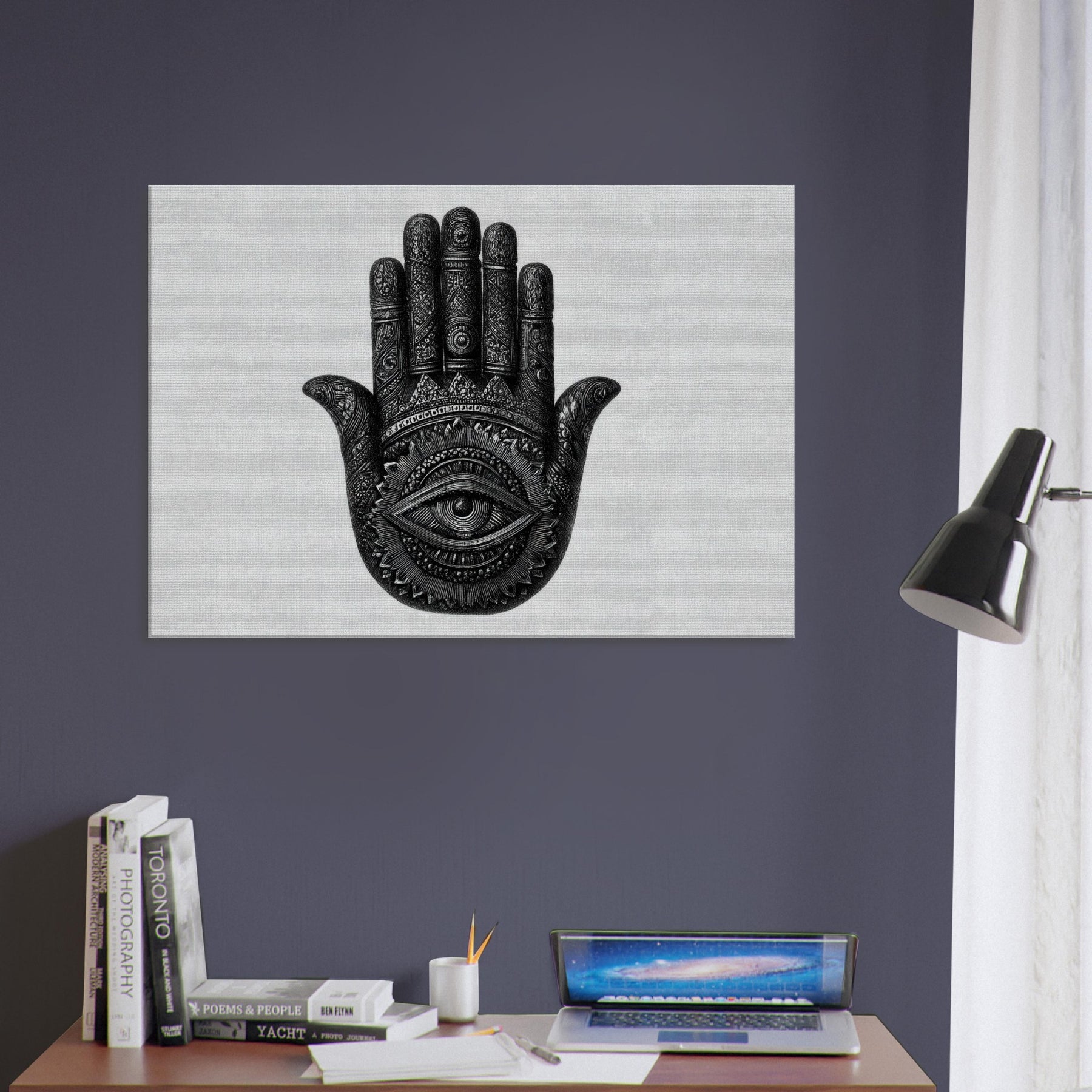 This contemplative piece catches the light and layers your walls with mystery, turning a living room or study into a sanctuary where mood, memory, and intention mingle.