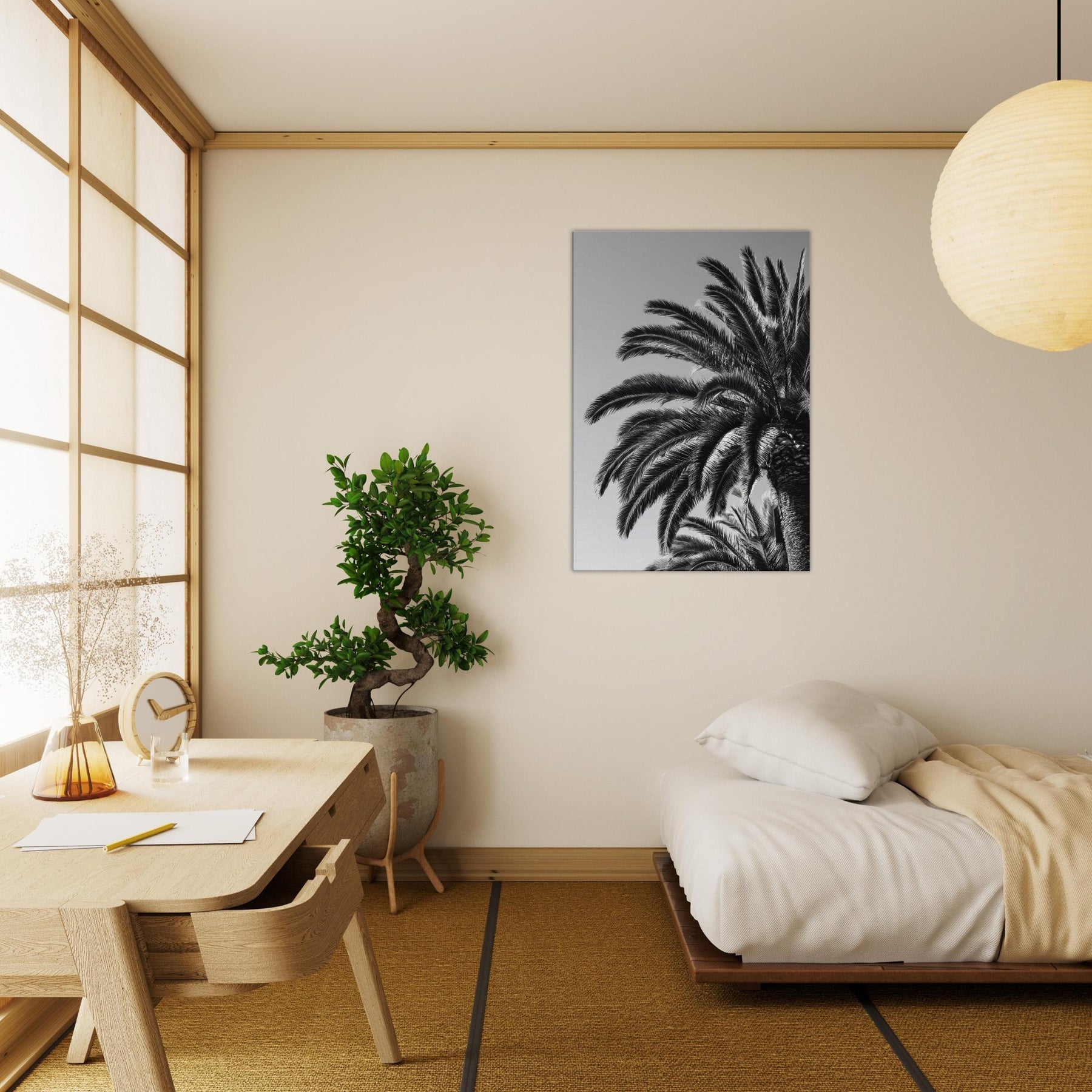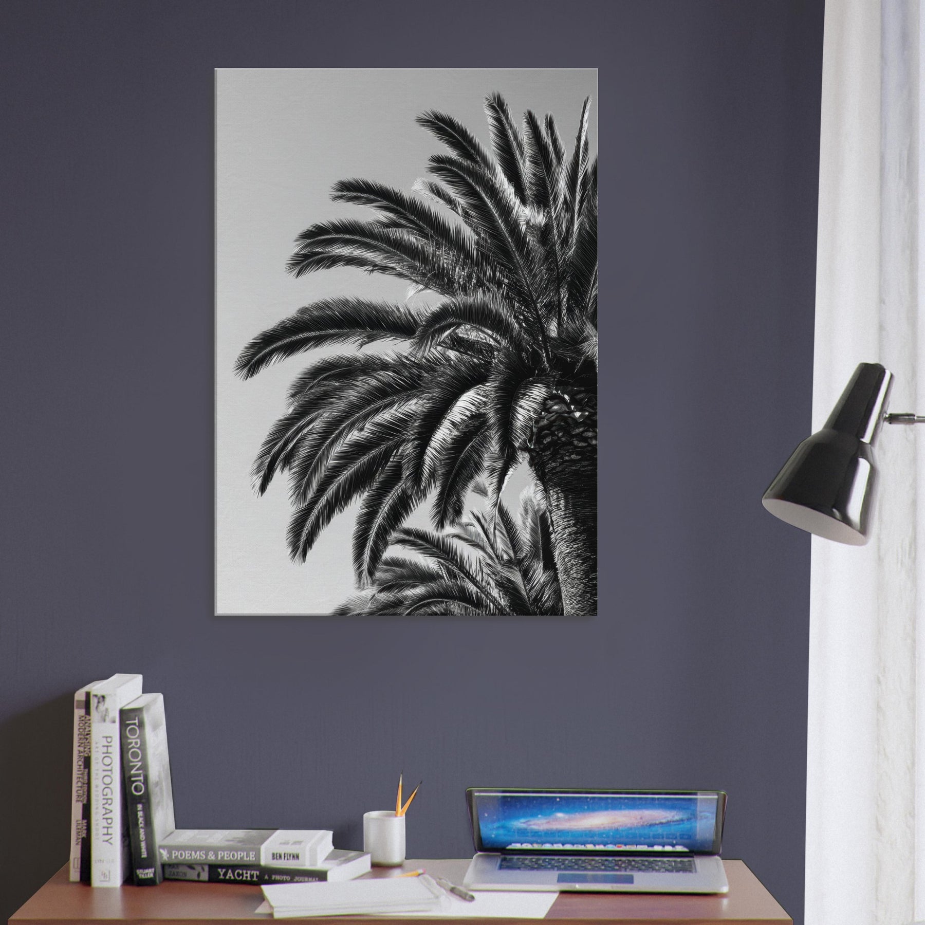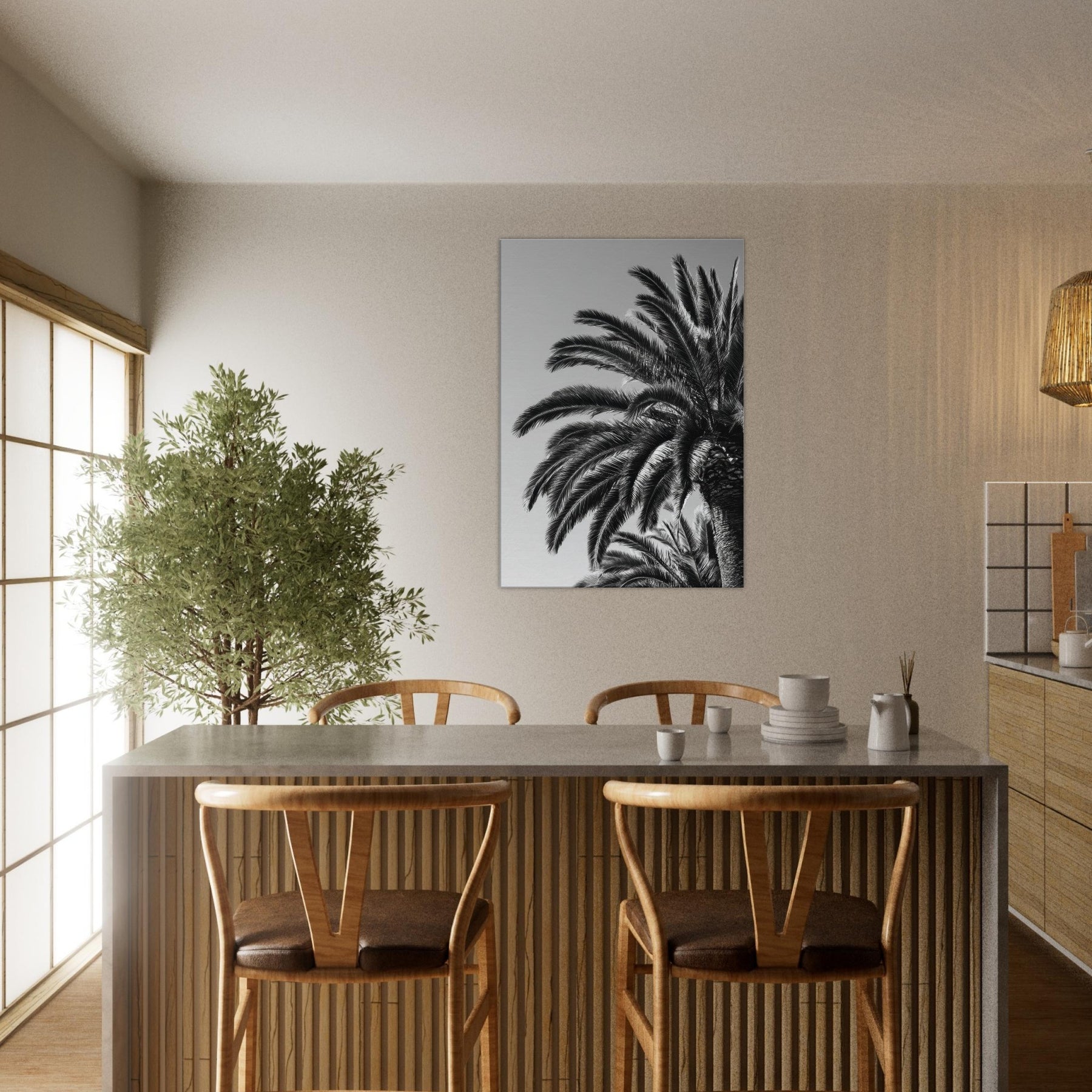 The Primary Subject, Palm Leaves, unfurls in elegant contrast against a quiet monochrome field, drawing the eye with clean lines and whispering texture. This black and white study fuses tropical mood with urban calm, turning a wall into a window of shade and light. The atmosphere feels airy yet grounded, like a sunlit courtyard at dusk. In your living space, it partners effortlessly with neutral tones and sculptural furniture, offering a serene focal point that deepens mood without shouting.