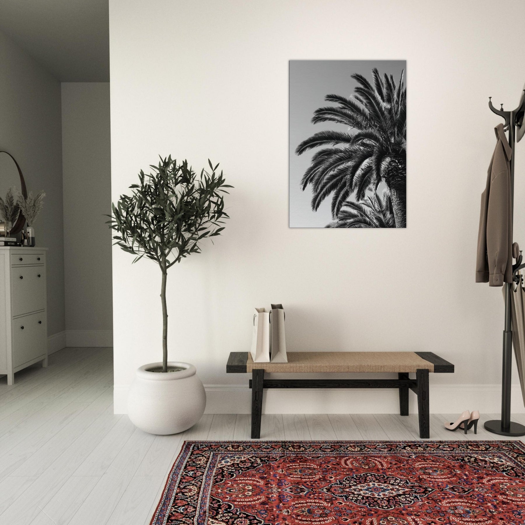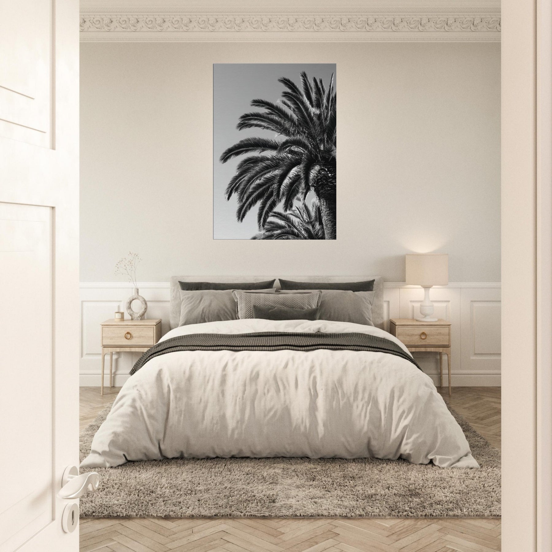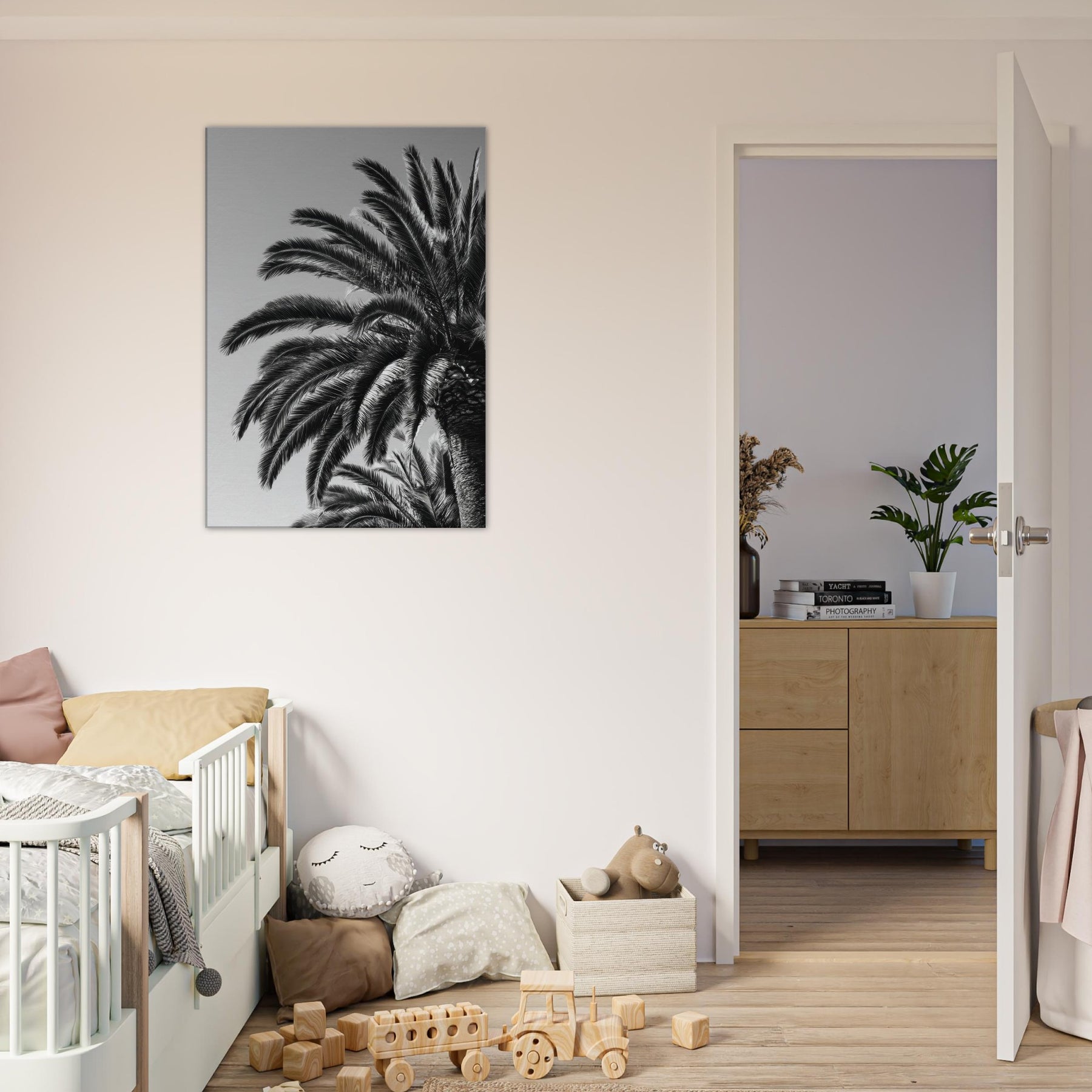 The Primary Subject, Palm Leaves, unfurls in elegant contrast against a quiet monochrome field, drawing the eye with clean lines and whispering texture. This black and white study fuses tropical mood with urban calm, turning a wall into a window of shade and light. The atmosphere feels airy yet grounded, like a sunlit courtyard at dusk. In your living space, it partners effortlessly with neutral tones and sculptural furniture, offering a serene focal point that deepens mood without shouting.