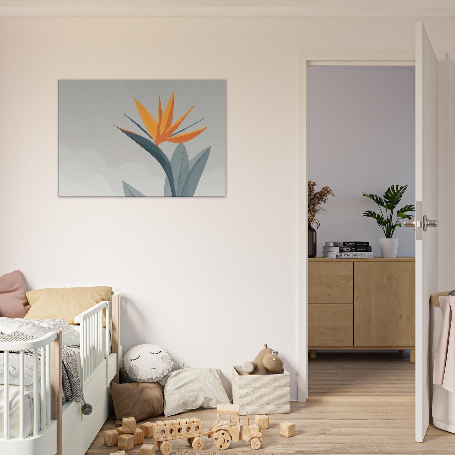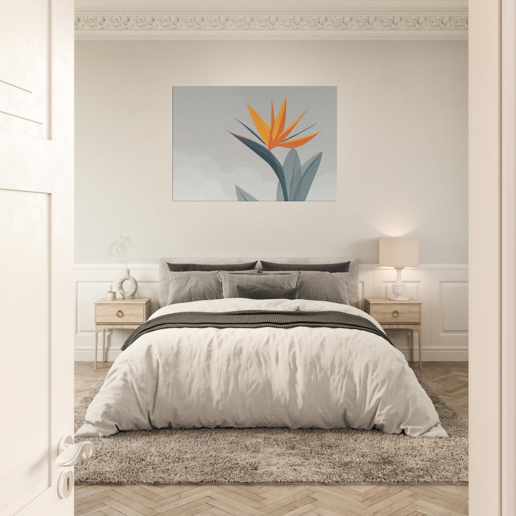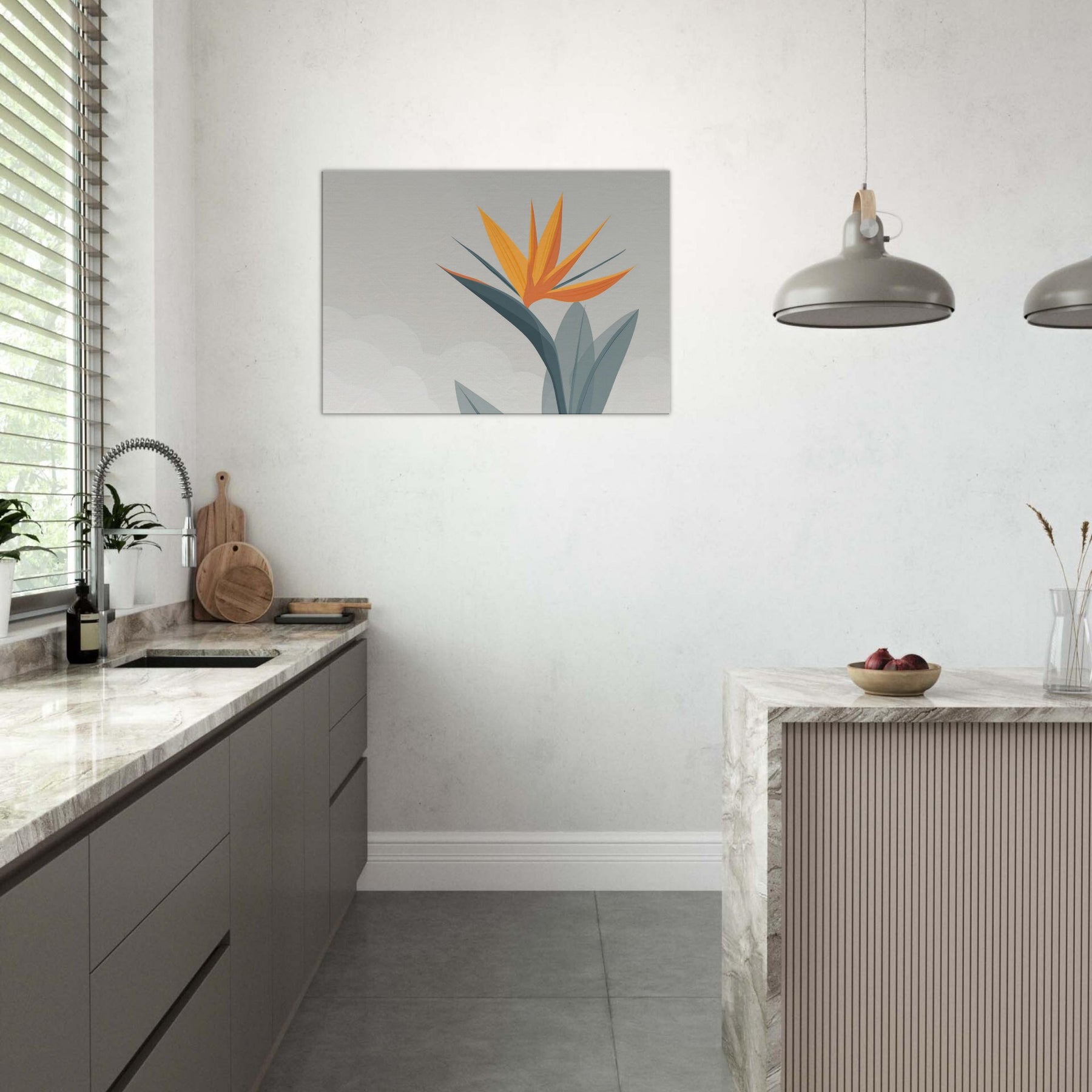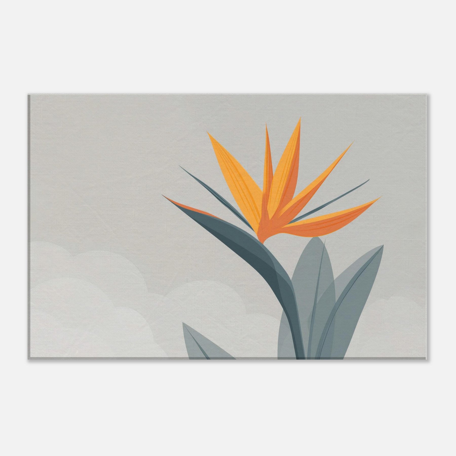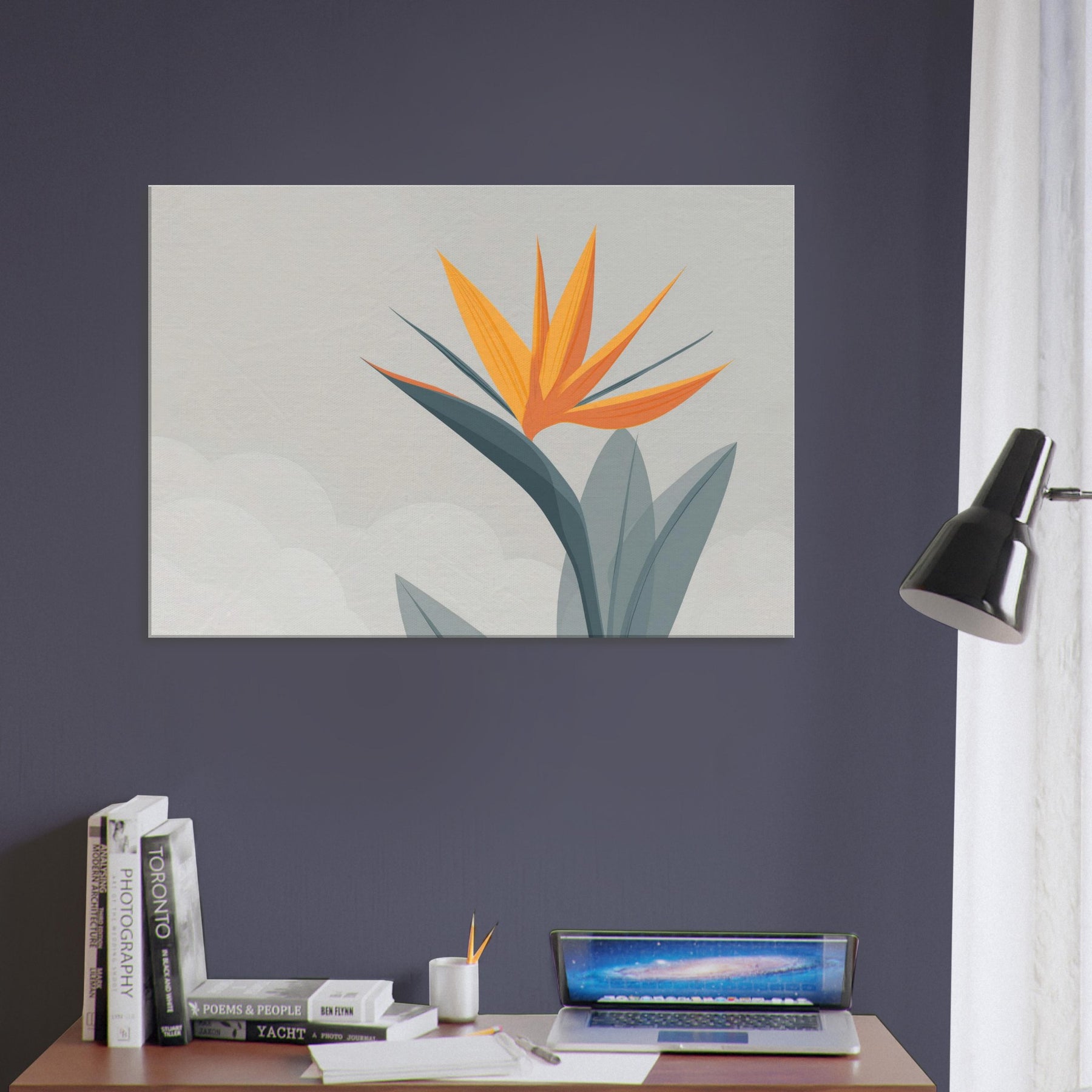 Bird of Paradise graces the room with a clean, lyrical presence. This minimalist composition invites quiet energy into soft neutrals and a splash of bright citrus, mixing tropical glow with everyday calm. The restrained silhouette long stem, vibrant orange petals, cool slate leaves creates a poised rhythm that anchors seating groups or a reading nook. Perfect for a sunlit wall or a twilight alcove, it offers a serene focal point that heightens warmth, clarity, and the feeling of effortless, refined living.