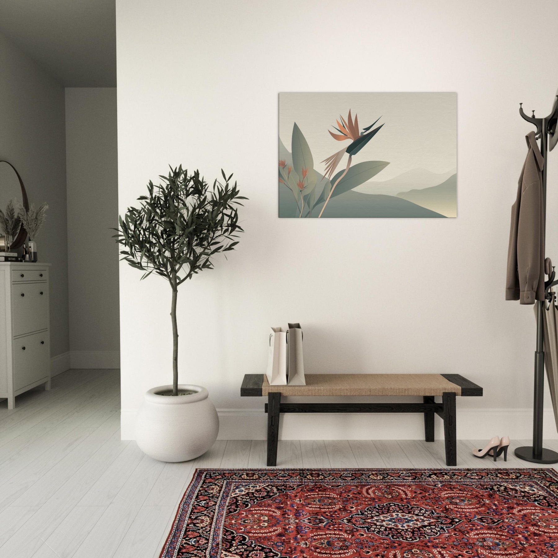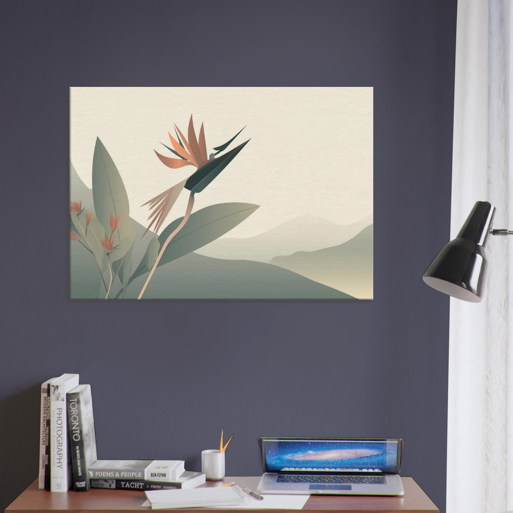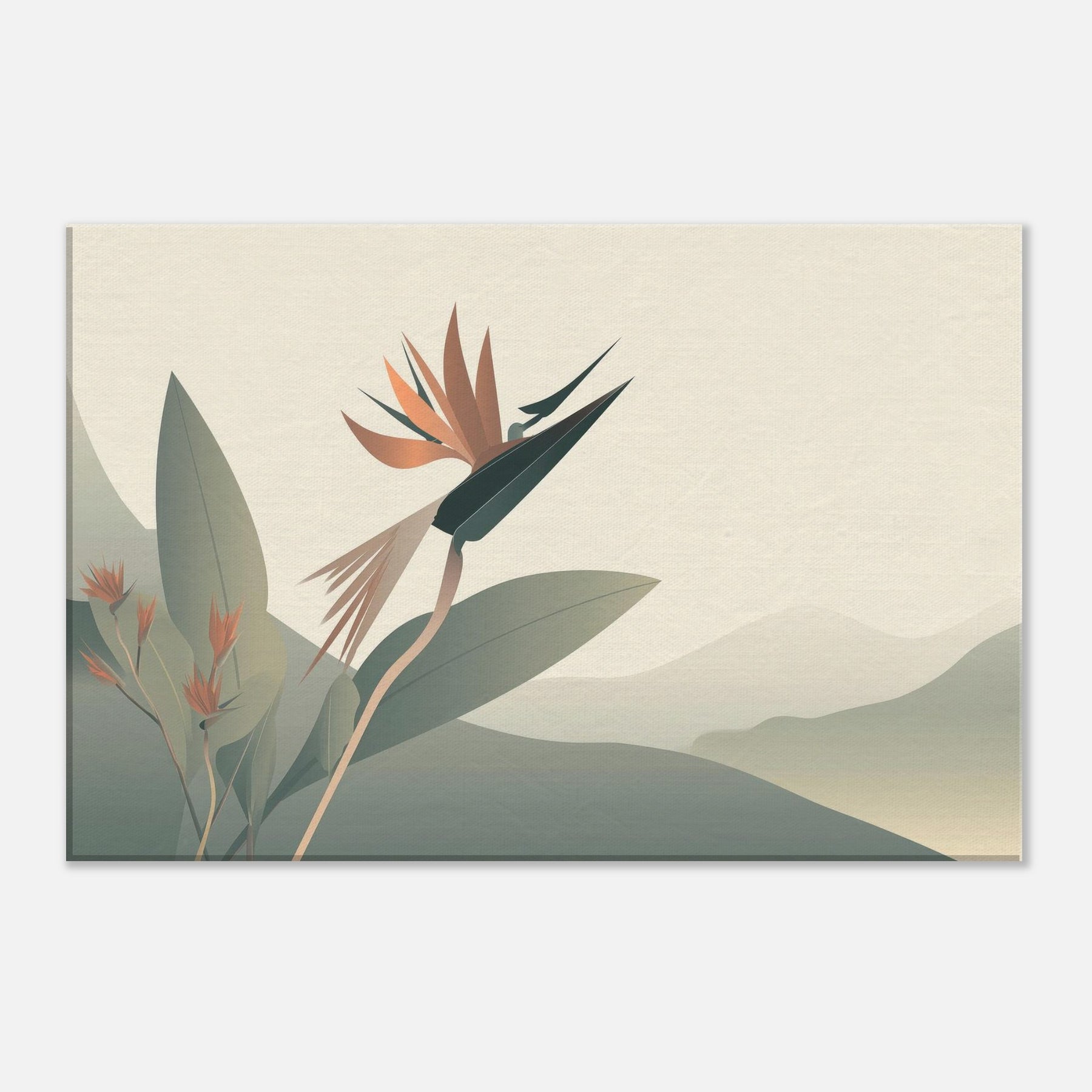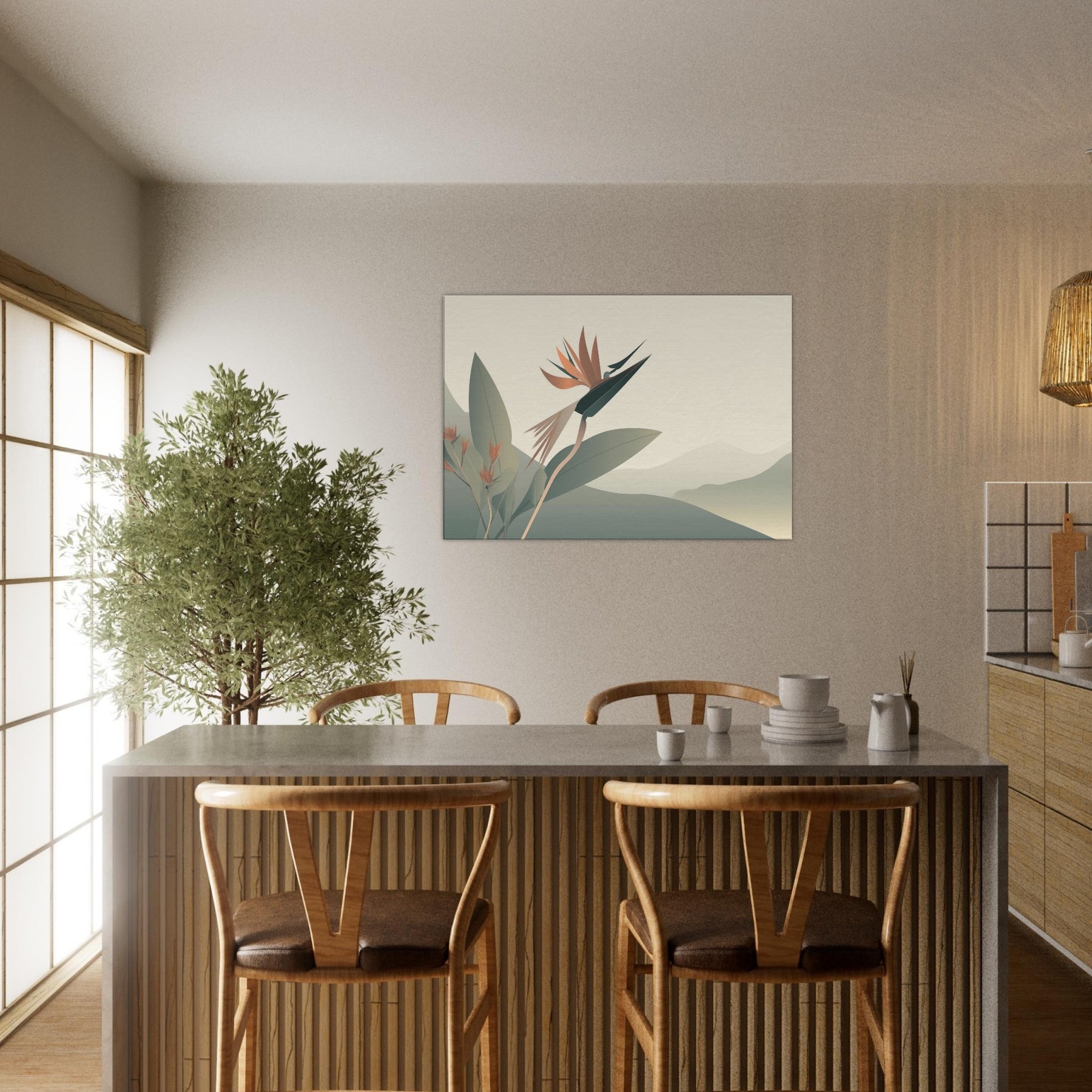 Let the Bird of Paradise drift into your living space as a moment of tranquil brightness. This minimalist composition reduces detail to clean, crisp shapes and a soft, sunlit palette, inviting breath and quiet reflection. The plant's sculptural form rises against a misty horizon, turning any room into a serene retreat where the mind can wander. Printed on high quality archival paper, it pairs with neutrals and greens alike, enhancing bedrooms and lounges with a sense of calm, balance, and subtle elegance.