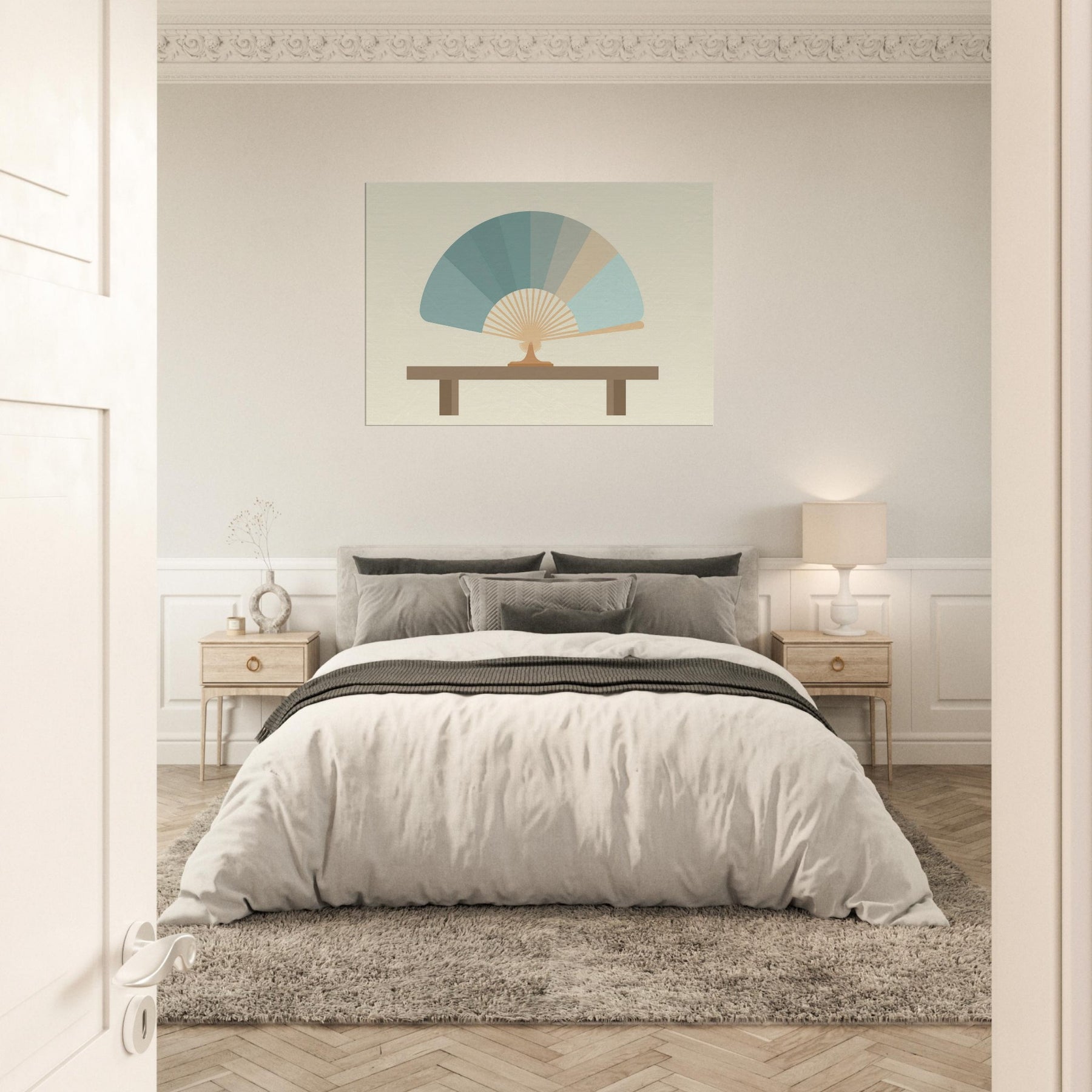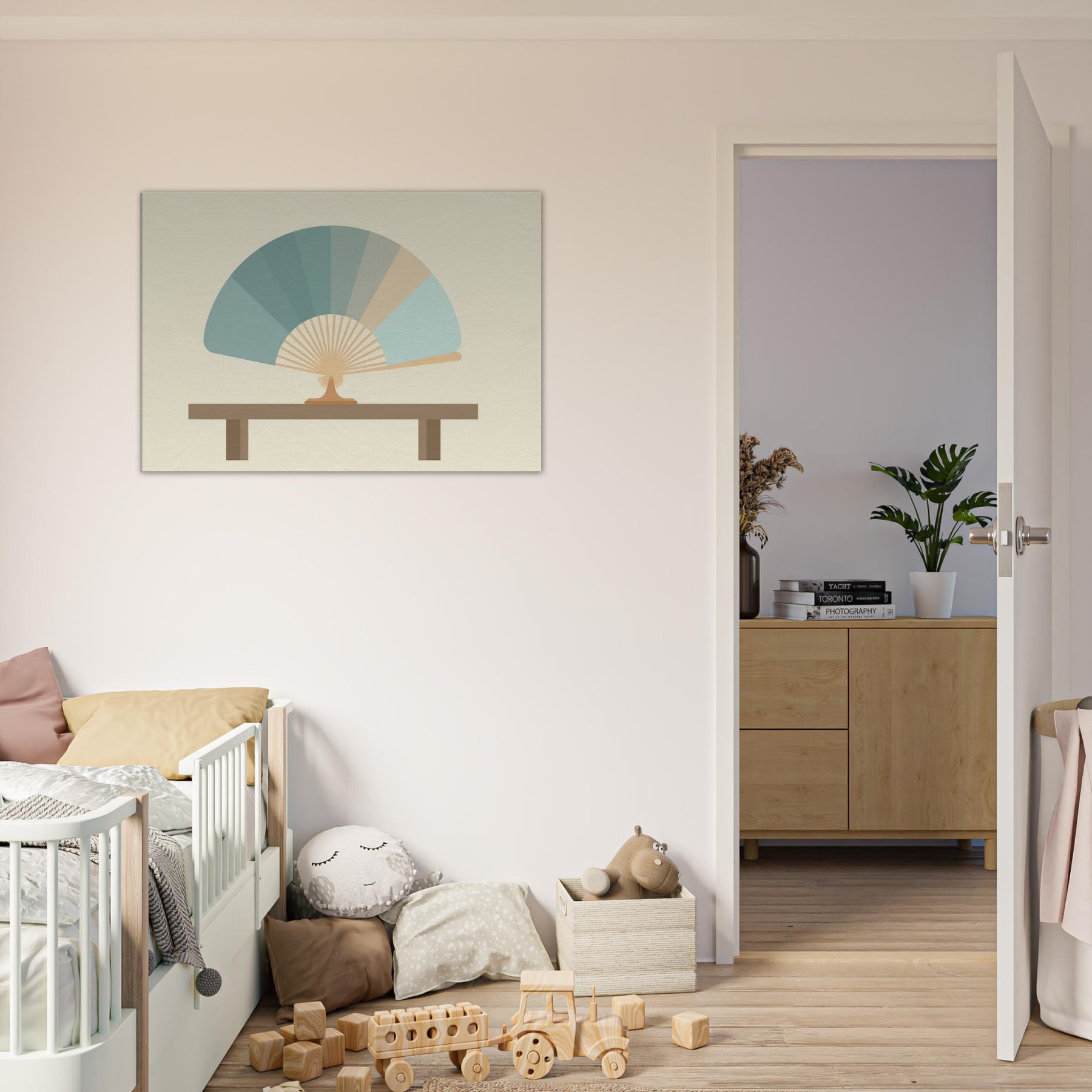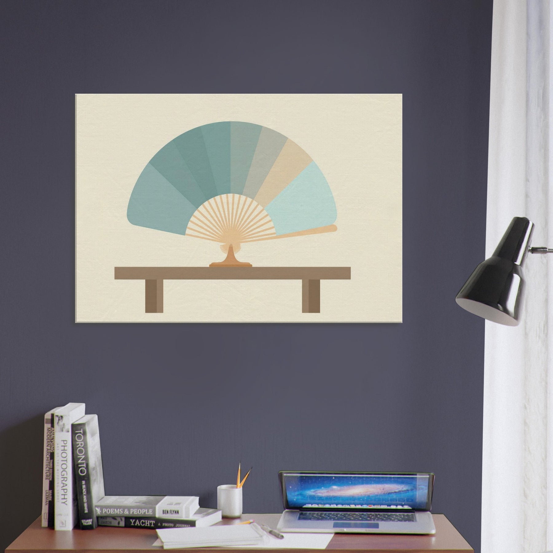 Folding Fan on Table takes center stage in a quiet, minimalist moment. The fan’s soft segments radiate on a pale canvas, inviting the eye to rest and wander. The restrained palette cool teals, warm beiges, and a hint of ivory casts a gentle glow across the room, turning a simple surface into a contemplative vignette. This piece breathes calm into a living space, offering a subtle focal point that pairs with modern furniture and natural light, making every room feel thoughtfully styled.
