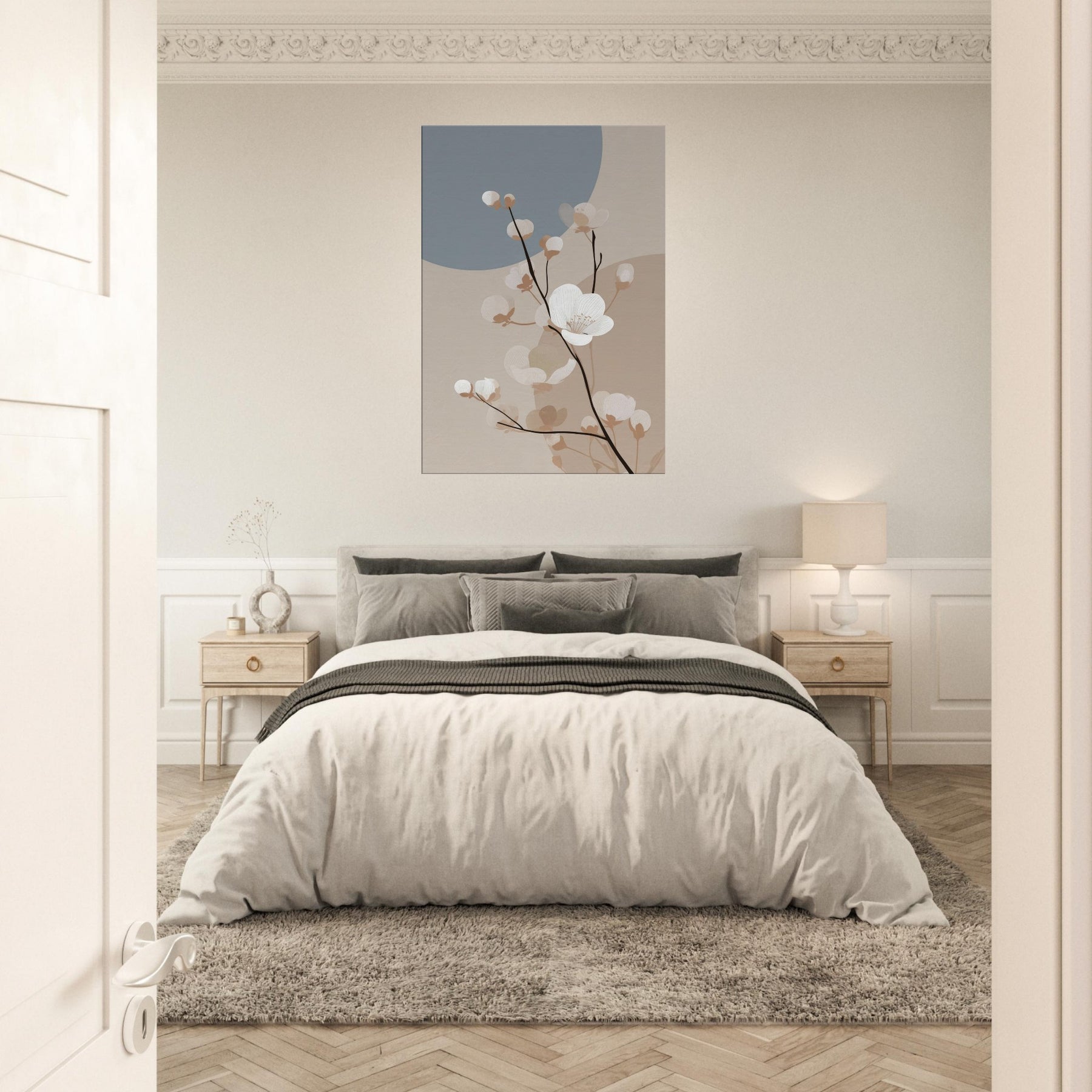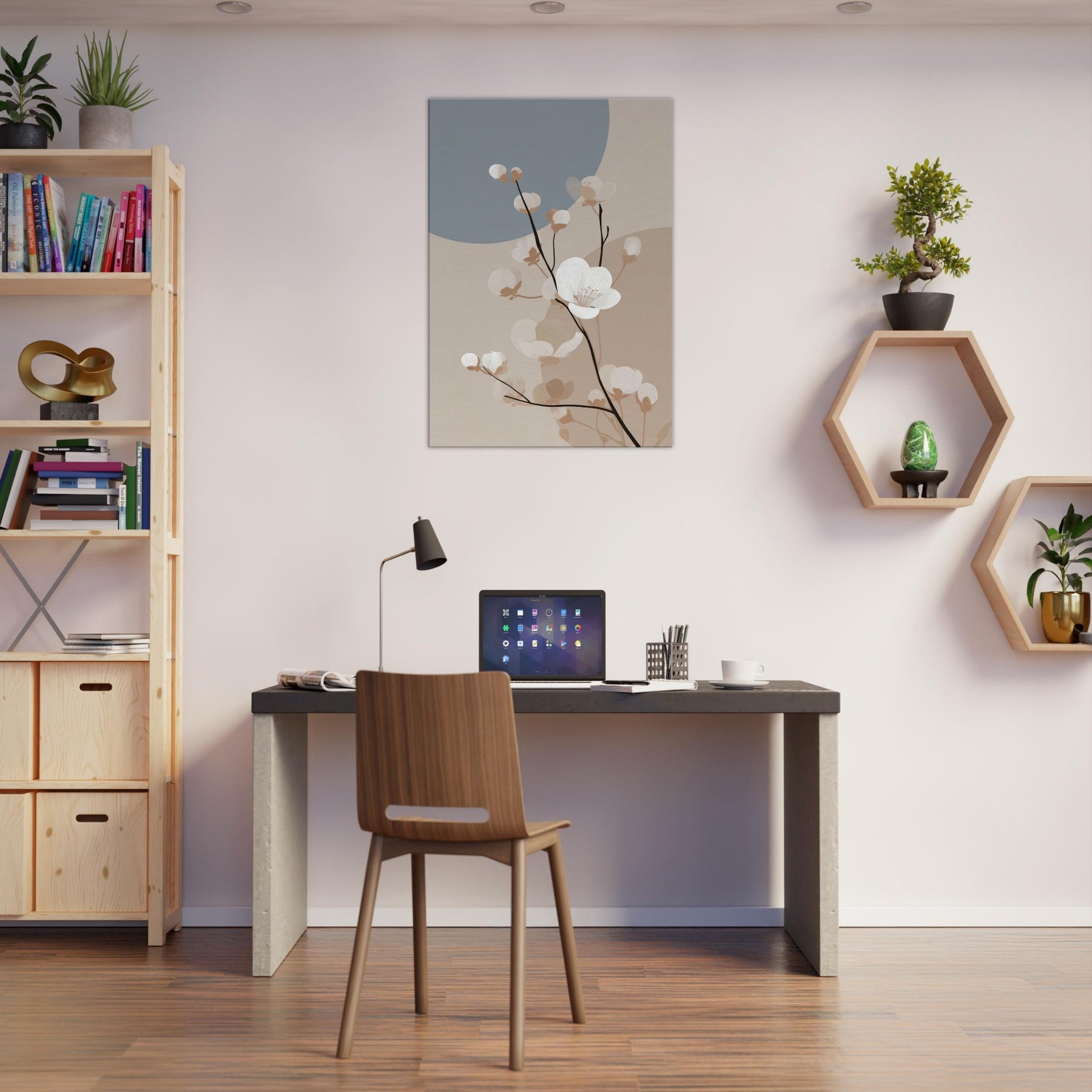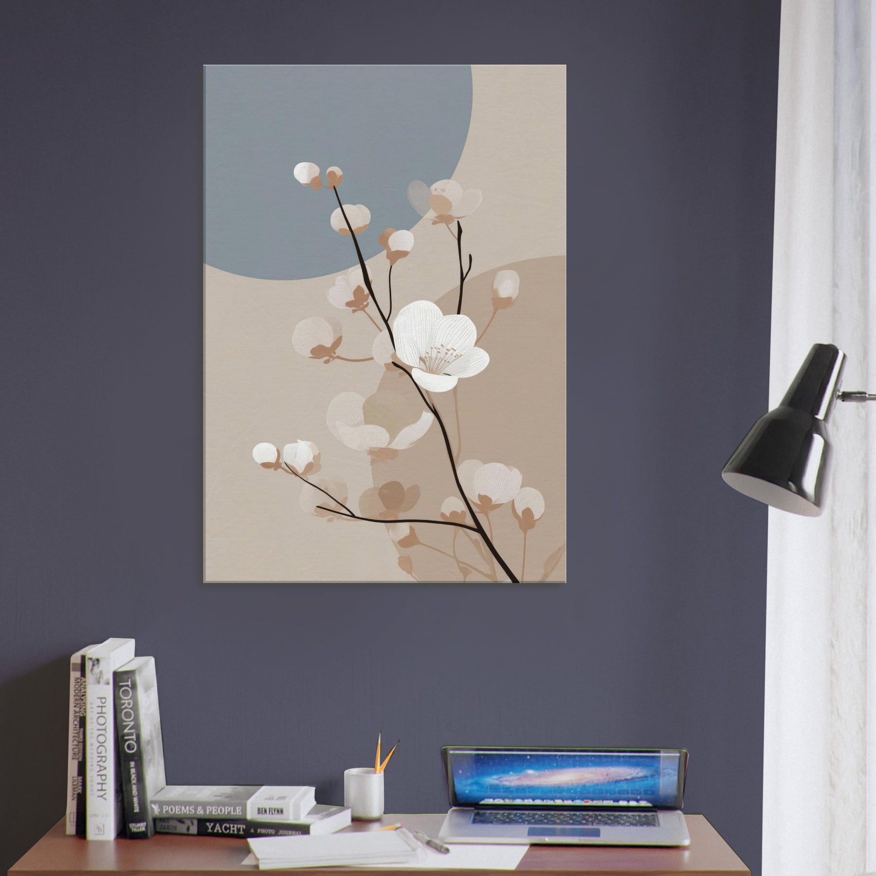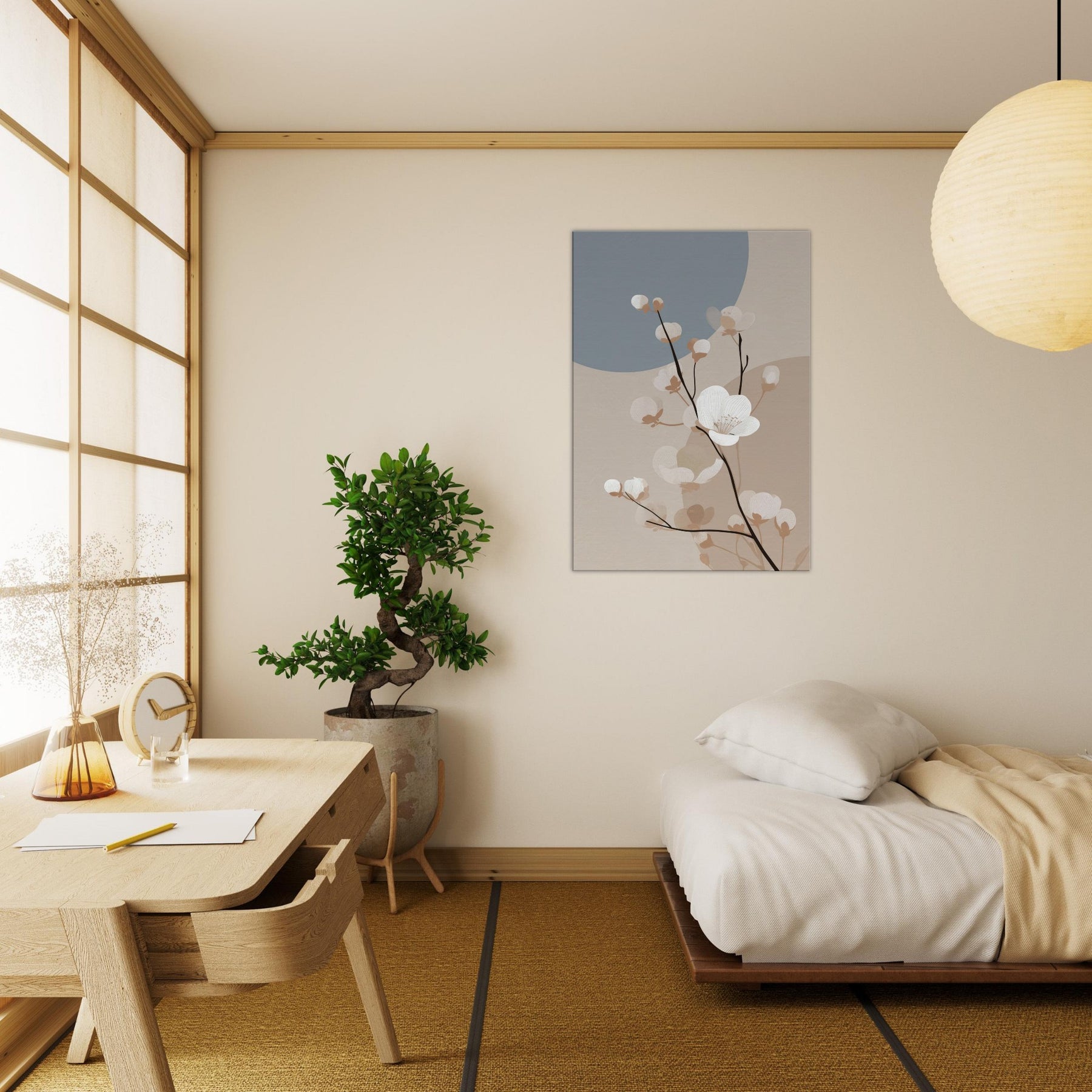 Like a quiet breath of spring, the Sakura Branch unfurls in soft beige and blush tones, inviting stillness into your space. This minimalist composition captures nature’s calm with slender, ink dark stems and delicate blossoms that feel both intimate and expansive. Hang it where morning light can skim the petals, letting the scene shimmer against a muted backdrop. It enhances living rooms or bedrooms with subtle poetry, turning walls into a gentle sanctuary without overpowering the room.