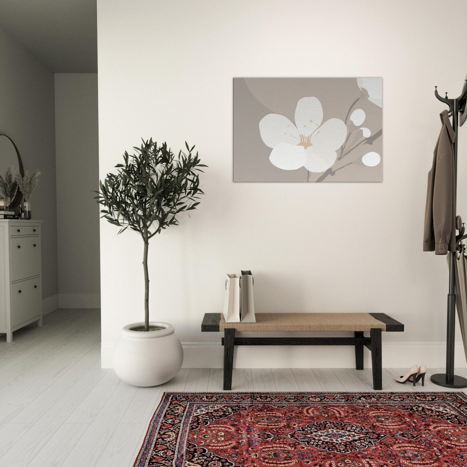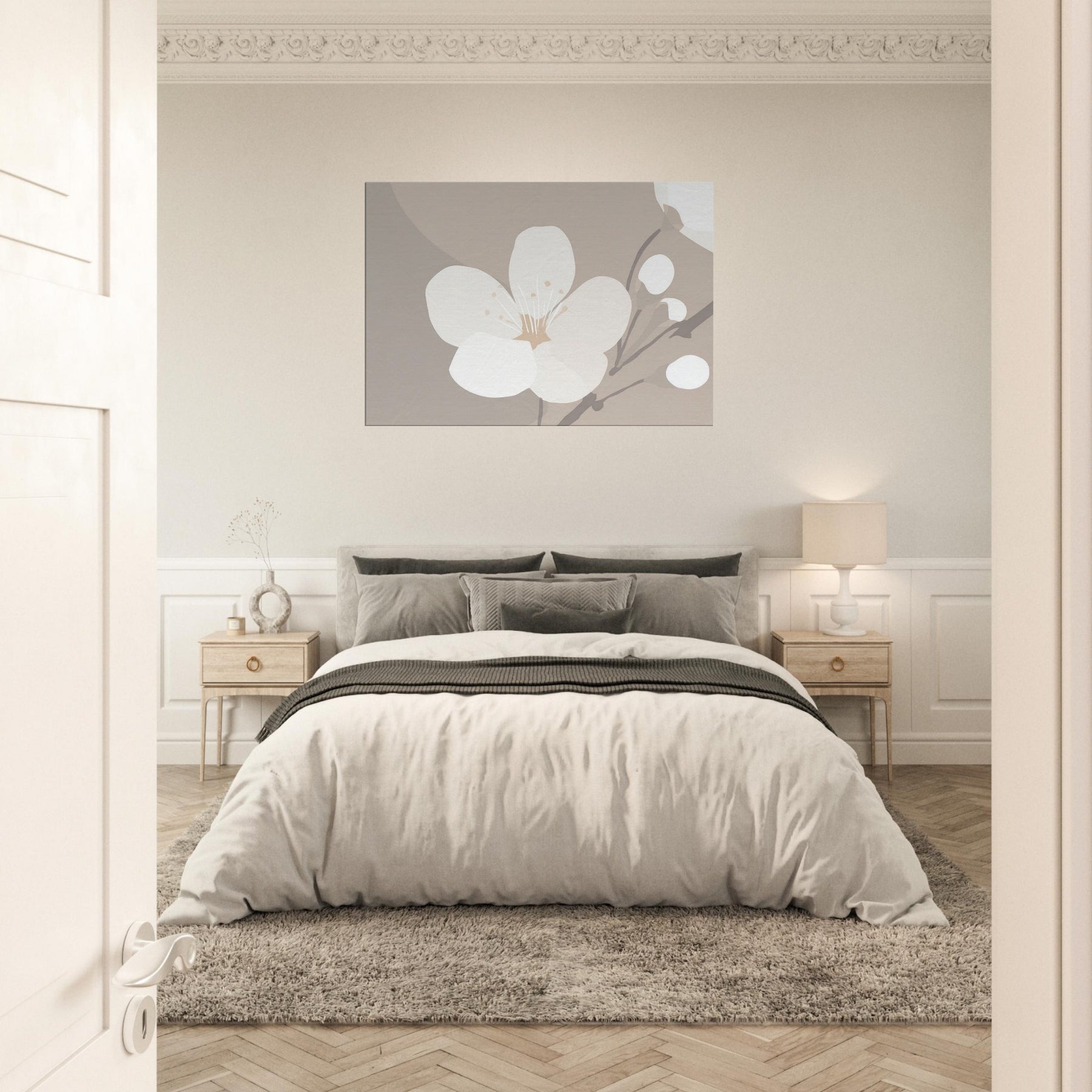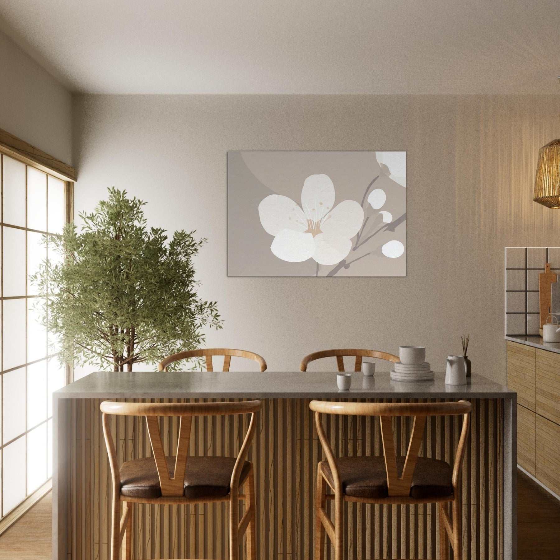 Immerse your space in the soft hush of spring with our Cherry Blossom minimalist print. The pared back composition and warm ivory tones conjure a tranquil glow, as if a sunset bled across delicate petals. Each line is a note of calm, inviting quiet reflection and gentle movement in any room be it a sunlit living area, a peaceful bedroom, or a minimalist hallway. This piece transforms walls into a breath of nature, a timeless counterpoint to modern interiors.