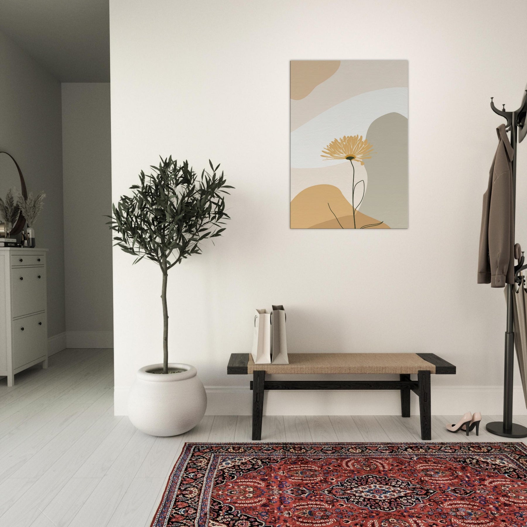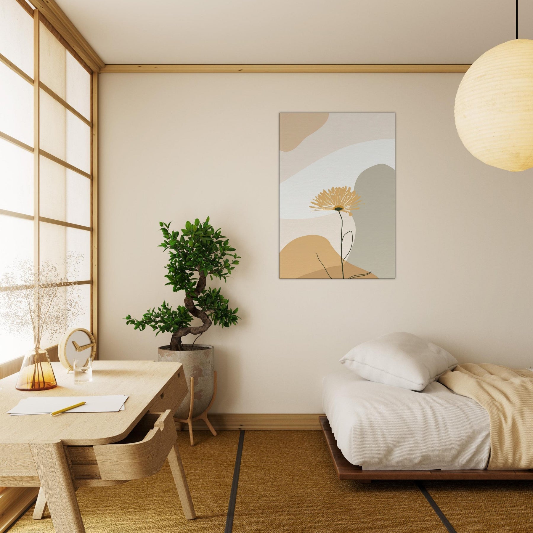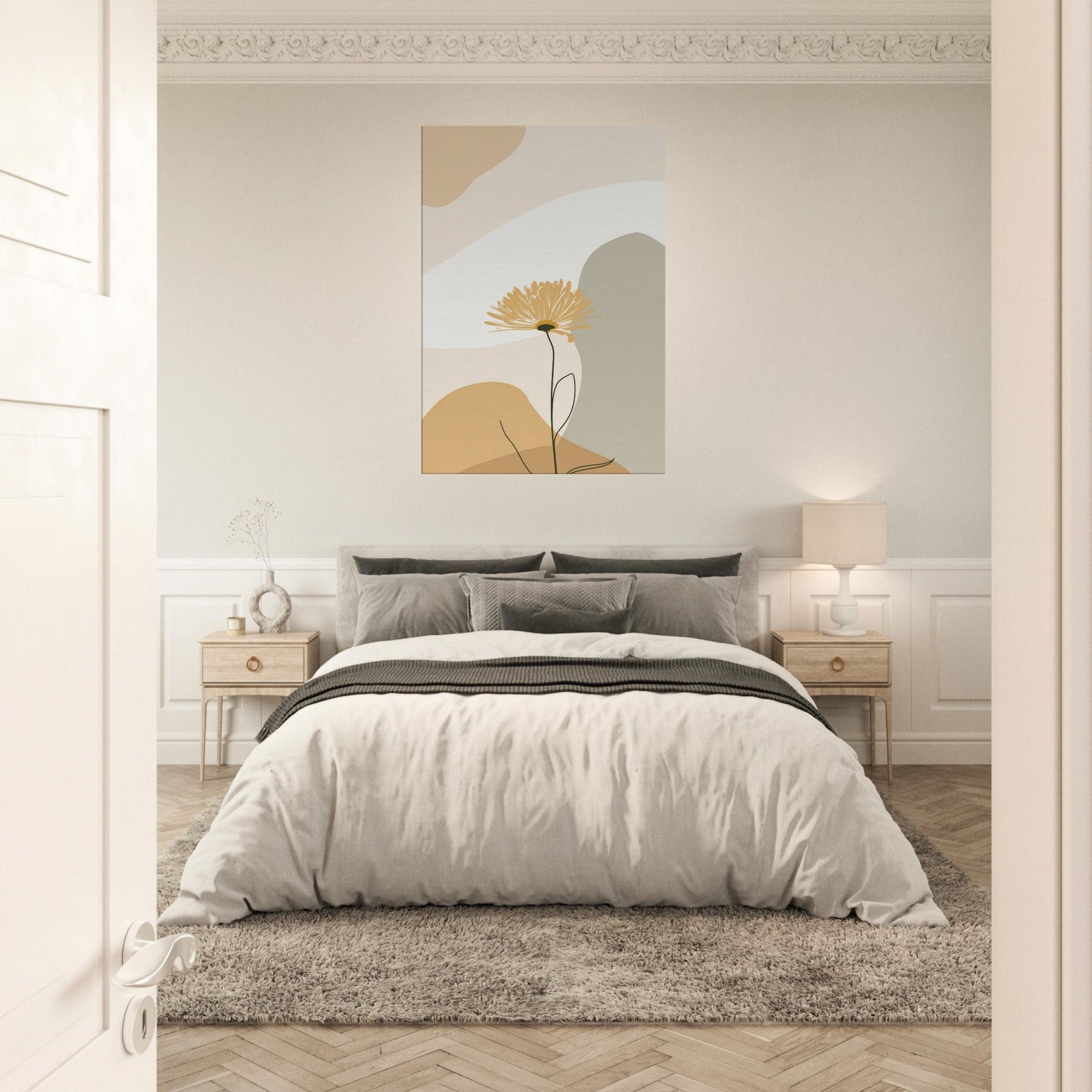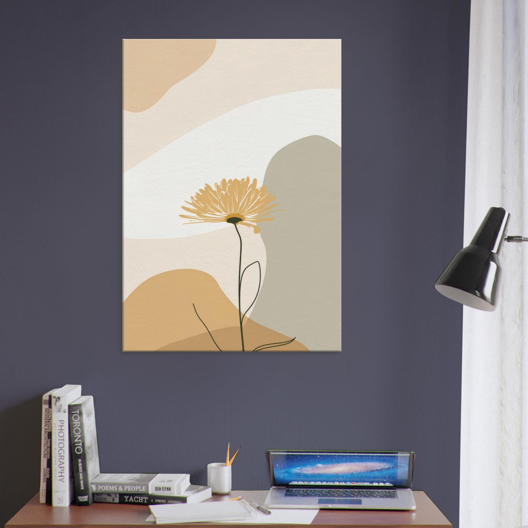 Chrysanthemum unfolds in a veil of soft, mineral tones an elegant study in restraint. The minimalist form reduces nature to a single, sculptural bloom, its delicate lines set against warm sand and ivory fields. This piece invites calm, a quiet pulse of color that soothes living spaces and invites slow, lingering moments. Perfect for a thoughtful corner or above a sofa, it breathes life into neutrals, pairing gracefully with natural textures and gentle lighting.