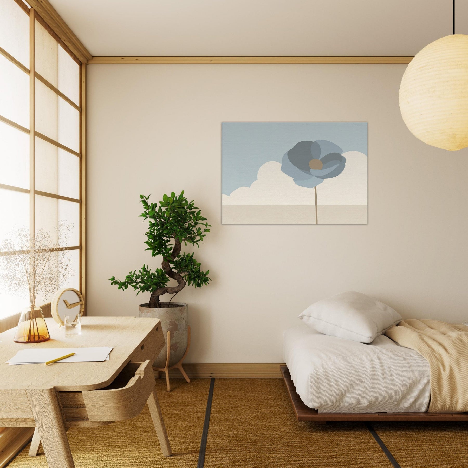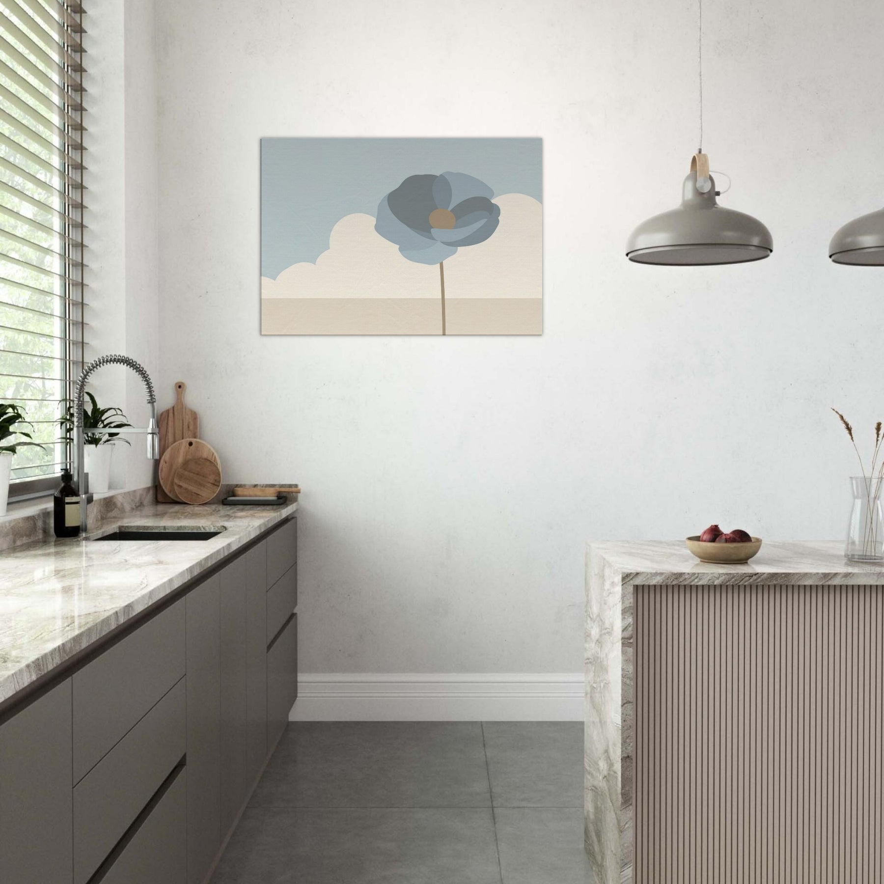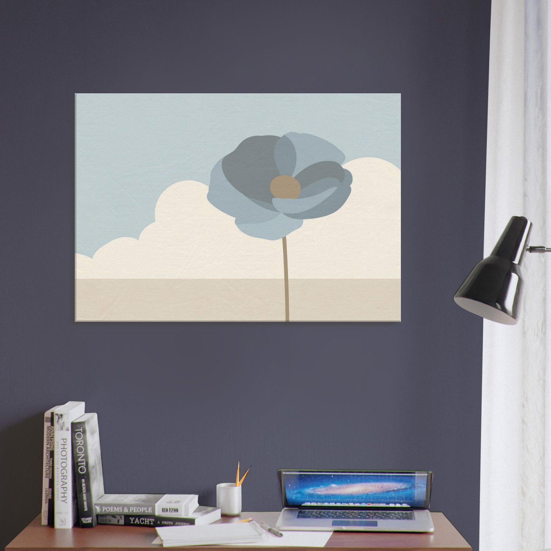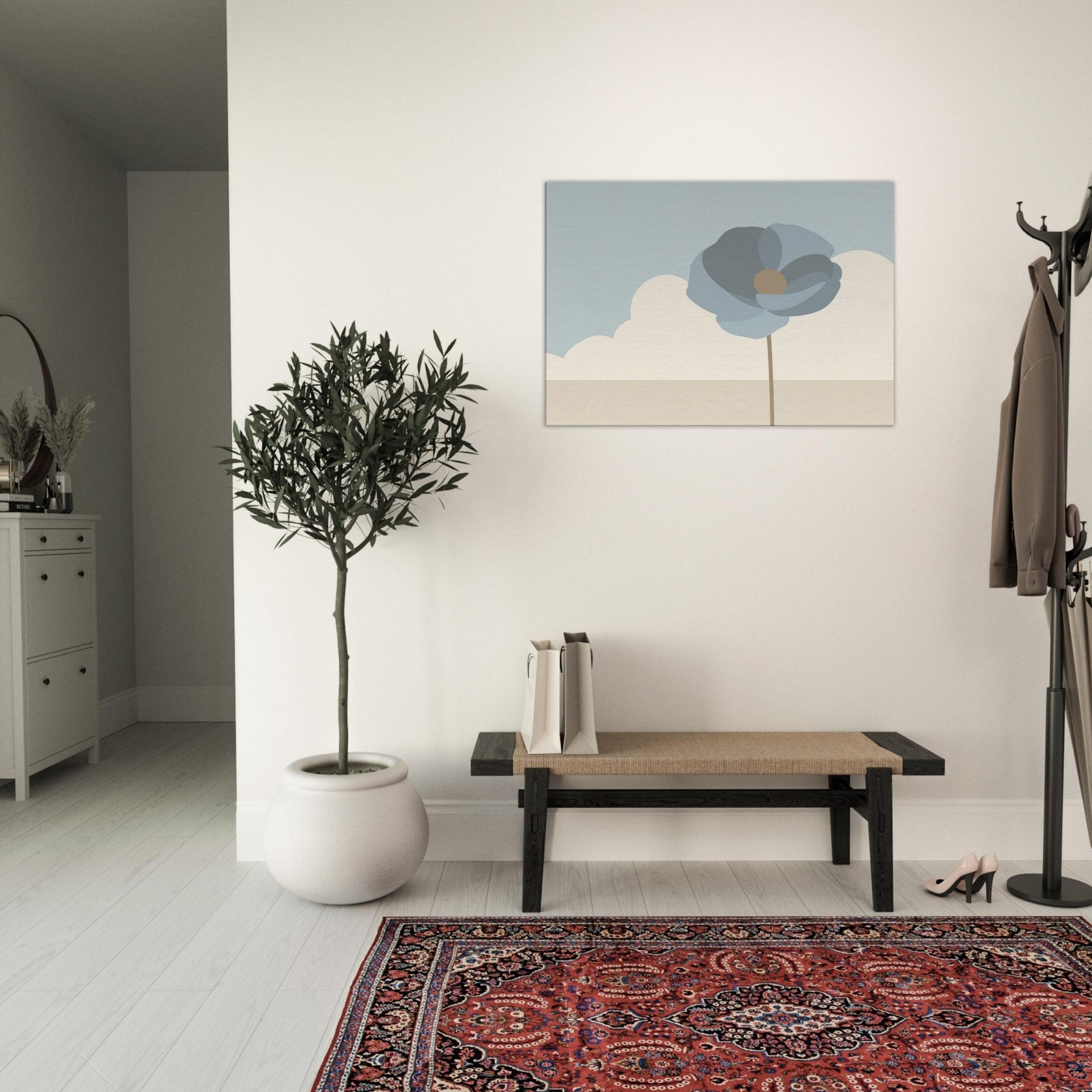 A gentle meditation in quiet color, this minimalist poppy scene offers a serene escape for any living space. The soft blues, pale clouds, and a slender stem cradle a single bloom, inviting calm reflection and a sense of spacious hush. As light shifts across the canvas, the poppy becomes a focal whisper subtle, eternal, and effortlessly elegant creating warmth, balance, and natural elegance in your room.