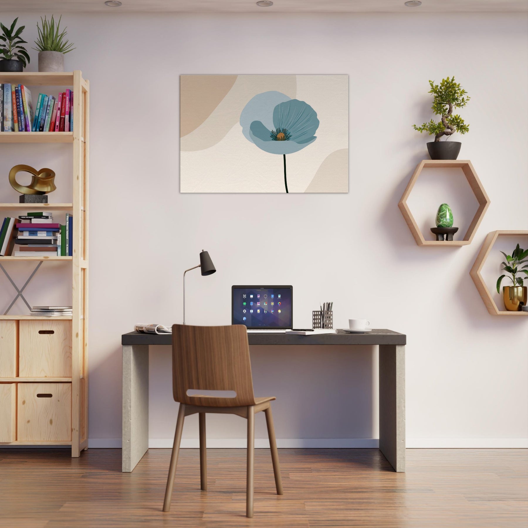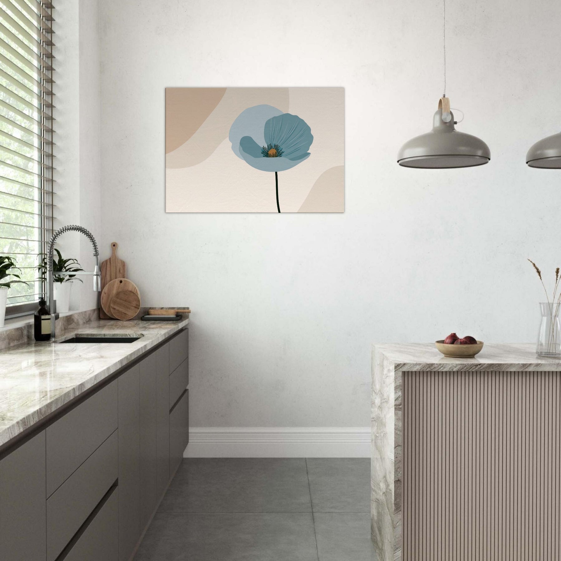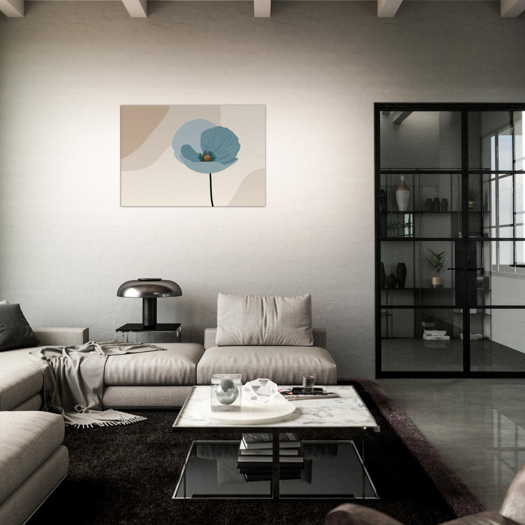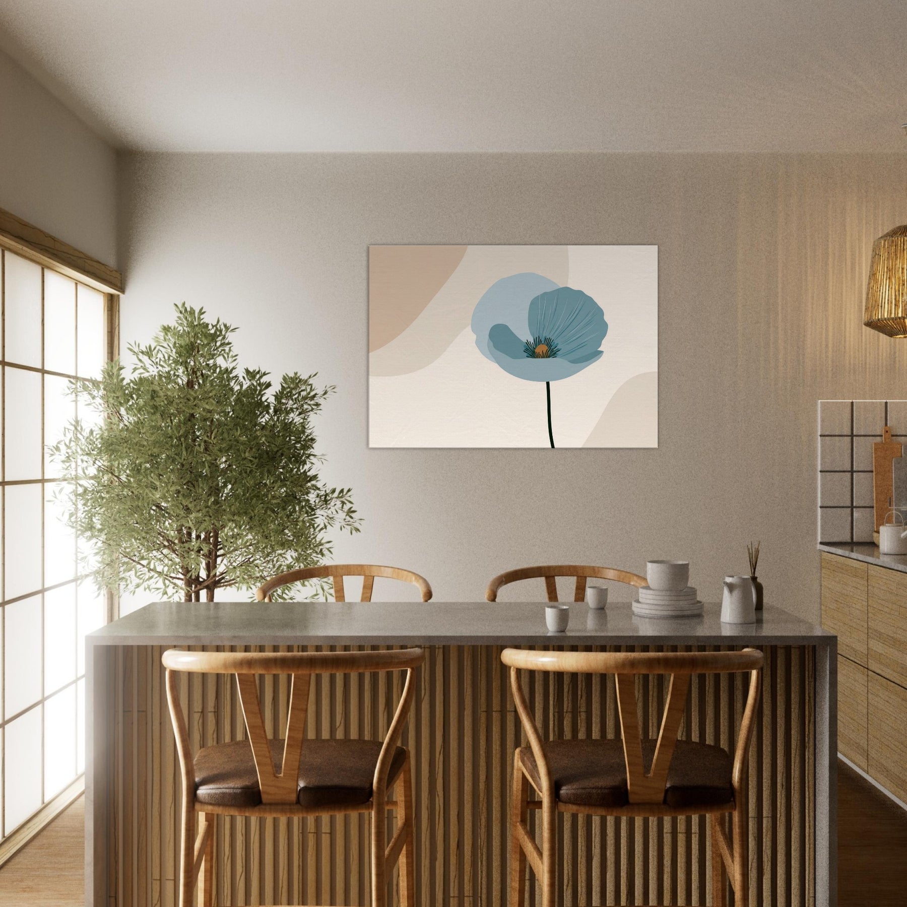 Let the gentle curve of the stem rise from a quiet room into sky lit calm. This minimalist poppy captures nature with a restrained palette of soft blues and warm sand, inviting stillness into daily life. The bloom seems to hover, delicate yet resolute, as if catching morning light on a tranquil breeze. Hang it where you toast a new day or unwind after dusk the petals echo silence, the color shifts with the mood, turning any wall into a sanctuary of clarity and grace.