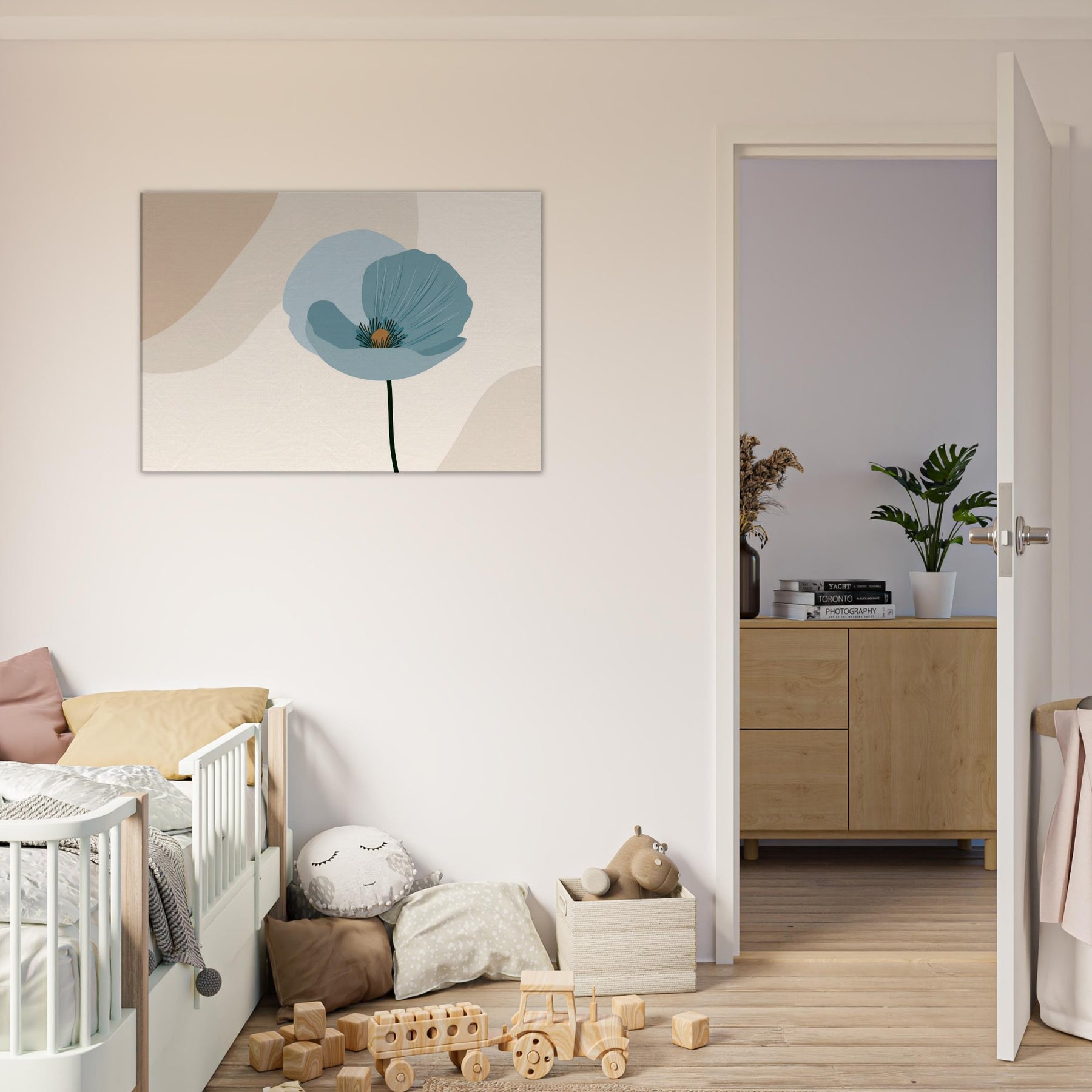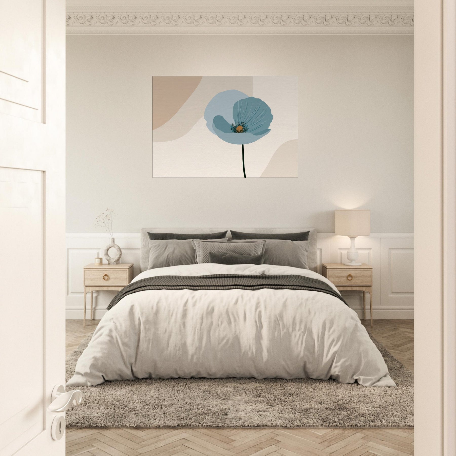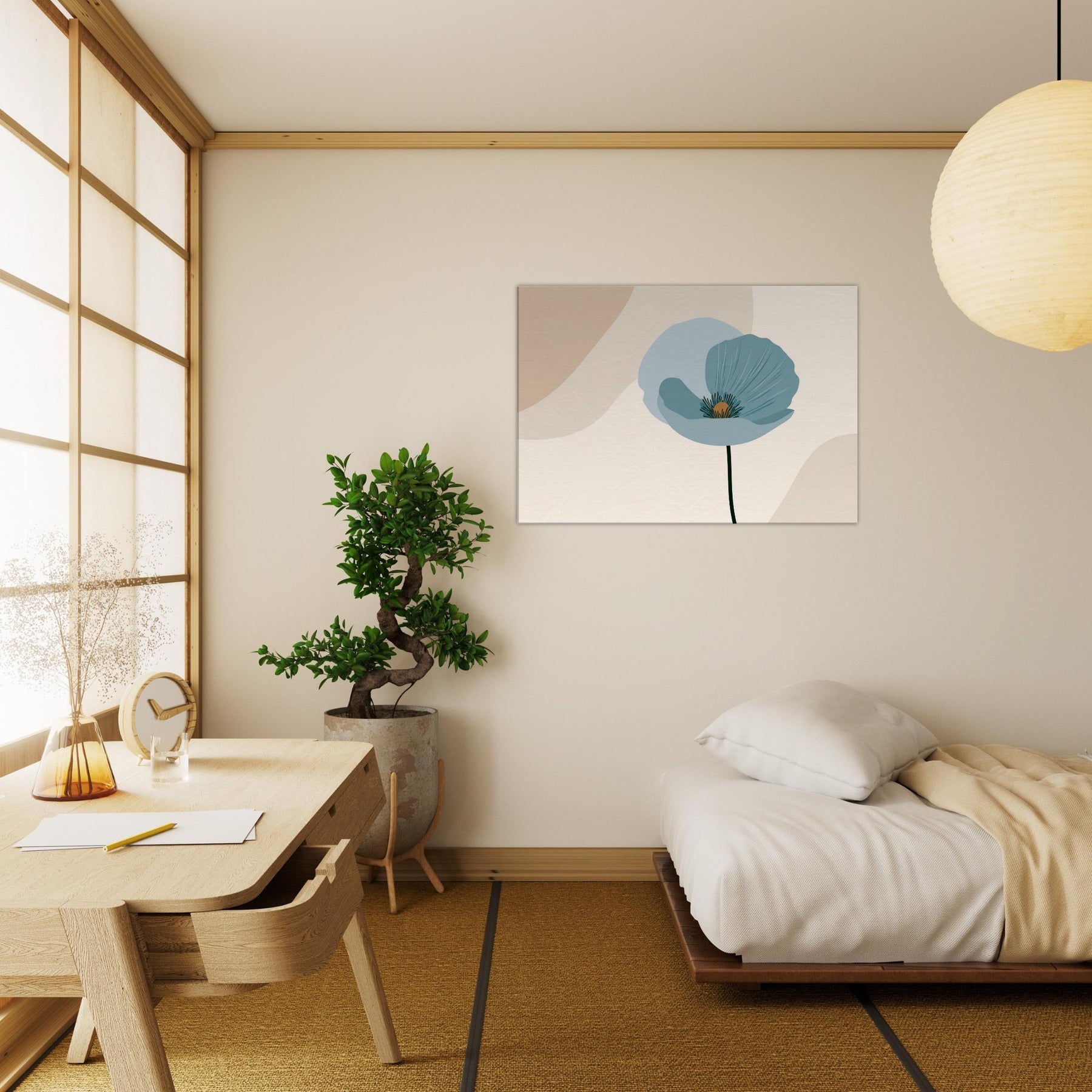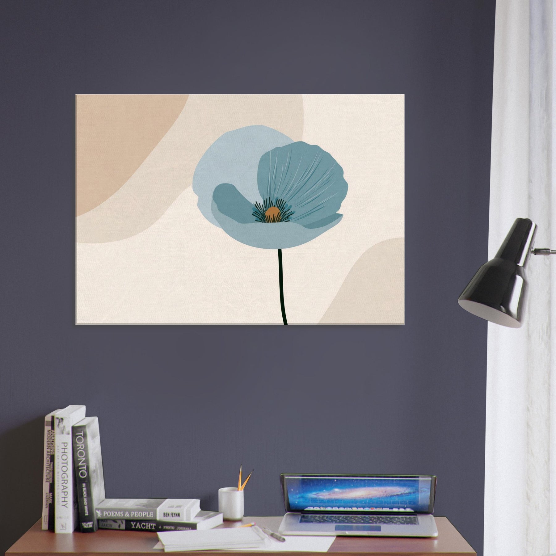Let the gentle curve of the stem rise from a quiet room into sky lit calm. This minimalist poppy captures nature with a restrained palette of soft blues and warm sand, inviting stillness into daily life. The bloom seems to hover, delicate yet resolute, as if catching morning light on a tranquil breeze. Hang it where you toast a new day or unwind after dusk the petals echo silence, the color shifts with the mood, turning any wall into a sanctuary of clarity and grace.