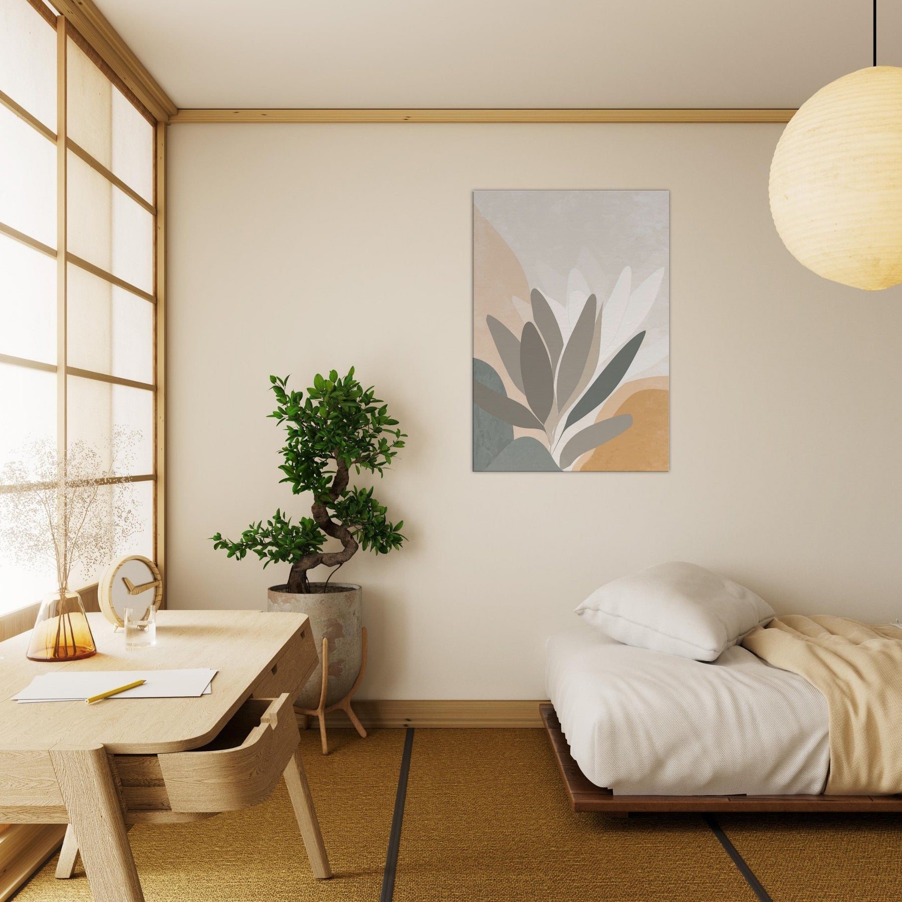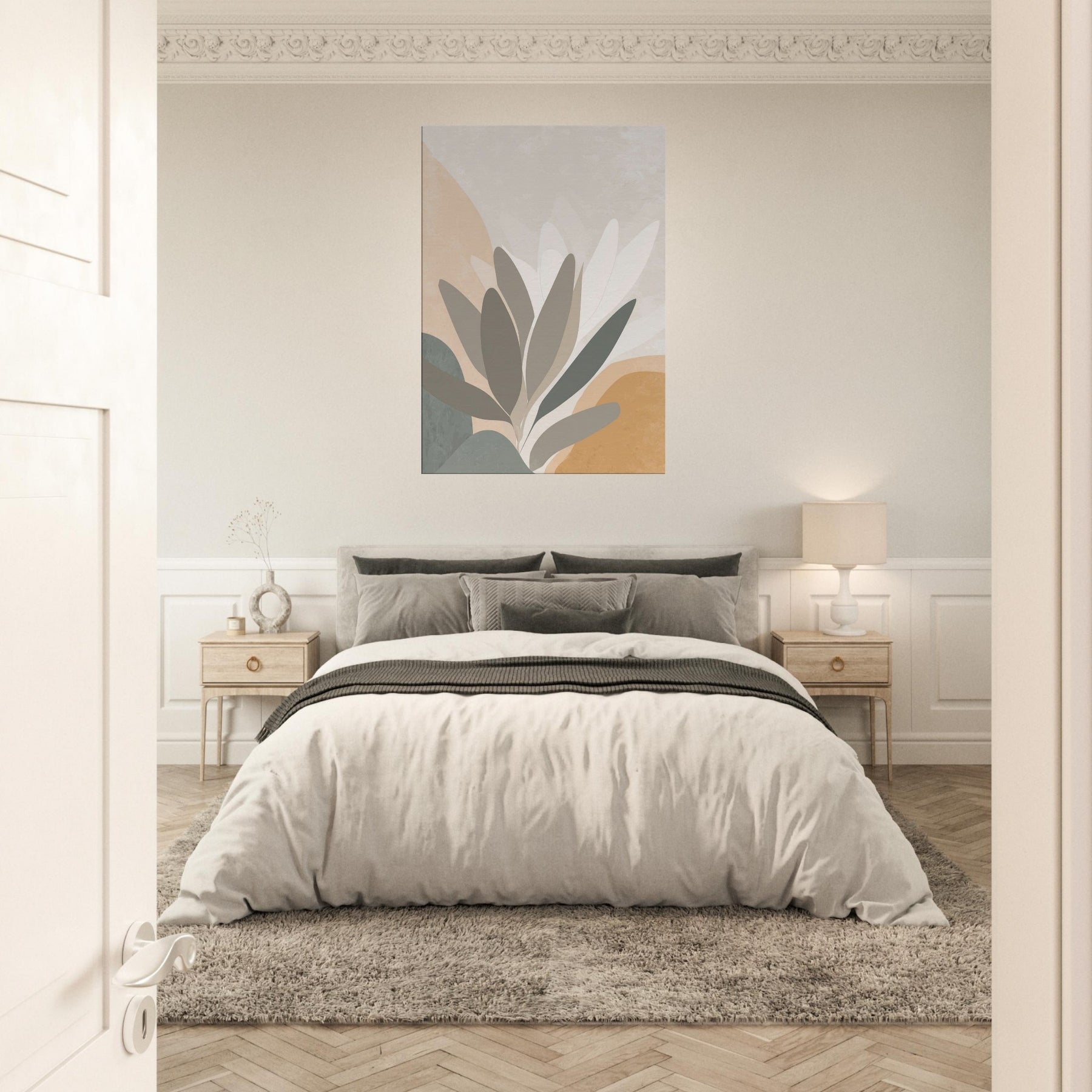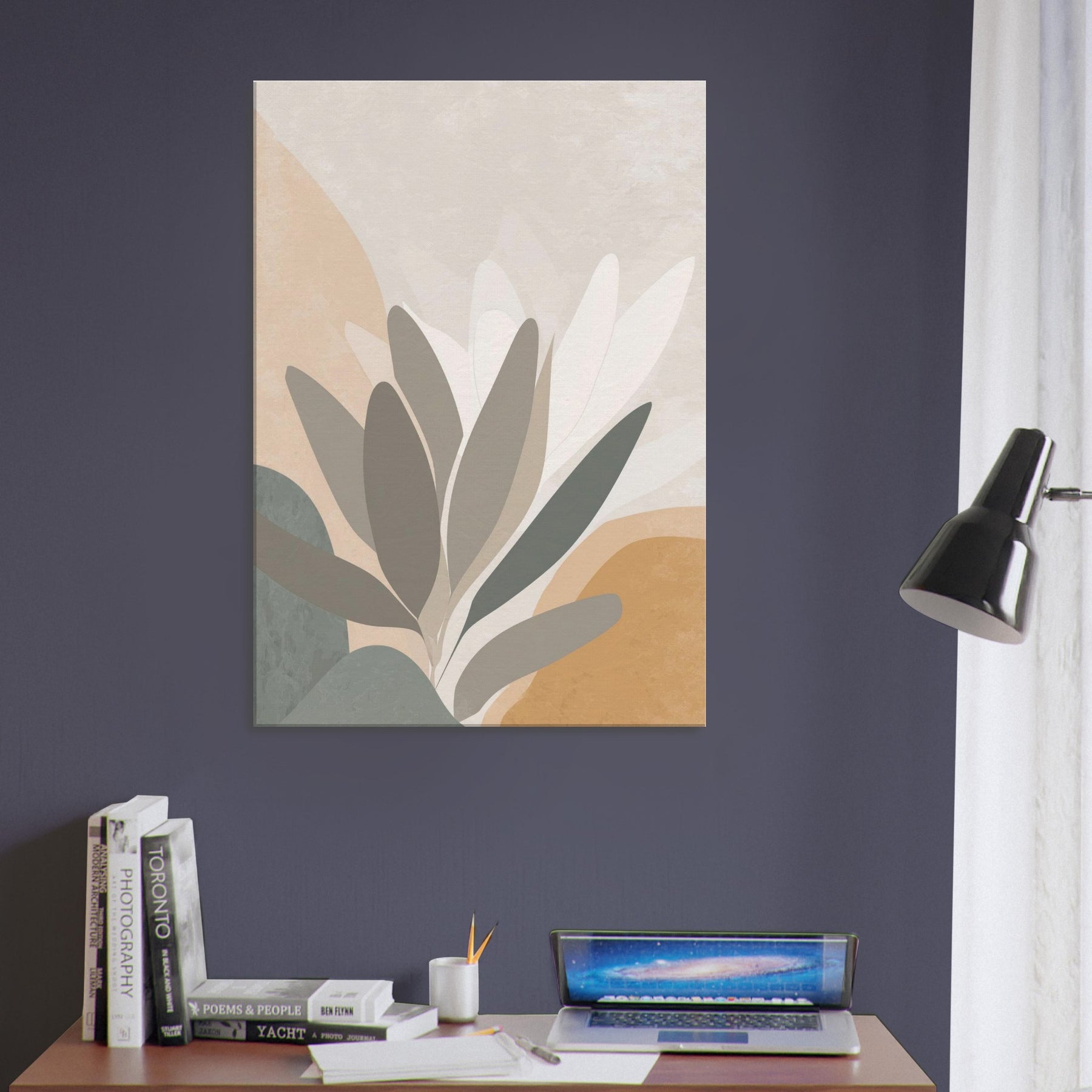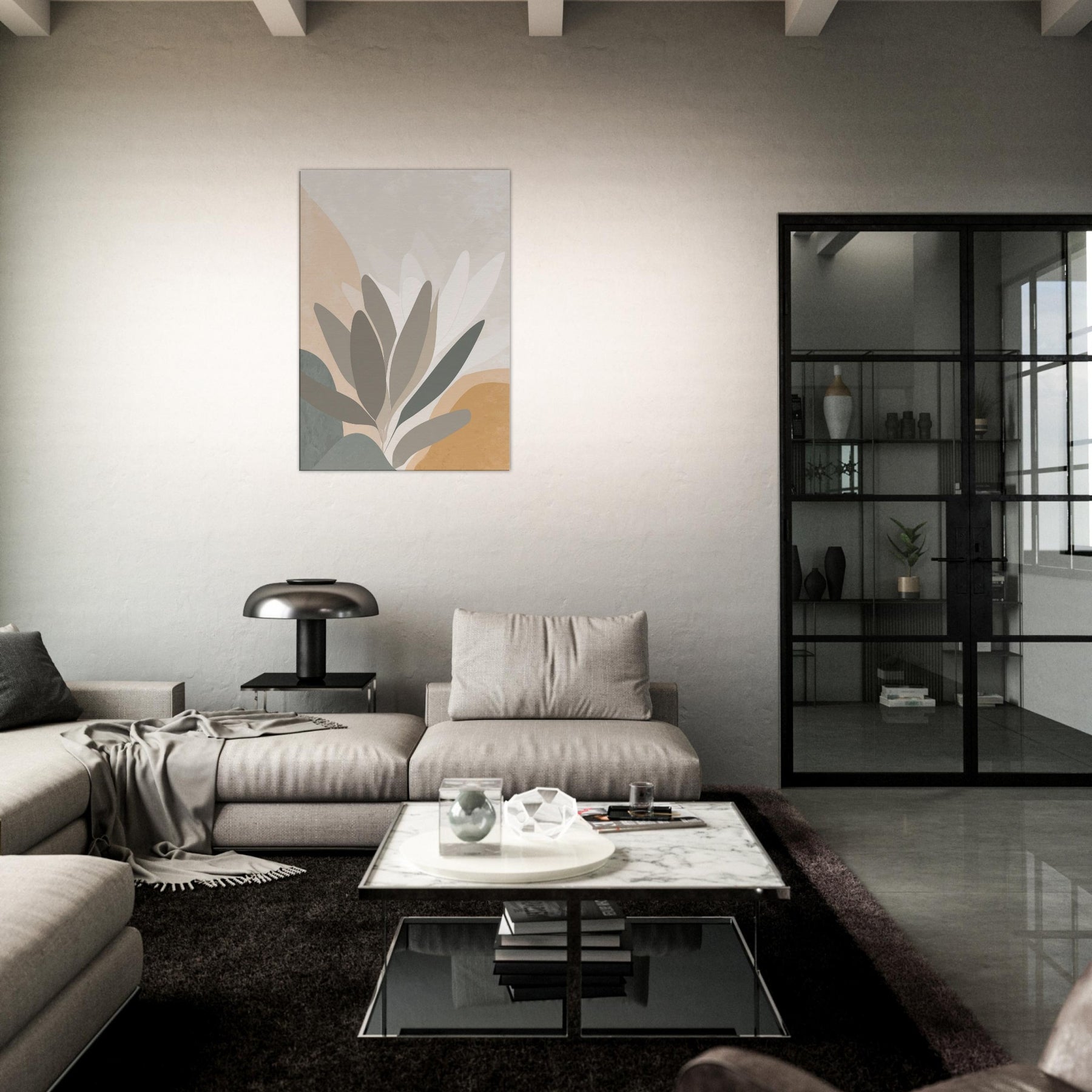 Protea finds its quiet center in this minimalist composition, where soft arcs of color cradle a single botanical voice. The Protea unfolds through muted earth tones sage, ochre, taupe evoking sunlit mornings and cool stone. This wall print invites stillness into your living space, turning walls into a serene, contemplative backdrop for conversation or quiet moments. The balance of negative space with tactile shapes creates a gentle rhythm, like a breath between day and night. Hang it where light lingers it will soften rooms and lift the mood.