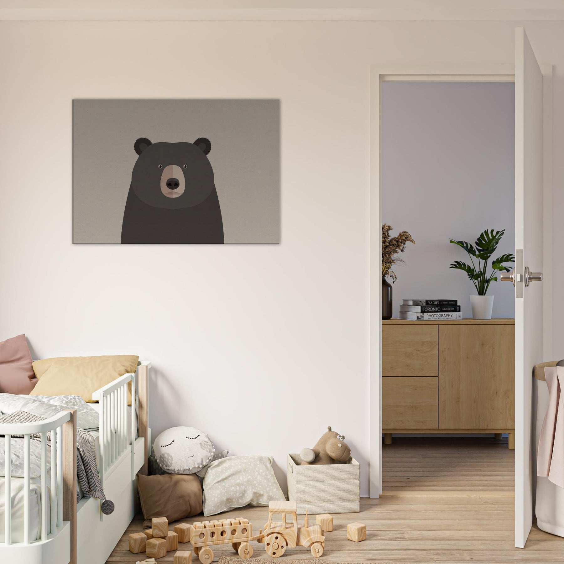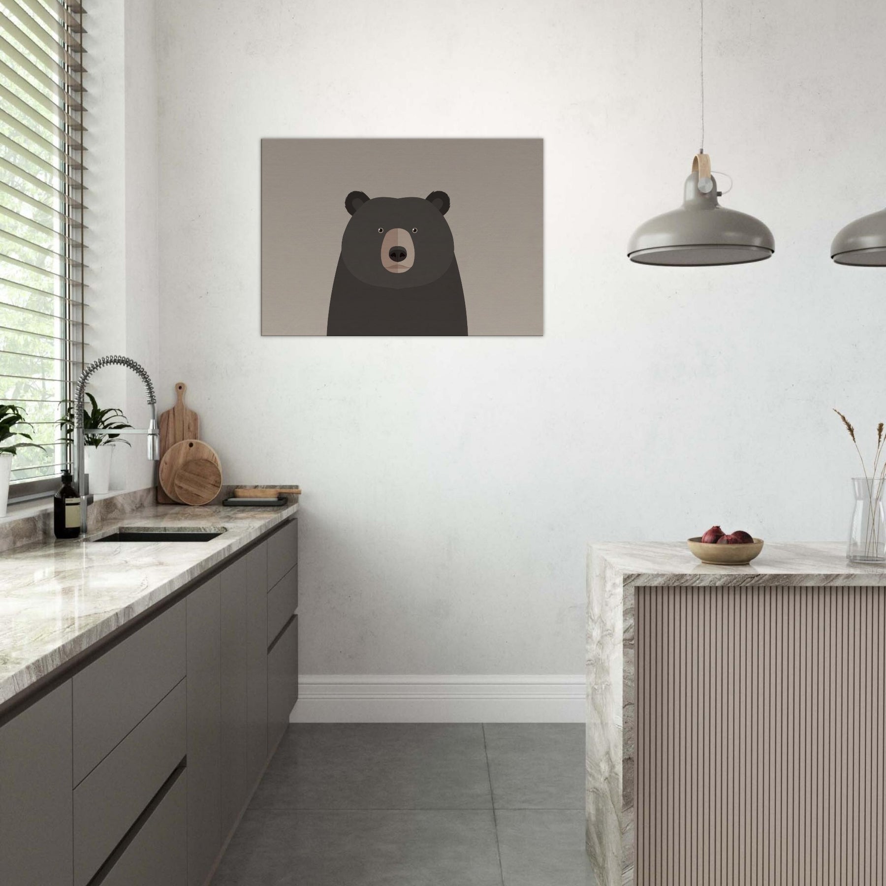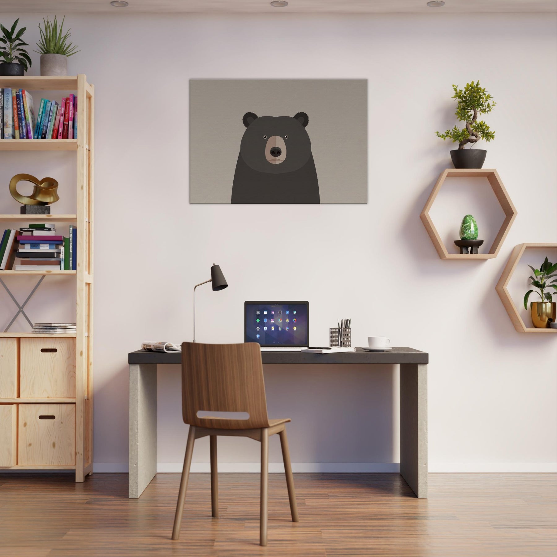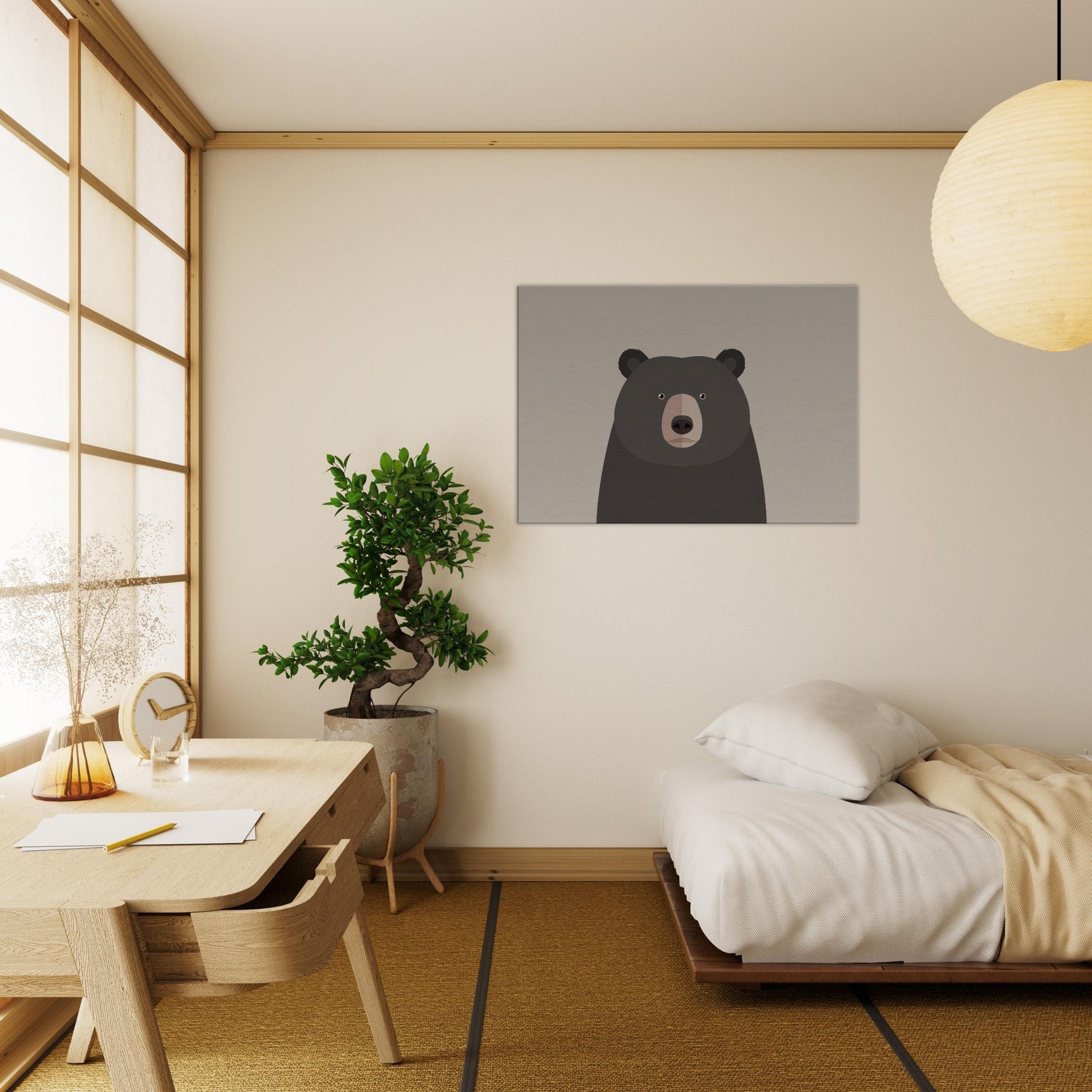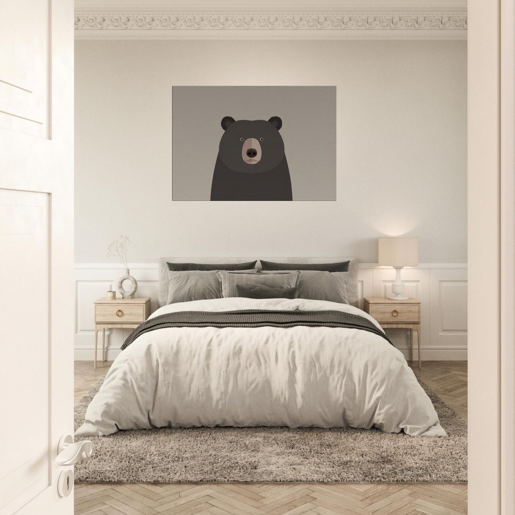 In this minimalist homage, a solitary bear emerges from soft taupe fields, a serene presence that invites quiet contemplation. The restrained palette graphite grays, warm taupe, and subtle flesh tones evokes winter light and hushed rooms, making the space feel larger and calmer. The bear's simple geometry focuses attention on mood over detail, turning any wall into a pause in the day. Perfect above a sofa or bedside, it steadies a modern living space with understated grace.