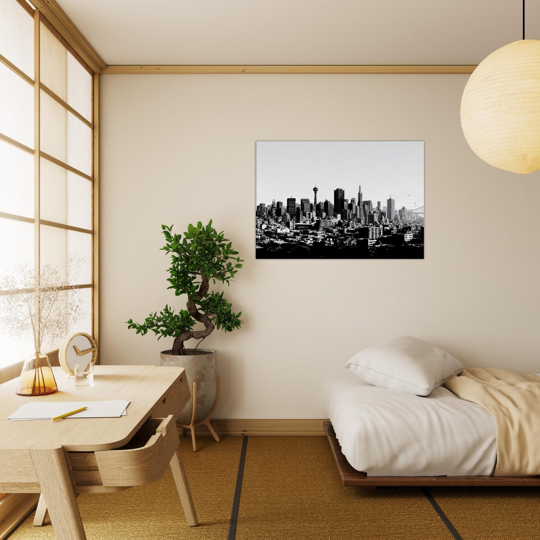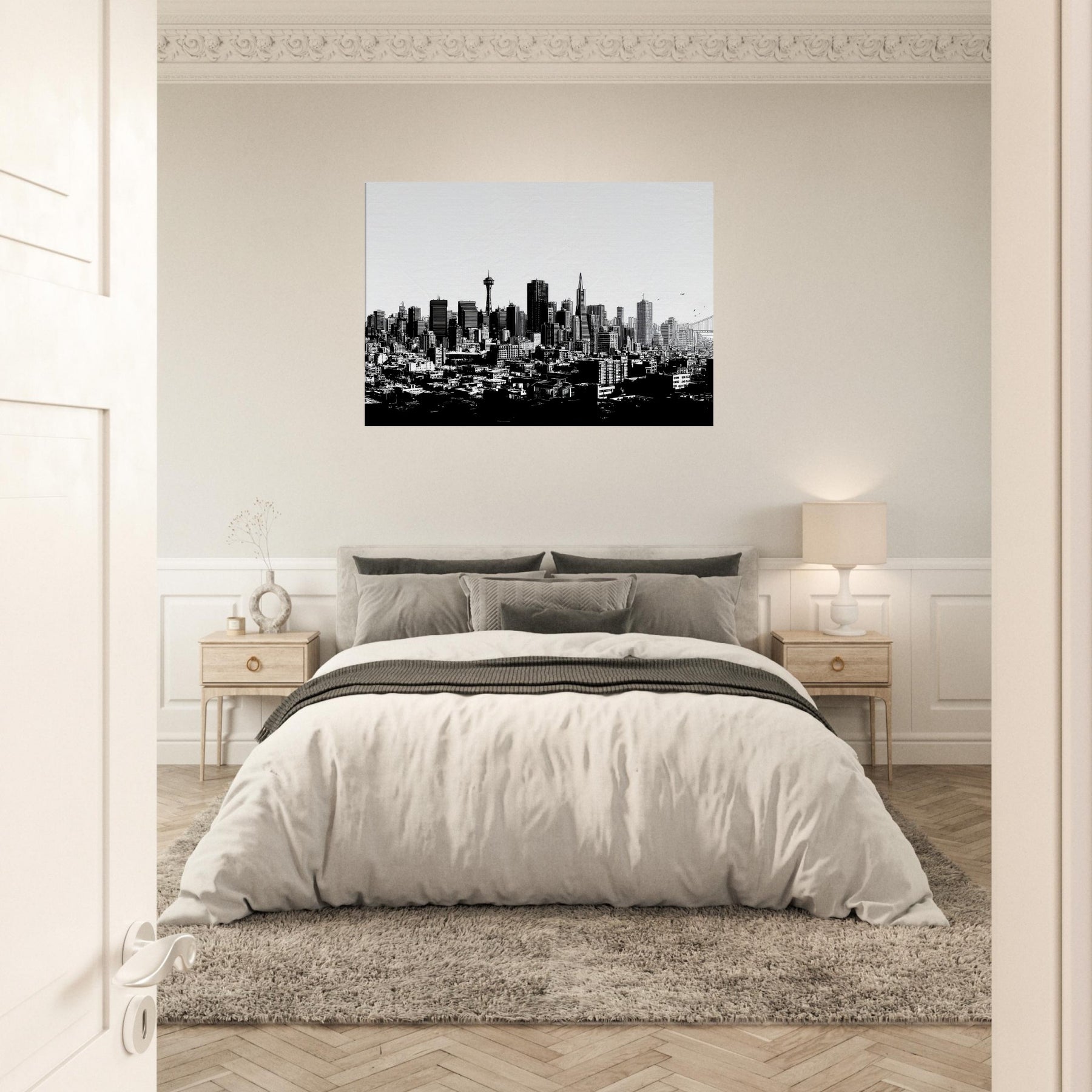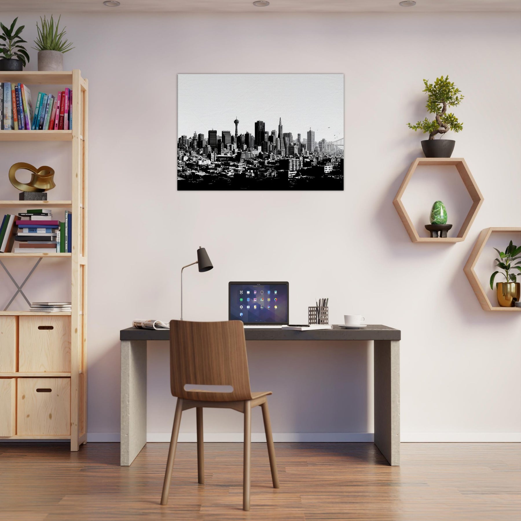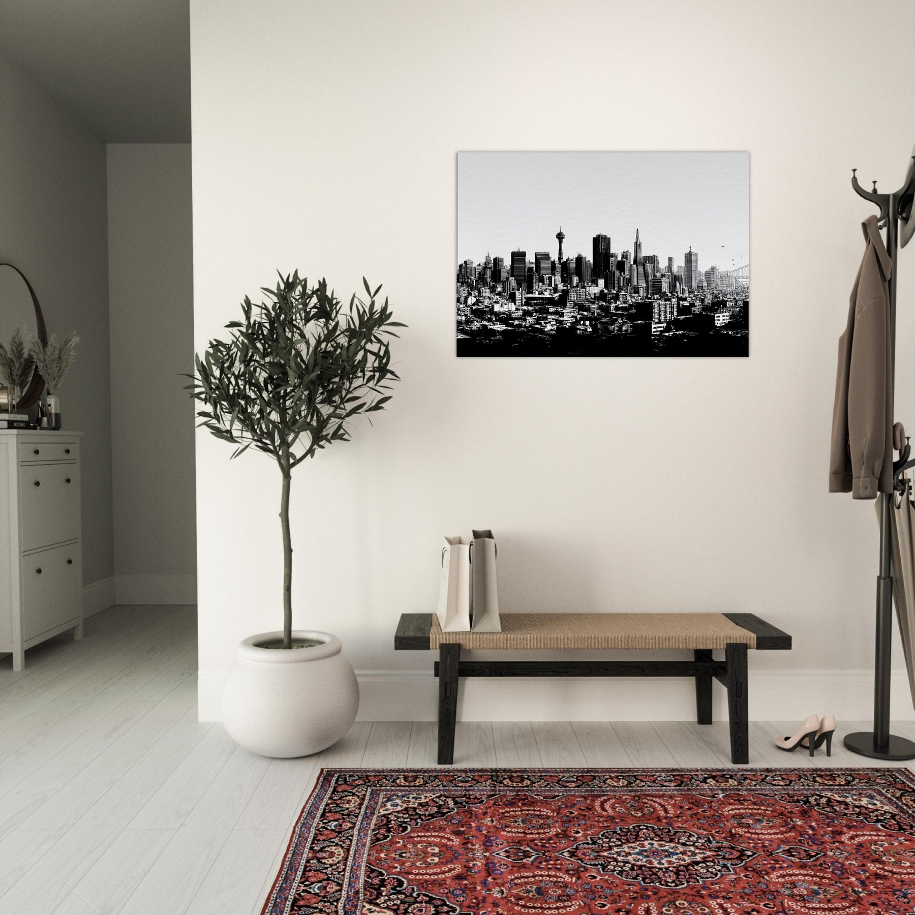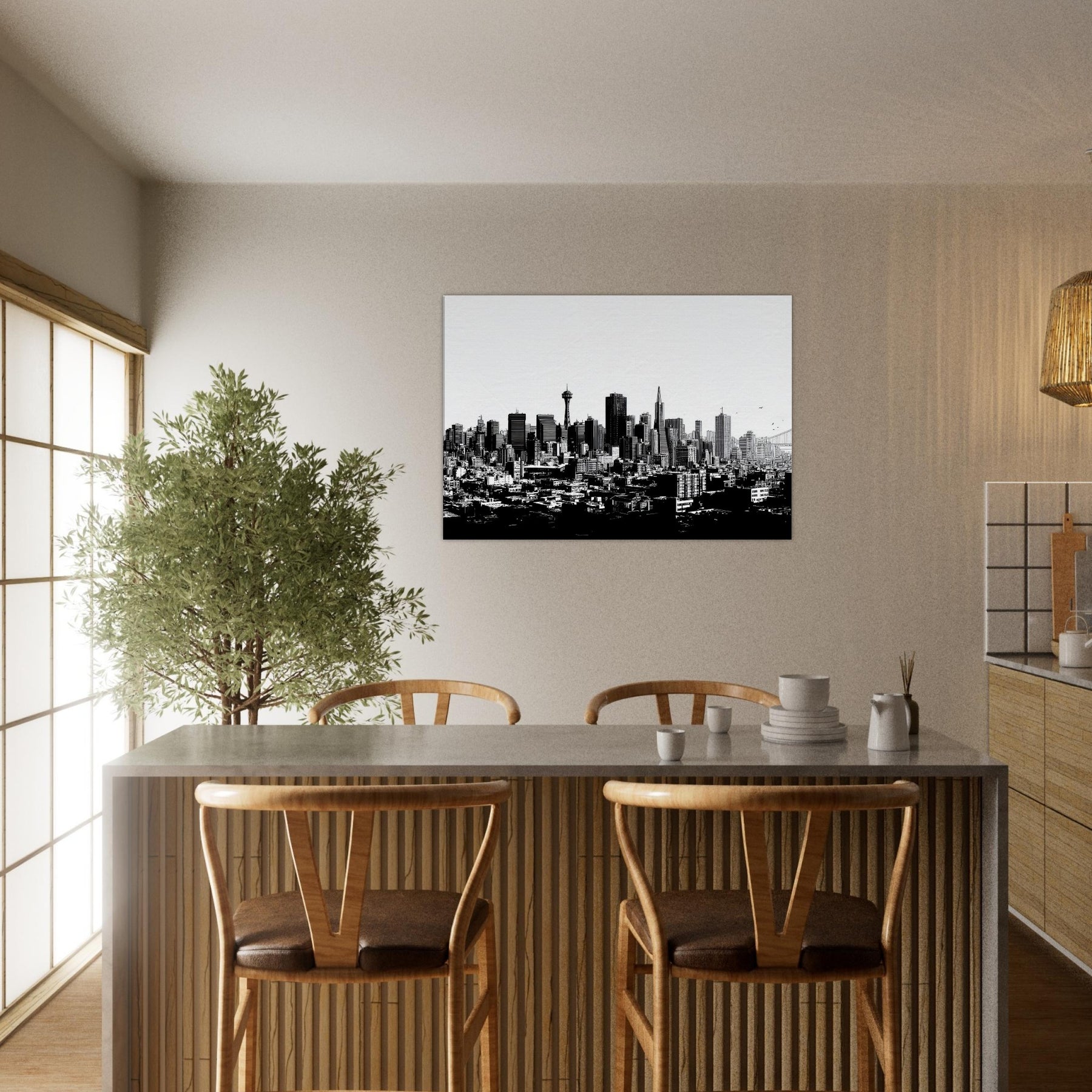 The piece brings urban clarity and subtle drama to a living space, inviting you to pause, breathe, and notice the architecture of your own moments. Perfect above a sofa or desk, it pairs with simplicity to create a timeless, sophisticated atmosphere.
