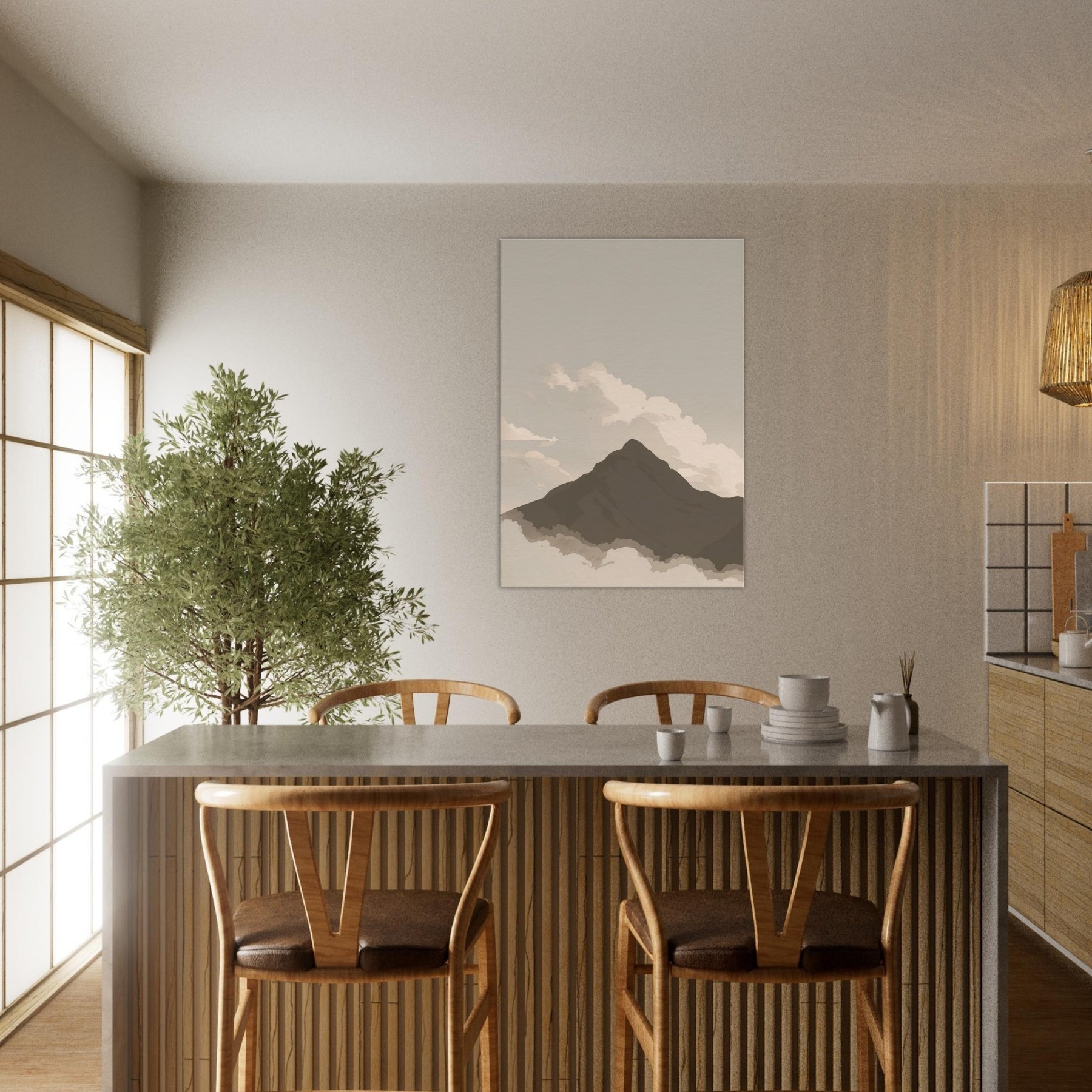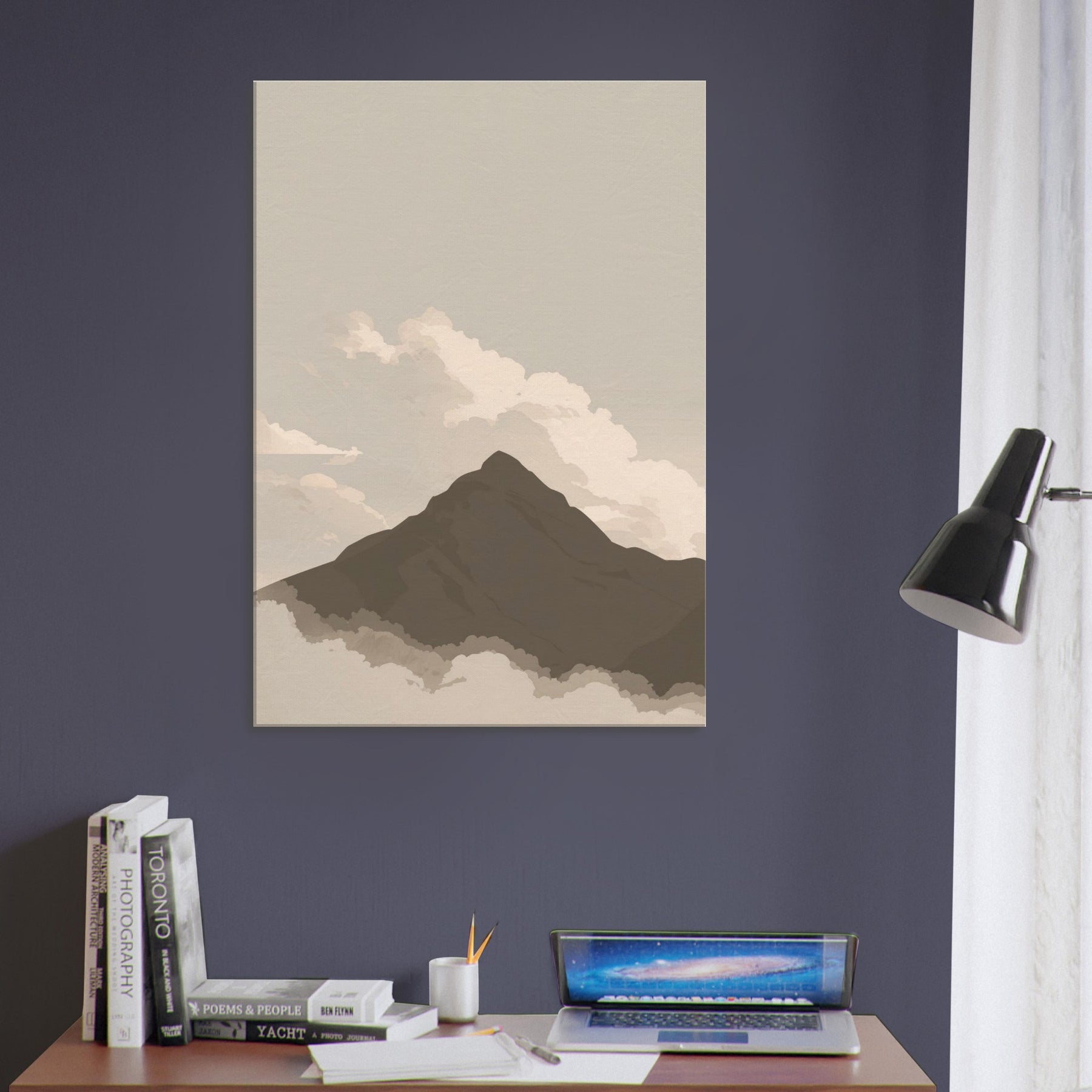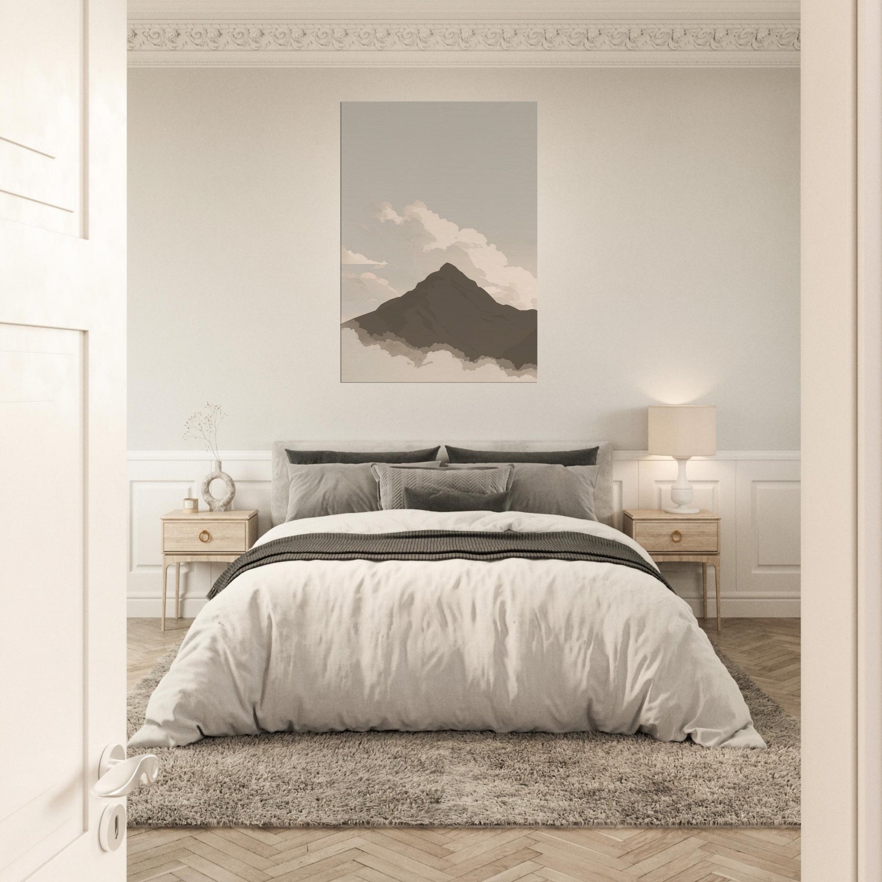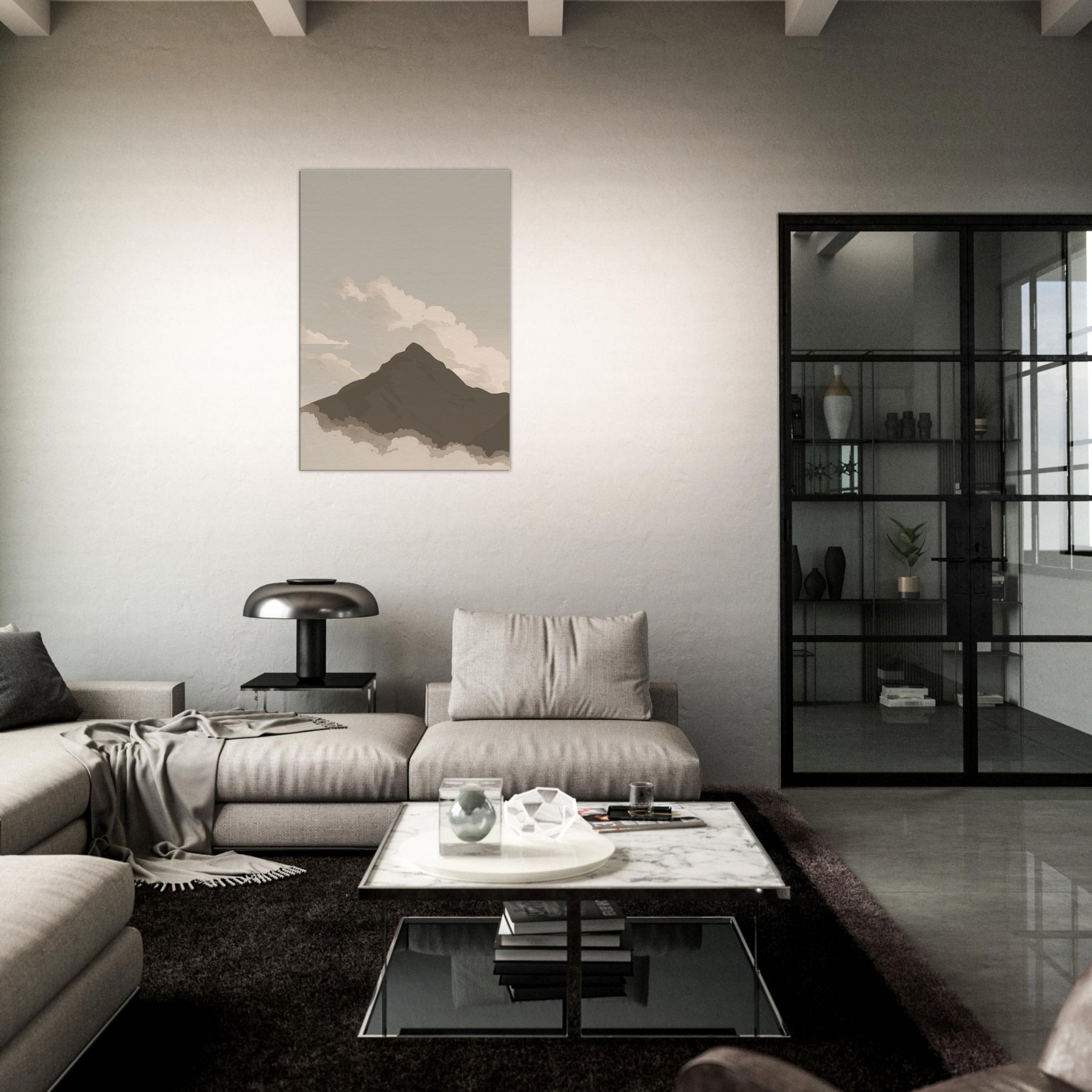 Let the soft ascent of Clouds drift across your room, where a solitary mountain rises in quiet, sculpted shadow. This minimalist composition invites calm into living spaces, its gentle tones and airy negative space mirroring breath, light, and stillness. The atmosphere feels ceremonial yet intimate, a subtle backdrop for conversation or contemplation. Hang it above a sofa, desk, or bed and feel the room breathe anew, nature's quiet horizon translating into everyday ease, clarity, and a moment of pause.