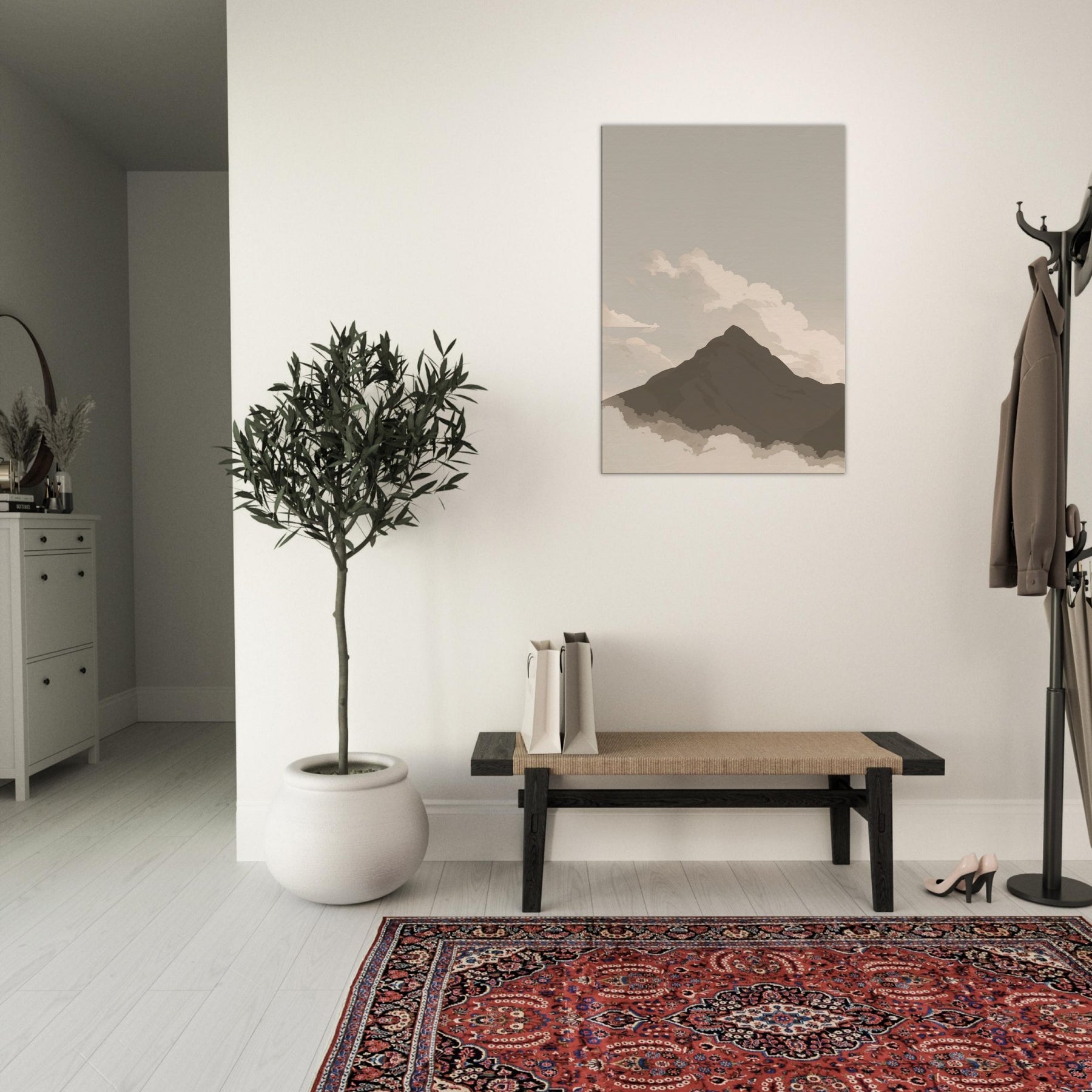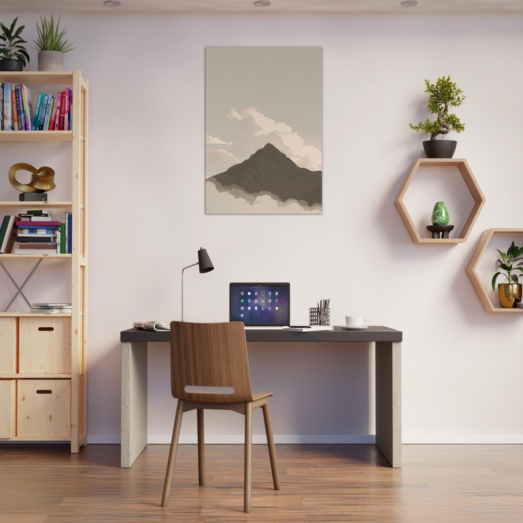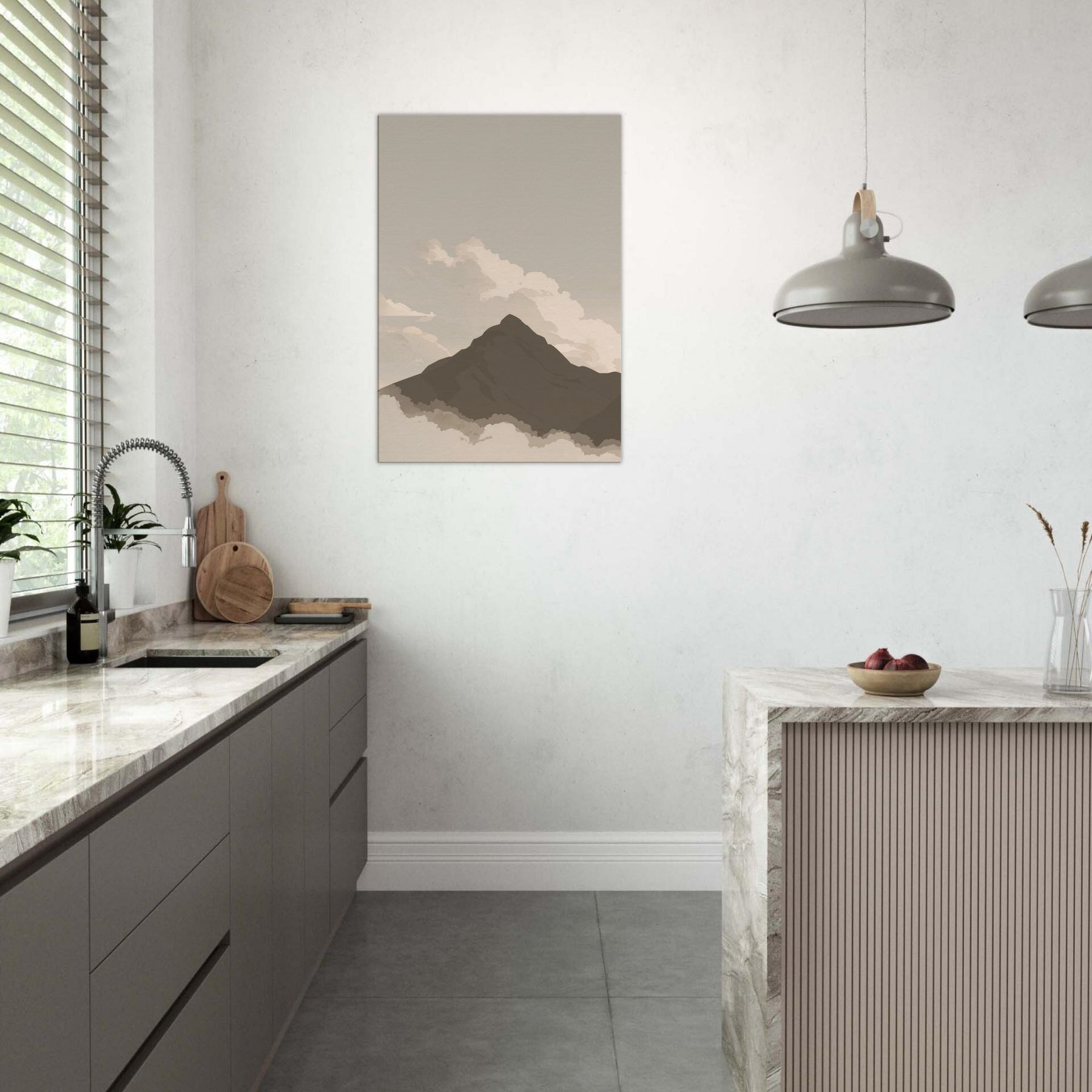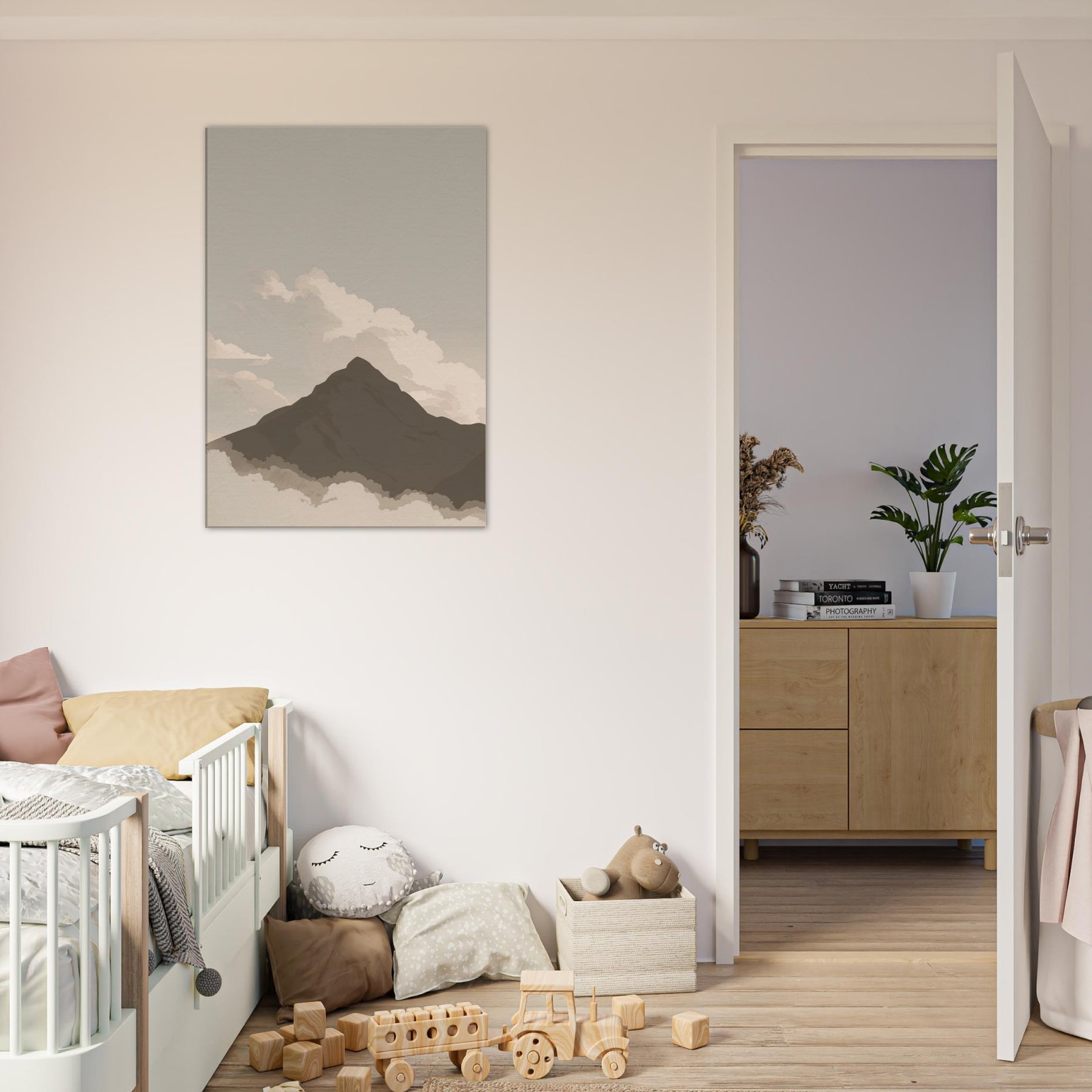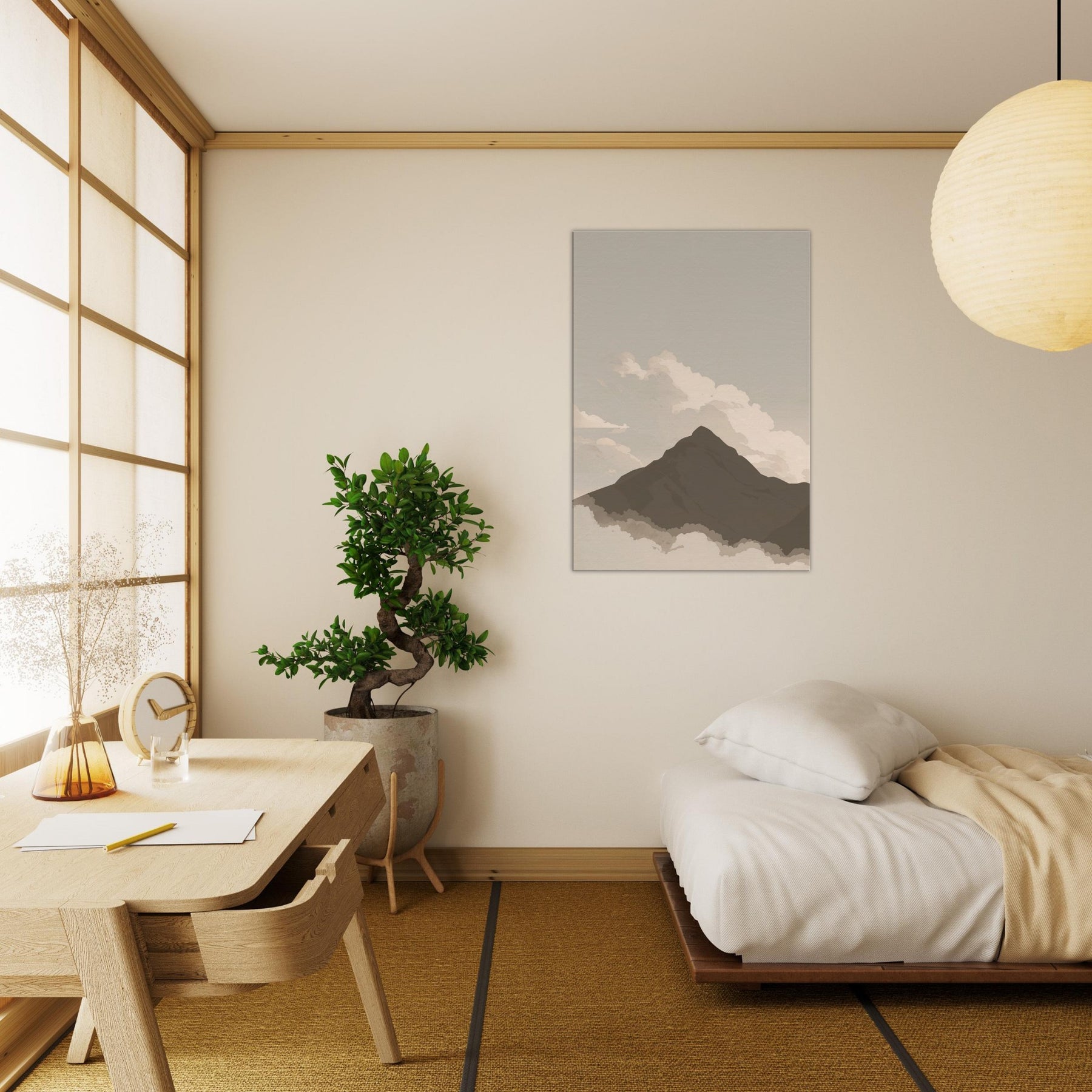 Let the soft ascent of Clouds drift across your room, where a solitary mountain rises in quiet, sculpted shadow. This minimalist composition invites calm into living spaces, its gentle tones and airy negative space mirroring breath, light, and stillness. The atmosphere feels ceremonial yet intimate, a subtle backdrop for conversation or contemplation. Hang it above a sofa, desk, or bed and feel the room breathe anew, nature's quiet horizon translating into everyday ease, clarity, and a moment of pause.