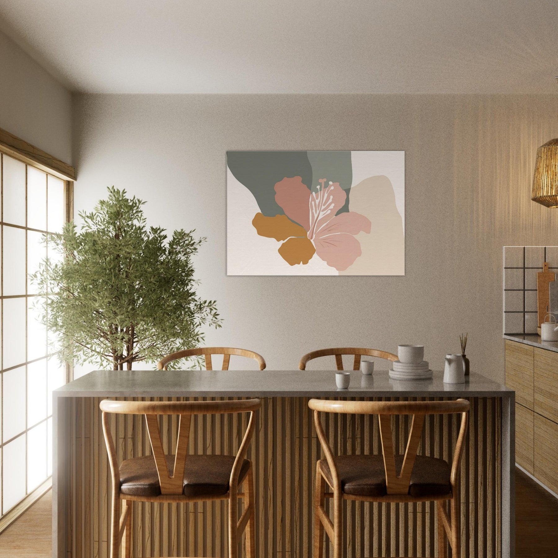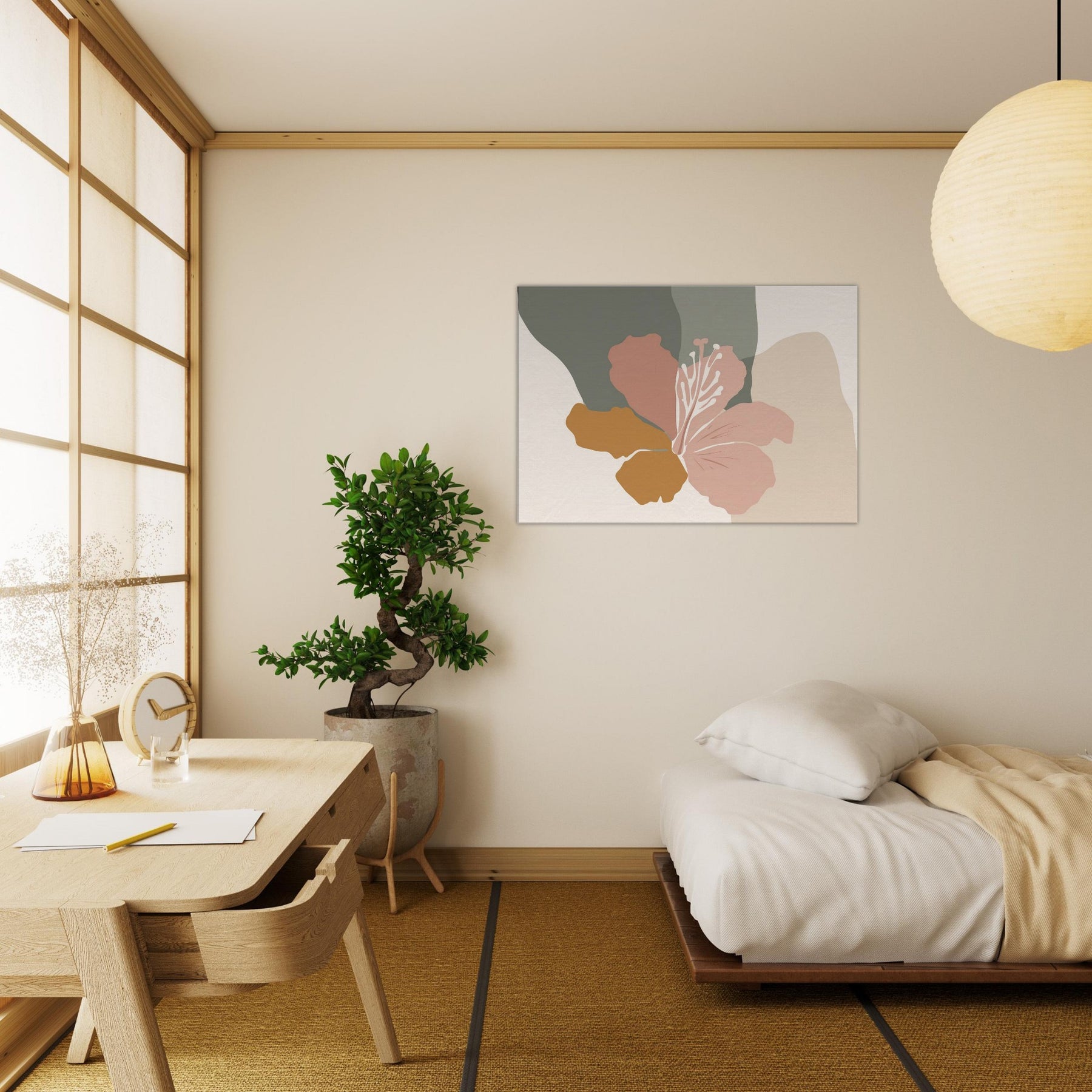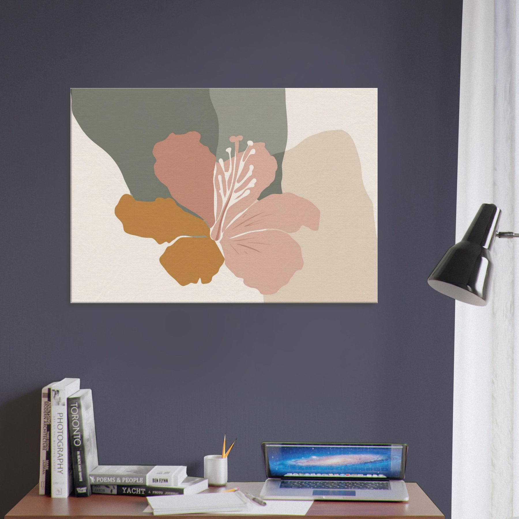 Like a breath of calm in a crowded room, this minimalist Hibiscus study dissolves color into gentle ribbons of blush, sage, ochre, and cream. The pared down composition lets the flower speak softly, its elegant lines floating against a quiet background that invites quiet reflection. Position it above a sofa or in a sunlit corner to soften edges, invite warmth, and weave a nature inspired mood through the living space. Subtle, refined, and endlessly versatile, it turns walls into a serene sanctuary.
