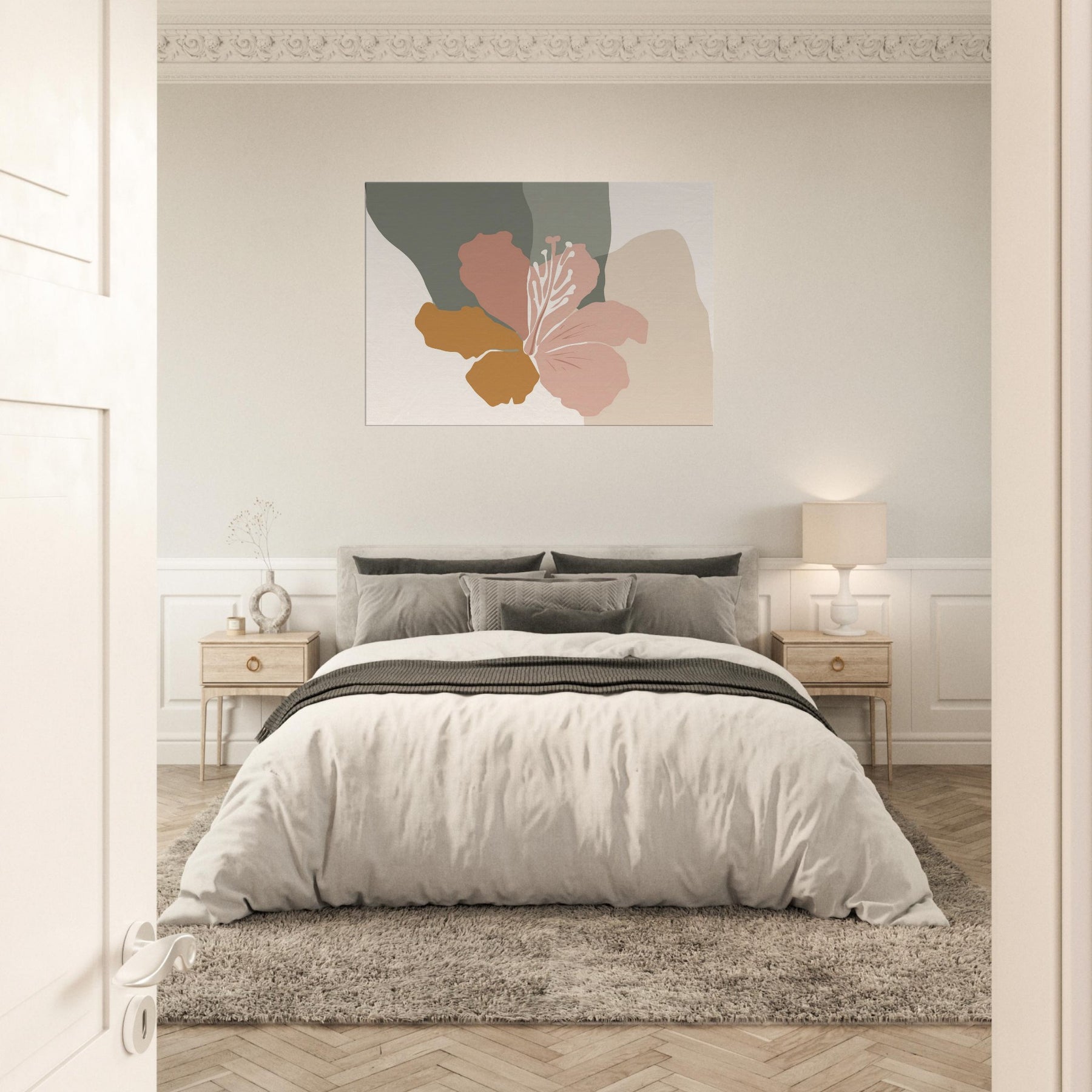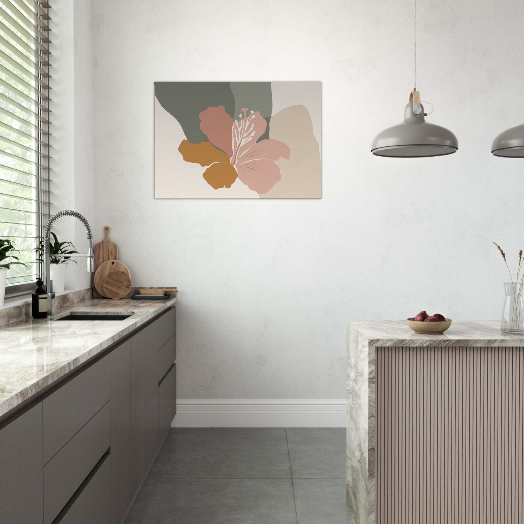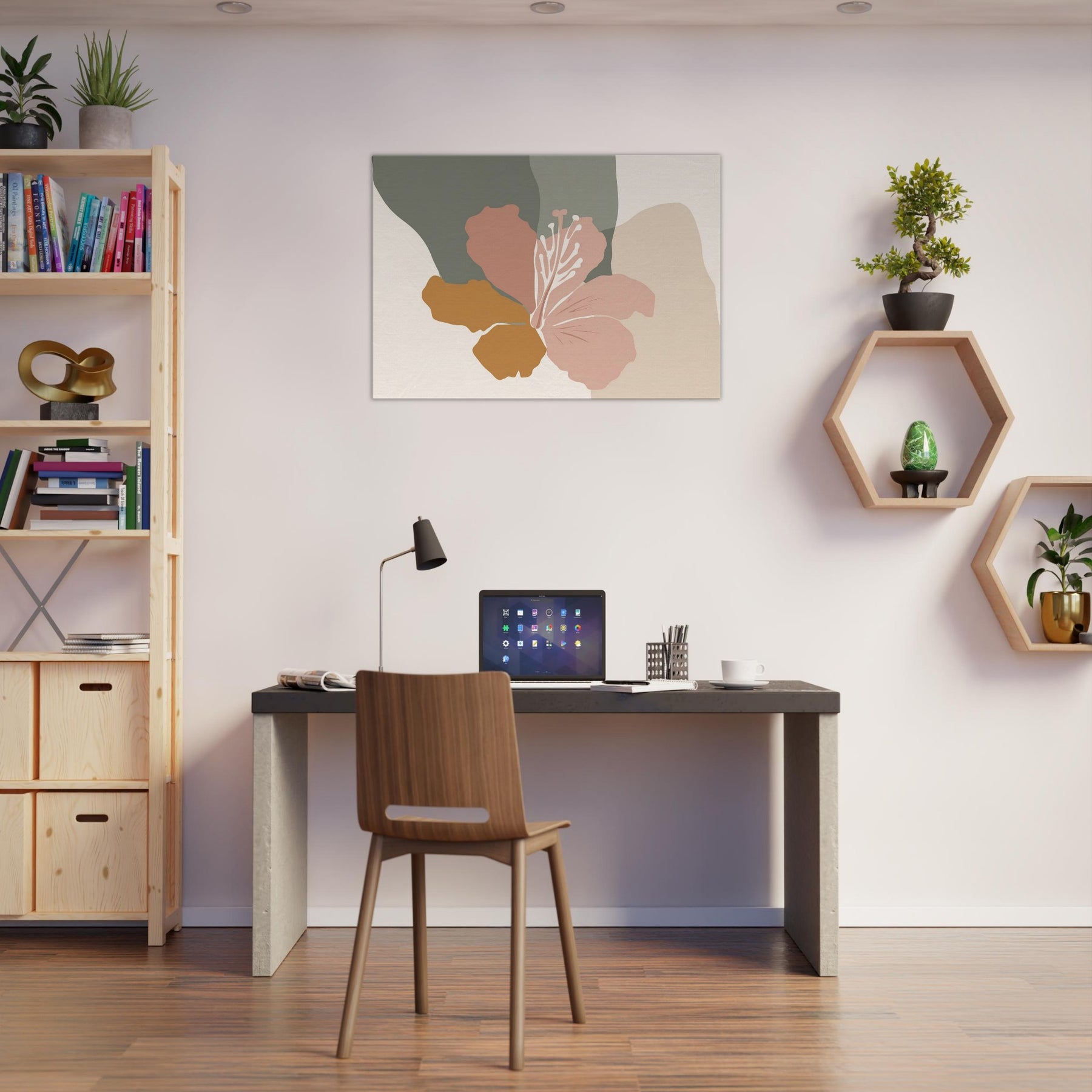 Like a breath of calm in a crowded room, this minimalist Hibiscus study dissolves color into gentle ribbons of blush, sage, ochre, and cream. The pared down composition lets the flower speak softly, its elegant lines floating against a quiet background that invites quiet reflection. Position it above a sofa or in a sunlit corner to soften edges, invite warmth, and weave a nature inspired mood through the living space. Subtle, refined, and endlessly versatile, it turns walls into a serene sanctuary.