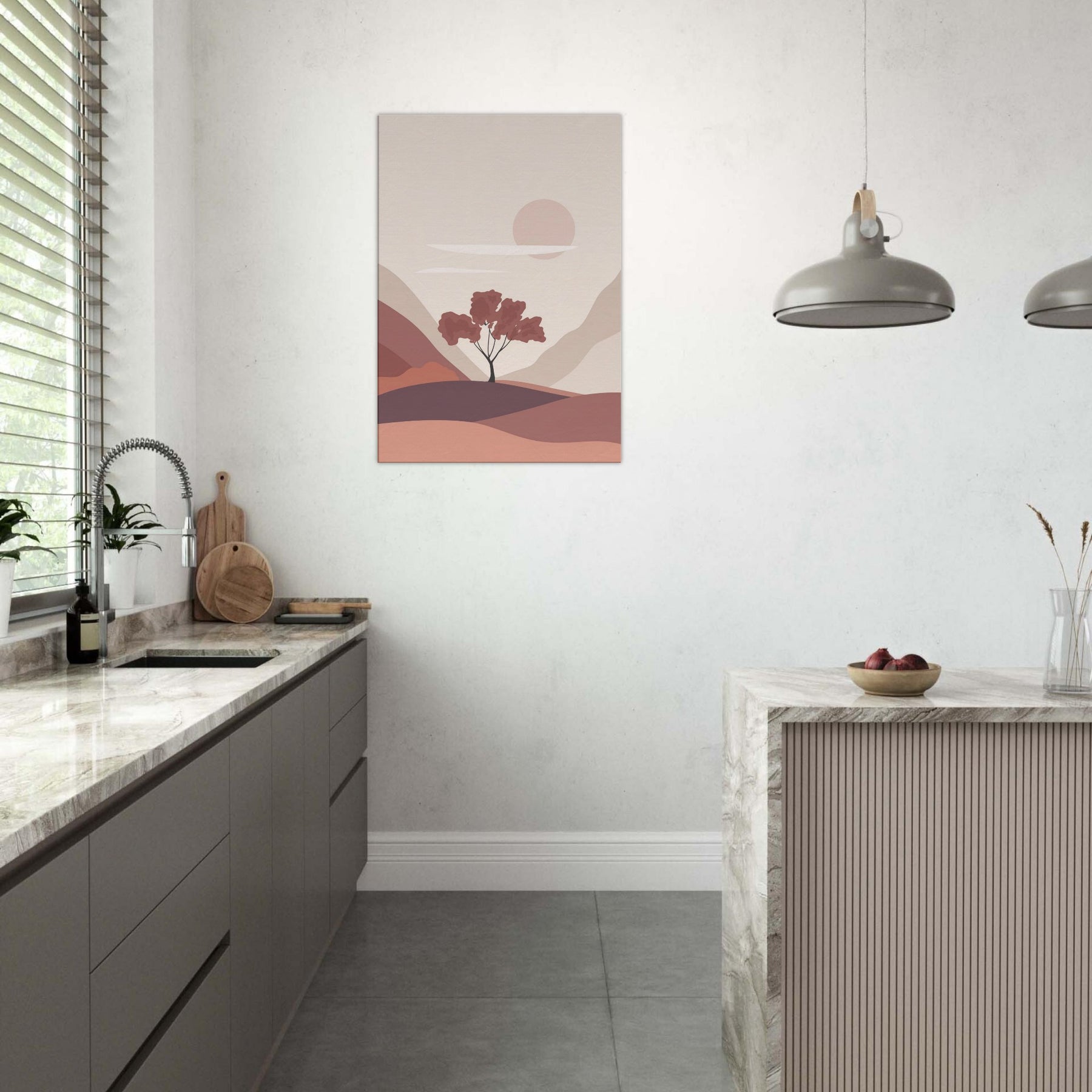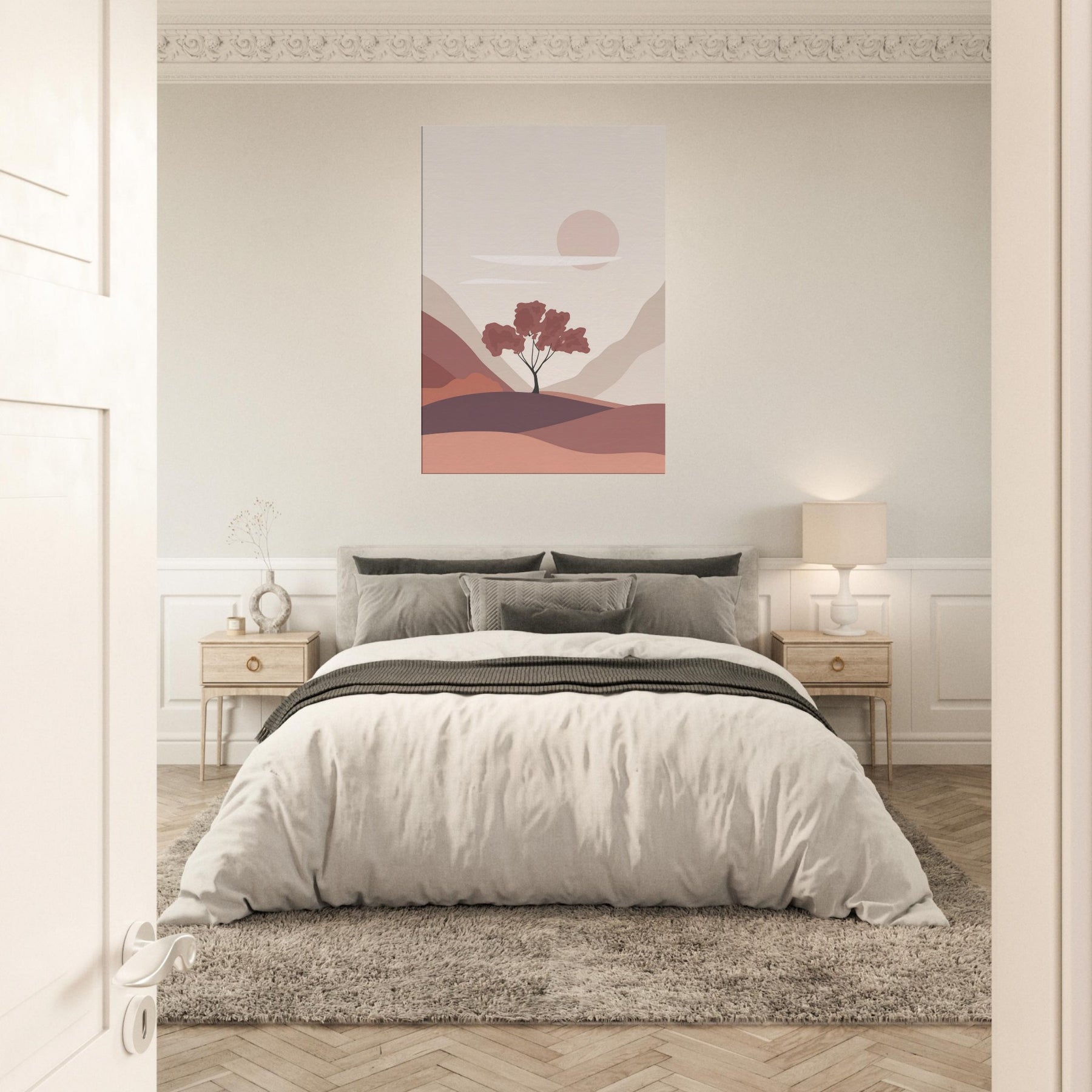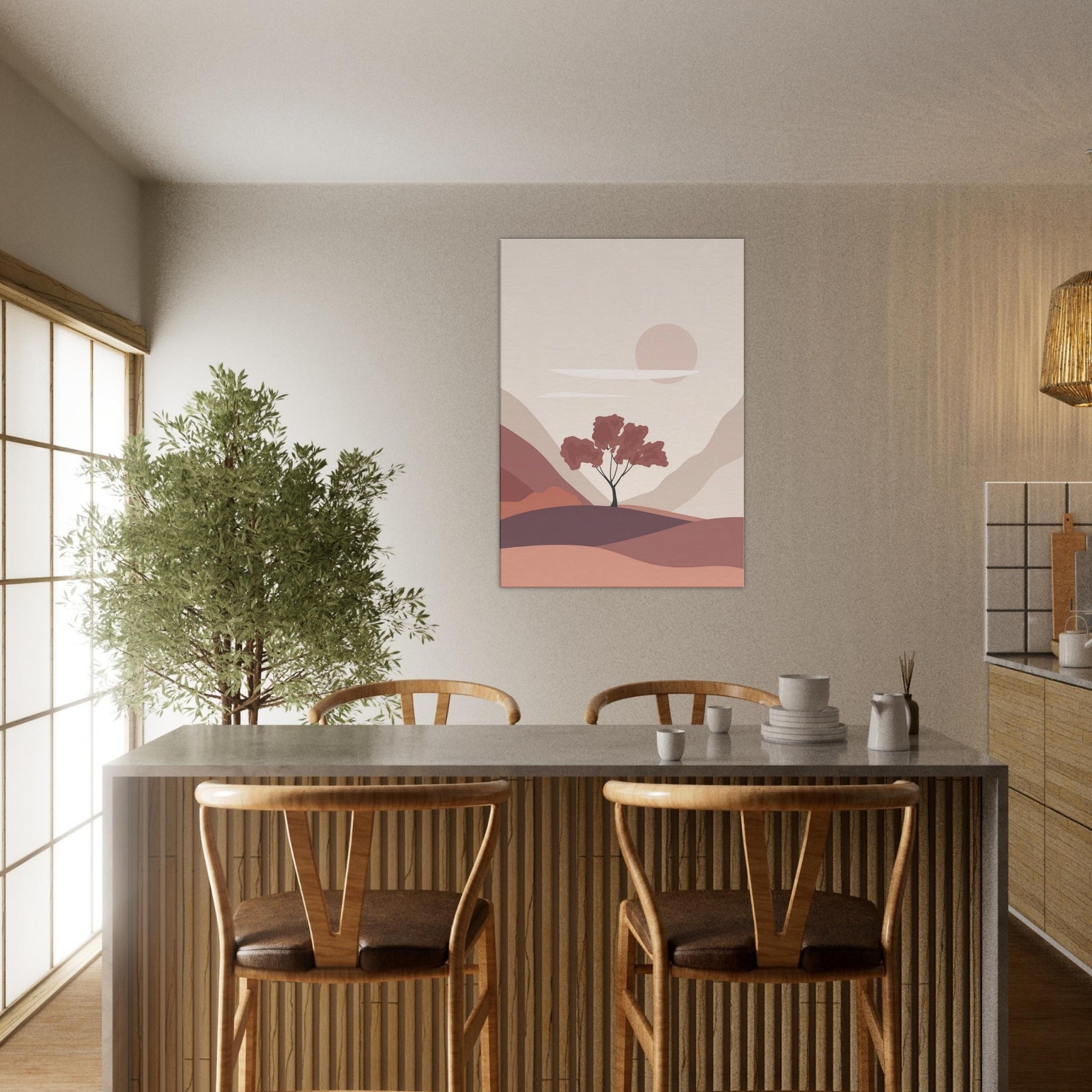 Amid soft dunes and a solitary tree, this minimalist scene captures the quiet drama of a Tropical Island at dusk. The gentle palette of pinks, blushes, and warm sands invites a calm, airy atmosphere into any room like a whispered vacation you can live with. The composition breathes through subtle negative space, letting light and texture carry the mood rather than detail. A serene focal point that elevates living spaces with understated elegance, pairing effortlessly with neutral palettes or tropical inspired accents.