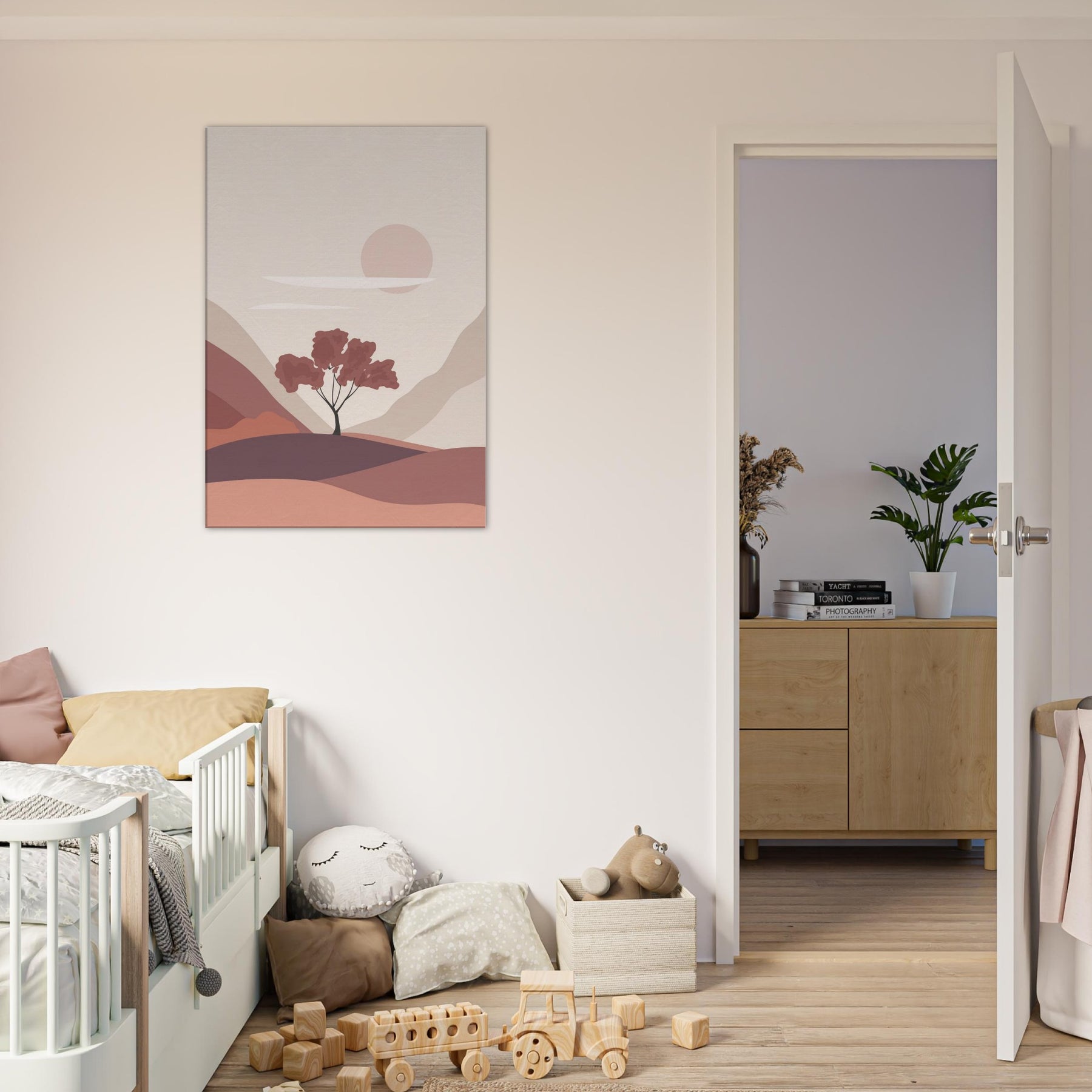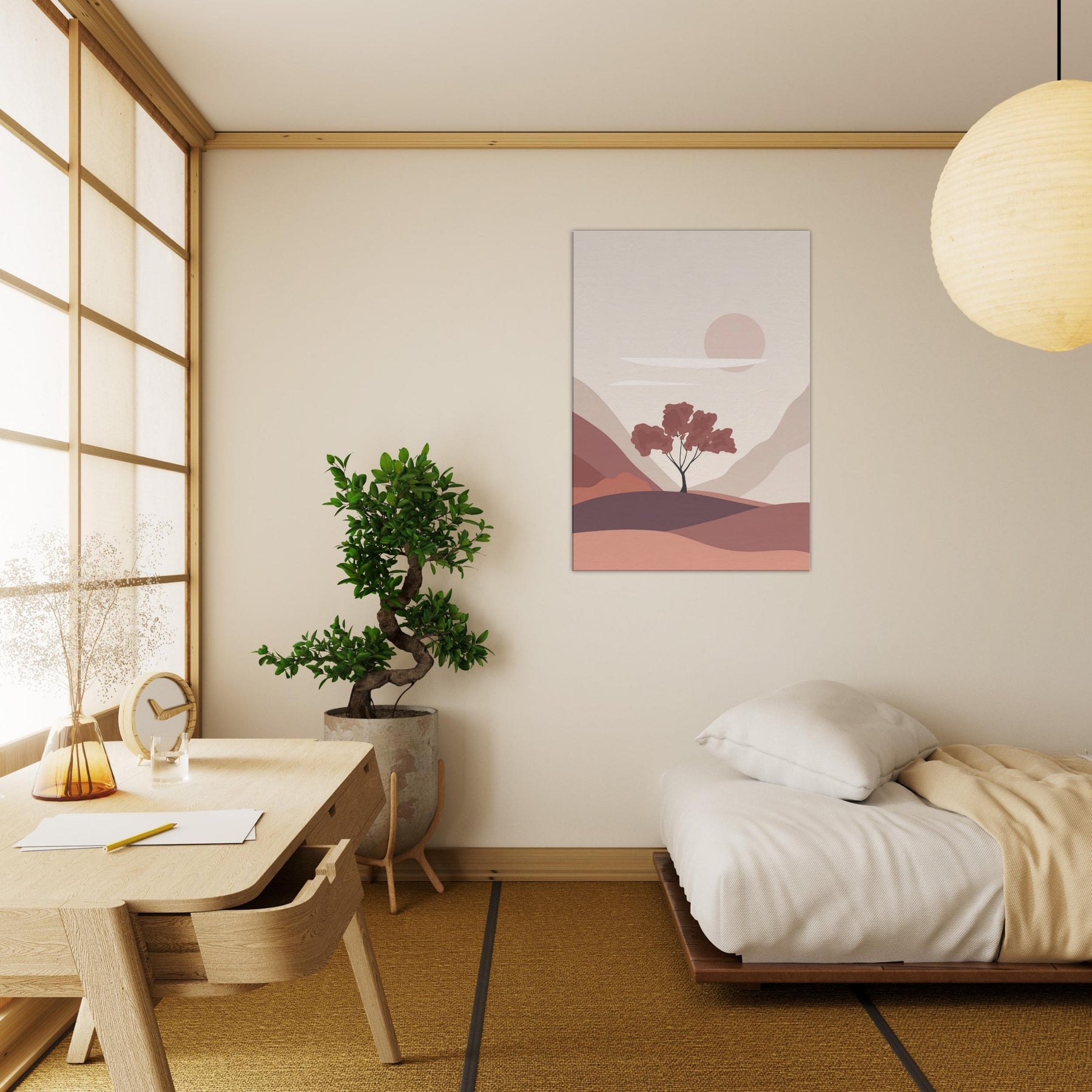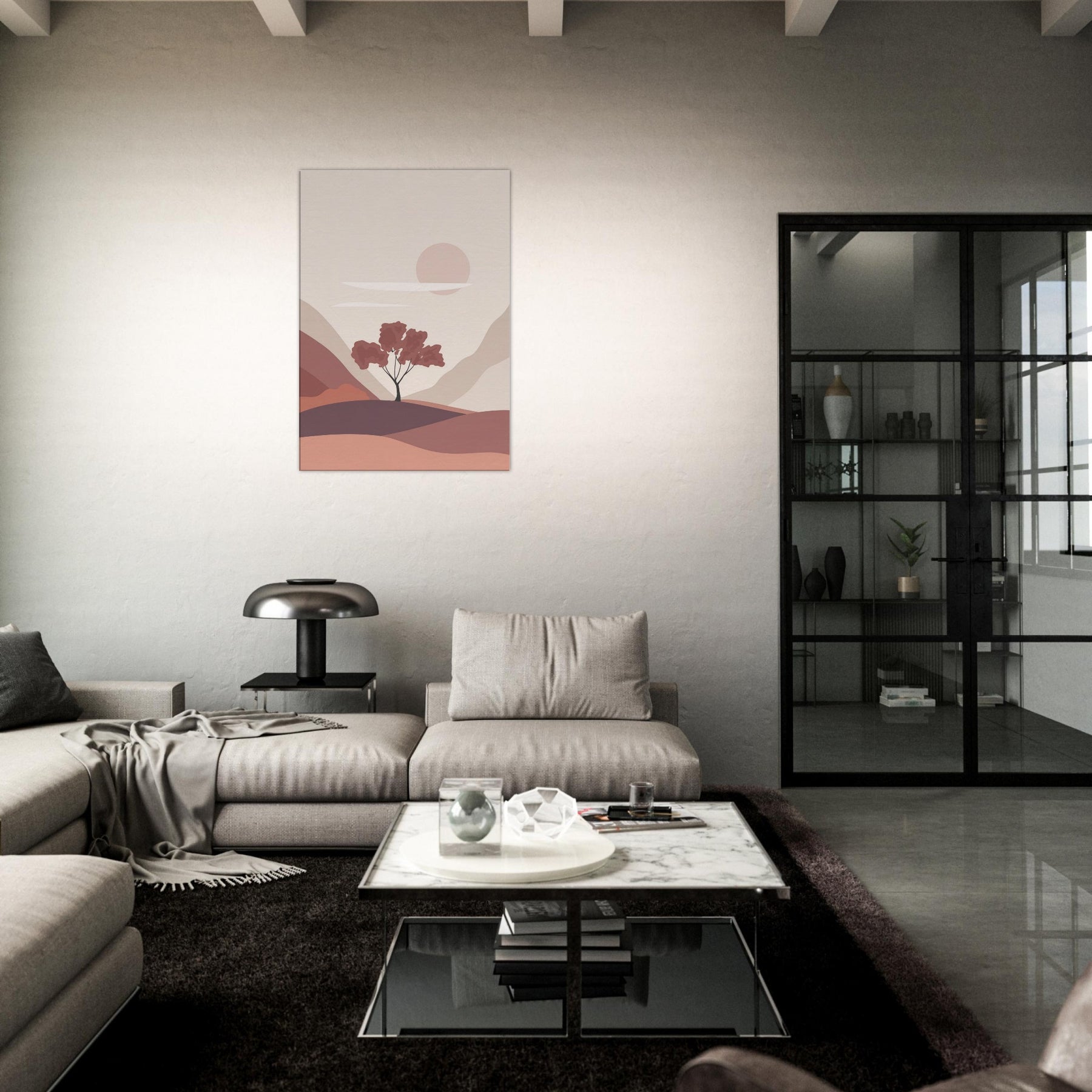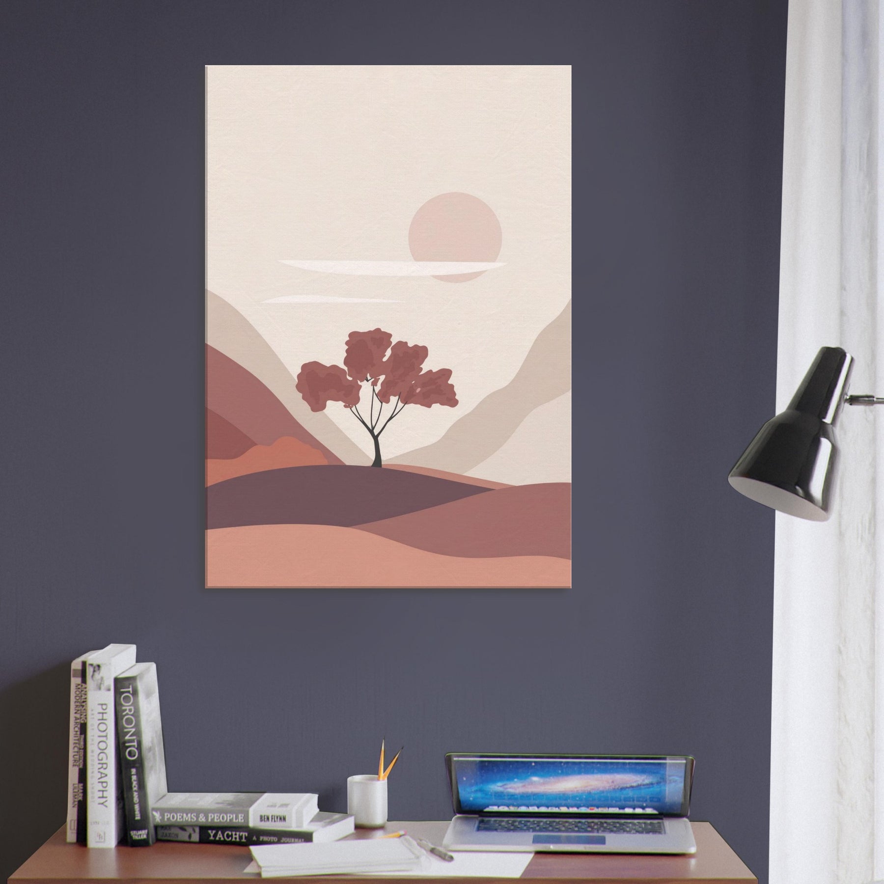 Amid soft dunes and a solitary tree, this minimalist scene captures the quiet drama of a Tropical Island at dusk. The gentle palette of pinks, blushes, and warm sands invites a calm, airy atmosphere into any room like a whispered vacation you can live with. The composition breathes through subtle negative space, letting light and texture carry the mood rather than detail. A serene focal point that elevates living spaces with understated elegance, pairing effortlessly with neutral palettes or tropical inspired accents.