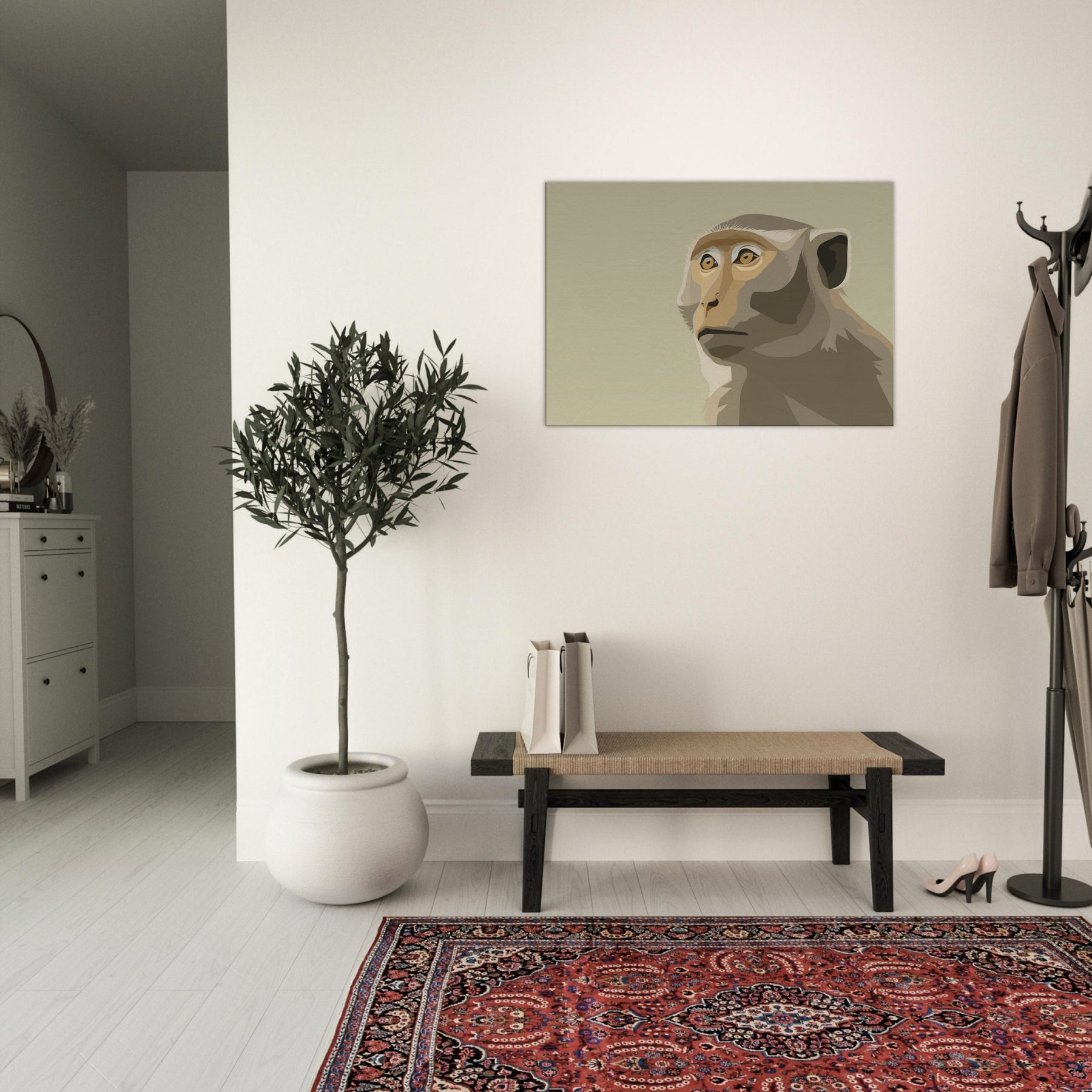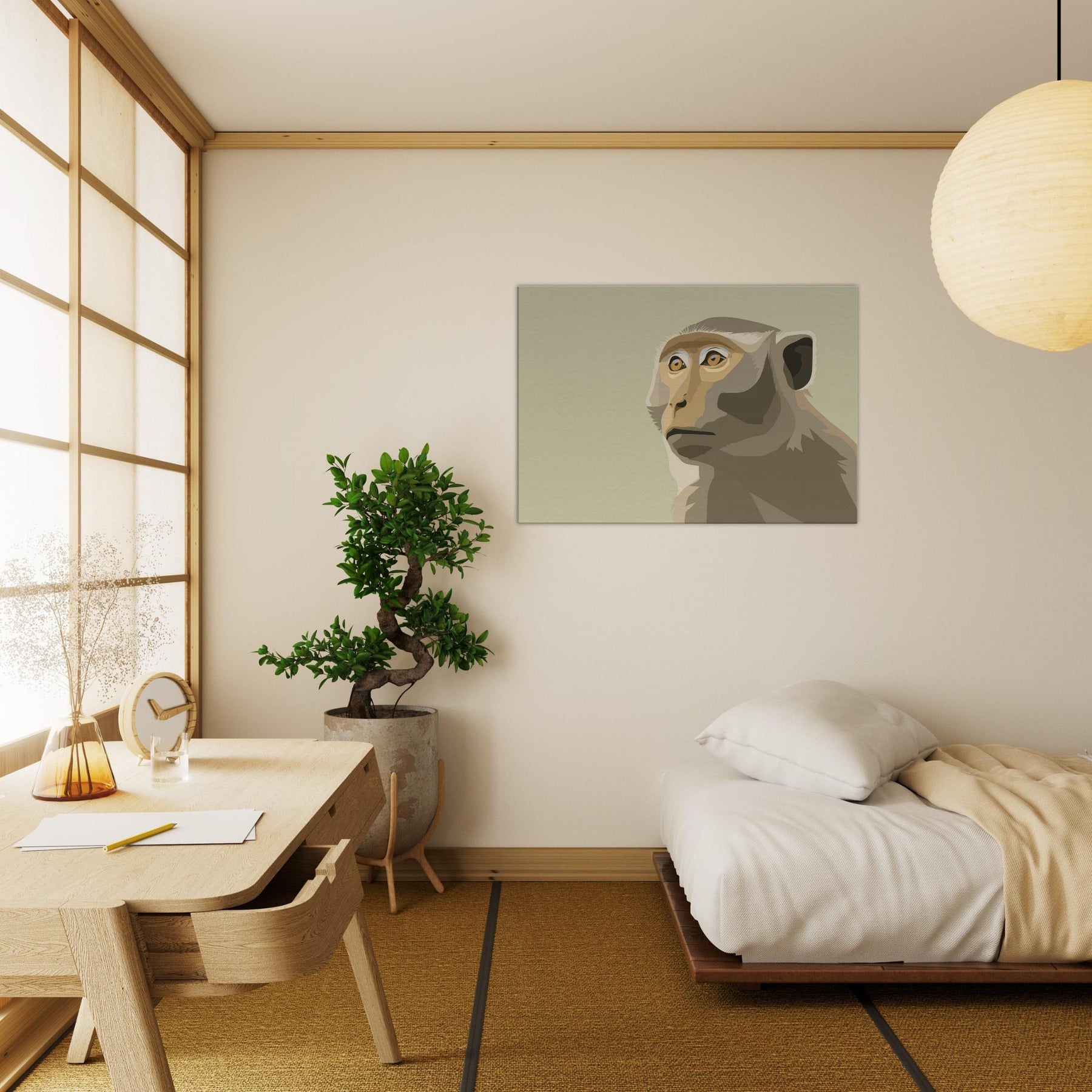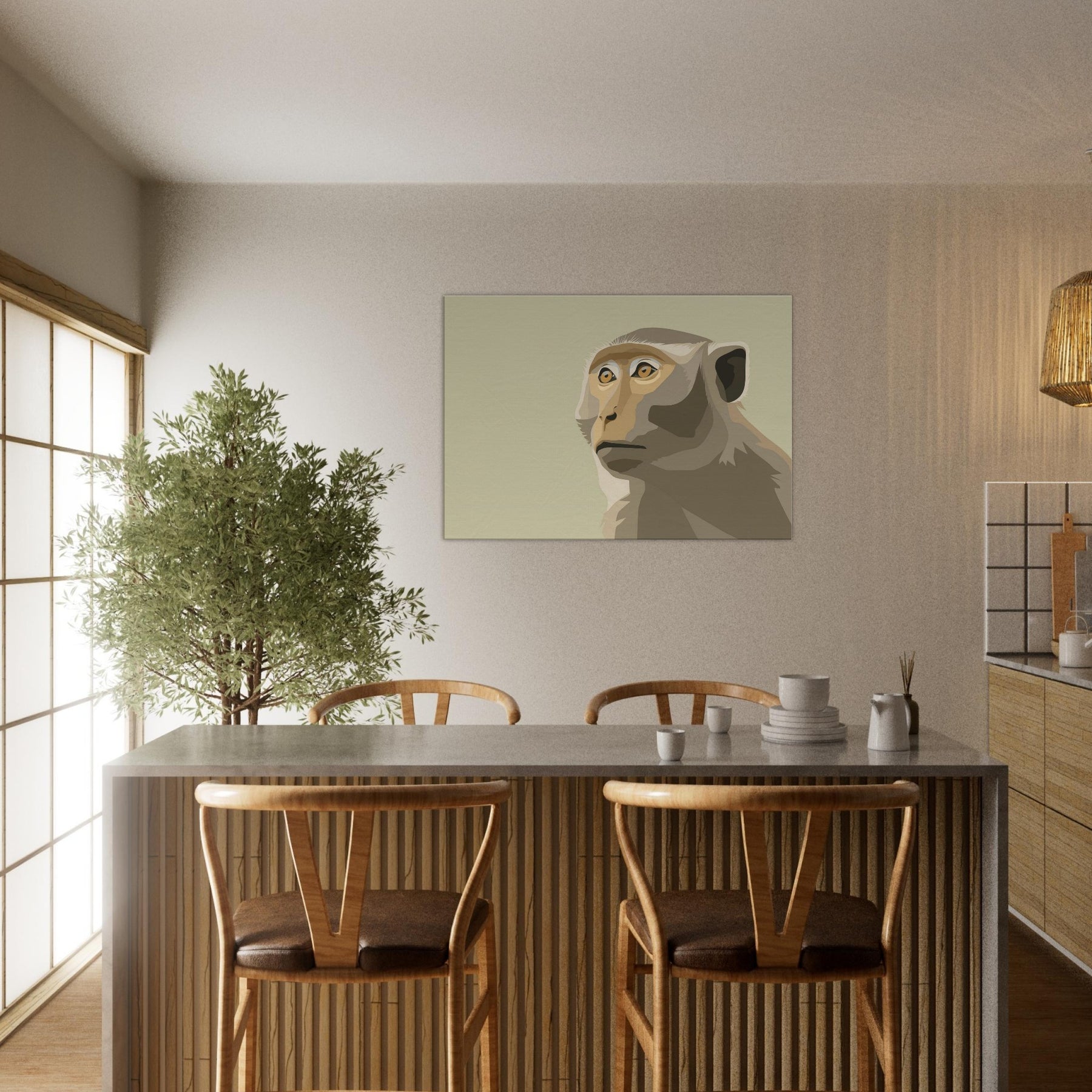 A calm, amber eyed Monkey gazes outward in a composition of soft, overlapping planes. The restrained palette and clean lines invite stillness, turning a wall into a quiet moment of reflection. This piece exudes warmth without clutter, pairing well with neutral furnishings and natural textures. Hang it where you want a sentinel of presence a reminder to breathe, observe, and slow down. The Monkey becomes a gentle focal point, elevating living spaces with subtle humor, grace, and a sense of quiet wonder.