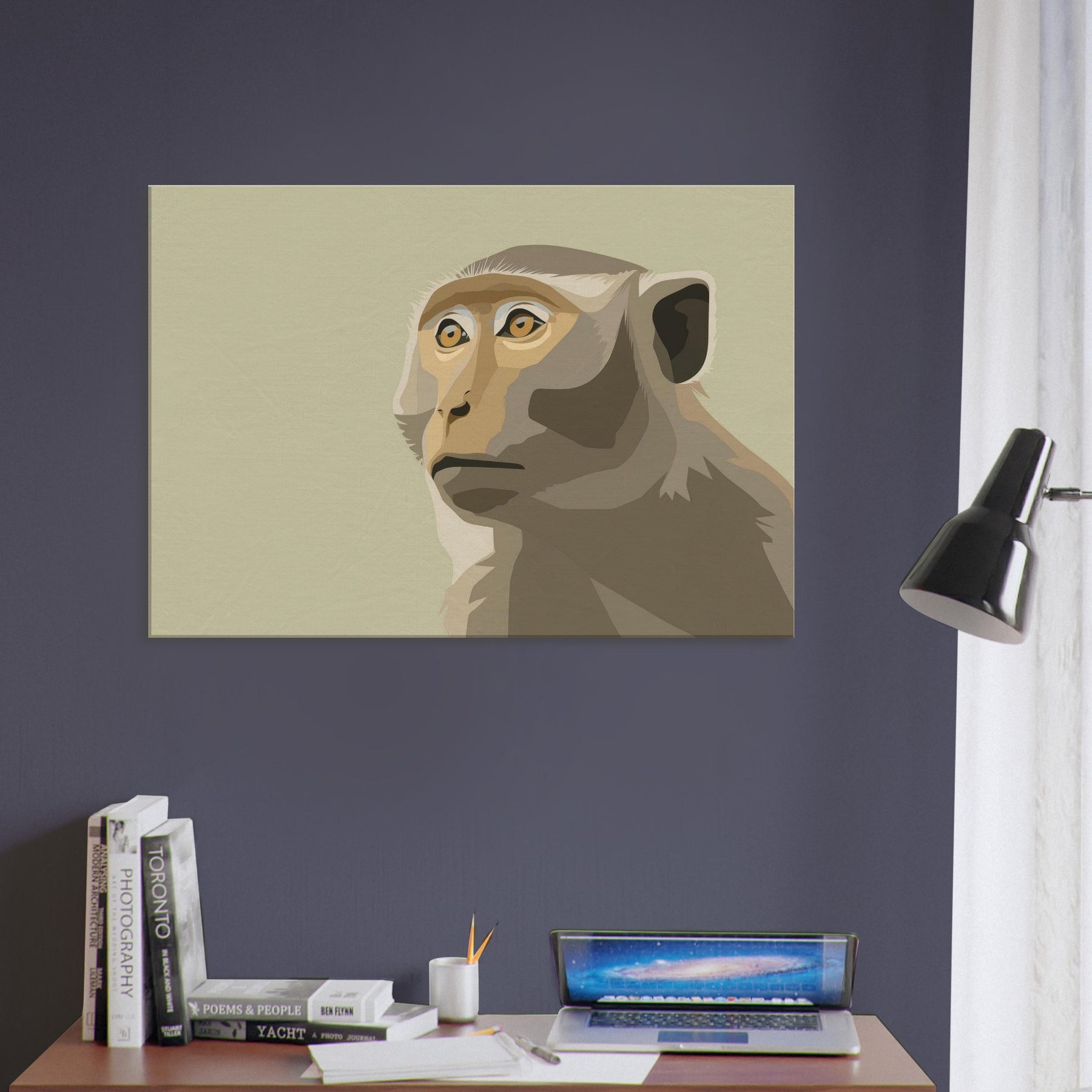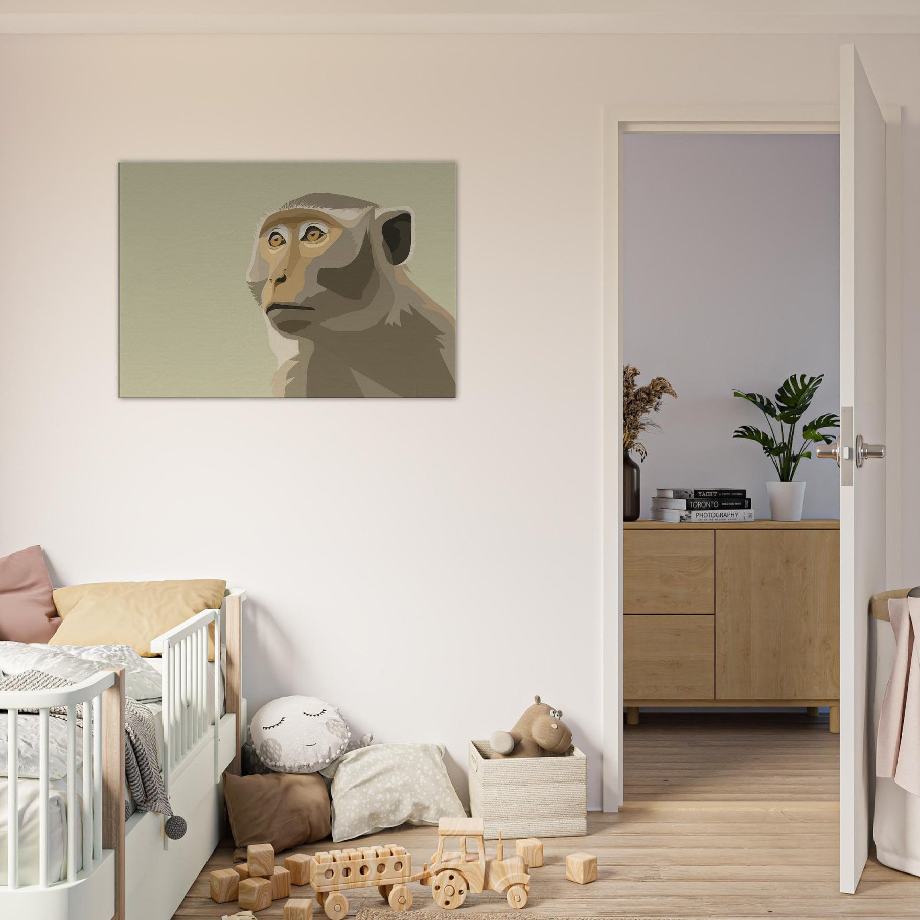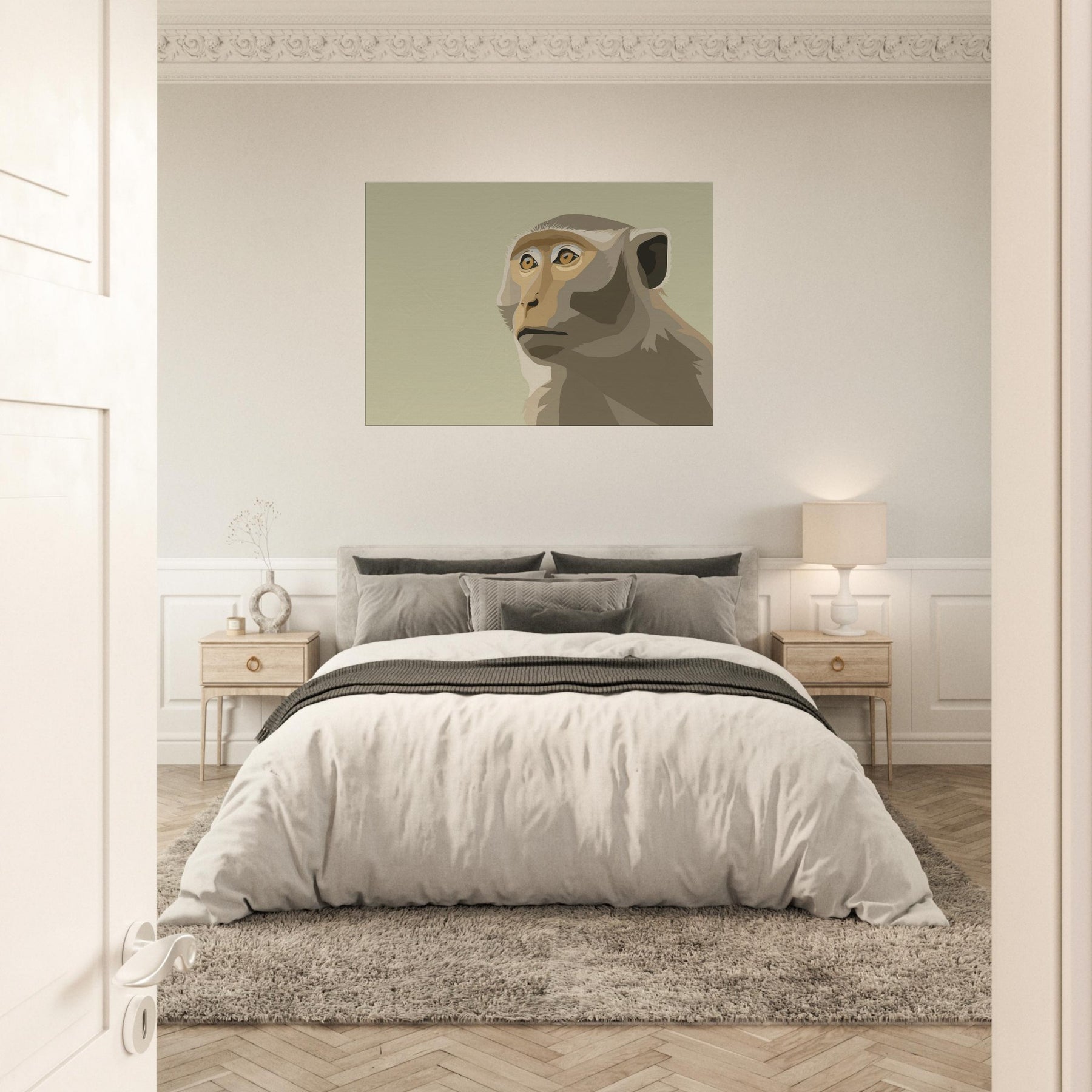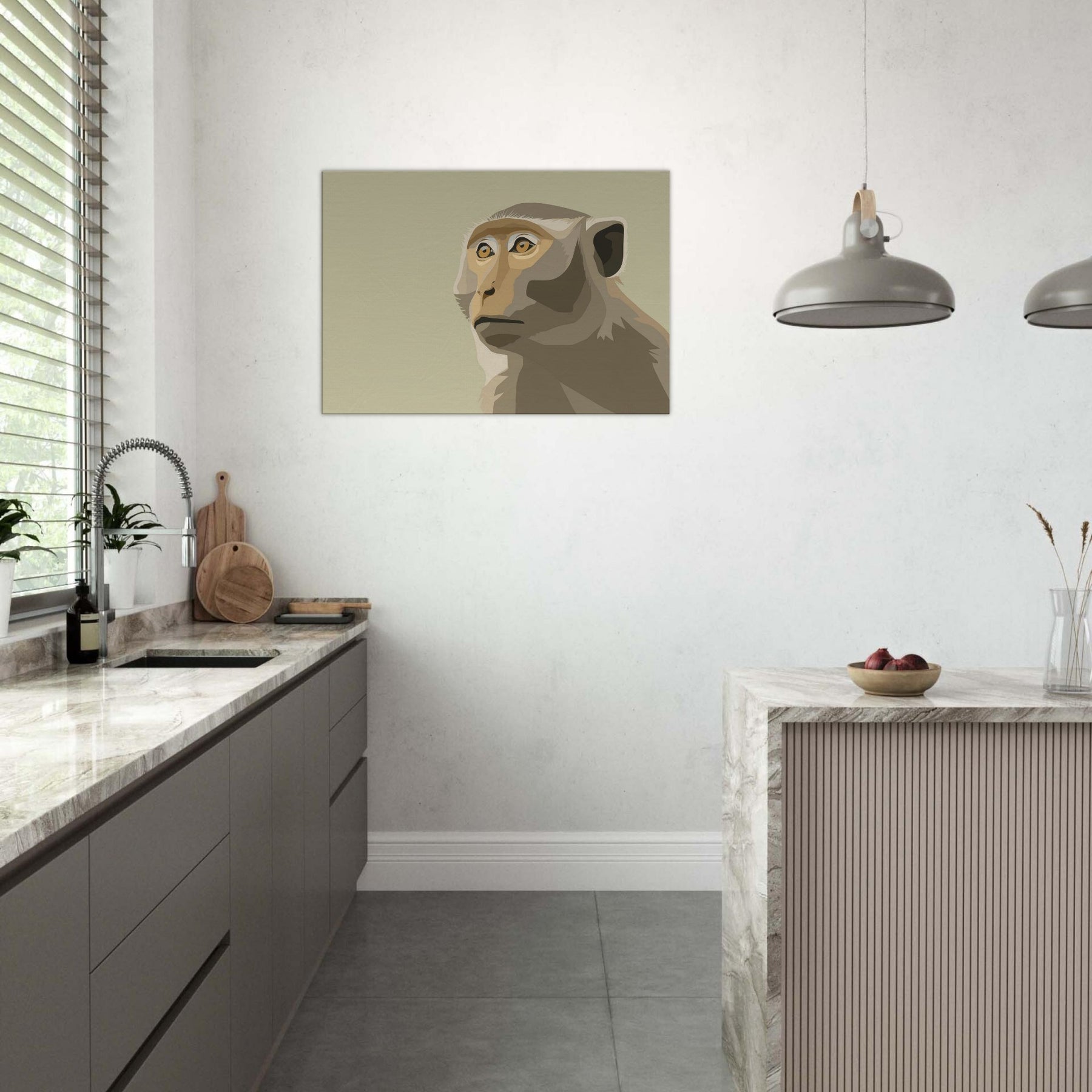 A calm, amber eyed Monkey gazes outward in a composition of soft, overlapping planes. The restrained palette and clean lines invite stillness, turning a wall into a quiet moment of reflection. This piece exudes warmth without clutter, pairing well with neutral furnishings and natural textures. Hang it where you want a sentinel of presence a reminder to breathe, observe, and slow down. The Monkey becomes a gentle focal point, elevating living spaces with subtle humor, grace, and a sense of quiet wonder.