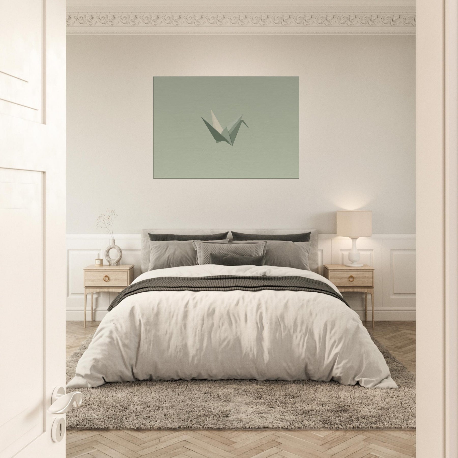 Step into a quiet room where light drifts across an Origami Crane, folded with intention and airy precision. This minimalist composition pours a restrained palette of sage and muted greens, inviting stillness and slow breaths. Each angular fold hints at a memory of flight, turning space into a gentle sanctuary. Hang it to soften edges, invite meditative calm, and let the room breathe as conversations pause and the day's bustle quiets into sculptural grace.