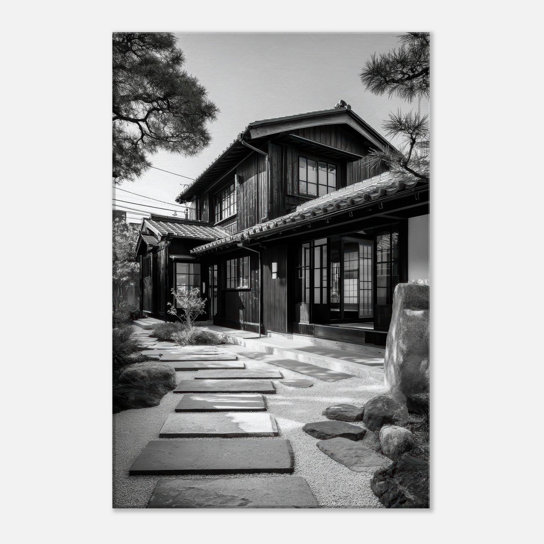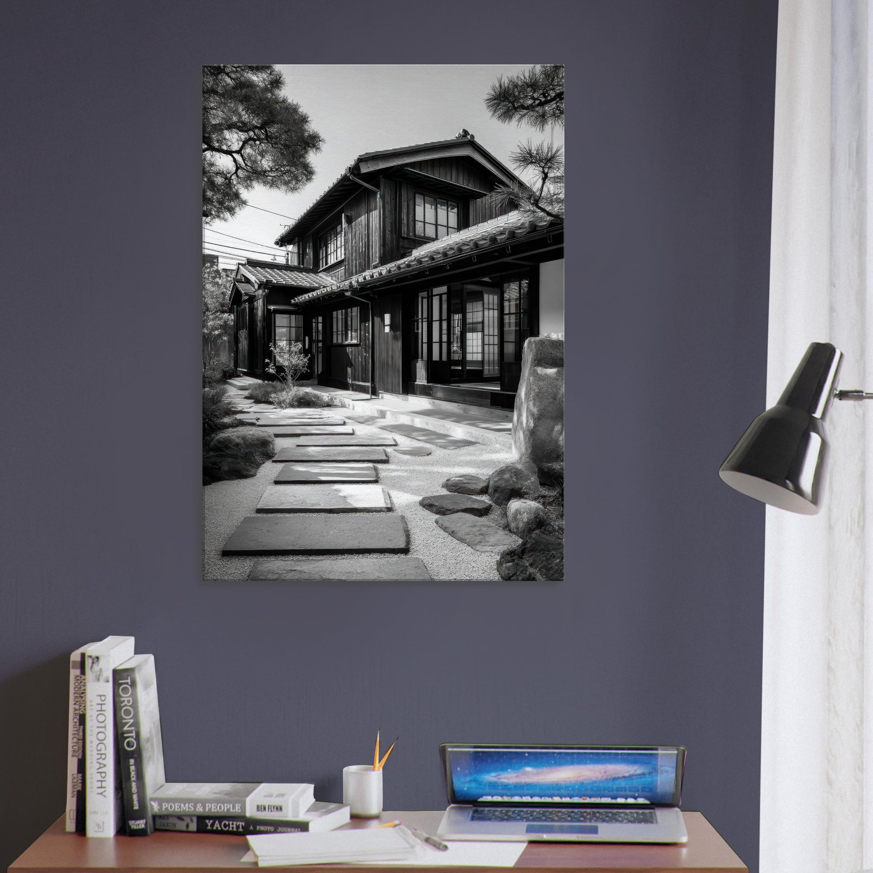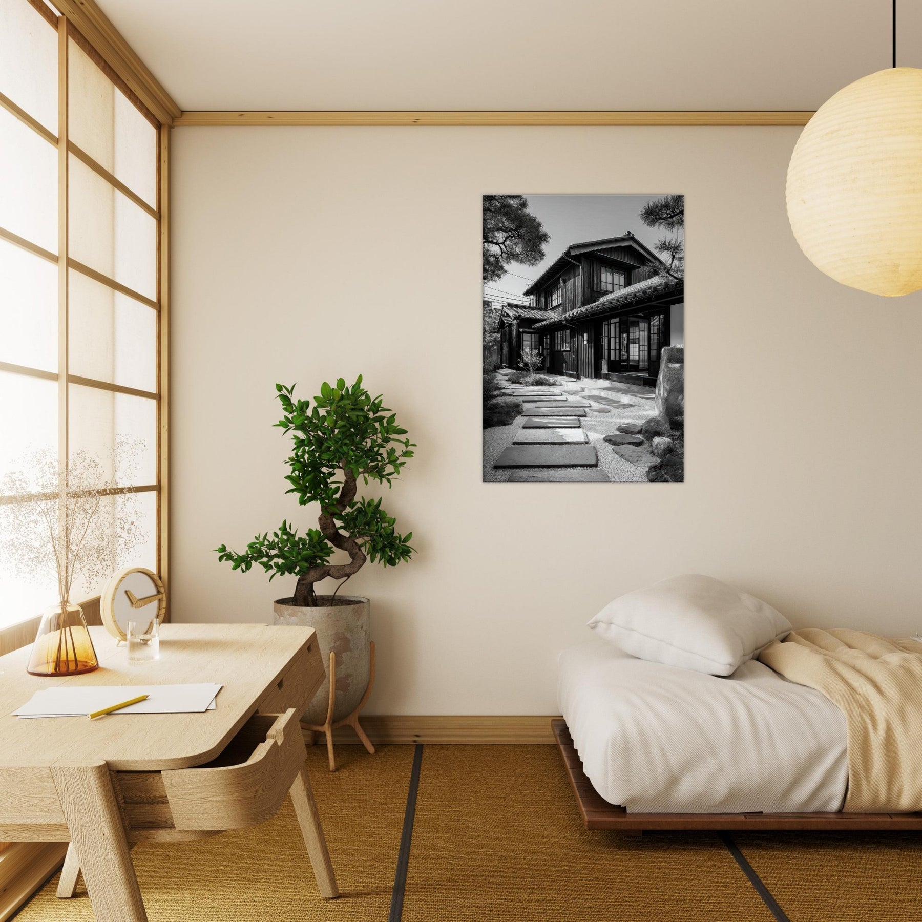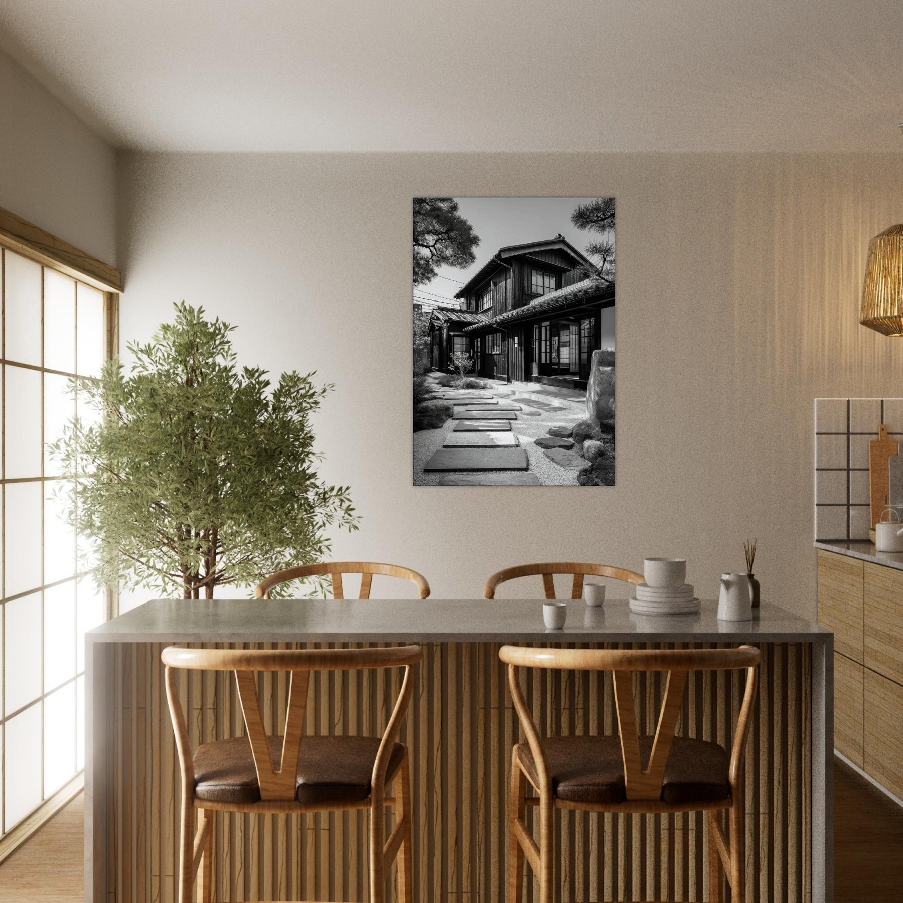 Immerse yourself in the tranquil cadence of Japanese Houses rendered in black and white.