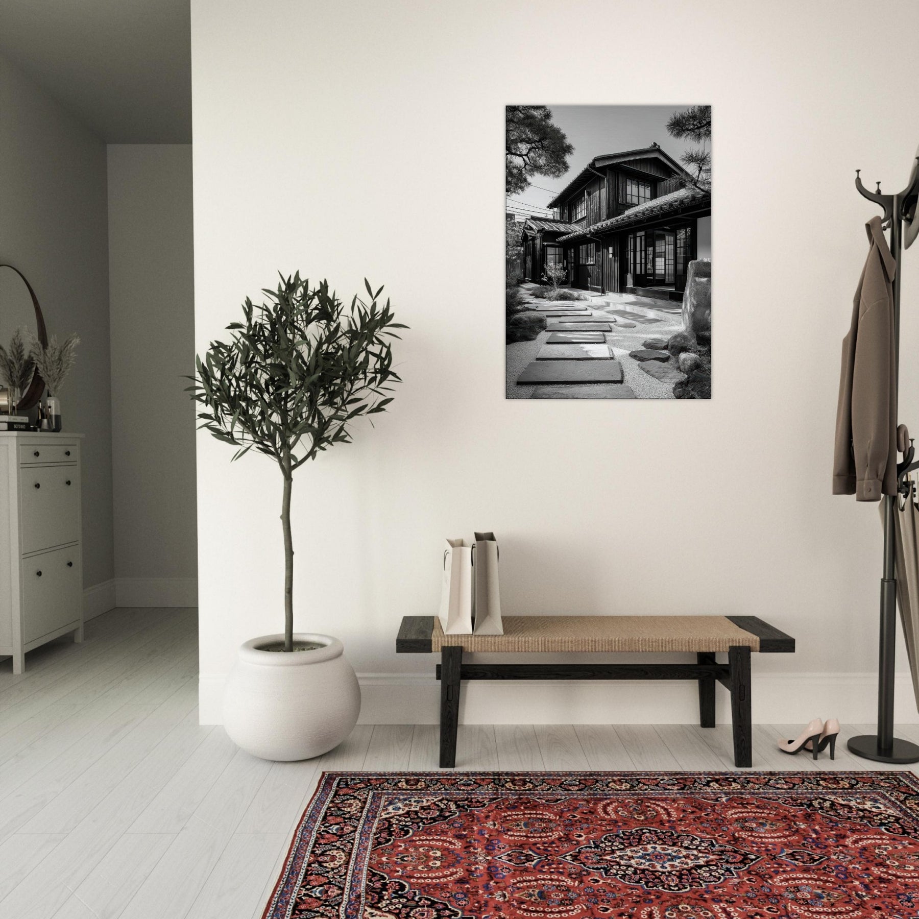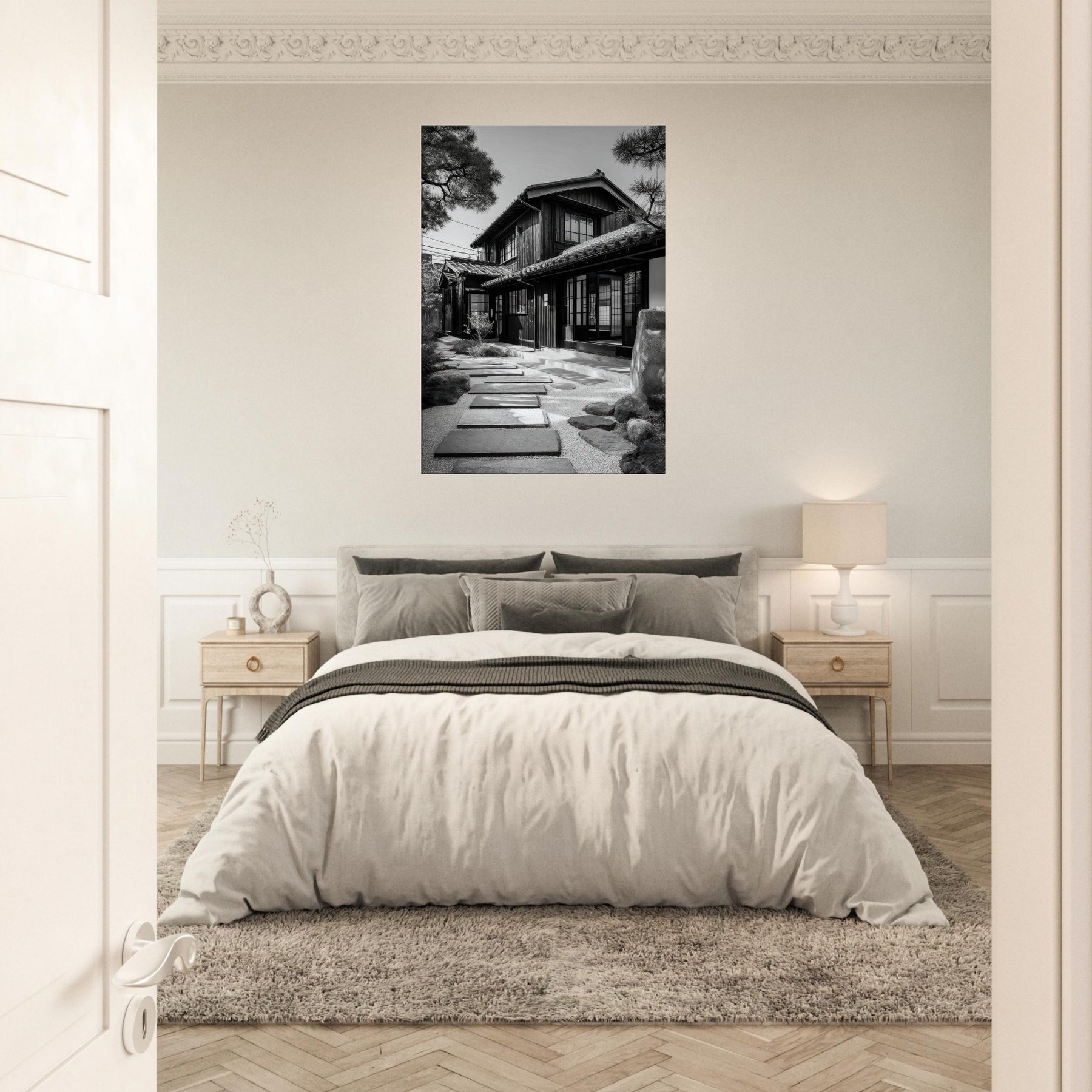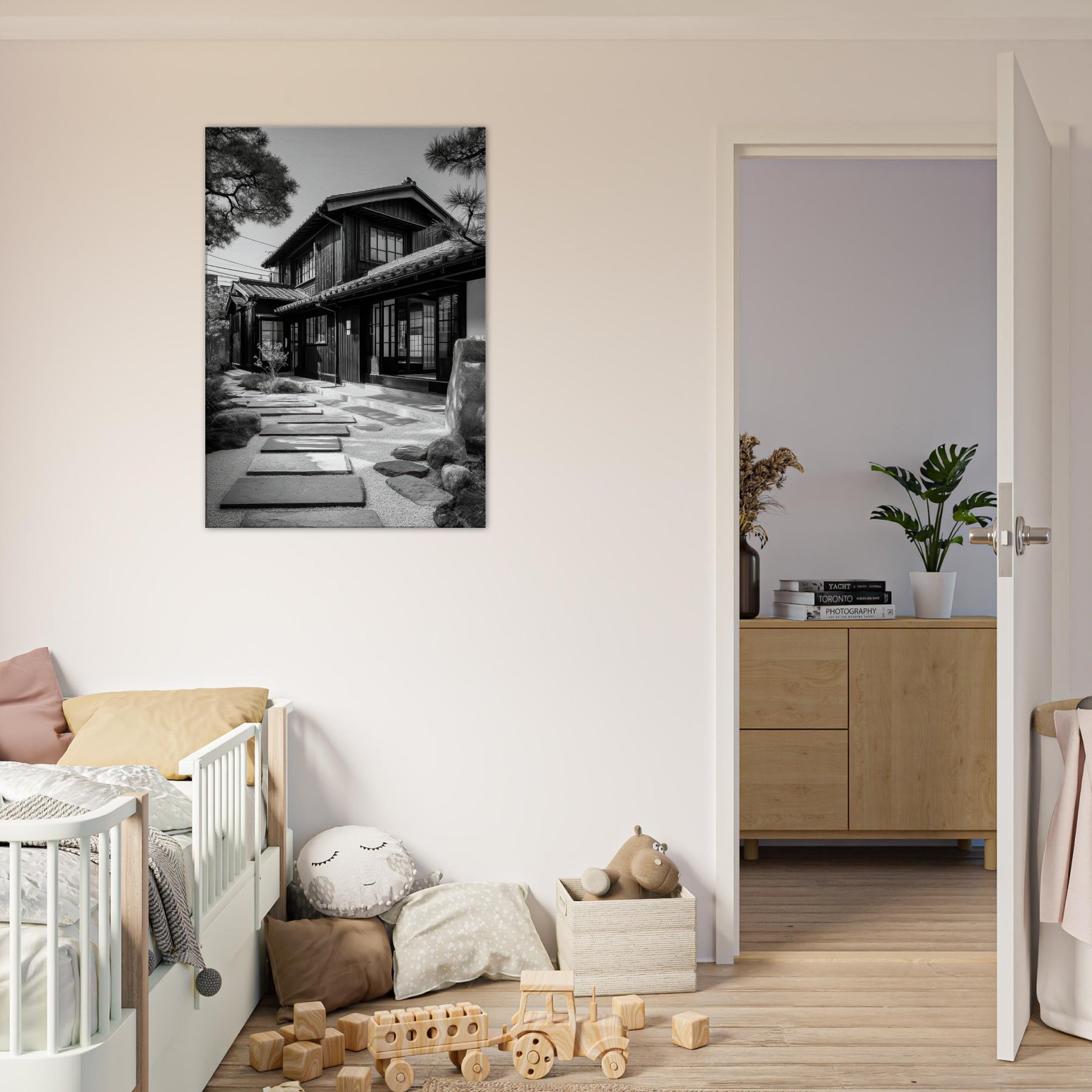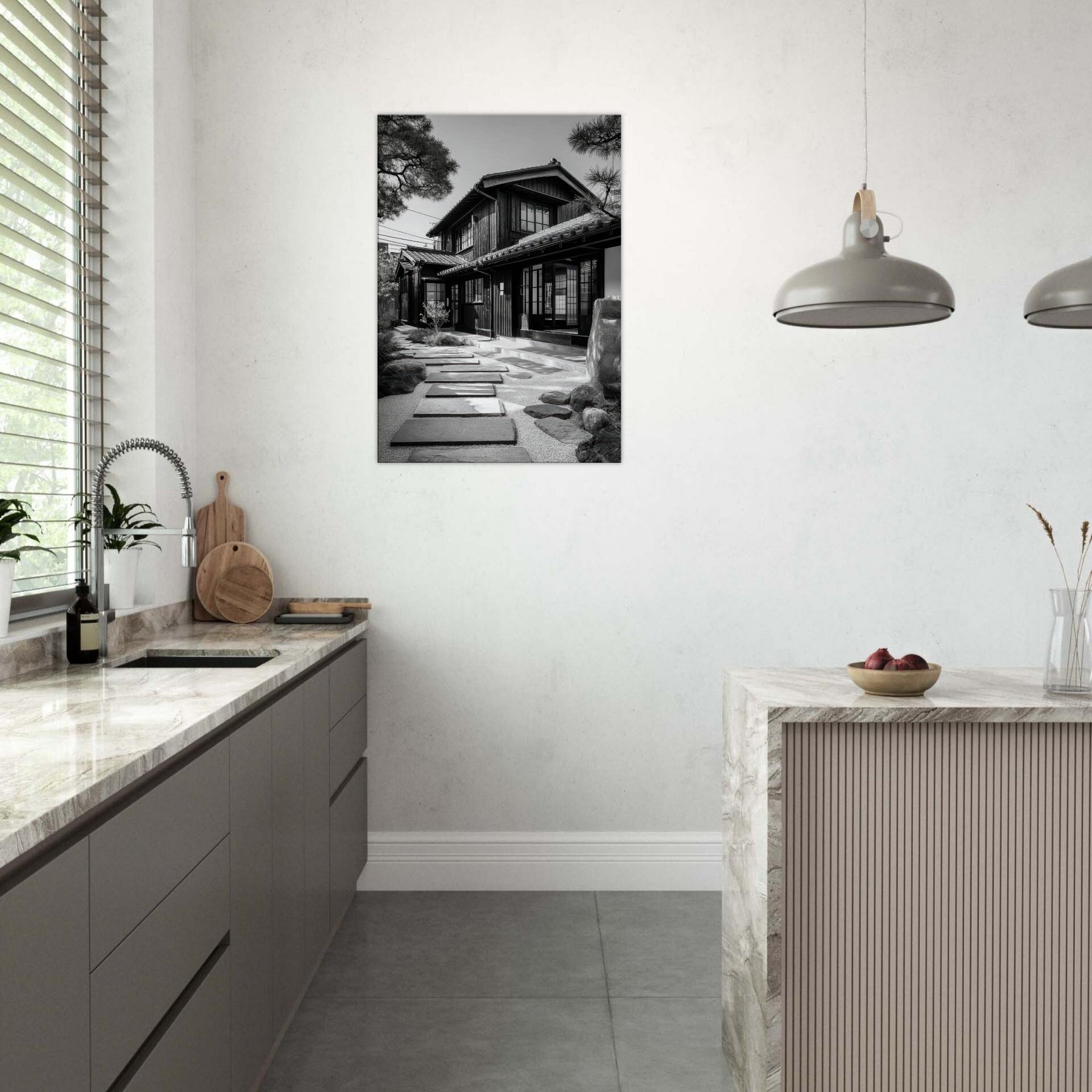 Immerse yourself in the tranquil cadence of Japanese Houses rendered in black and white.