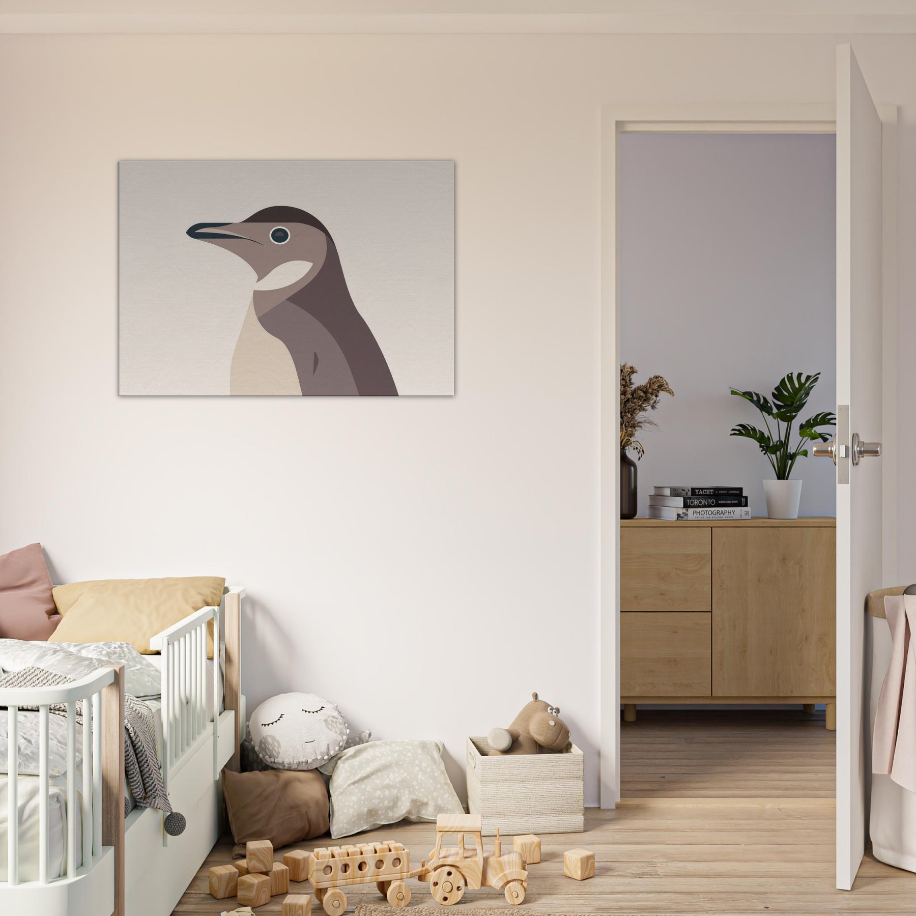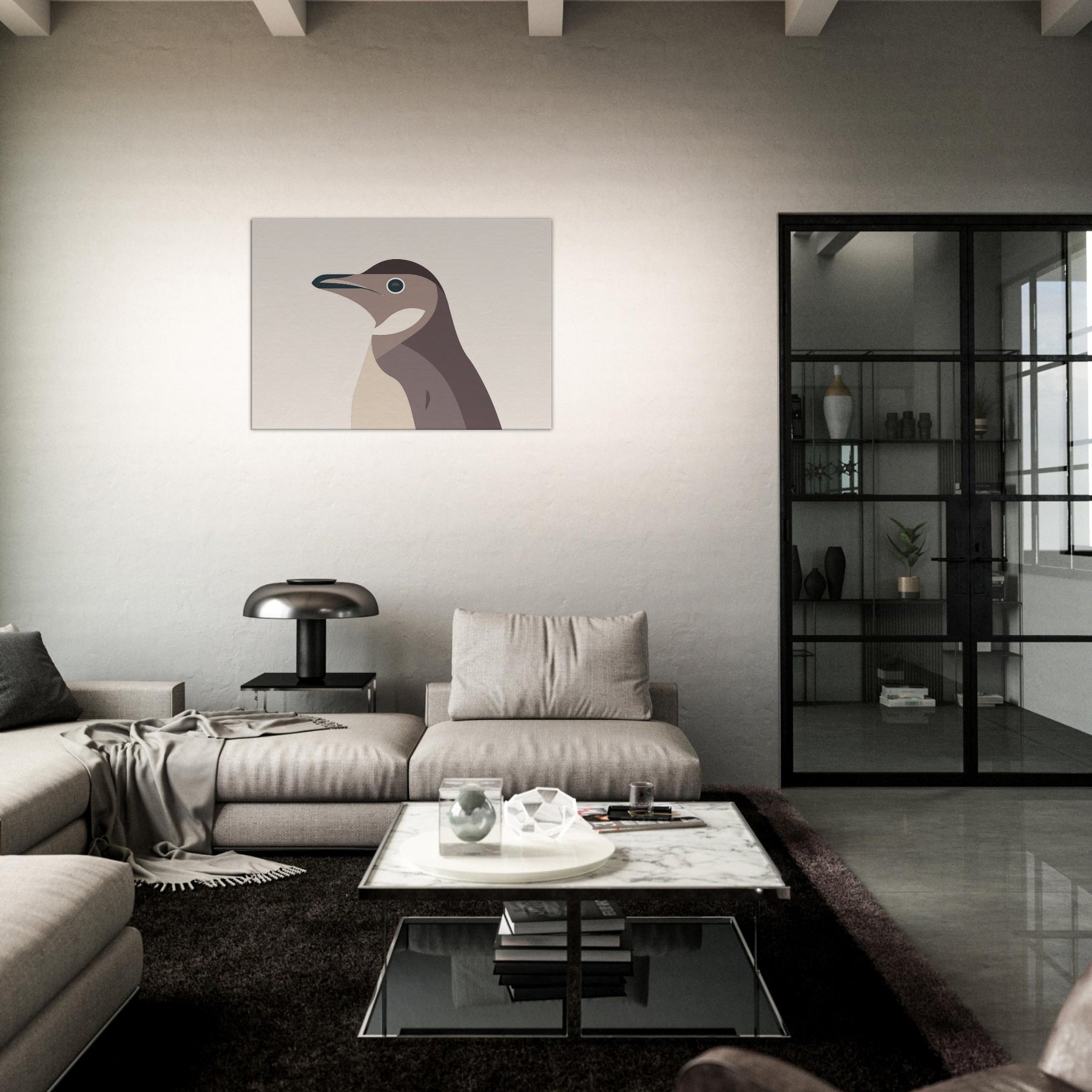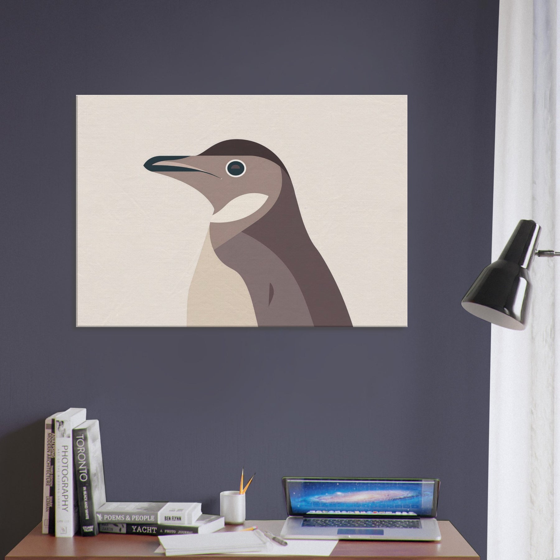 Like a breath of pale light, this minimalist Penguin folds complexity into clean, confident lines. The hush of warm beiges and dusky browns evokes a quiet, winter coast, where ink dark eye glints with curiosity. Its pared down form invites calm, making a room feel larger, more contemplative an airy focal point that pairs as gracefully with natural textures as with modern steel and glass. Hang it in a living room or bedroom to savor stillness after a busy day; the Penguin becomes a silent companion for slow, mindful moments.