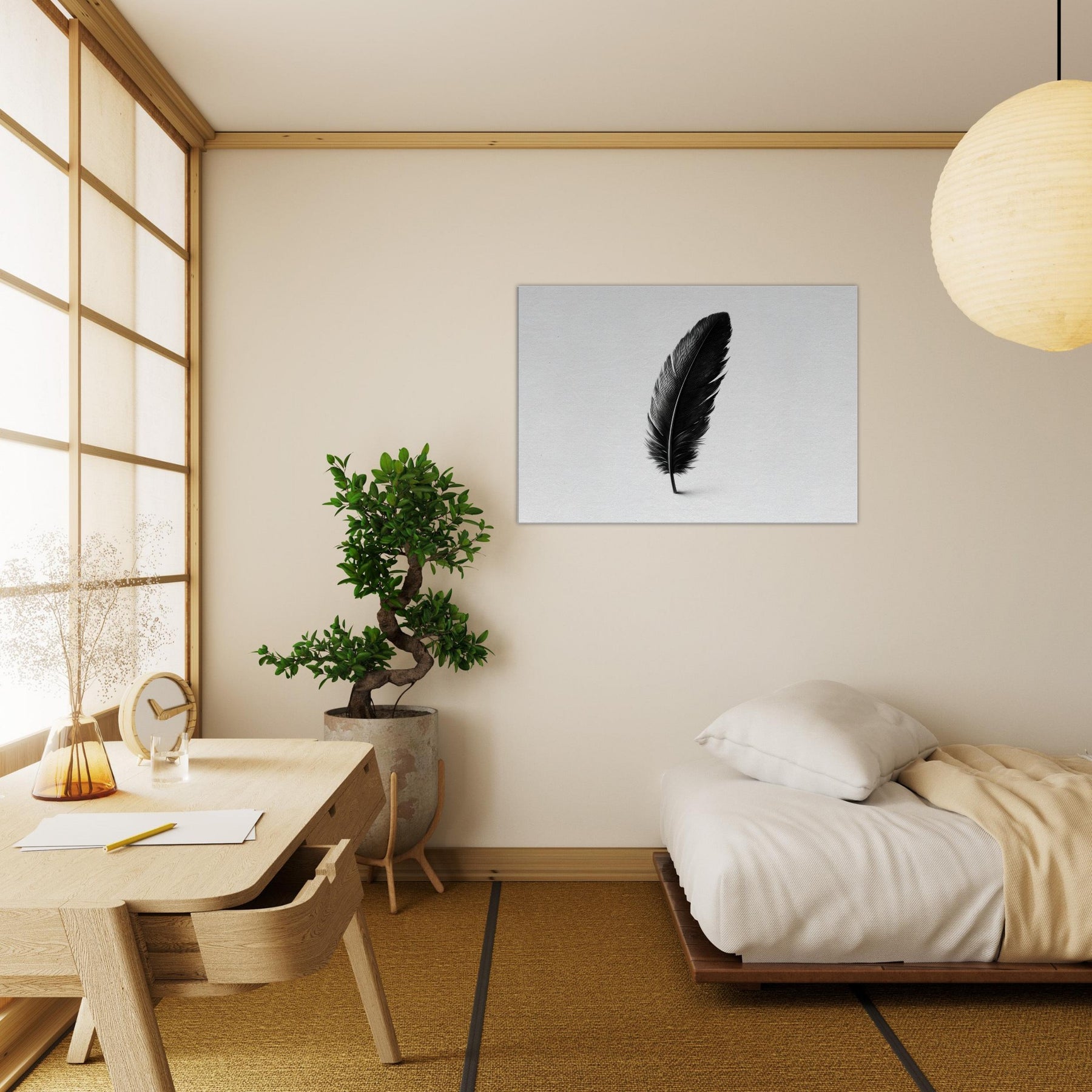 Emerging in a whisper of ink, this Feather Quill radiates quiet confidence in stark black and white. The fine lines bloom with movement, inviting contemplation and the soft rhythm of memory, as if a handwritten letter could take shape on your wall. Against calm walls, the feather's slender grace brings a refined, timeless aura perfect for a study, bedroom, or living space that values clarity and calm. Let the Feather Quill anchor your decor, pairing minimalist form with soulful storytelling.