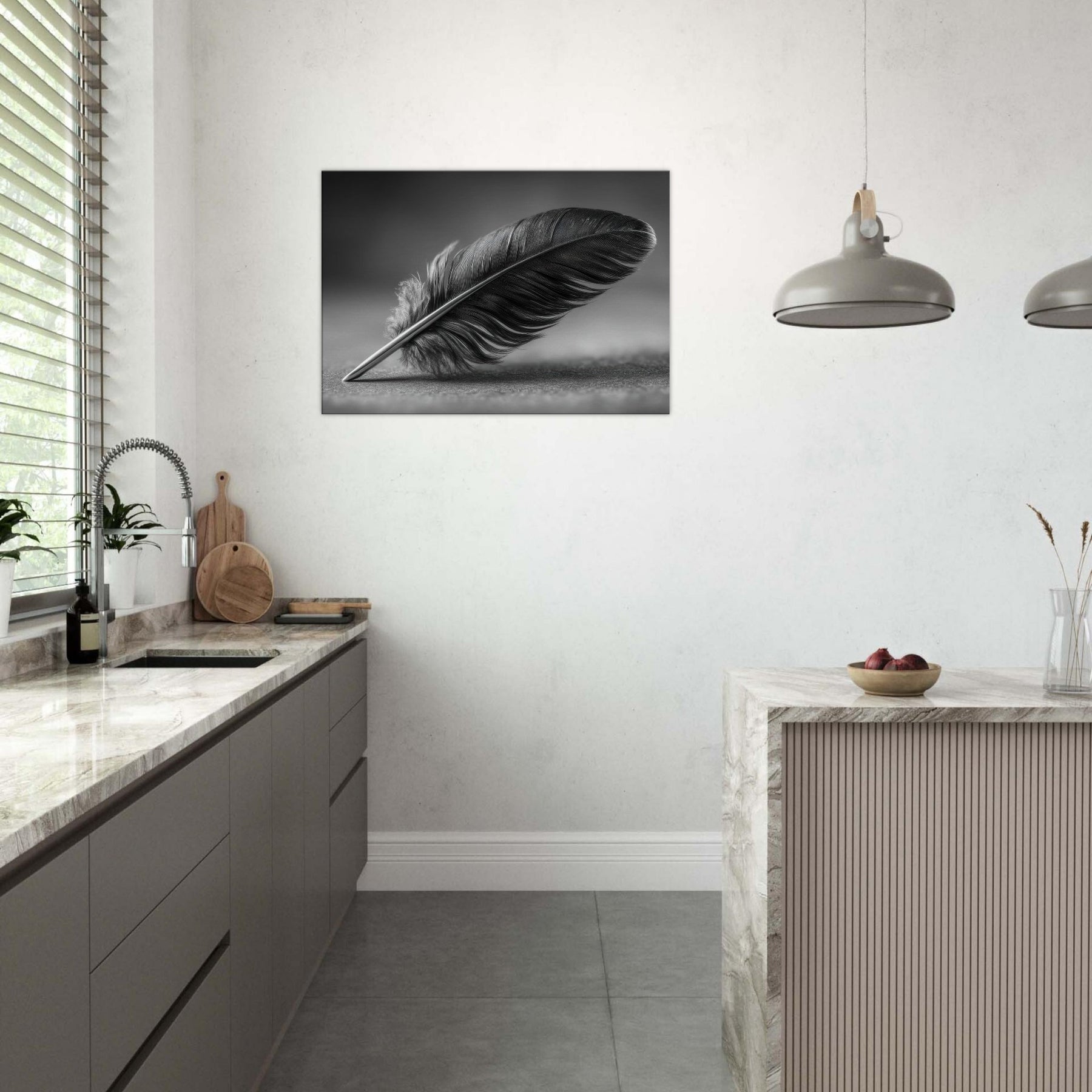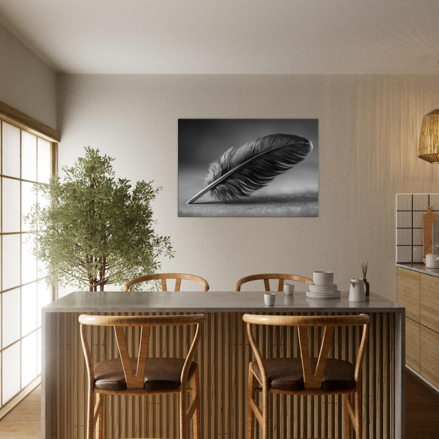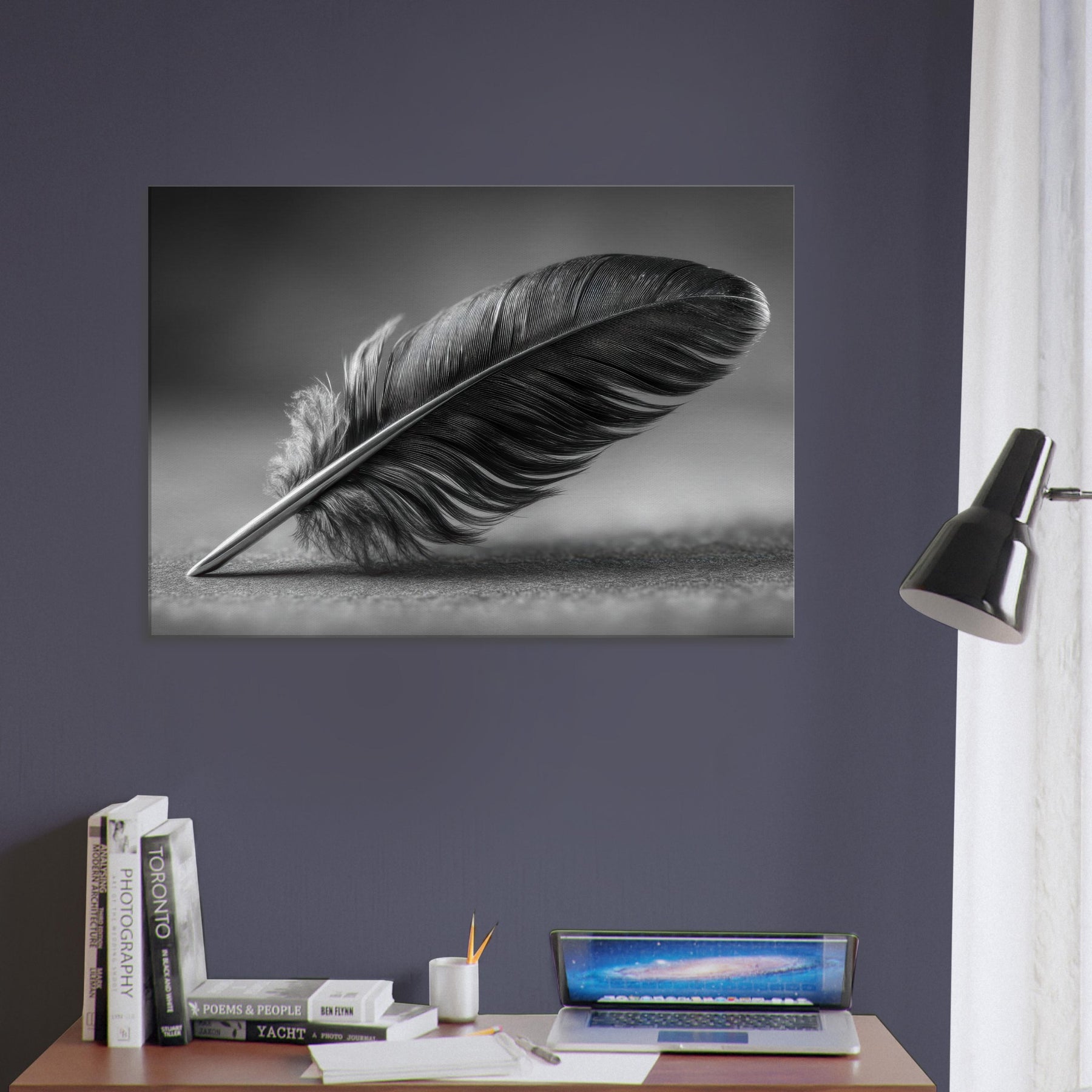 Feather Quill becomes a quiet emblem of focus and grace in this black and white study. The graceful arc of the feather suggests a moment of writing, a pause between thought and expression. The high contrast tones create a tactile, velvet like mood that anchors a living room or hallway with refined calm. It invites contemplation without shouting, pairing beautifully with muted textures and soft lighting. A timeless accent, this piece elevates everyday spaces into a gallery of everyday poetry.