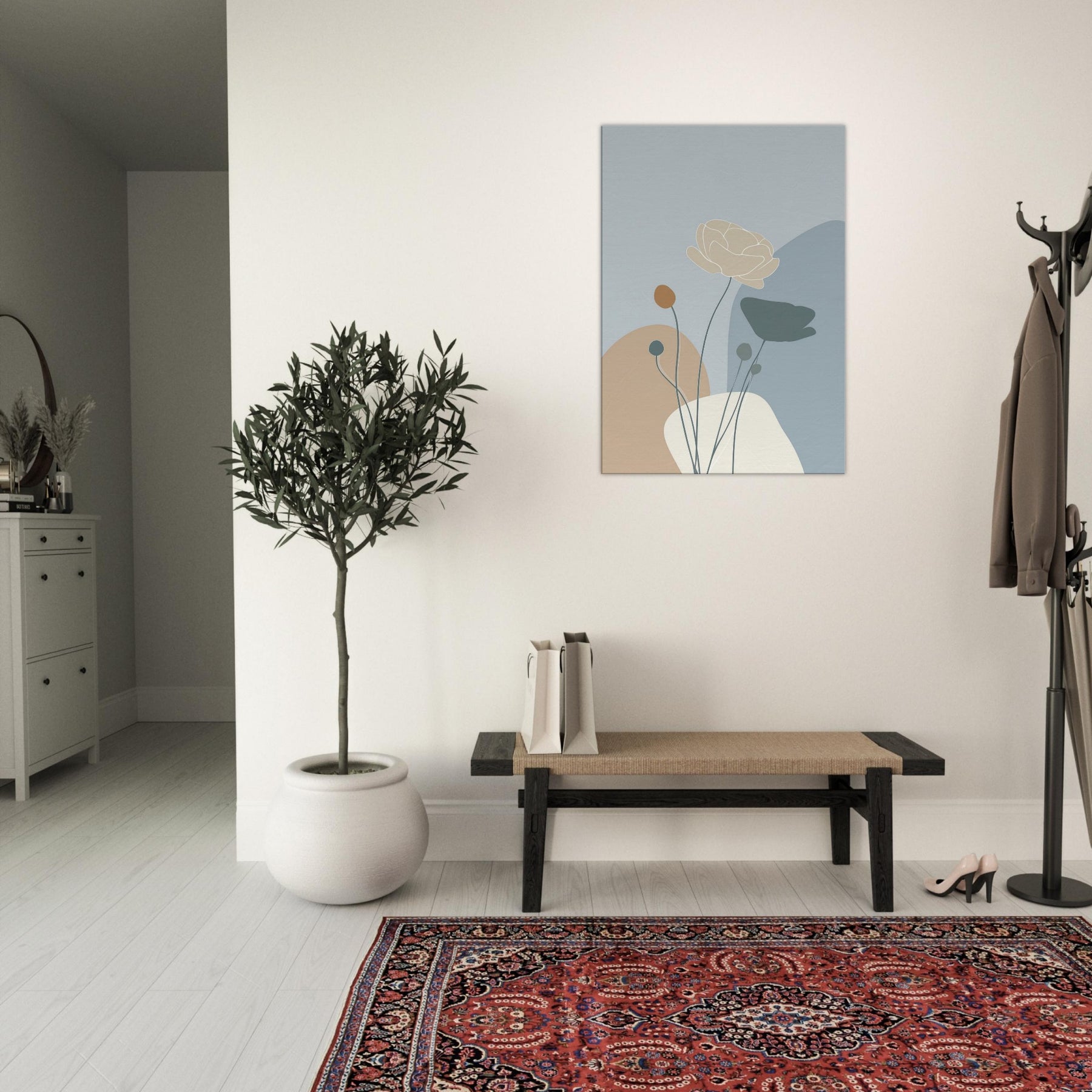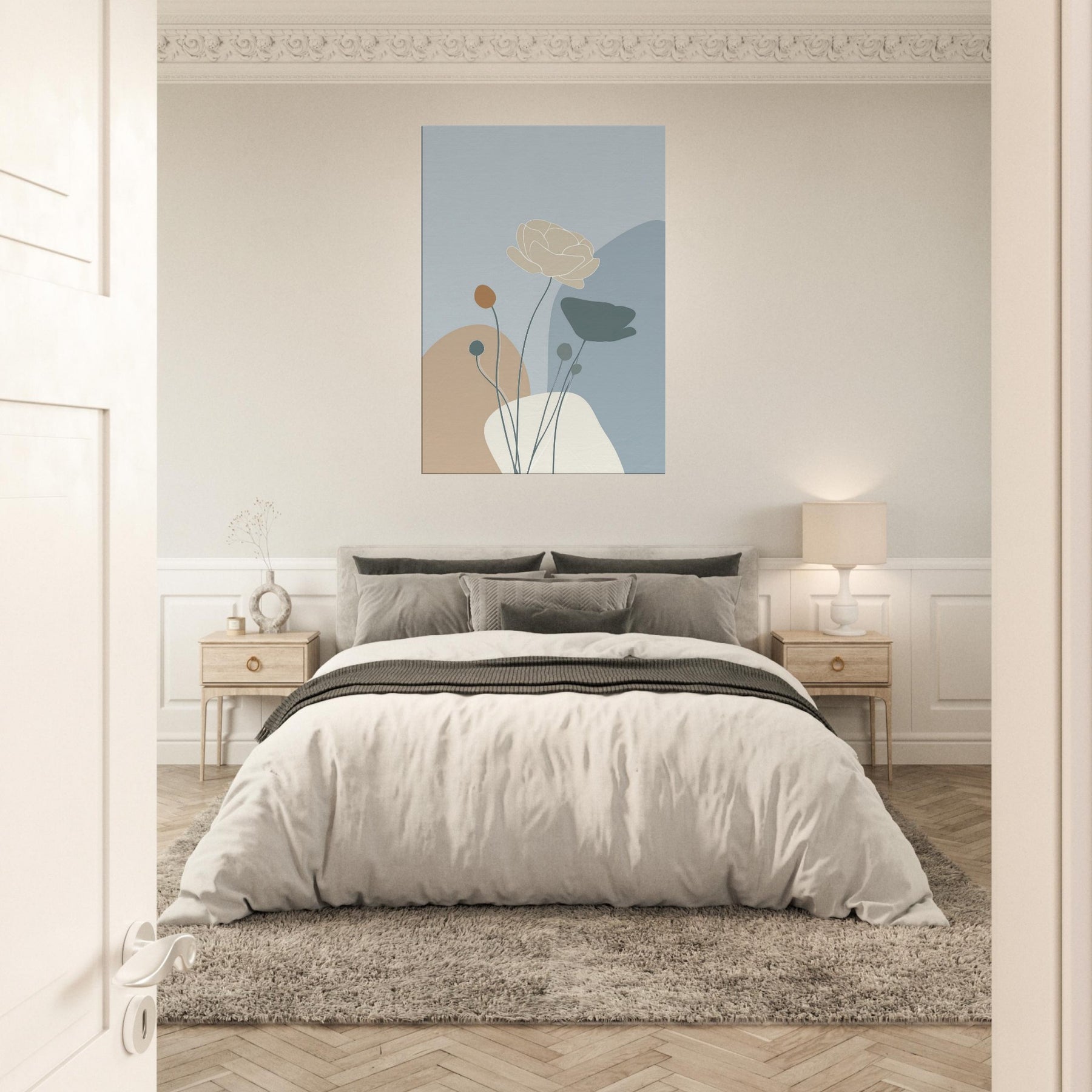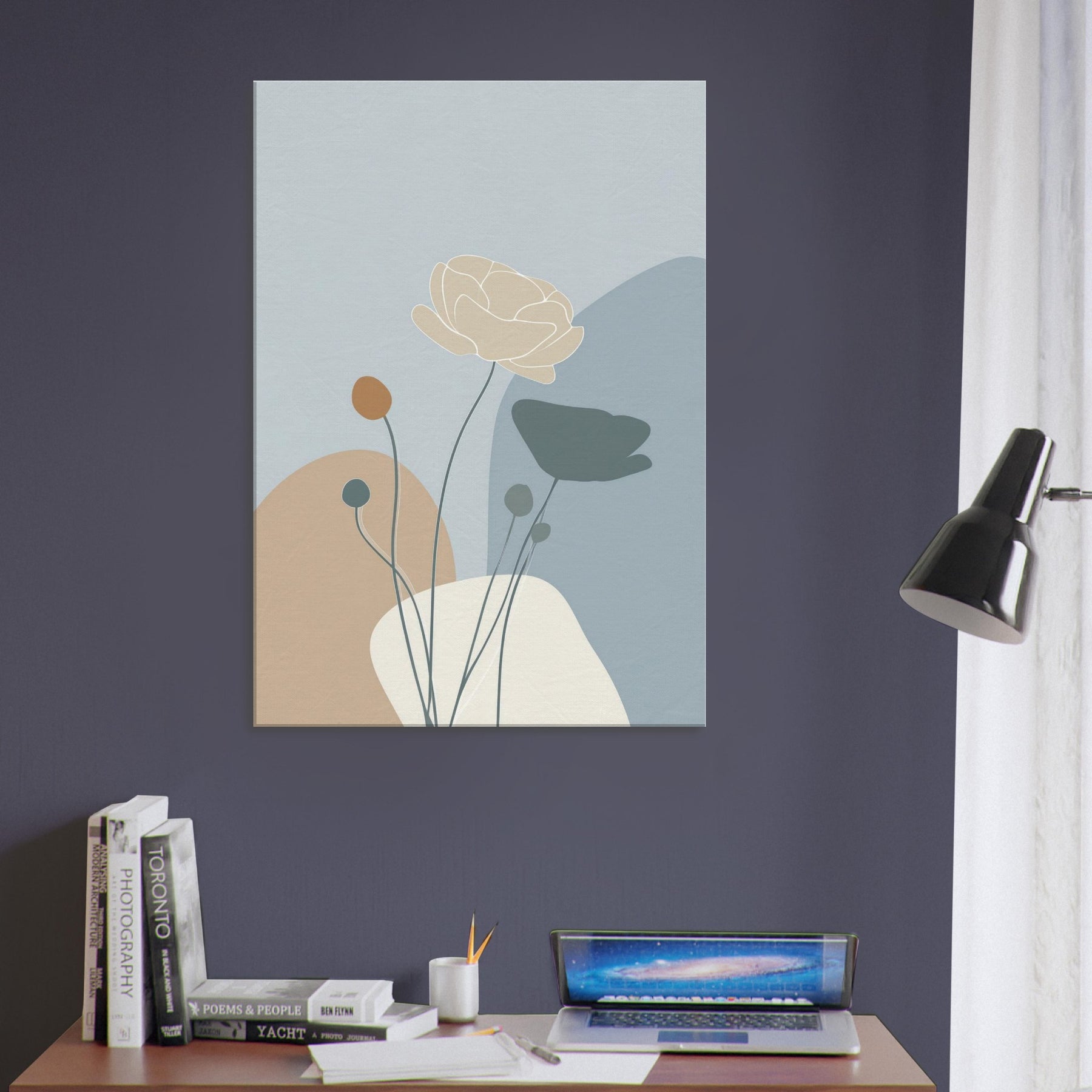 Immerse your space in the quiet elegance of Ranunculus rendered with clean lines and soft, overlapping shapes. This minimalist composition catches the light with gentle tonal shifts, like a dawn garden cradled in a shadowed corner. The figure of the flower rises against soothing neutrals, inviting calm and contemplation. Place it where you sip morning coffee or unwind after dusk, and let the air seem to slow, the room radiate quiet confidence, and the muse of nature whisper through your walls.
