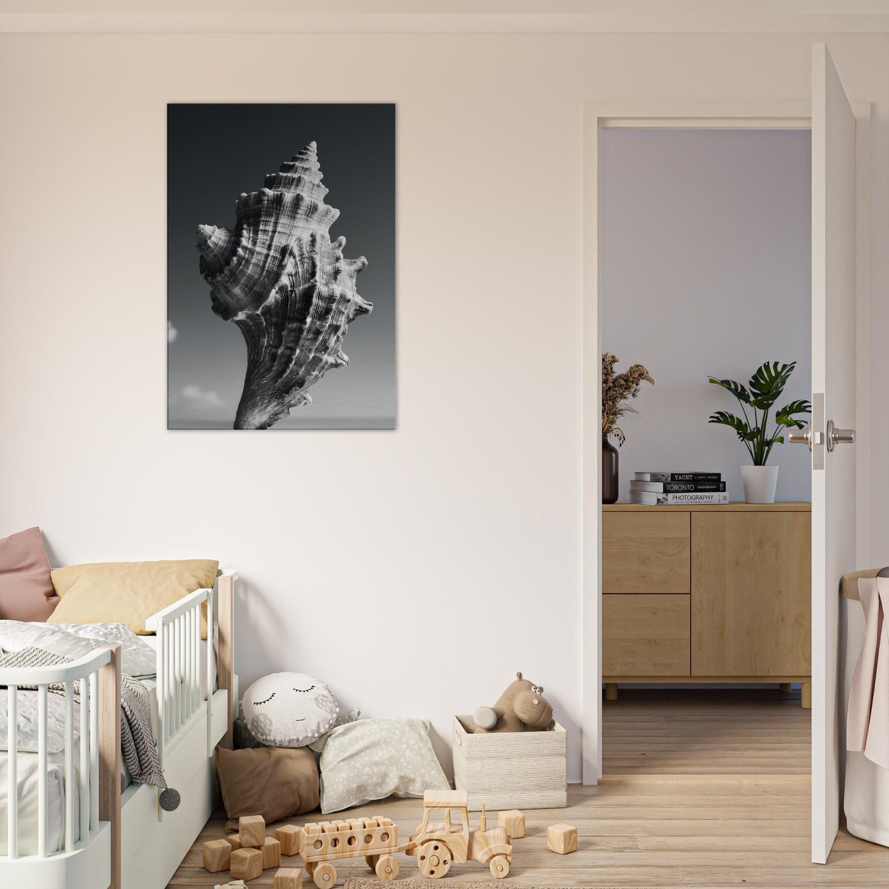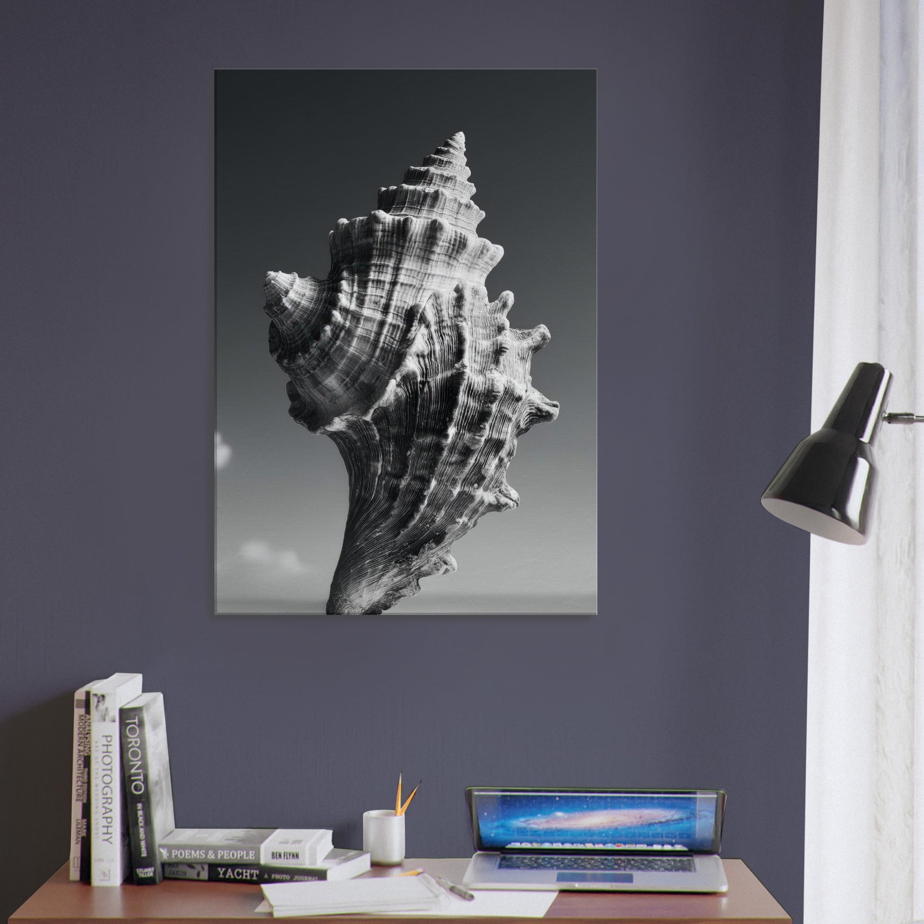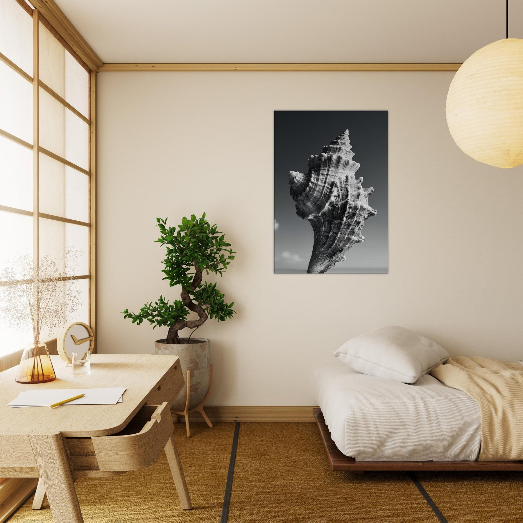 This Seashell, captured in stark black and white, becomes a study in patience and form. Its ribbed curves rise like a shoreline sculpture, catching light and shadow to reveal texture and depth. The Seashell invites quiet reflection, turning a corner of your living space into a memory of tides and salt air. Place it where natural illumination brushes its edges for subtle gradations, and let the room breathe with nature’s geometry, calm presence, and understated elegance.