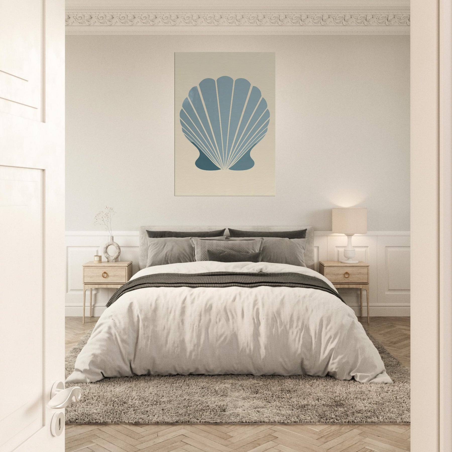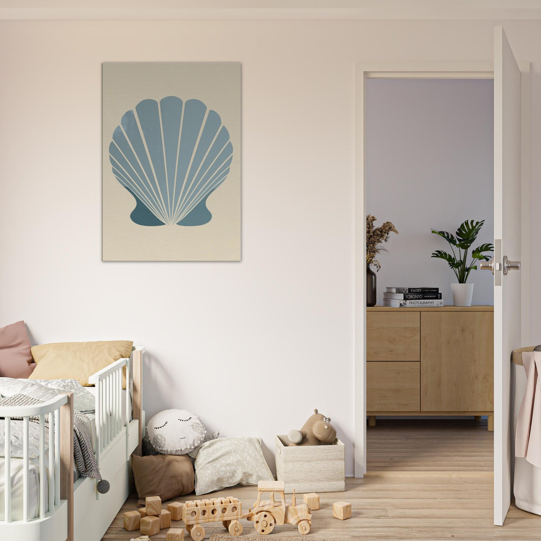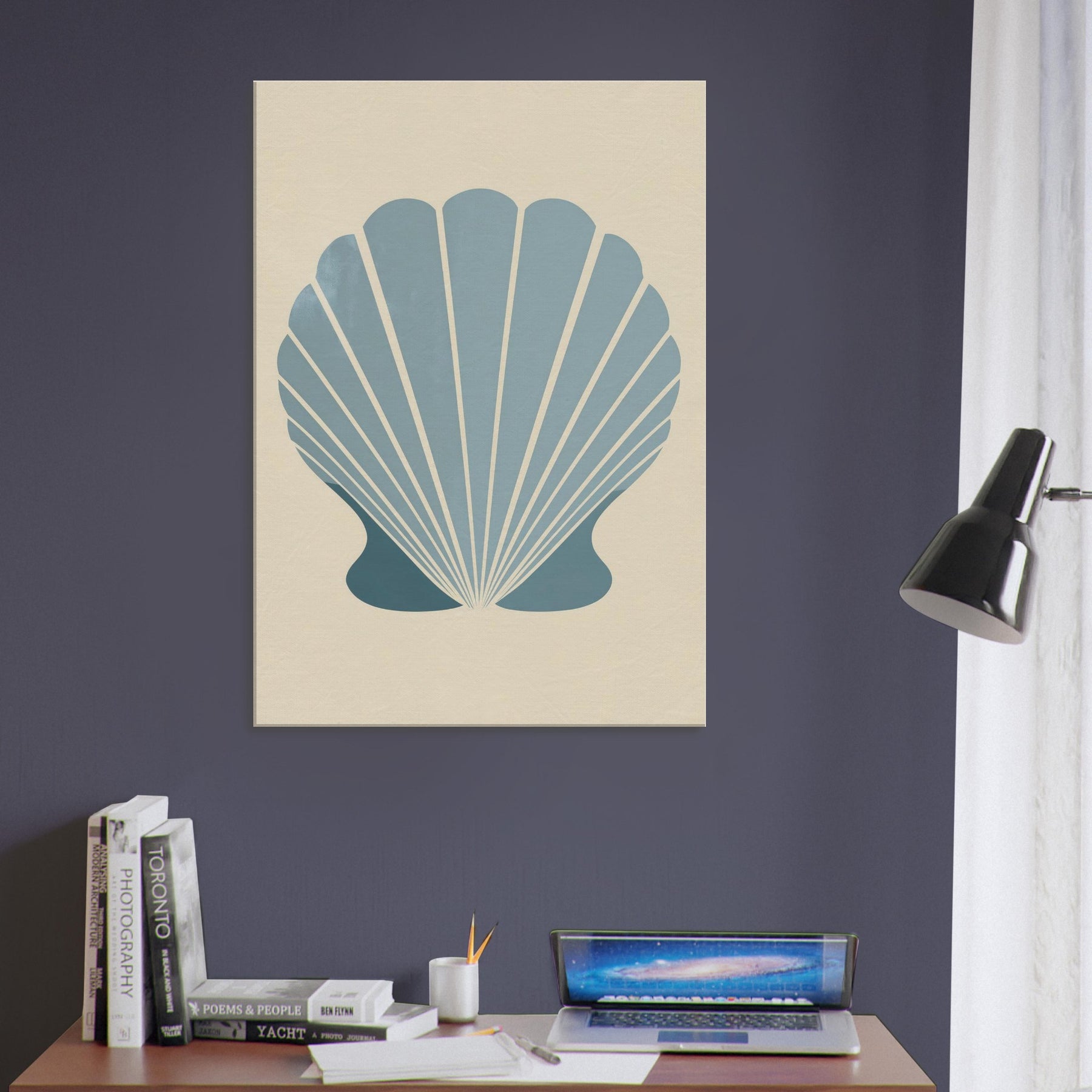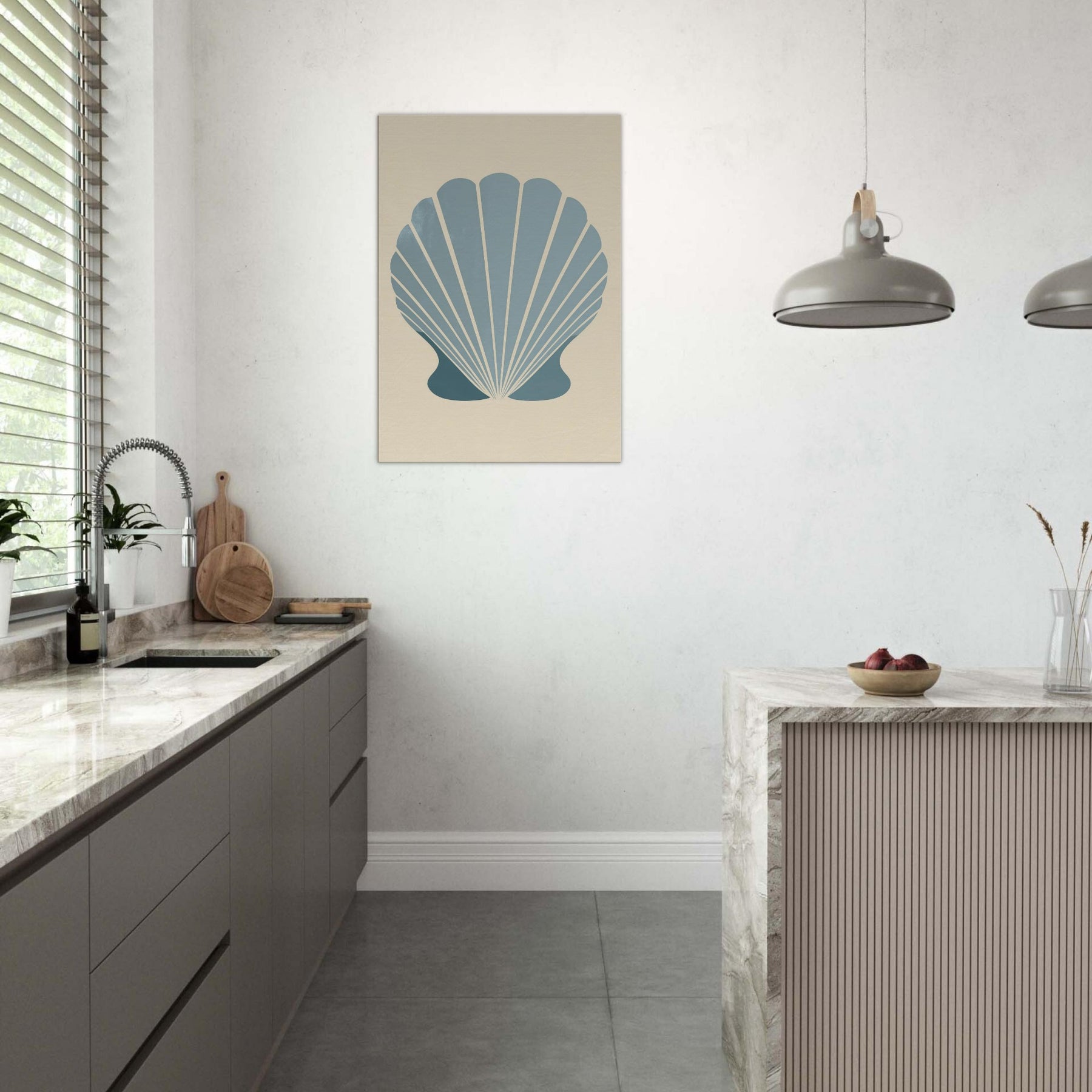 Drawing on the simple geometry of a Seashell, this minimalist print brings the coast indoors. The cool blue silhouette against a warm ivory field evokes tide pools, morning light, and the hush between breaths. It anchors a neutral room with quiet order, offering a meditative focal point that softens edges and slows time. Hang it above a sofa or in a hallway to create a serene corner where nature’s rhythm meets modern living.