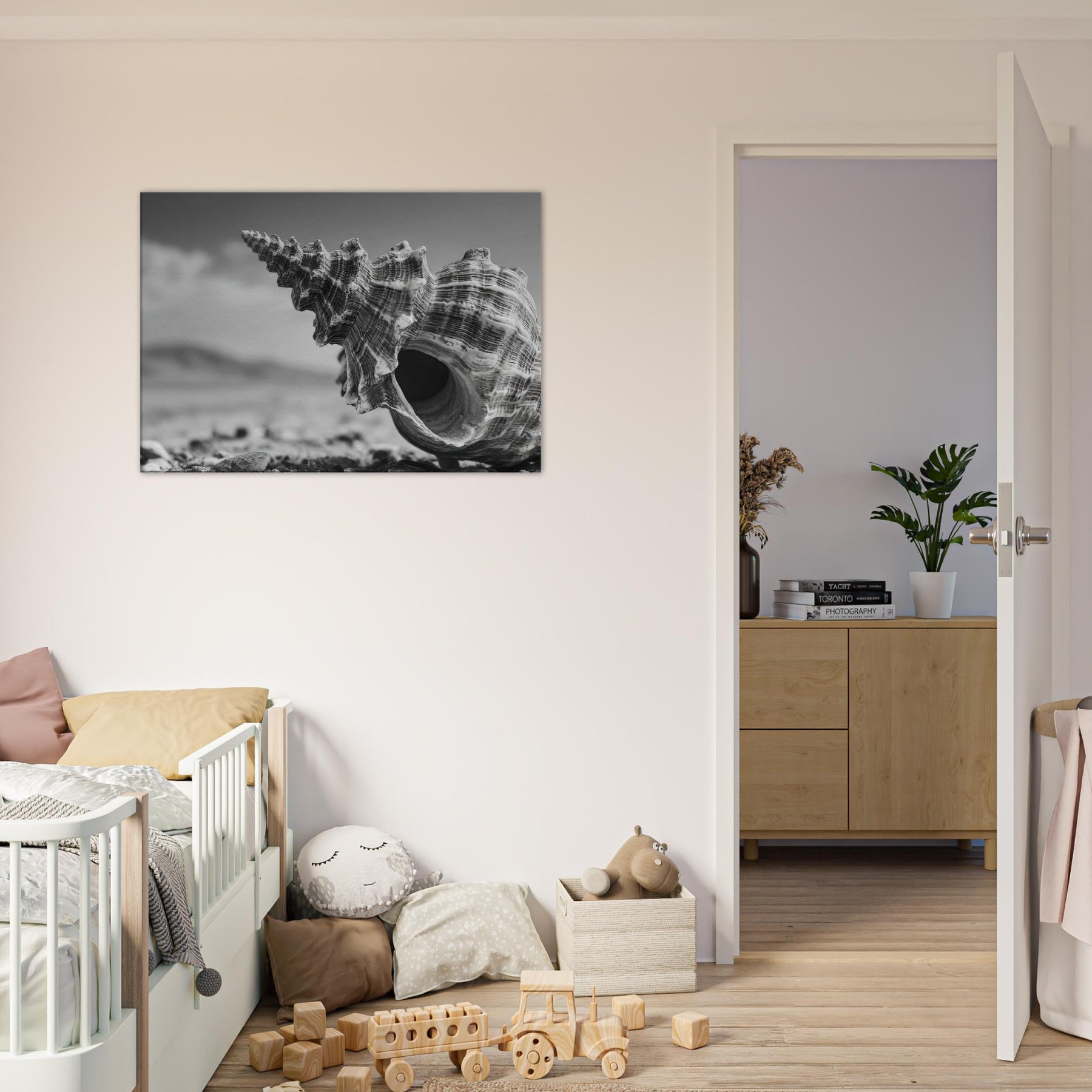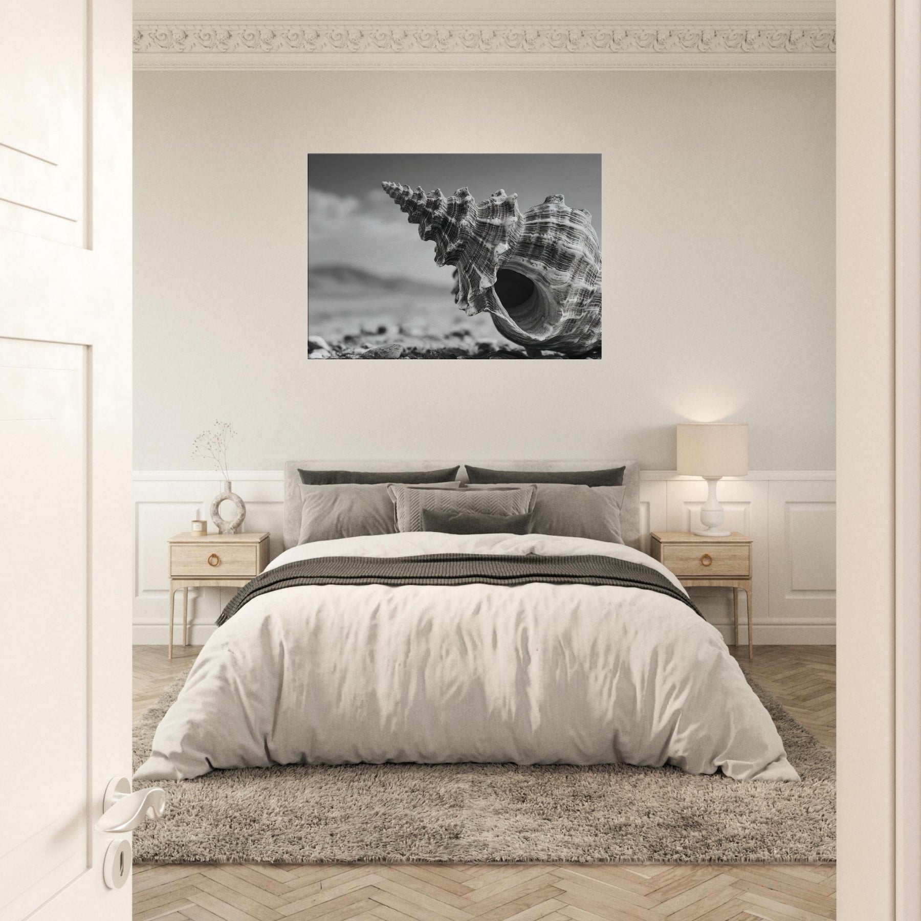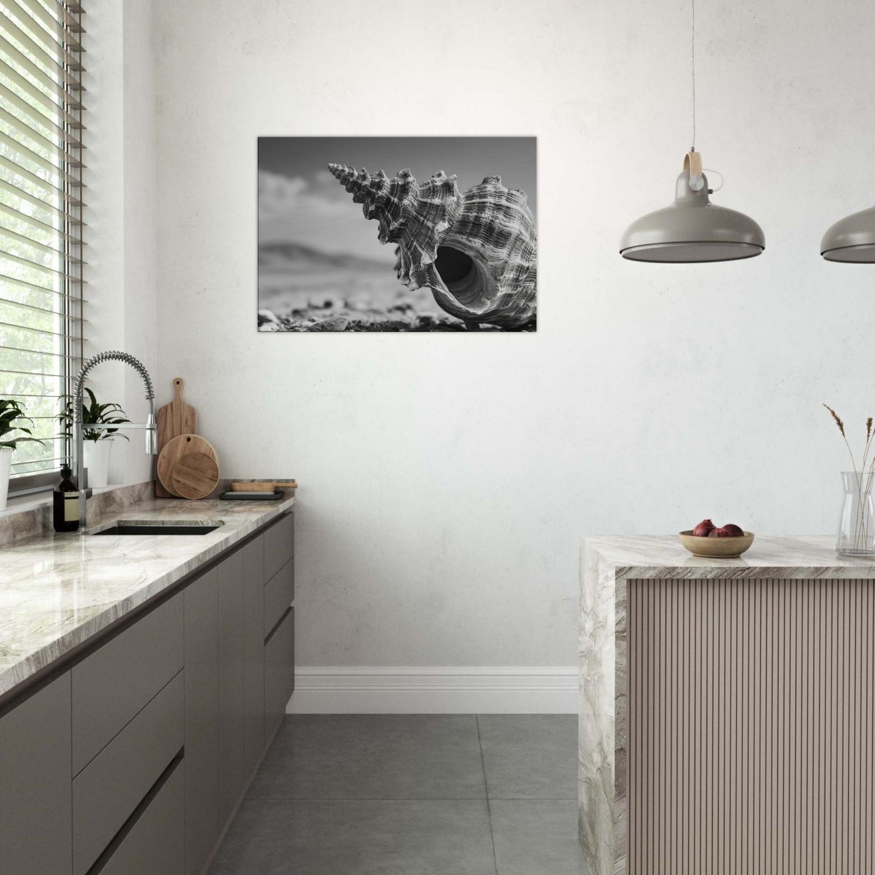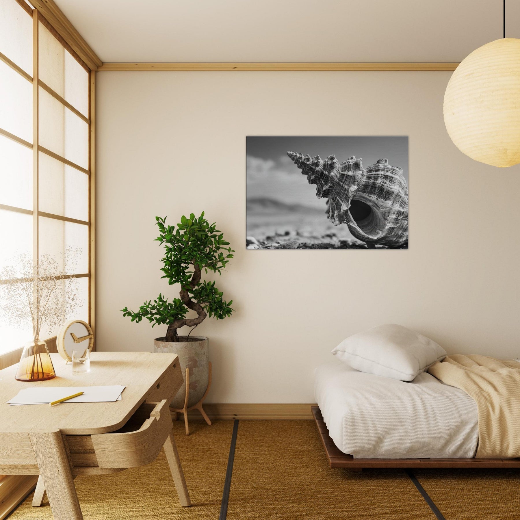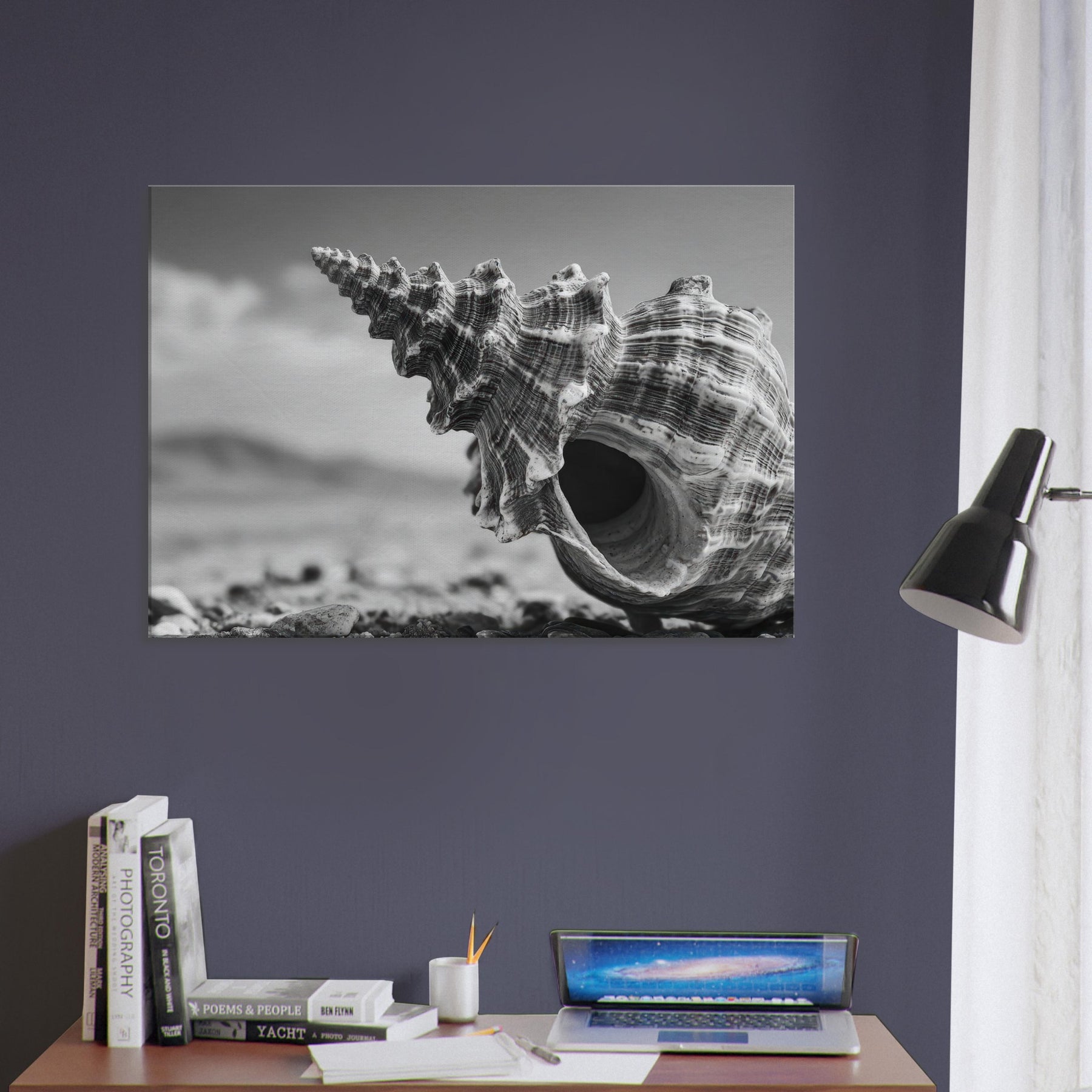 Seashell echoes across a field of silence in this black and white study of nature. The curling form and layered ridges invite a slow, contemplative glance, turning any wall into a coastal meditation. In your living space, it adds a touch of refined texture and moody atmosphere, pairing softly with other neutrals. The Seashell commands presence without shouting, a timeless reminder of the sea's quiet grandeur and the beauty found in elemental forms.