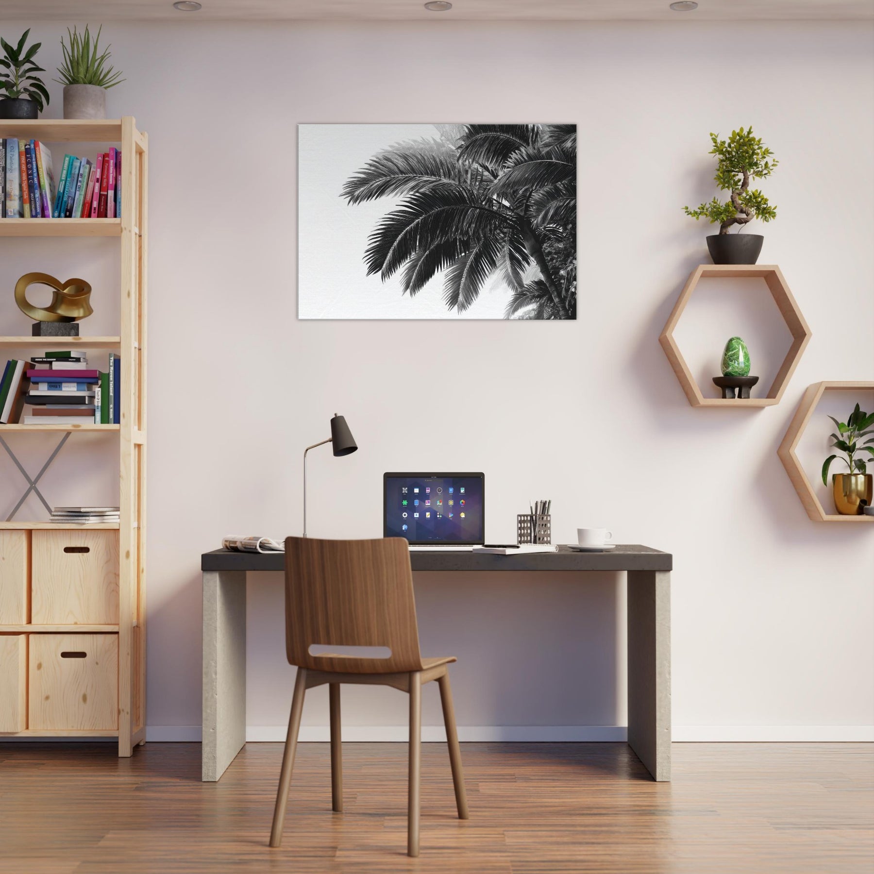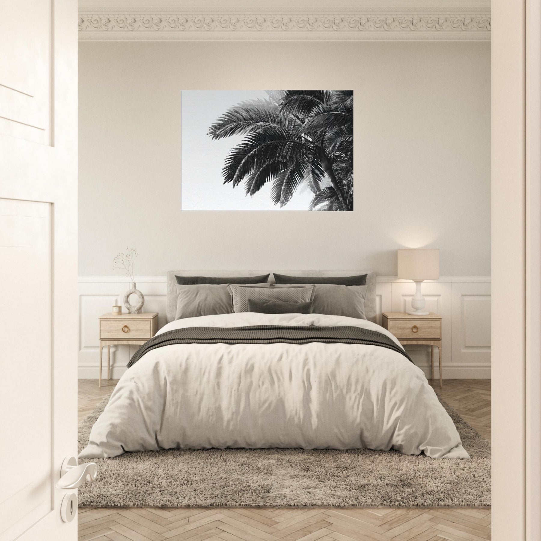 Palm Leaves rise in a quiet monochrome ballet, their silhouettes snapped against a luminous white field. This Black And White study of nature exudes hush and clarity, inviting a space to breathe. The Primary Subject Palm Leaves anchors the room with primal texture, while deep shadows and crisp lines evoke gallery serenity. Perfect above a sofa or in a tranquil hallway, it elevates mood, focus, and a timeless sense of refined elegance.