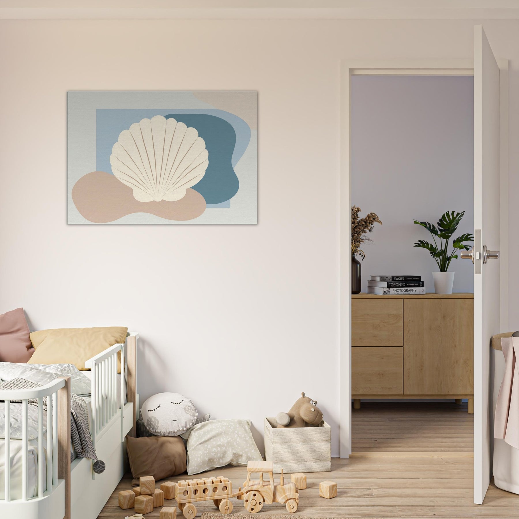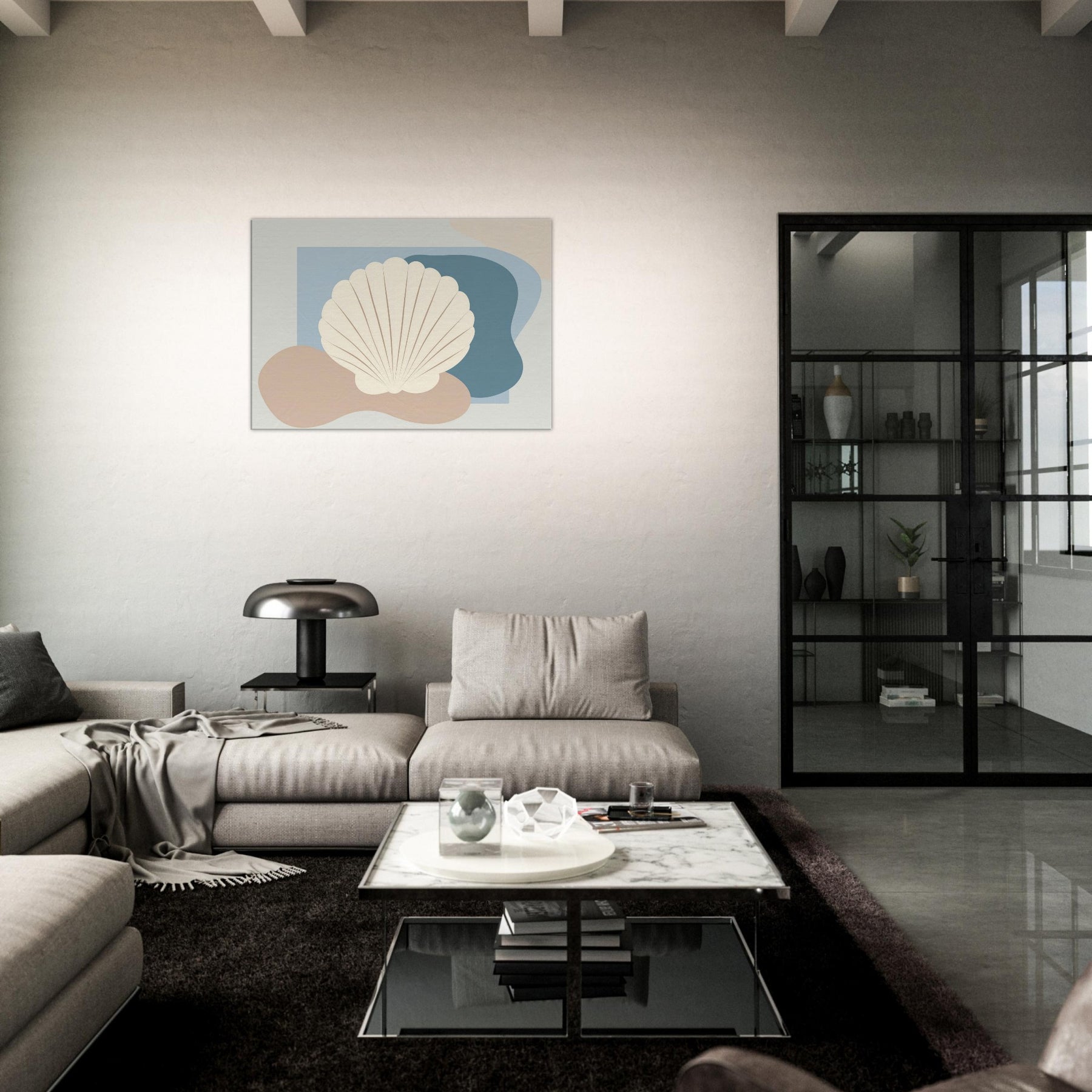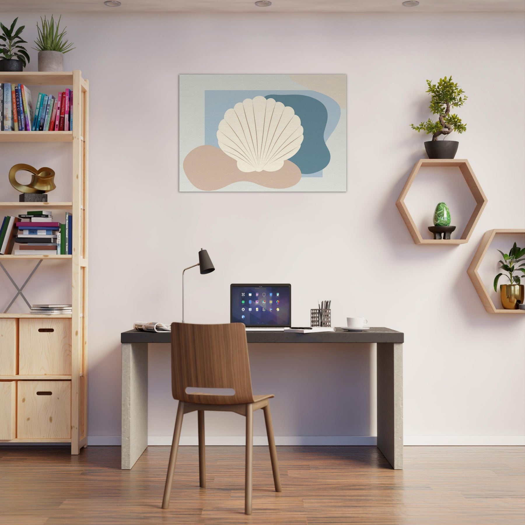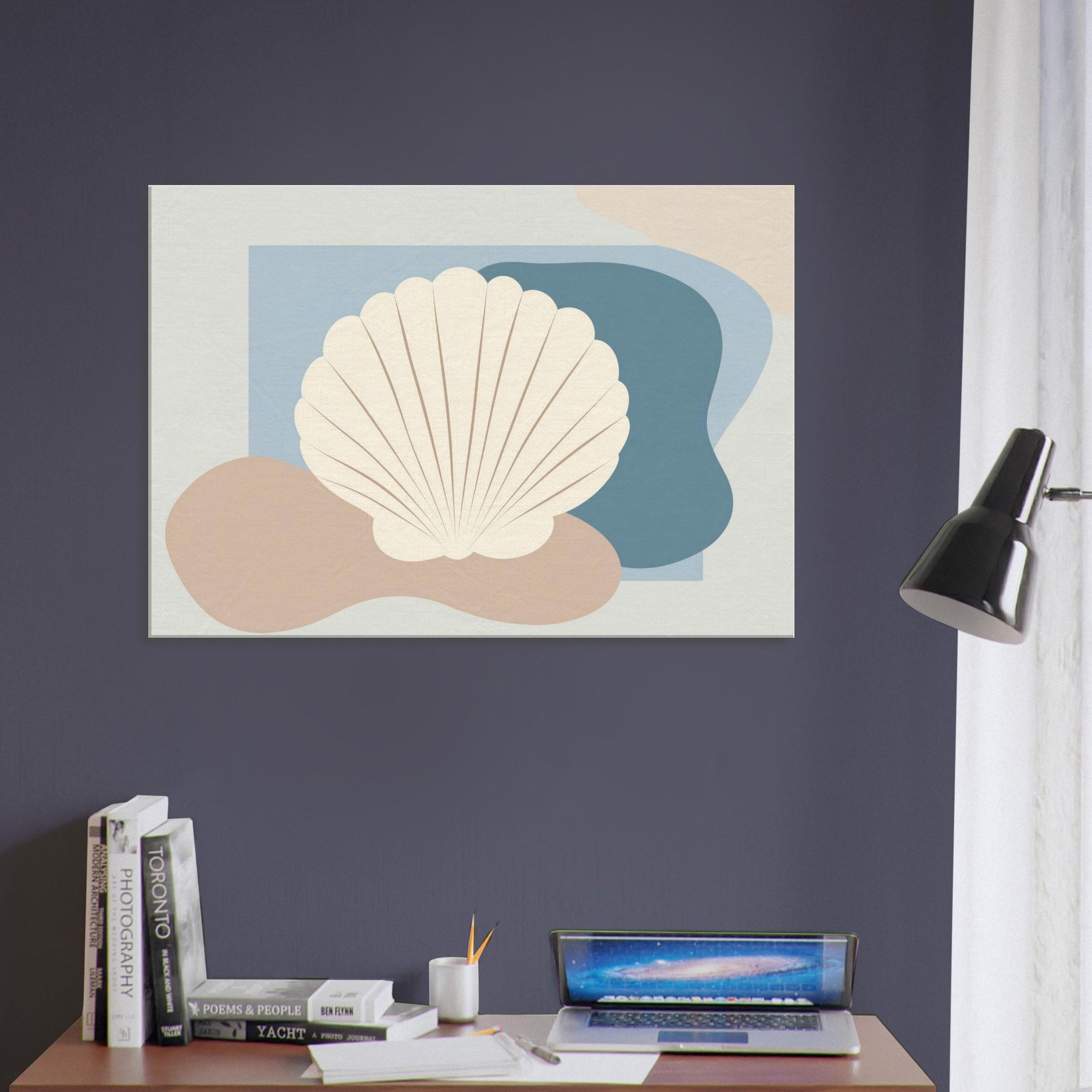 Hovering in soft light, this Seashell artwork distills the quiet rhythm of the shore into a single, serene presence. The minimalist silhouette sits against gentle blues and warm sand tones, inviting calm into your living space. Its airy contour echoes a shoreline breeze, while the creamy shell shape adds texture and tactility from every angle. Hang it above a sofa or bed to conjure coastal stillness, a tranquil focal point that softens walls and invites quiet reflection.
