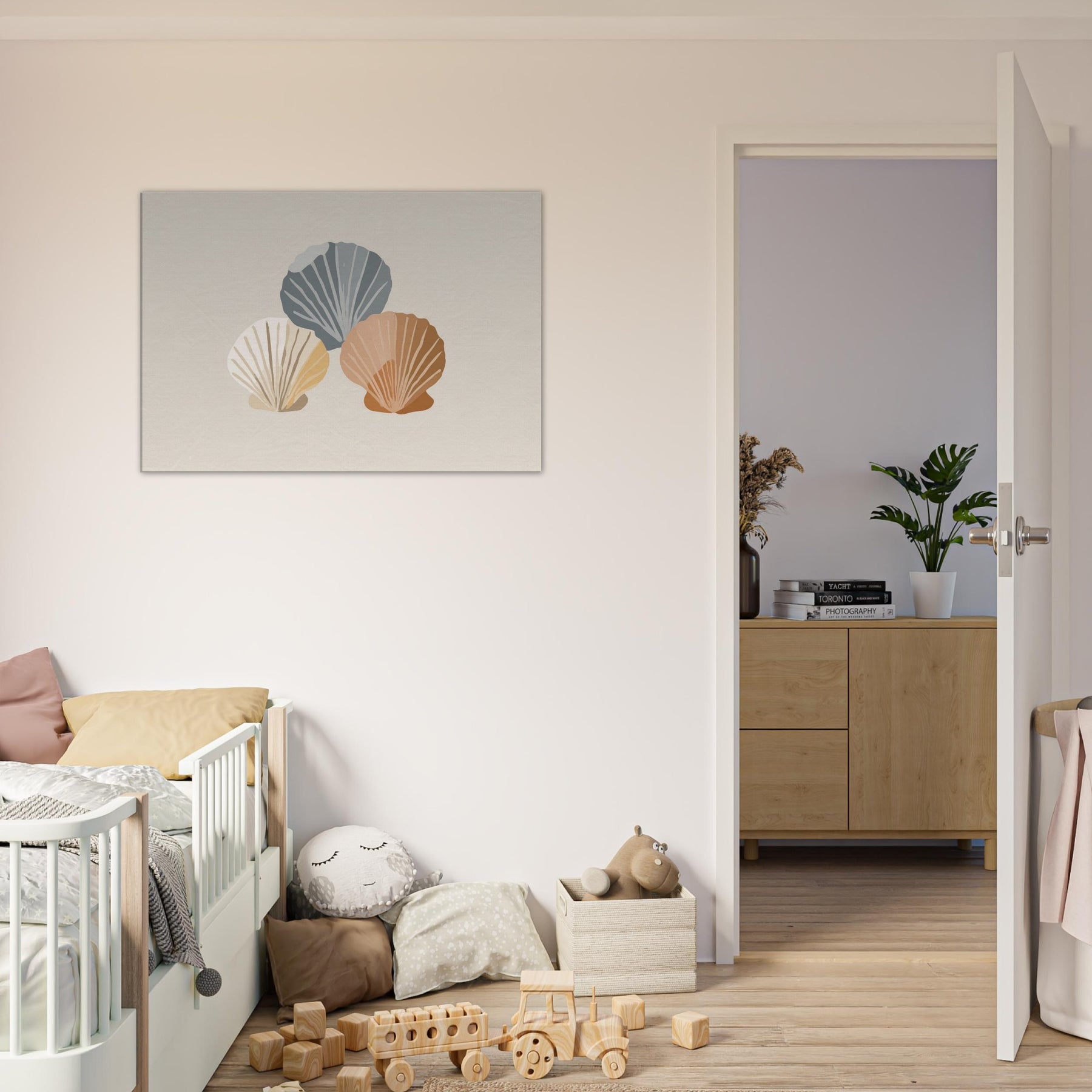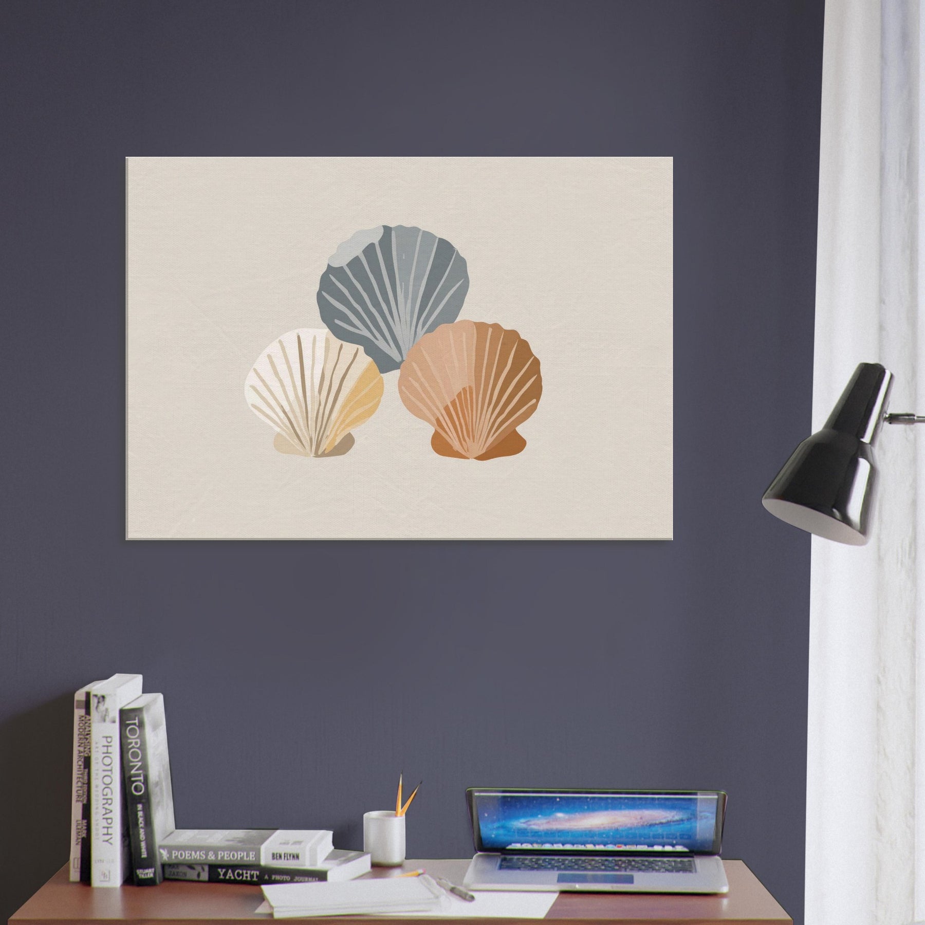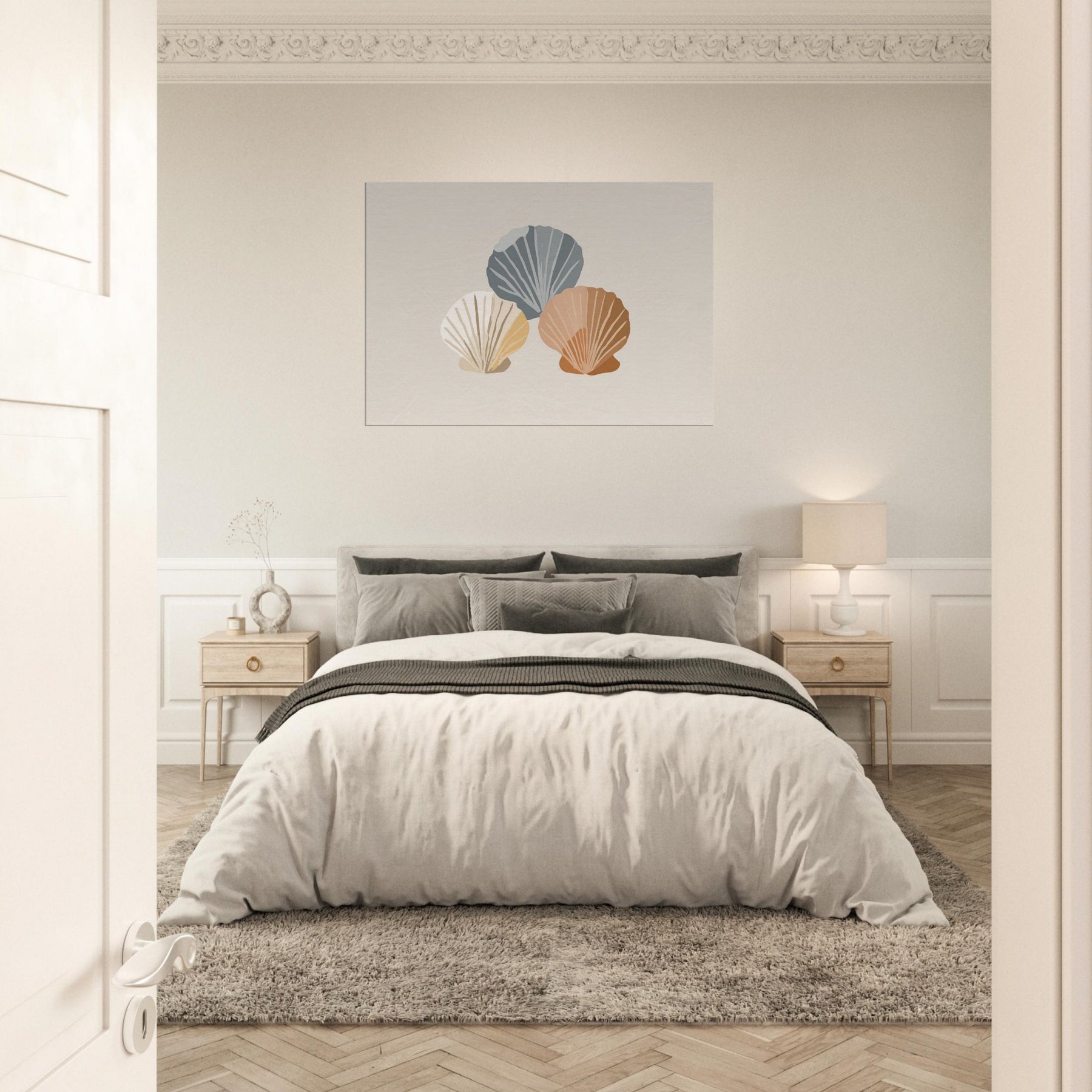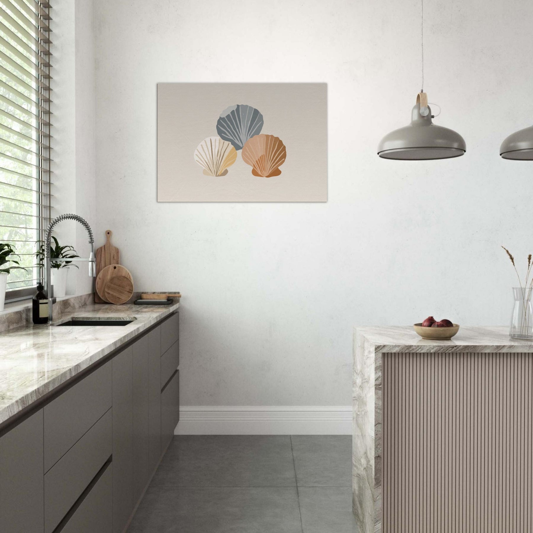 Seashells Trio invites quiet reflection, three shells in a gentle, overlapping arrangement that feels both timeless and contemporary. In a restrained palette of blue gray, cream, and warm terracotta, the piece captures the sea's calm without shouting. The minimalist composition creates space for breath and light, making it ideal above a sofa or in a hallway where soft texture and color can soften everyday surfaces. Let Seashells Trio anchor a coastal mood while preserving the room's clean, uncluttered feel.