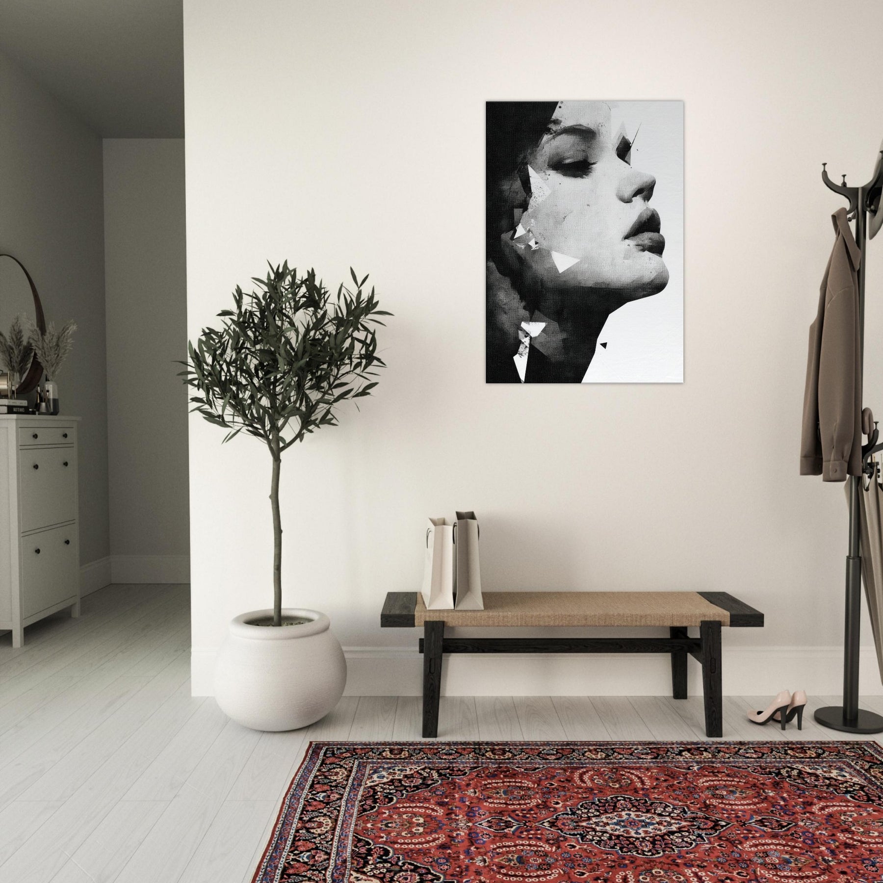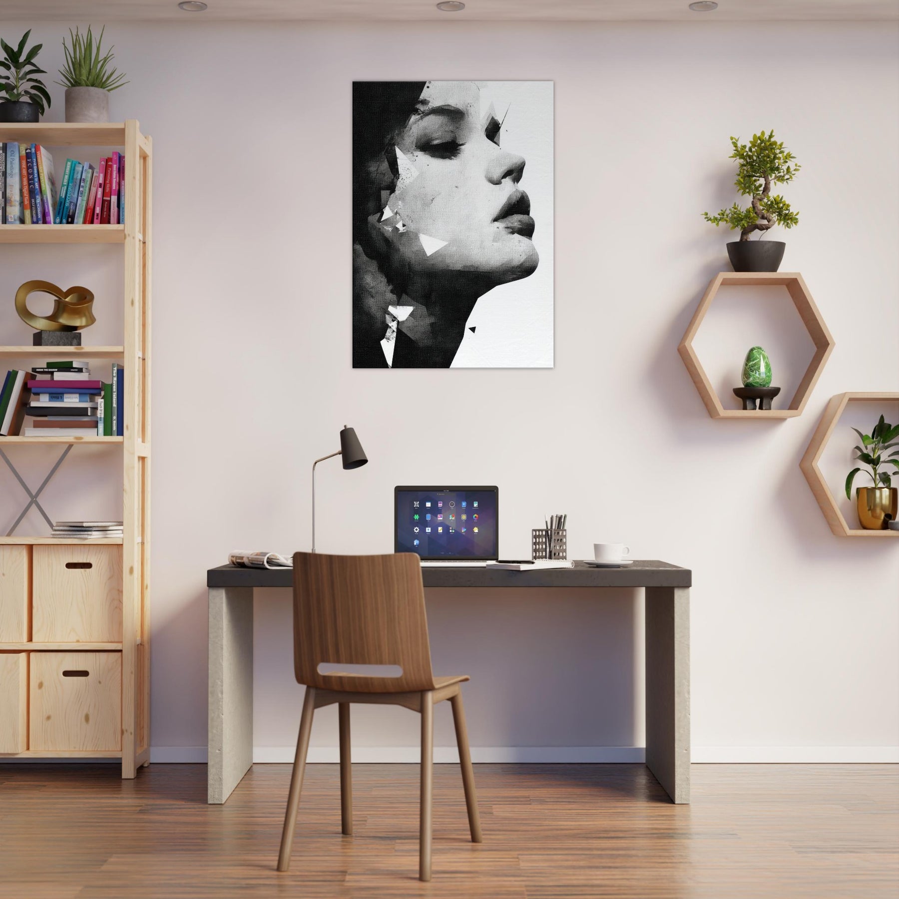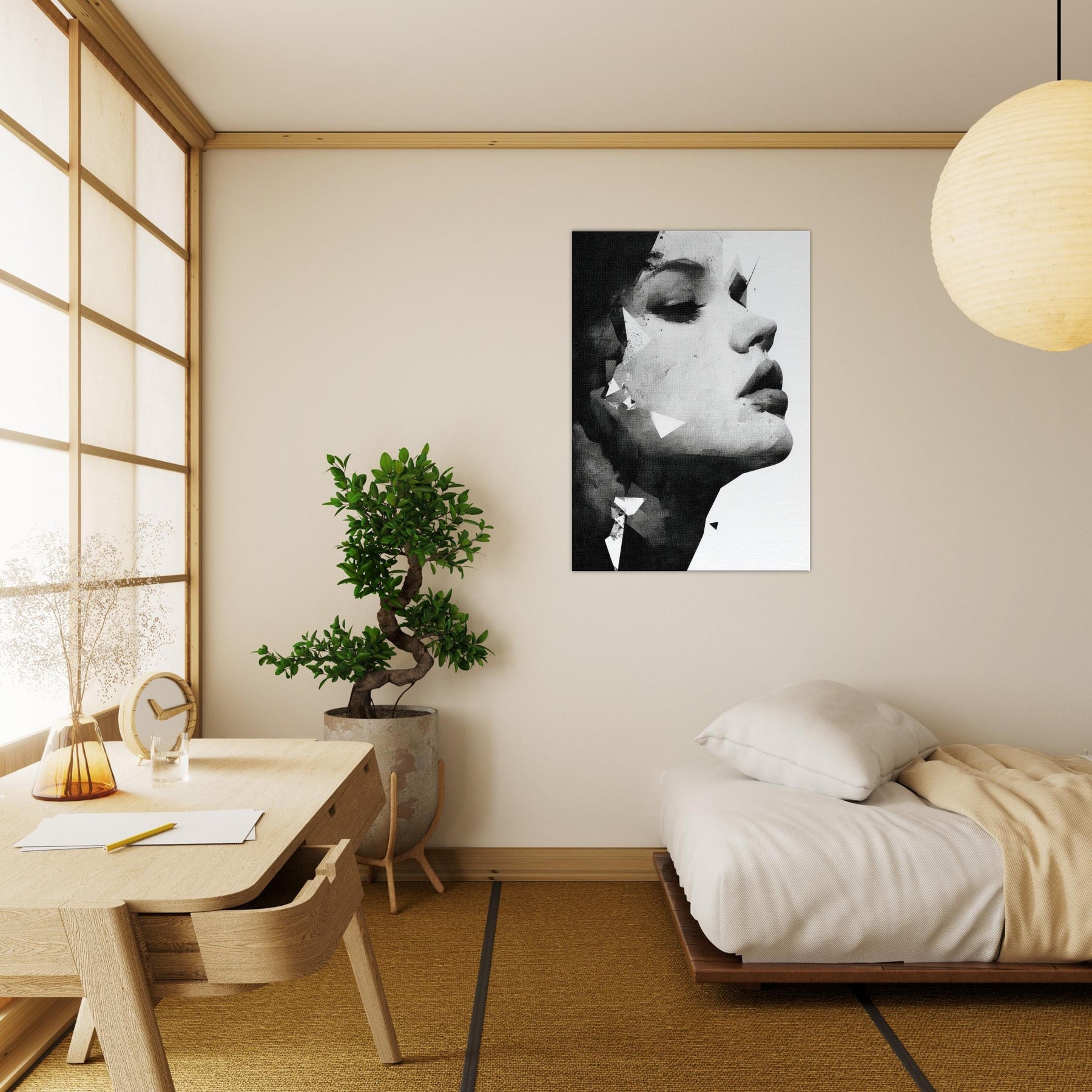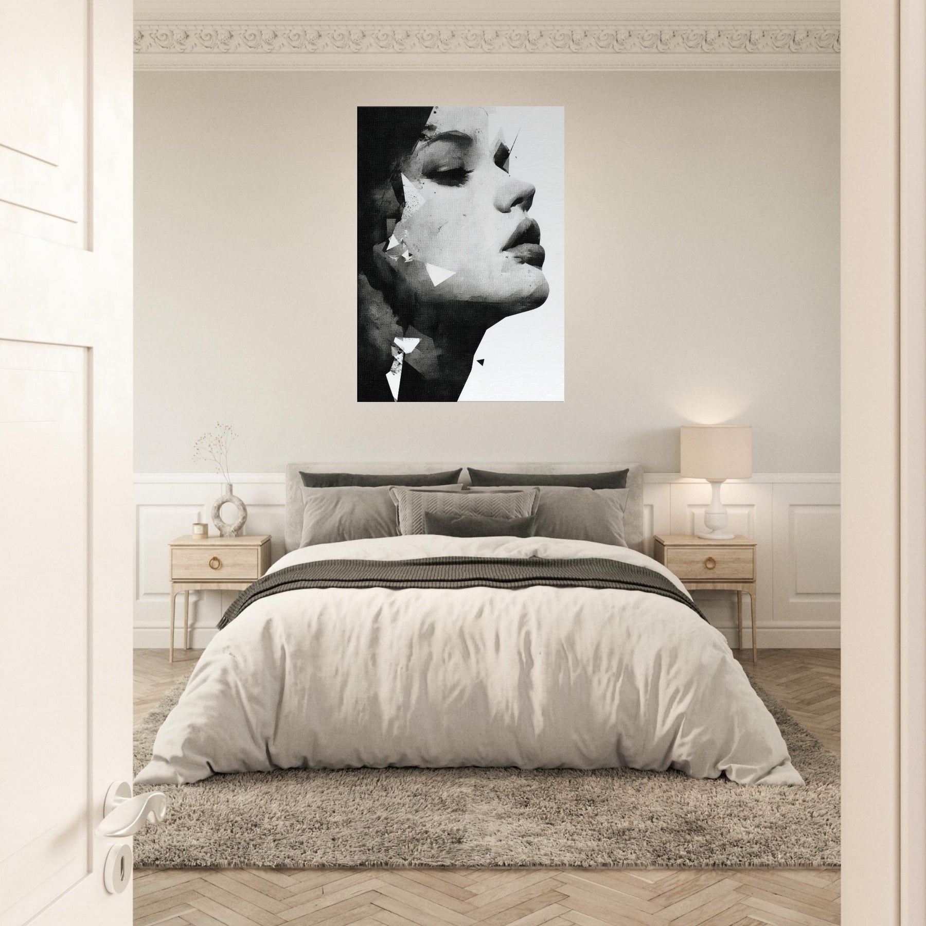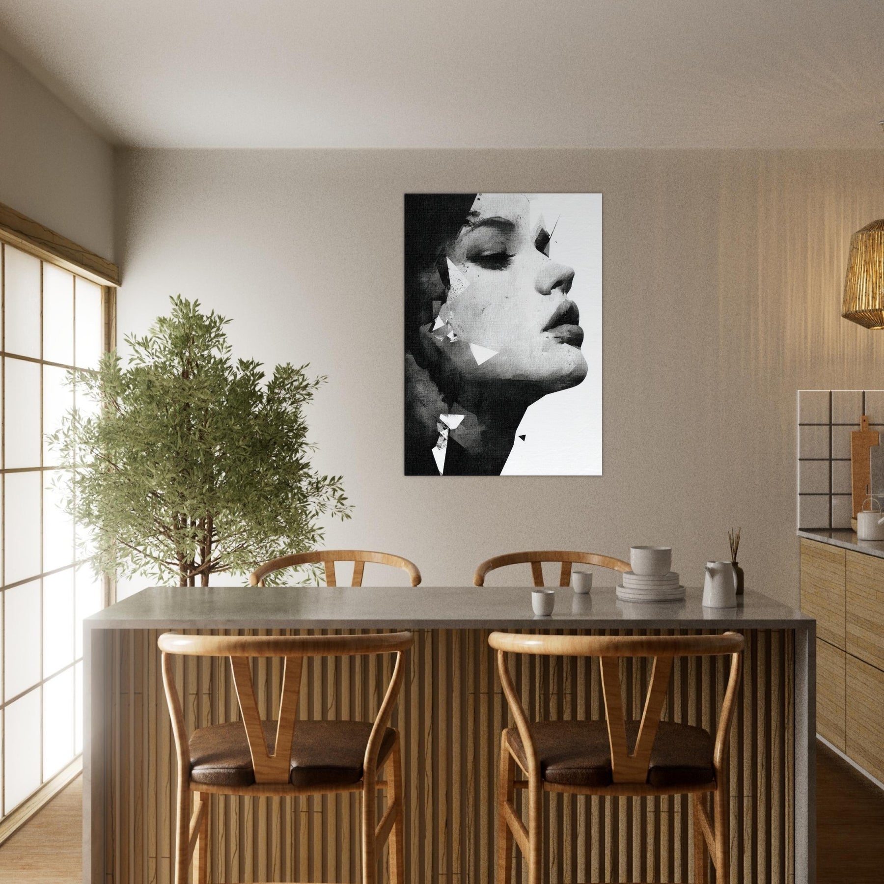 The composition exudes elegance and strength, turning any room into a serene gallery of mood perfect above a sofa, in a dimly lit hallway, or beside a bold accent color. A refined piece that deepens atmosphere without shouting.