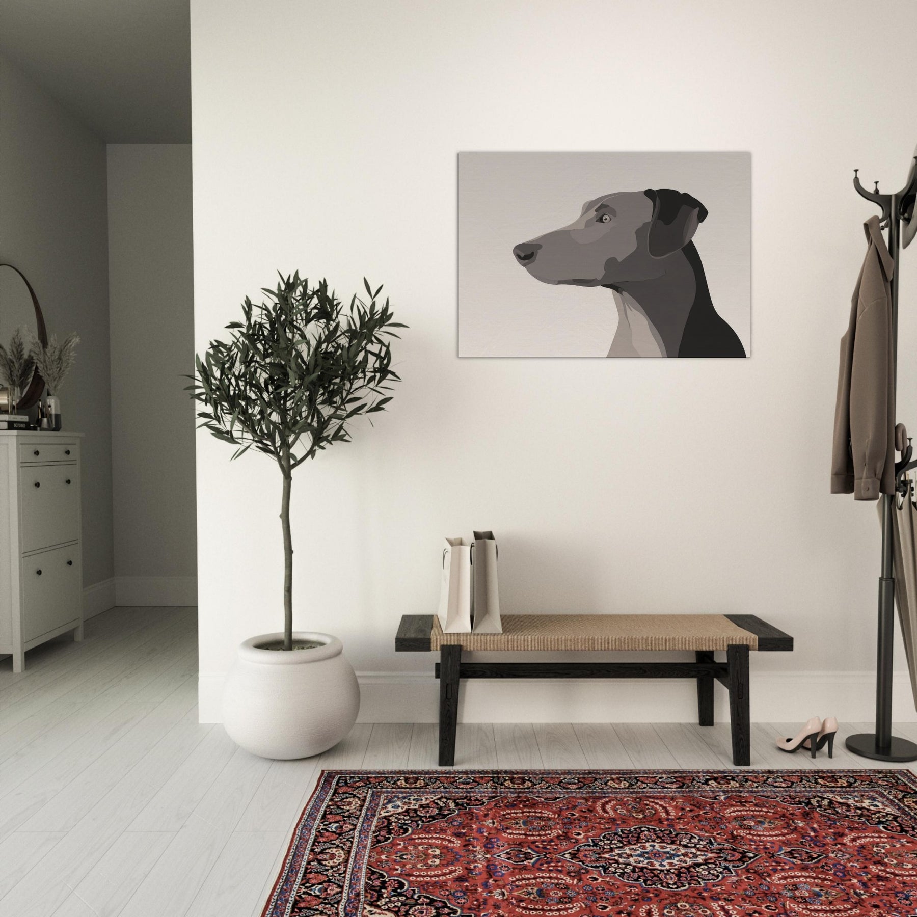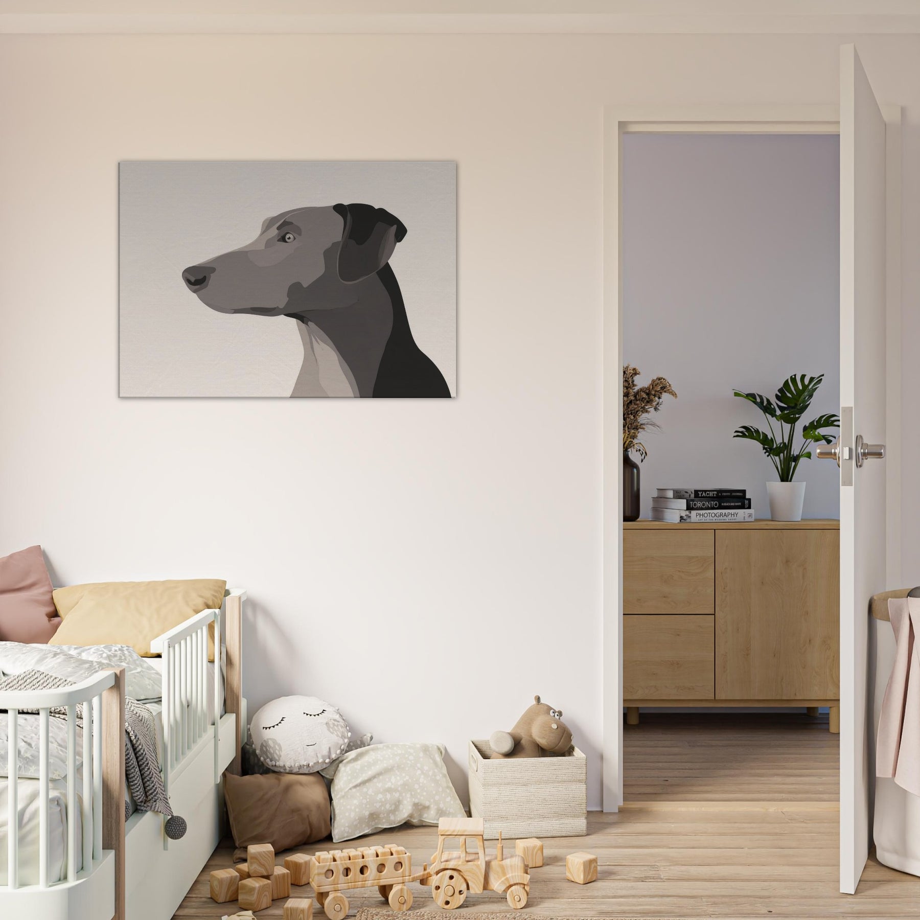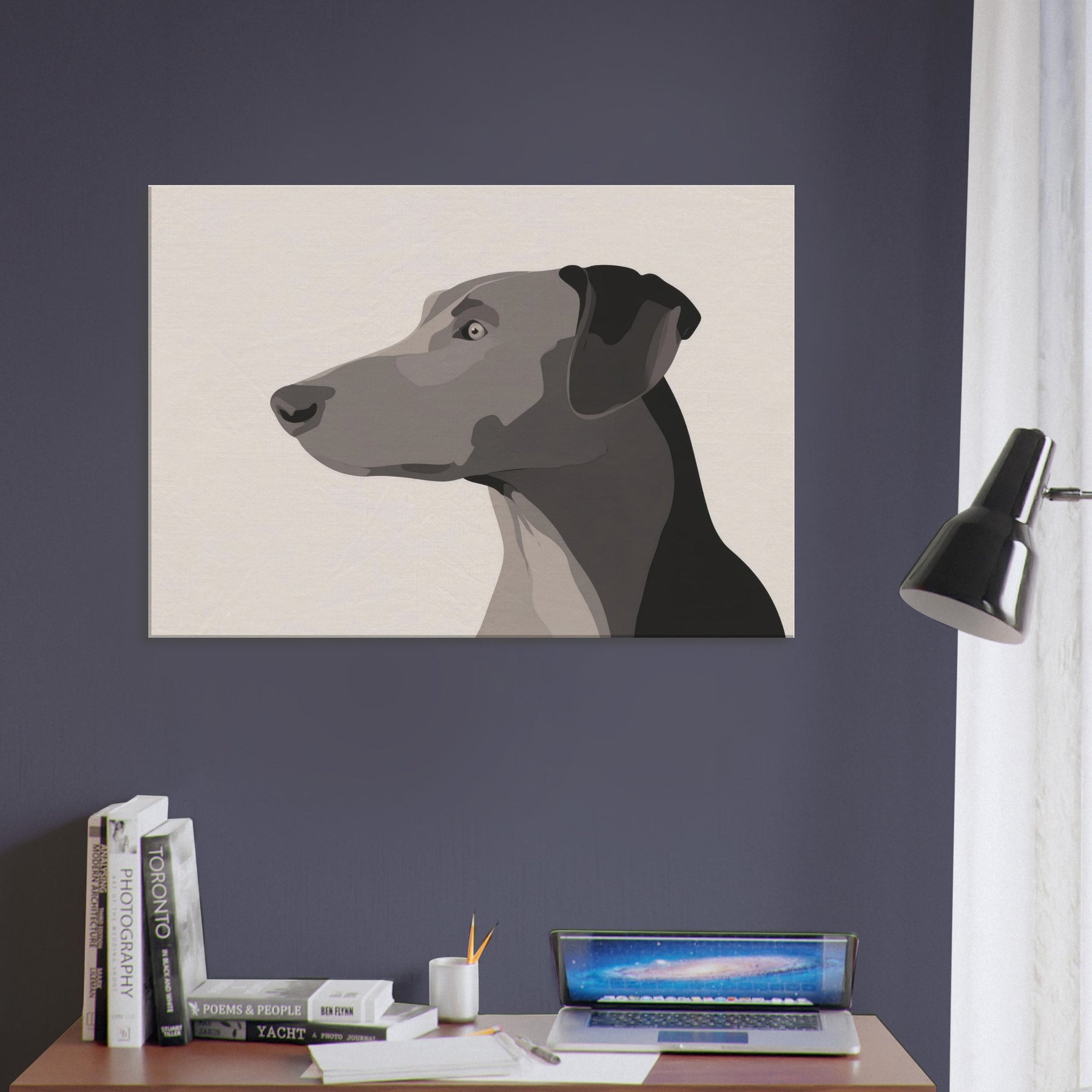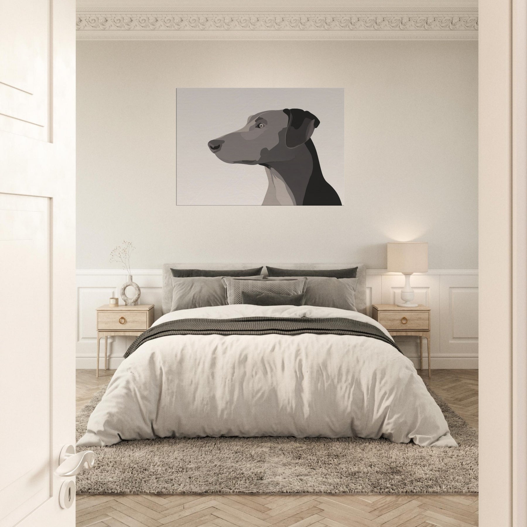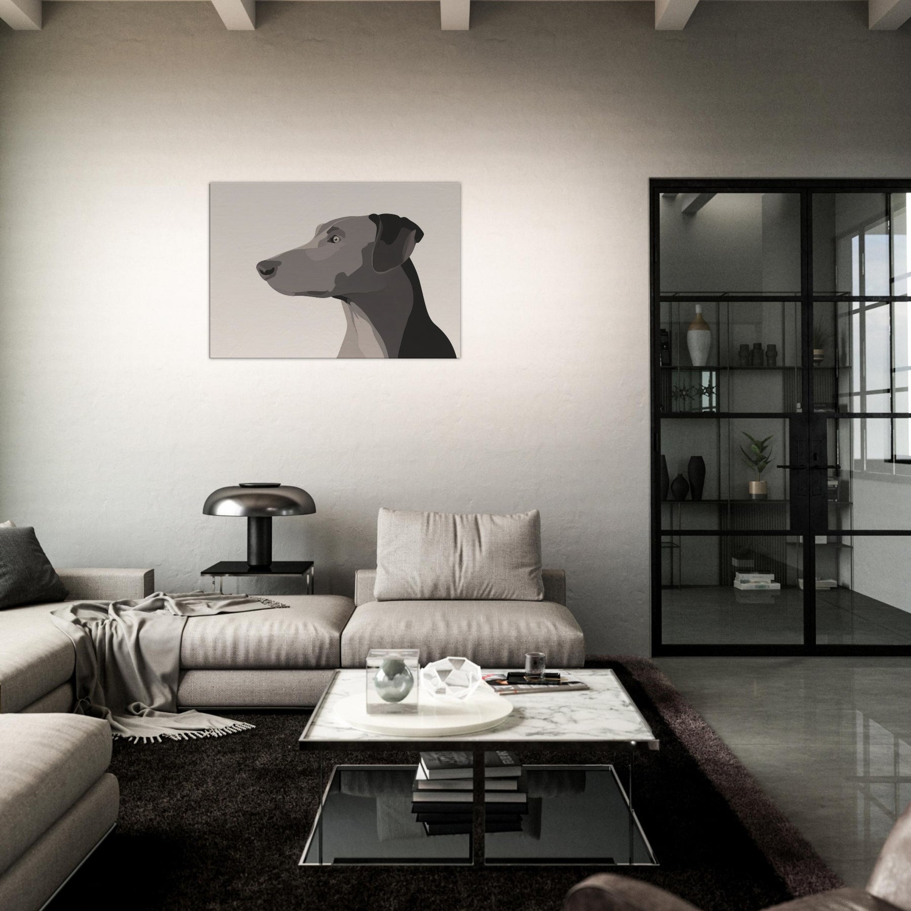 In the hush of a well lit room, this Dog gazes beyond the frame, a study in restraint and grace. The minimalist form uses layered, tonal blocks to suggest depth without clutter, inviting the eye to rest on the animal's quiet presence. It breathes warmth into a neutral wall, catching light at different angles and turning a simple space into a sanctuary. Perfect for a living area or hallway, it pairs with natural textures and soft textiles, offering companionship without words.
