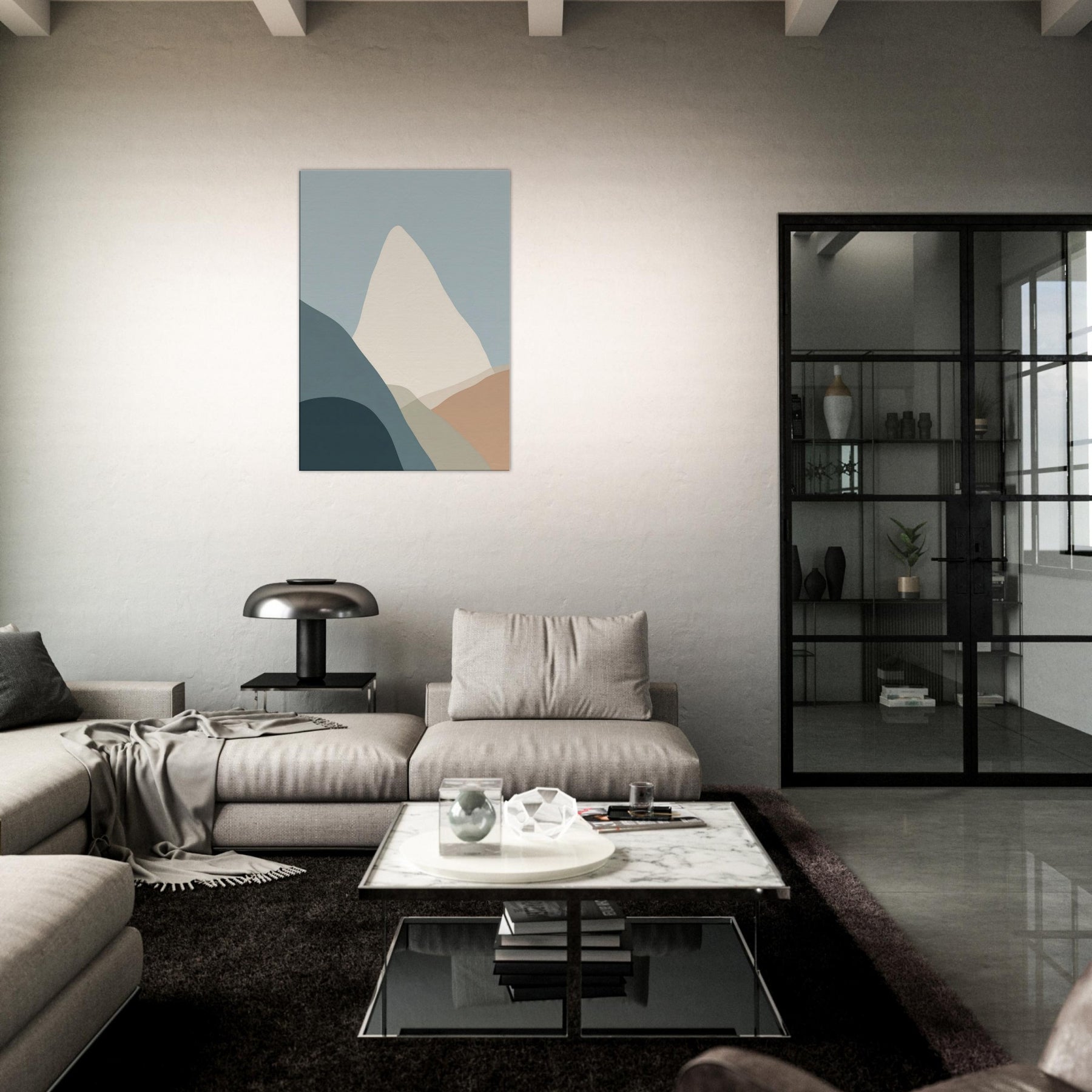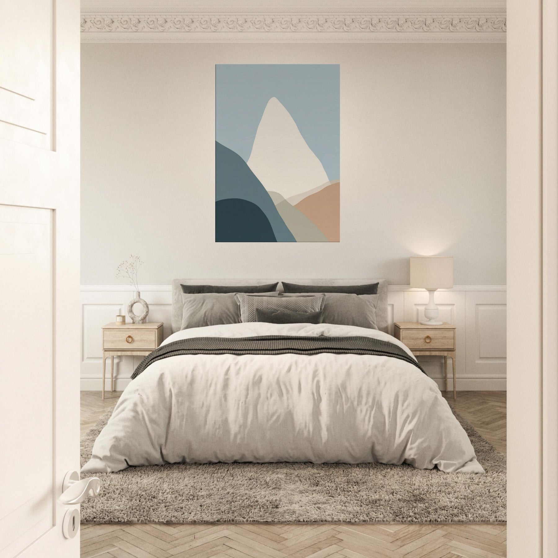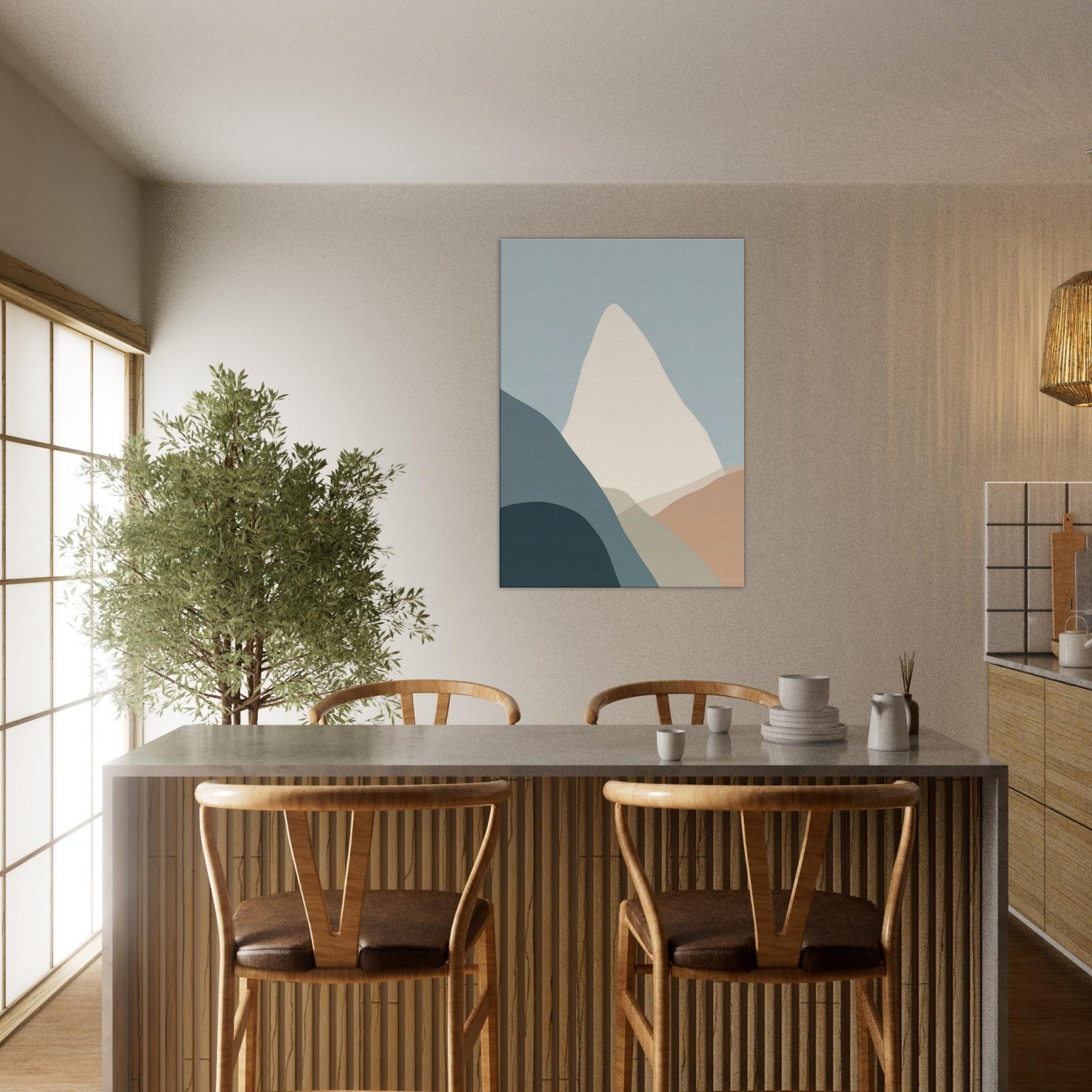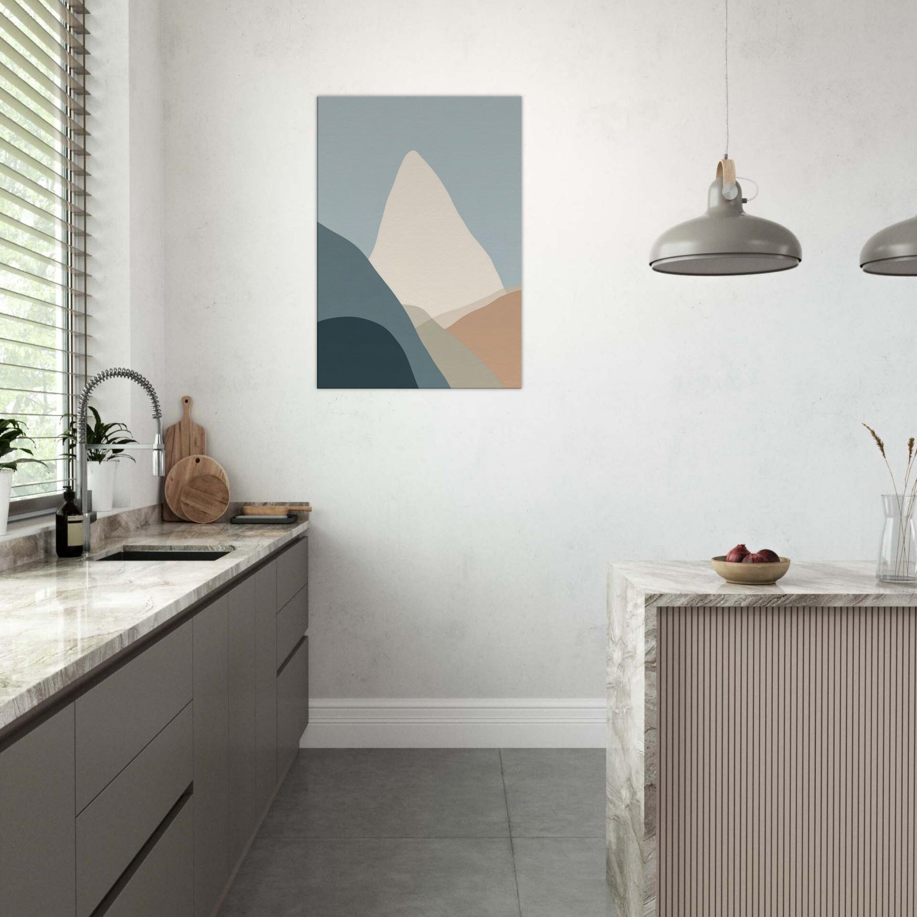 Cliffs rise in a vow of stillness, rendered in gentle layers of muted color. This minimalist composition invites the eye to breathe with the horizon, where soft blues meet warm earth tones. The cliffs become a quiet monument in your living space, a backdrop for conversation, morning coffee, and late night reading. The pared back palette and timeless geometry evoke calm, freeing the room from clutter and letting texture, light, and shadow do the talking.