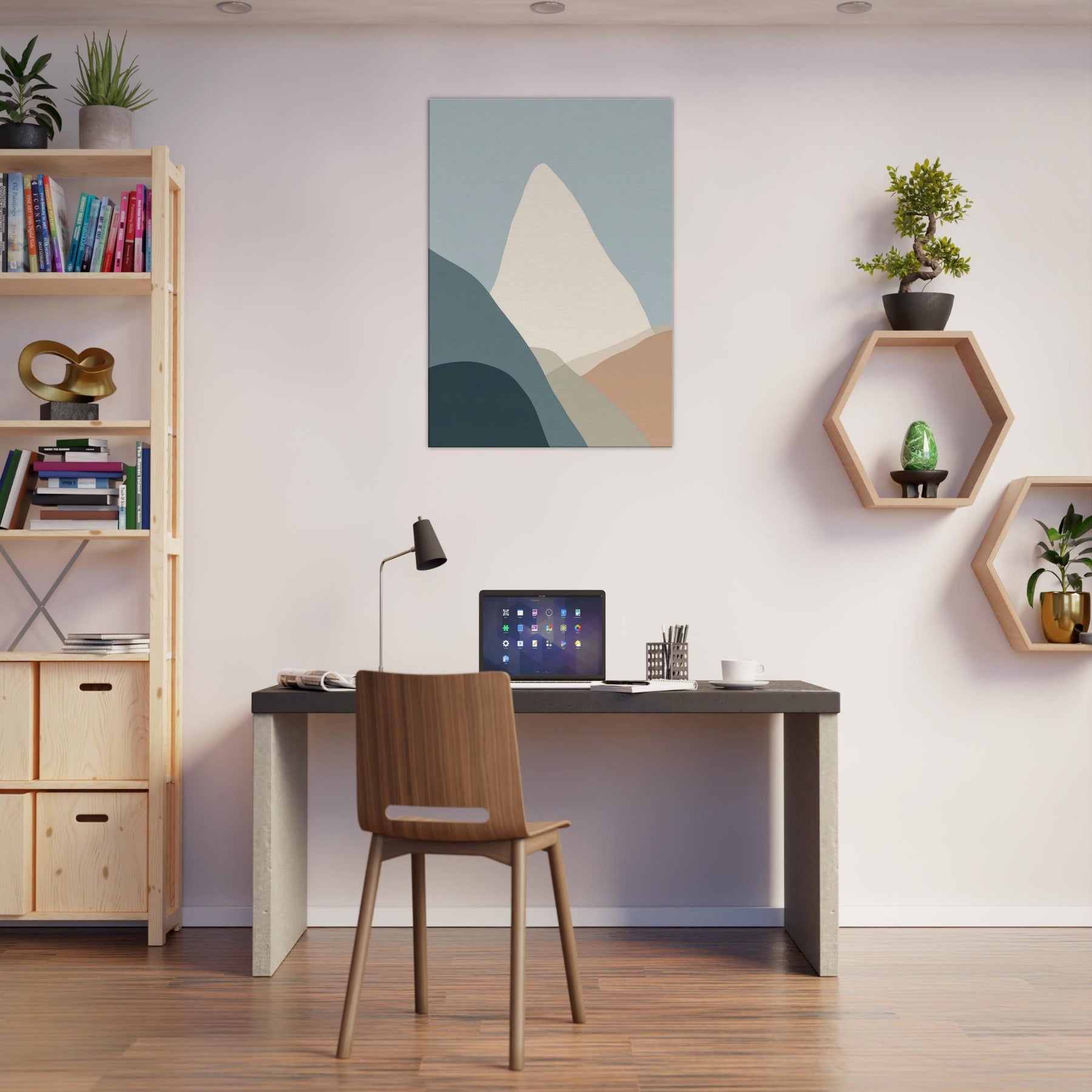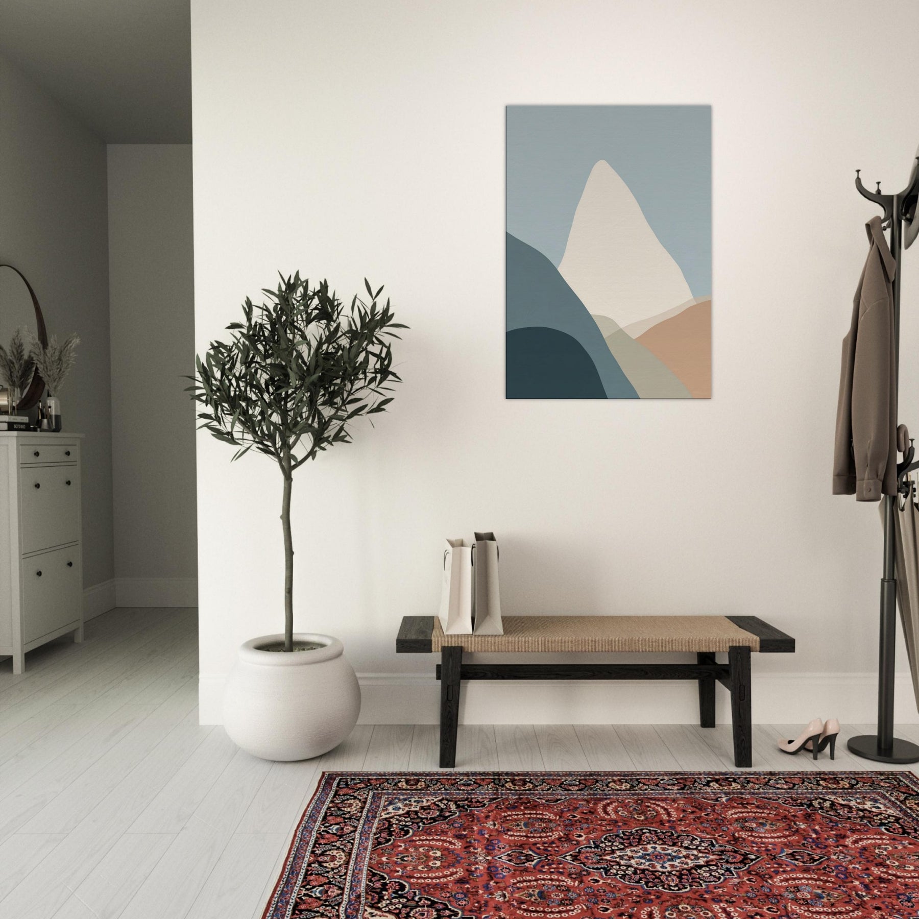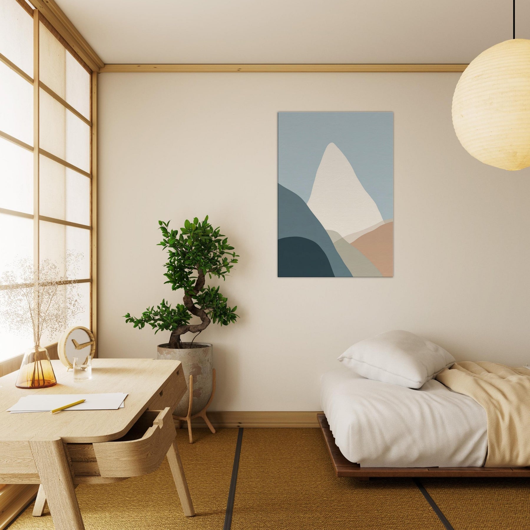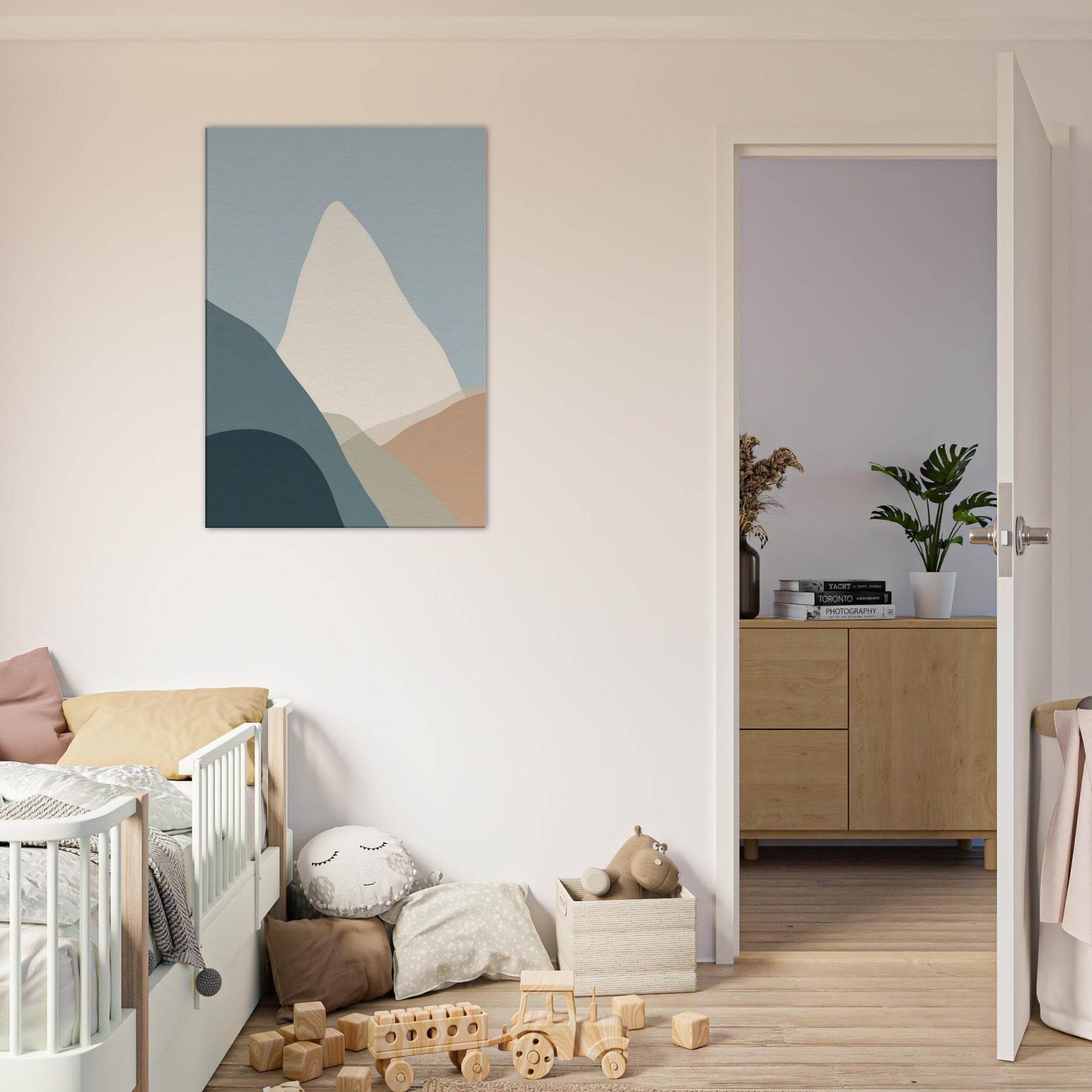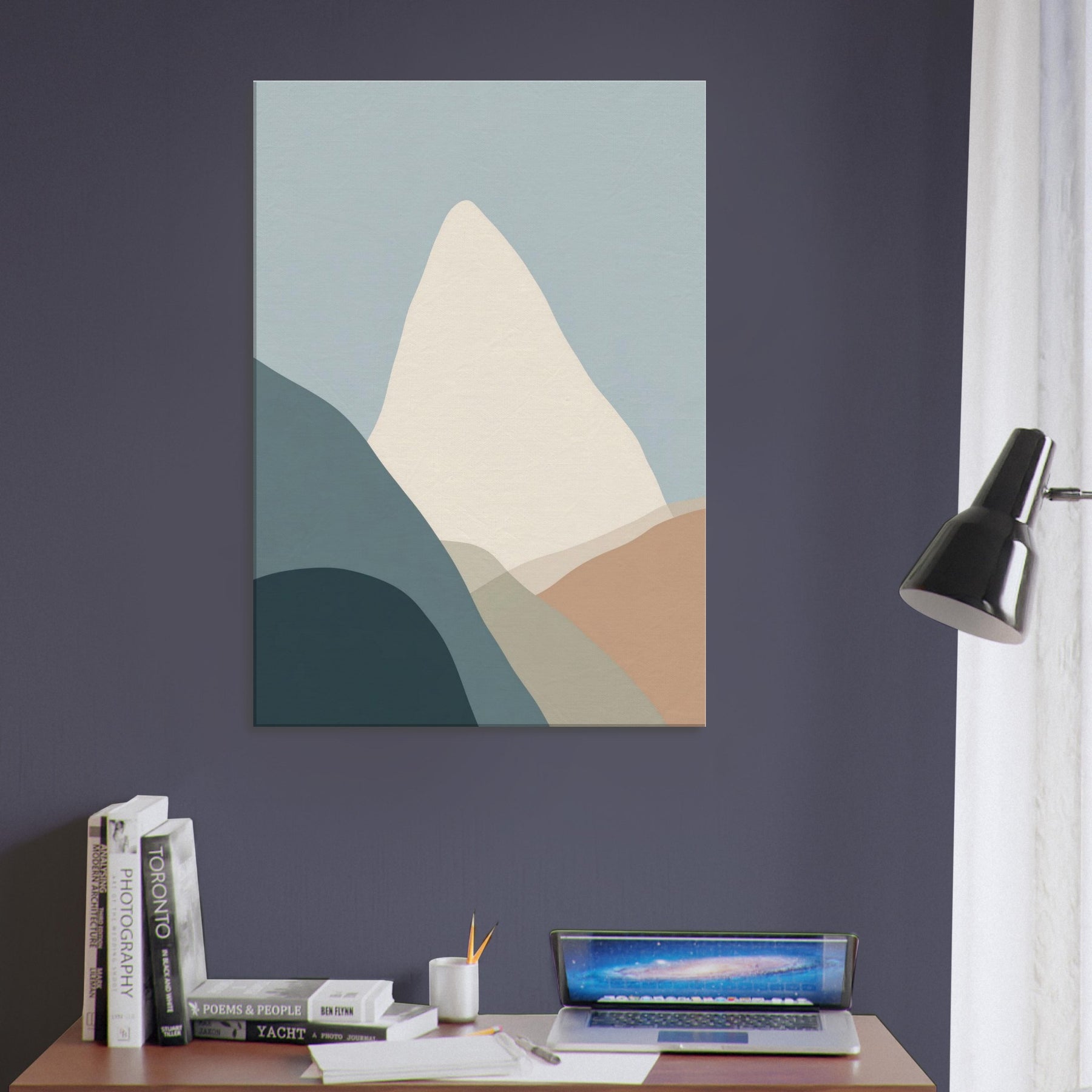 Cliffs rise in a vow of stillness, rendered in gentle layers of muted color. This minimalist composition invites the eye to breathe with the horizon, where soft blues meet warm earth tones. The cliffs become a quiet monument in your living space, a backdrop for conversation, morning coffee, and late night reading. The pared back palette and timeless geometry evoke calm, freeing the room from clutter and letting texture, light, and shadow do the talking.