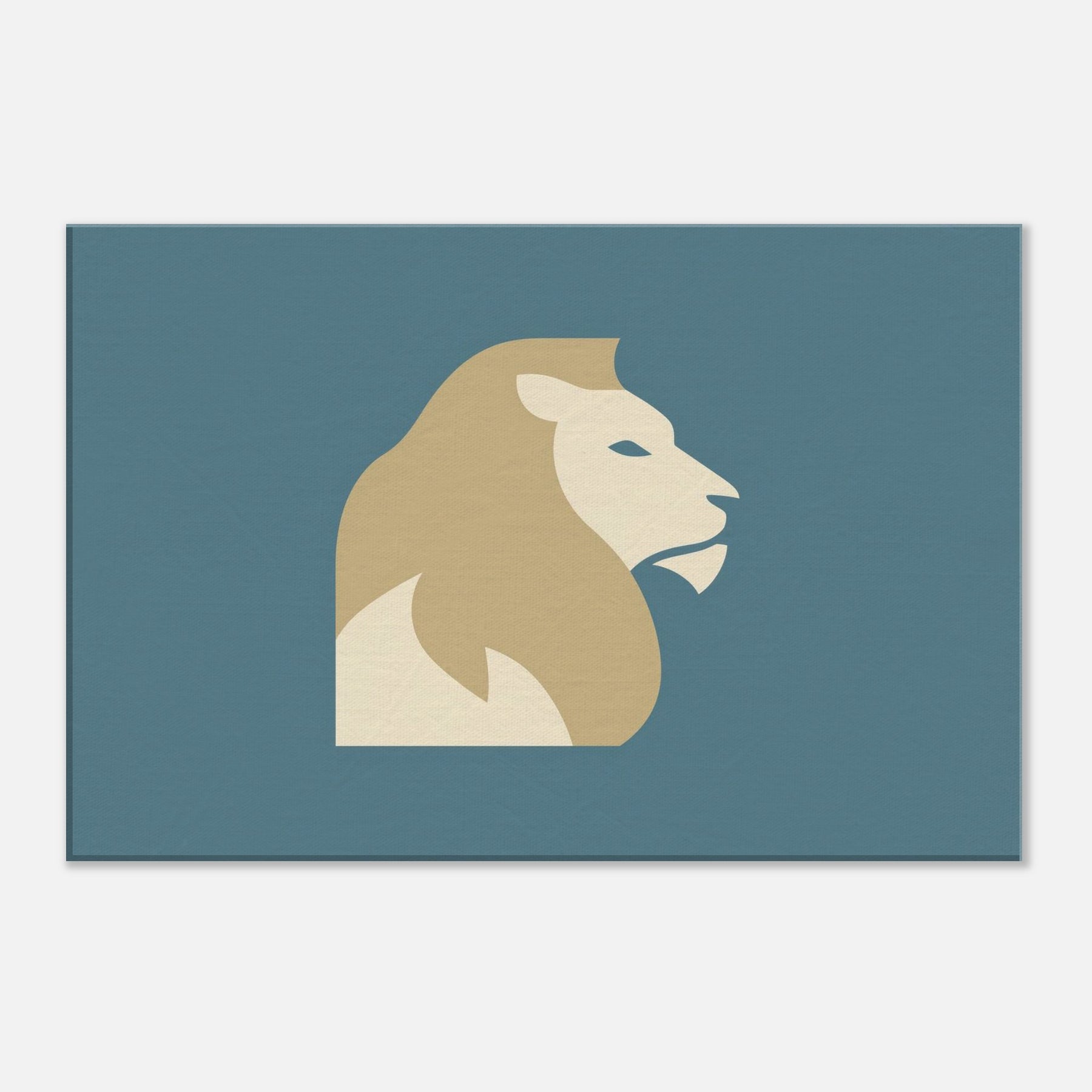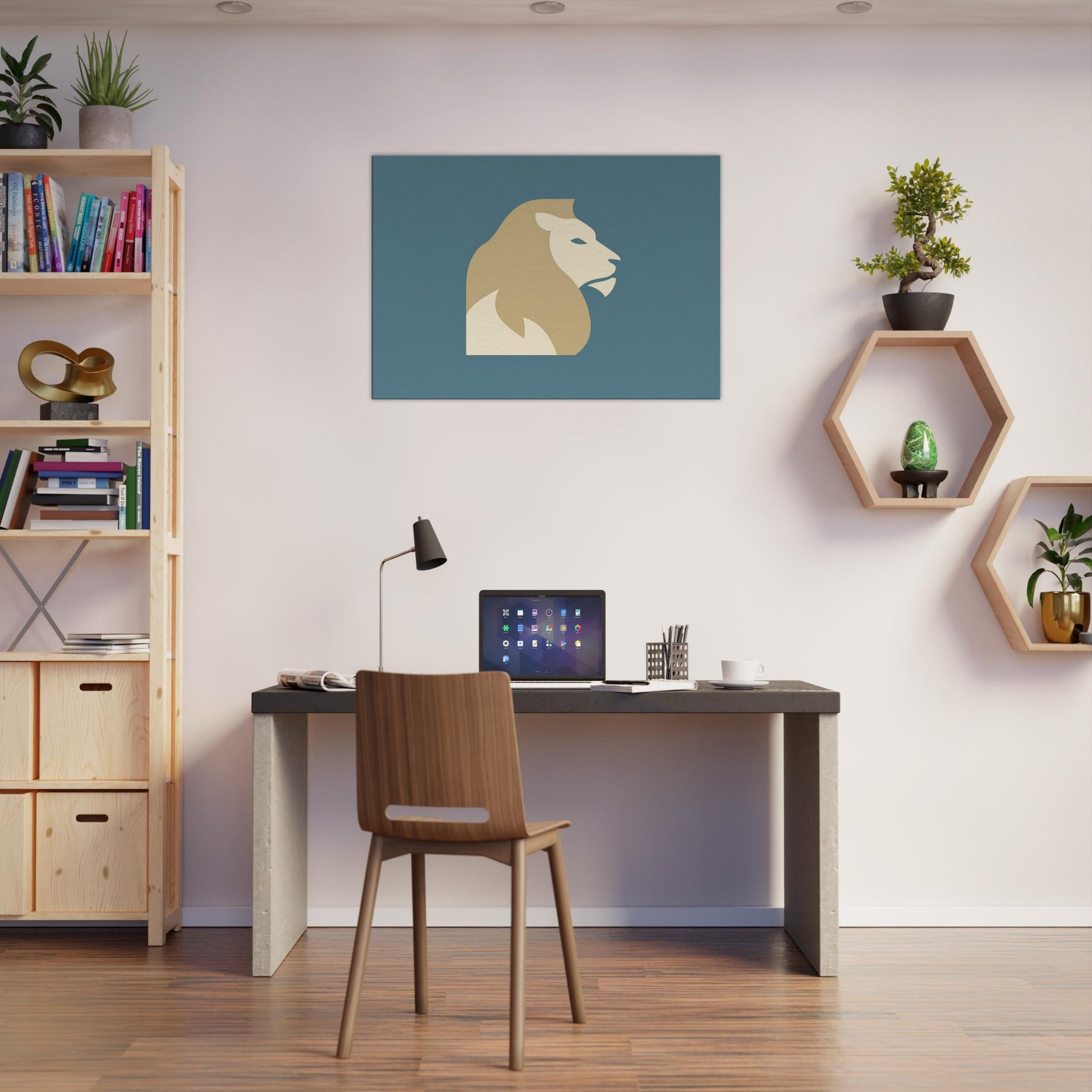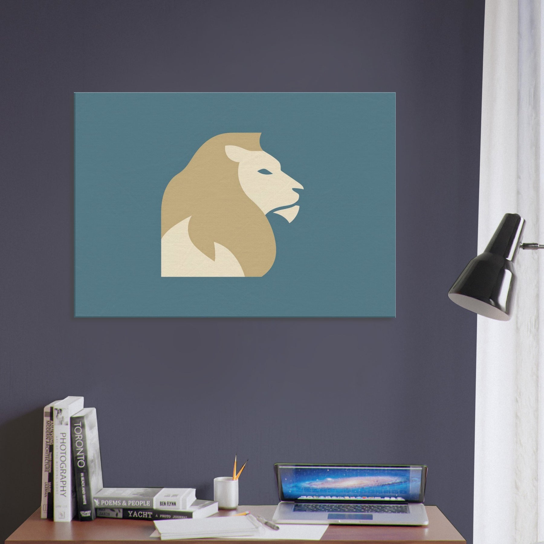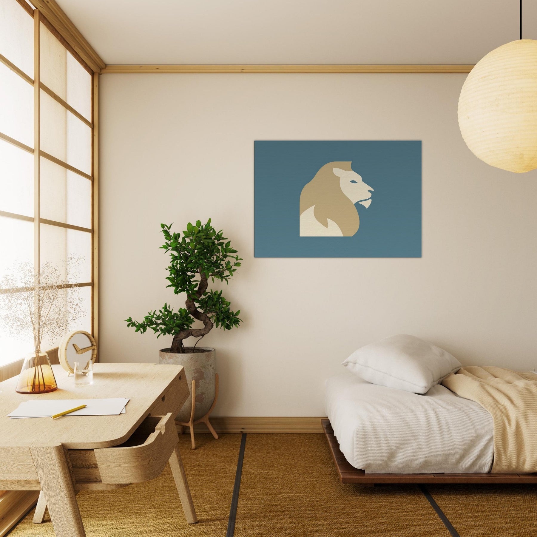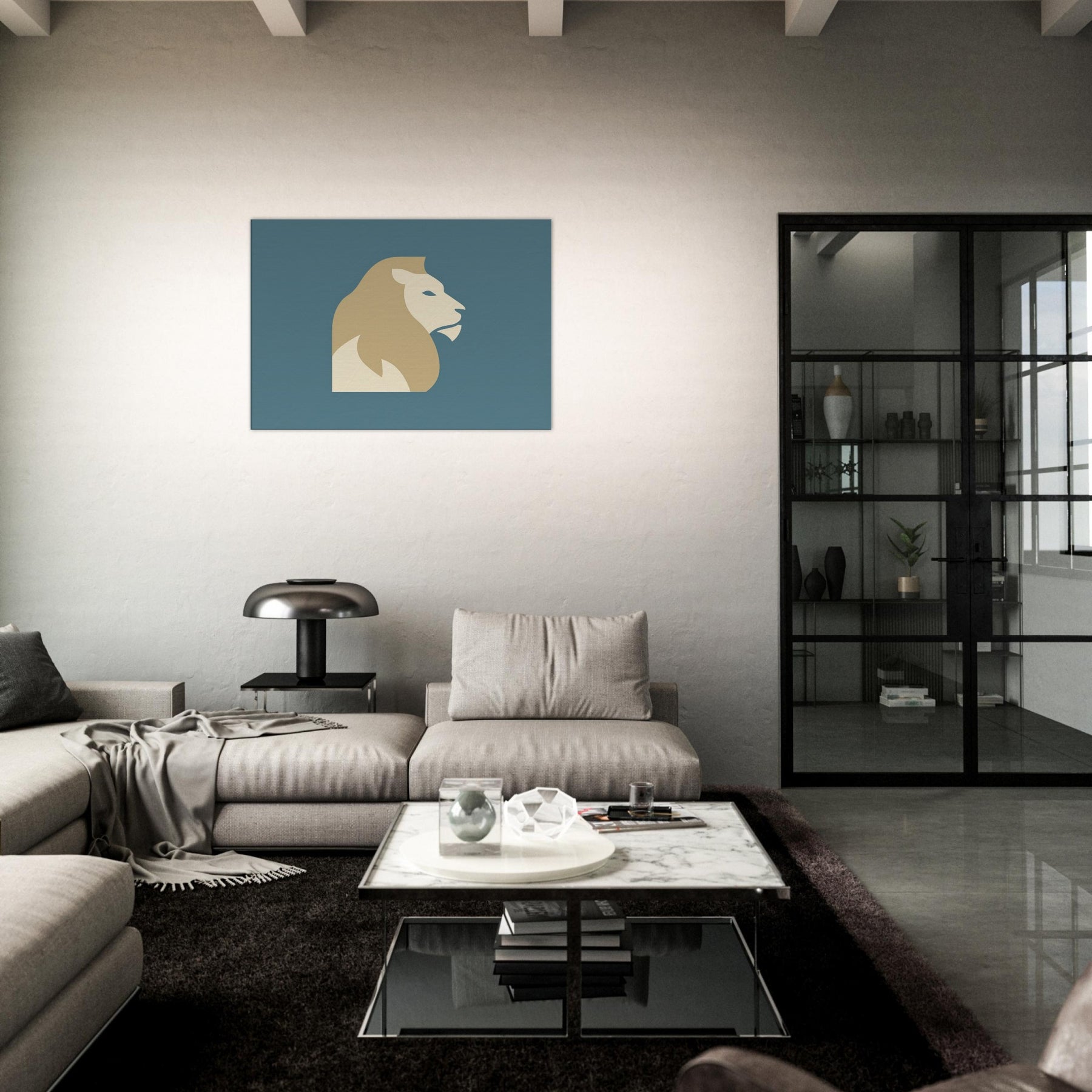 An elegant study in restraint, this minimalist lion commands the room with its calm, architectural silhouette. The warm beige mane against a cool teal field creates a poised contrast that feels both timeless and contemporary. Hung as a focal point, it elevates living spaces with quiet confidence, inviting long, contemplative looks. The Lion, rendered in clean planes, channels strength and grace without ornament, making it a versatile companion for sofas, desks, or gallery walls with a refined, serene atmosphere.