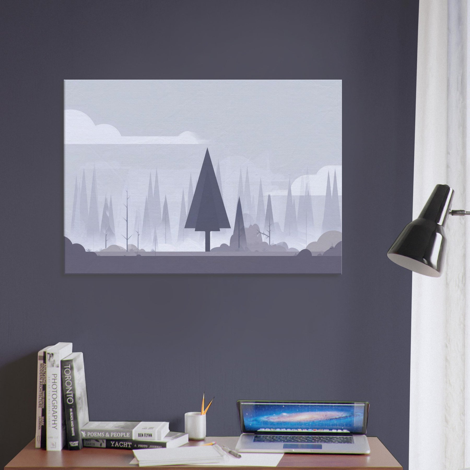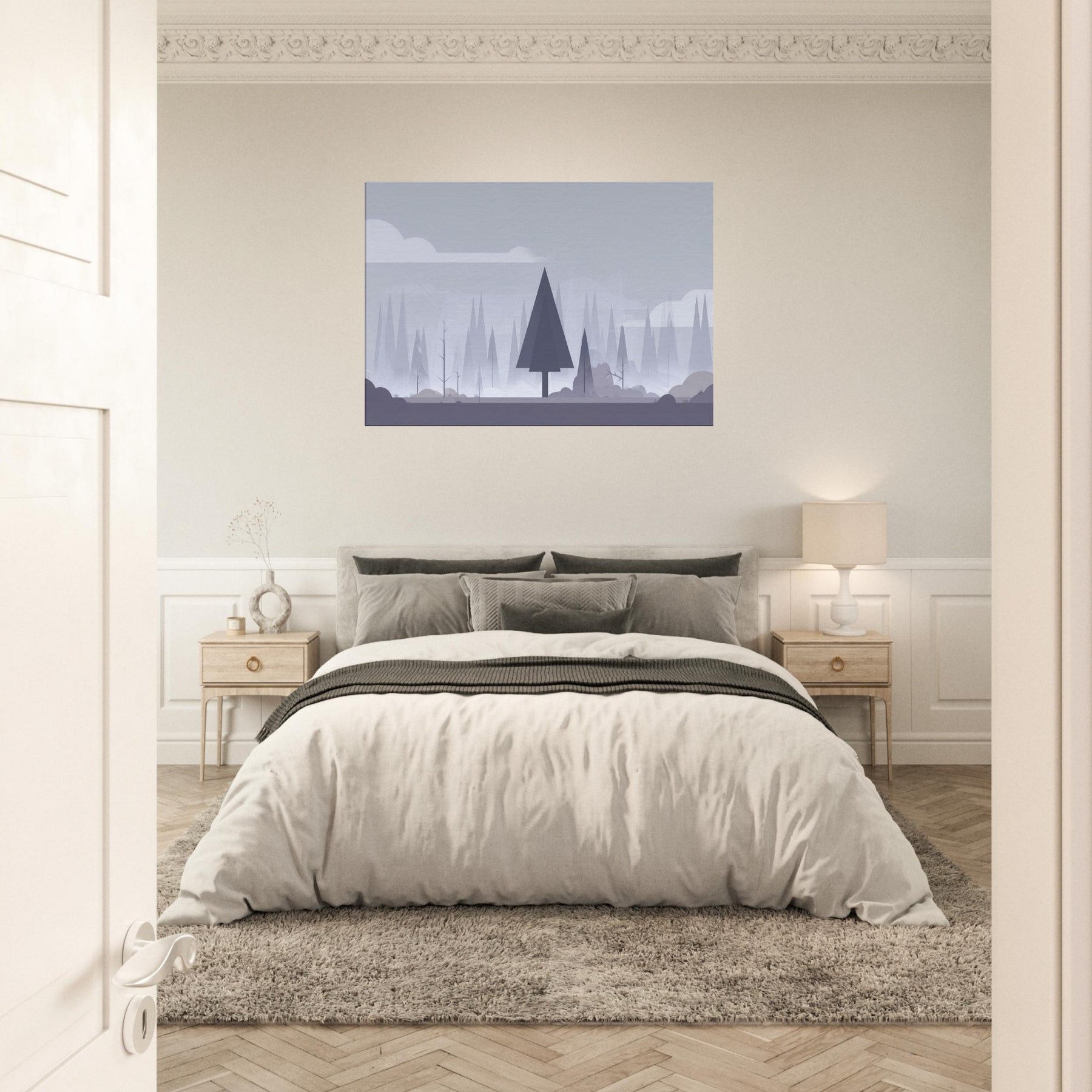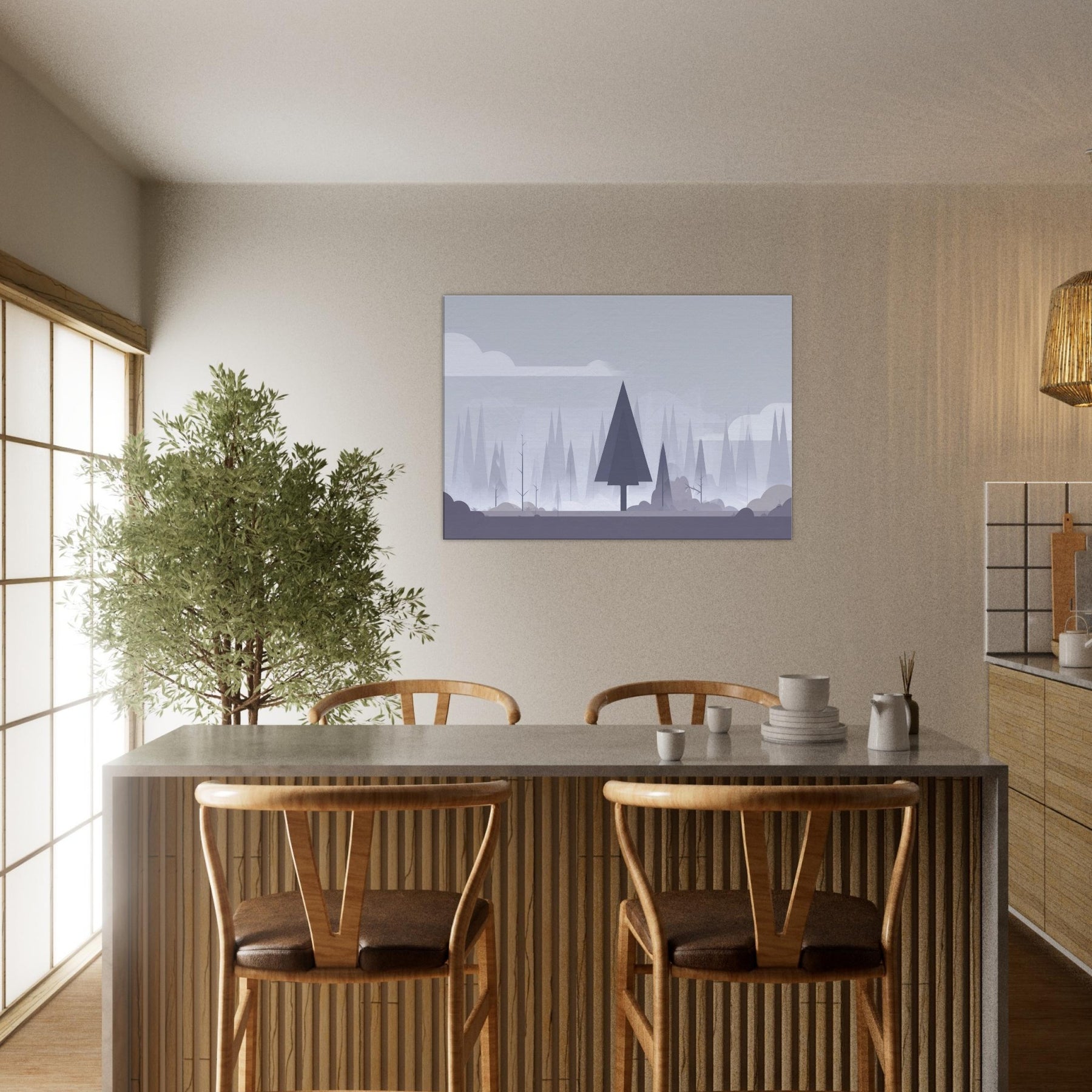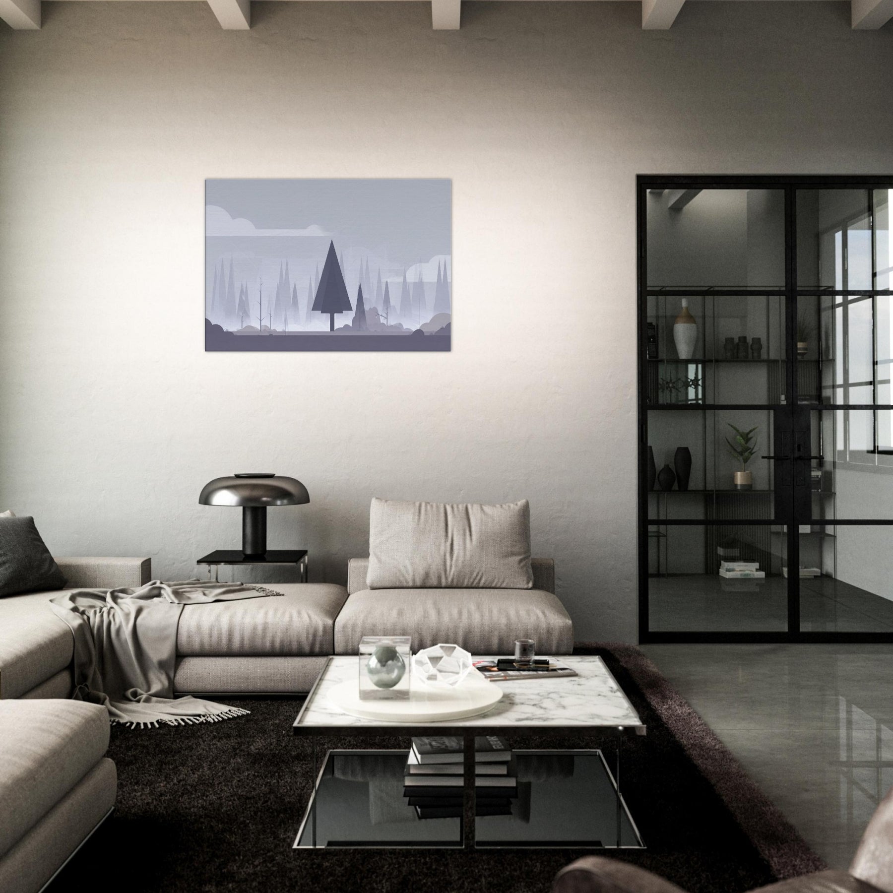 Step into a tranquil Snowy Forest where the hush of winter is distilled into clean lines and soft shadows. This minimalist scene invites quiet contemplation, smoothing the edges of your living room with cool tones and generous negative space. The monochrome palette frosty blues and gentle grays wraps the room in calm, turning a busy day into a still moment. Perfect for a serene focal point or a subtle backdrop to daily rituals.