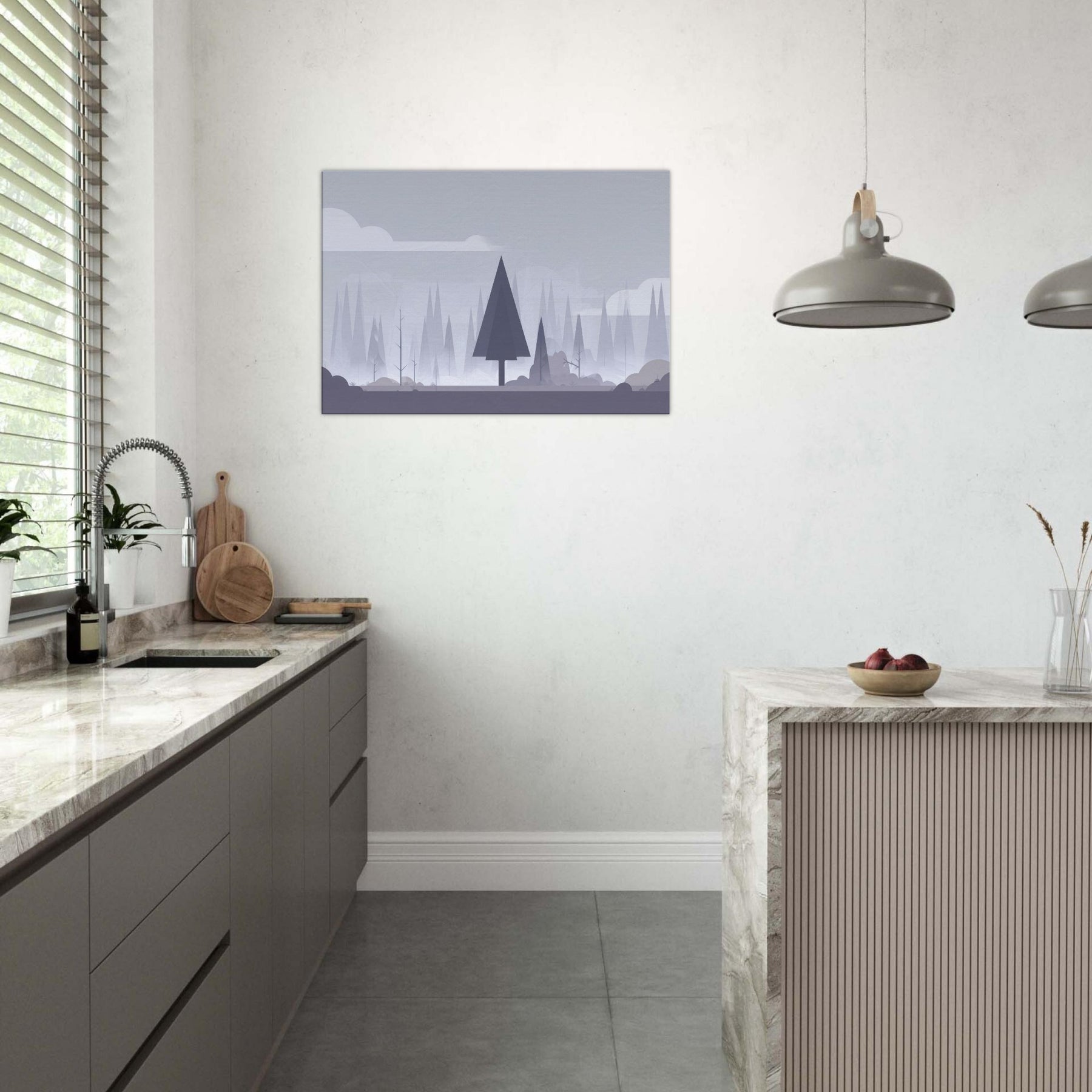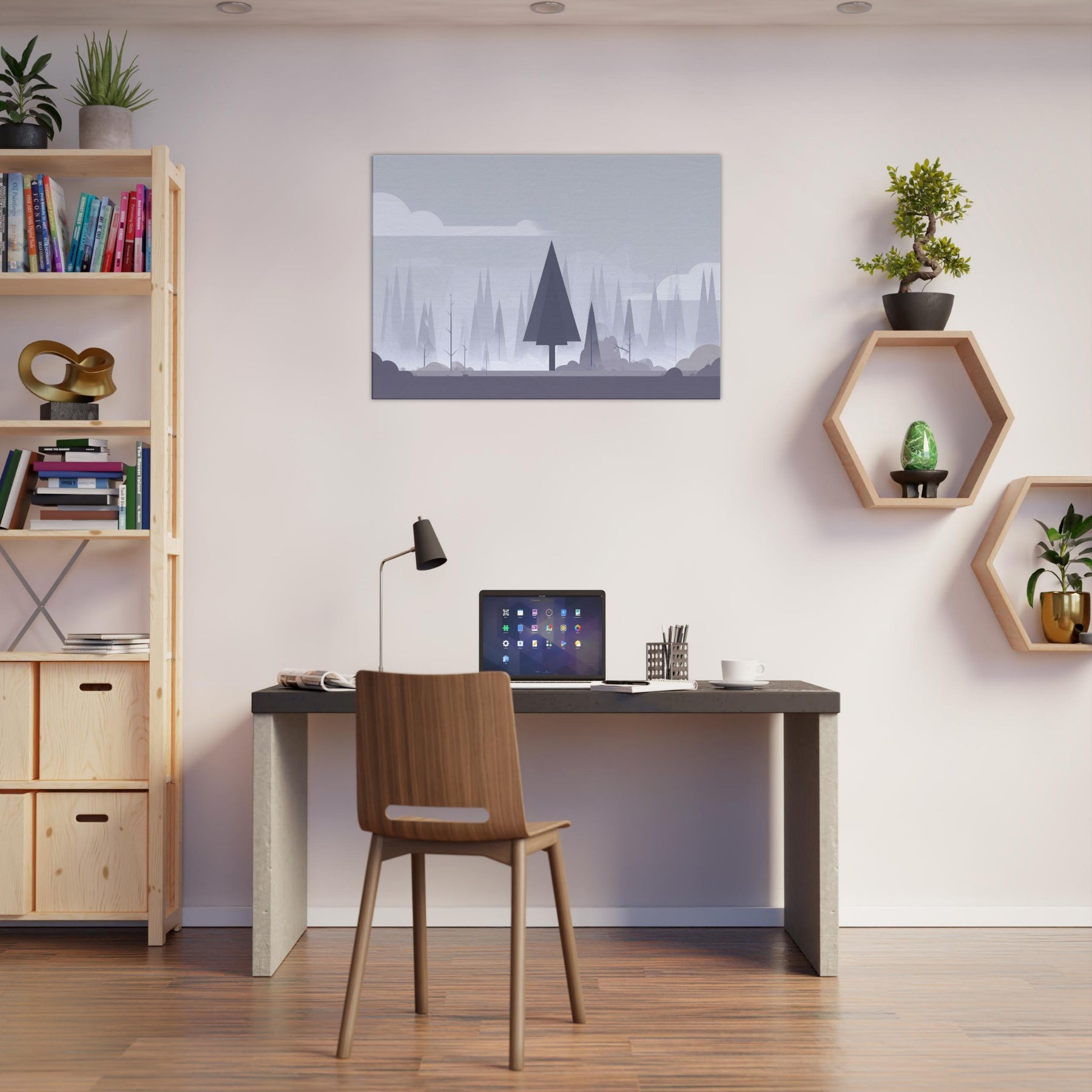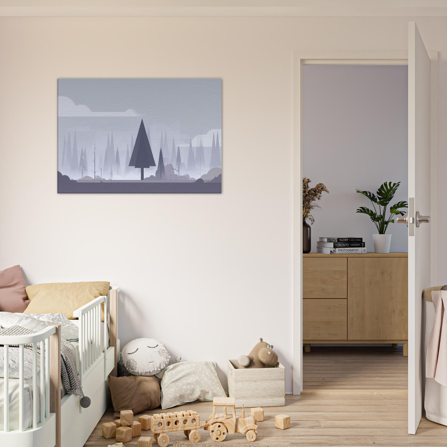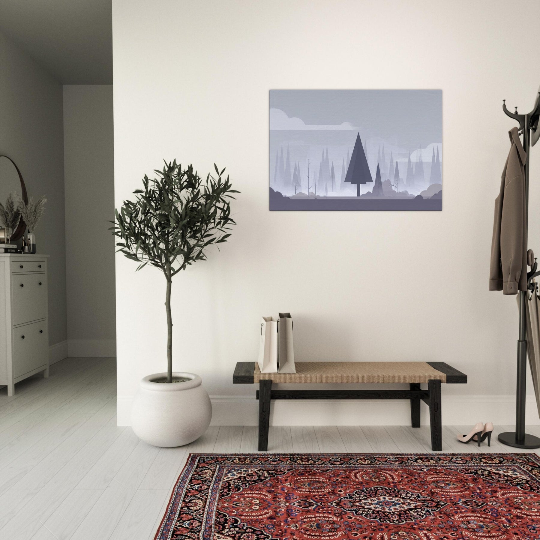 Step into a tranquil Snowy Forest where the hush of winter is distilled into clean lines and soft shadows. This minimalist scene invites quiet contemplation, smoothing the edges of your living room with cool tones and generous negative space. The monochrome palette frosty blues and gentle grays wraps the room in calm, turning a busy day into a still moment. Perfect for a serene focal point or a subtle backdrop to daily rituals.