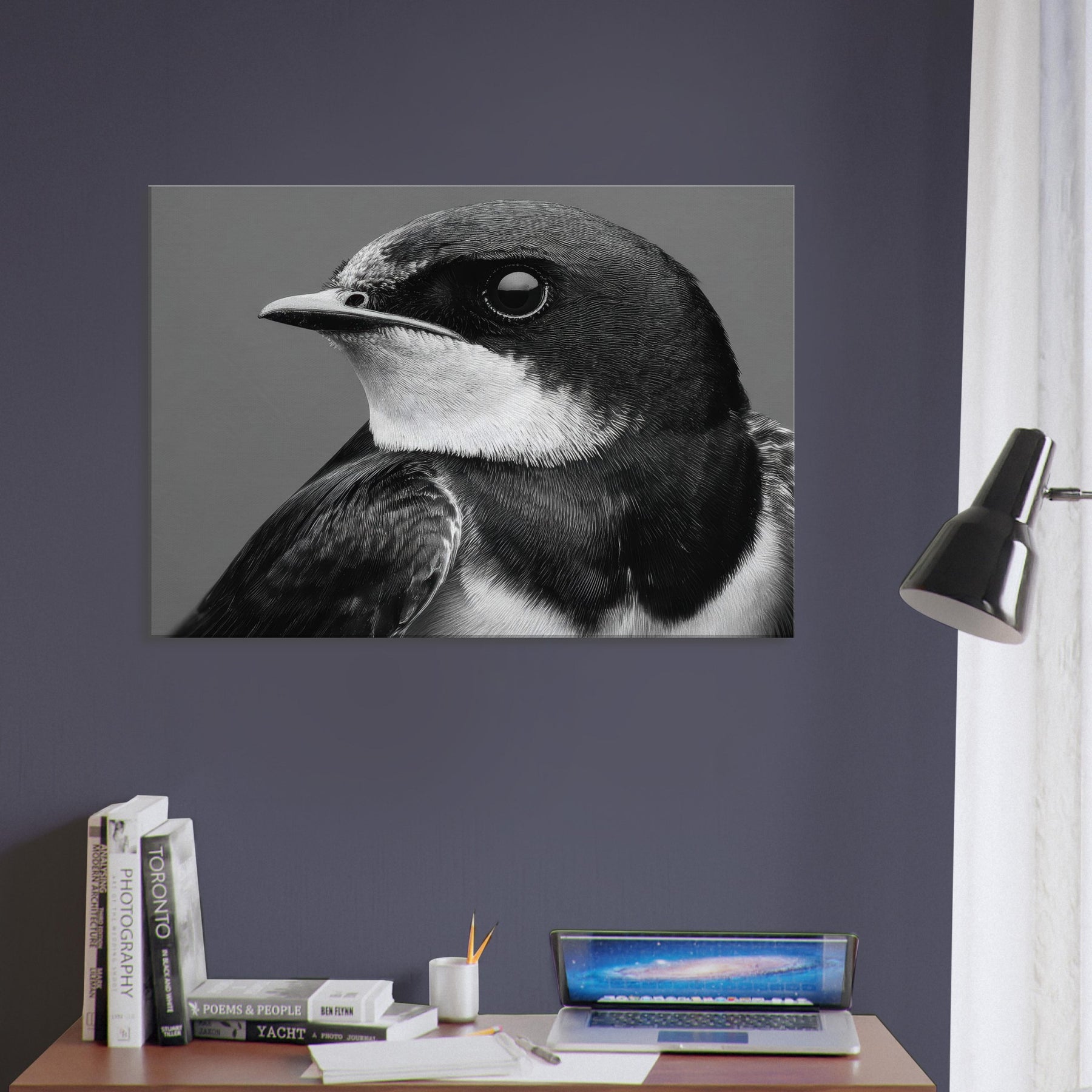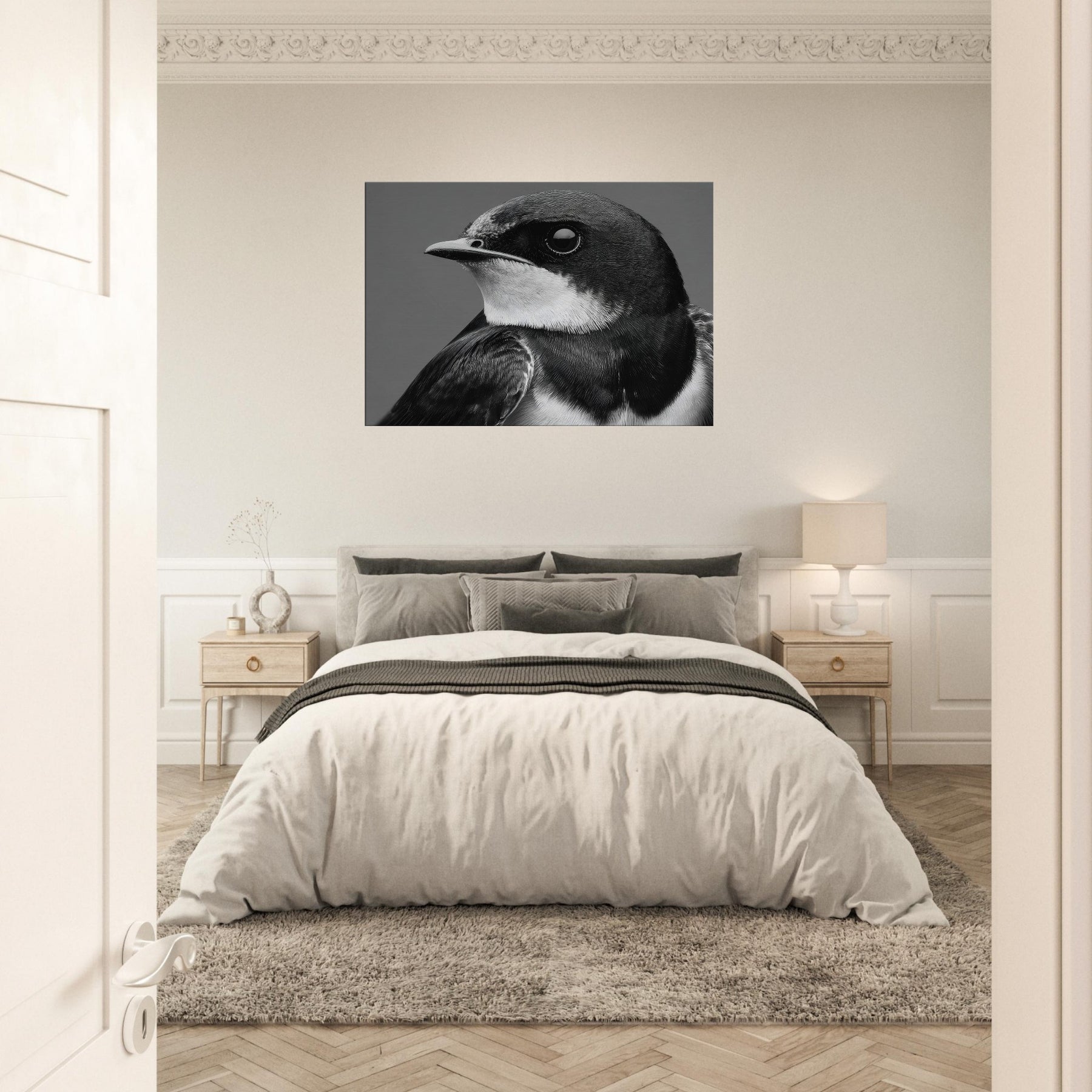 This Swallow , rendered in crisp black and white, captures a moment of poised grace and quiet momentum. The contrast and delicate feather textures invite a slow, contemplative gaze, turning your wall into a quiet window. Ideal for a living room or bedroom, it complements both playful textures and clean, modern furnishings, adding a touch of refined motion without shouting. The artwork brings clarity, calm, and a hint of wonder, elevating spaces with timeless elegance and a subtle, living energy.