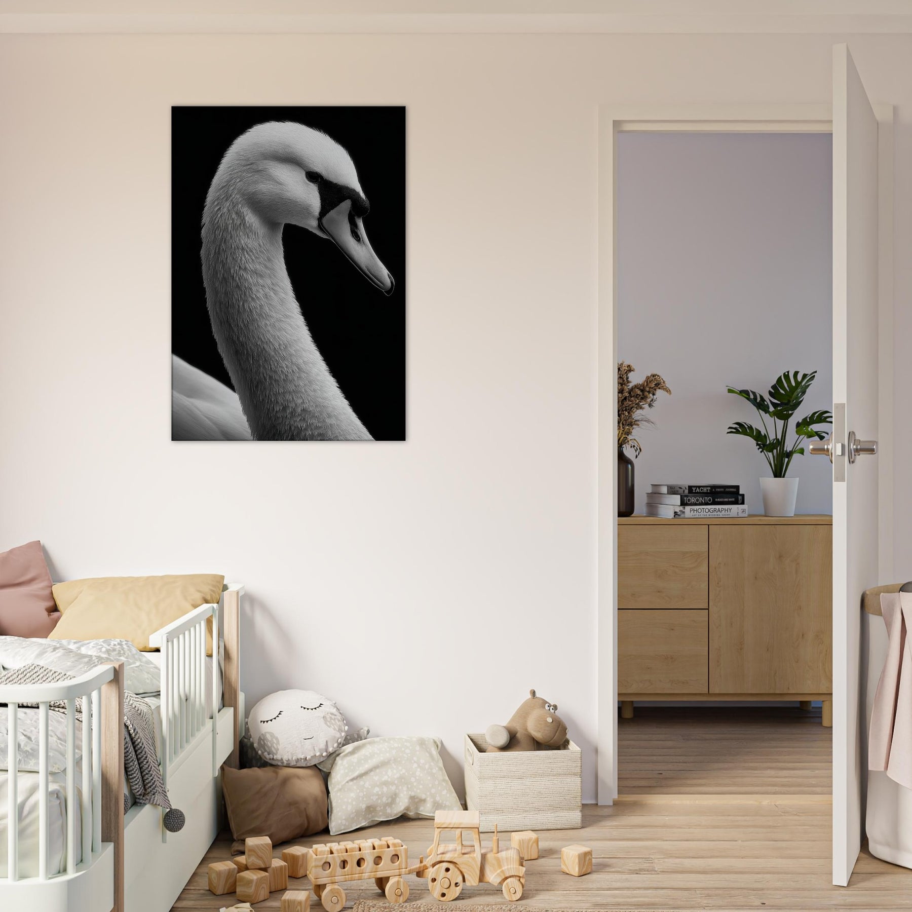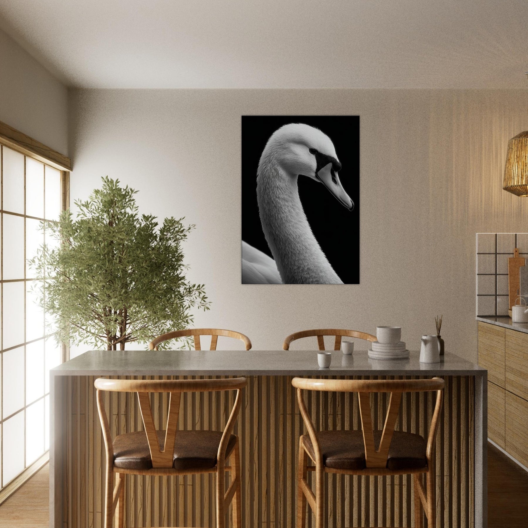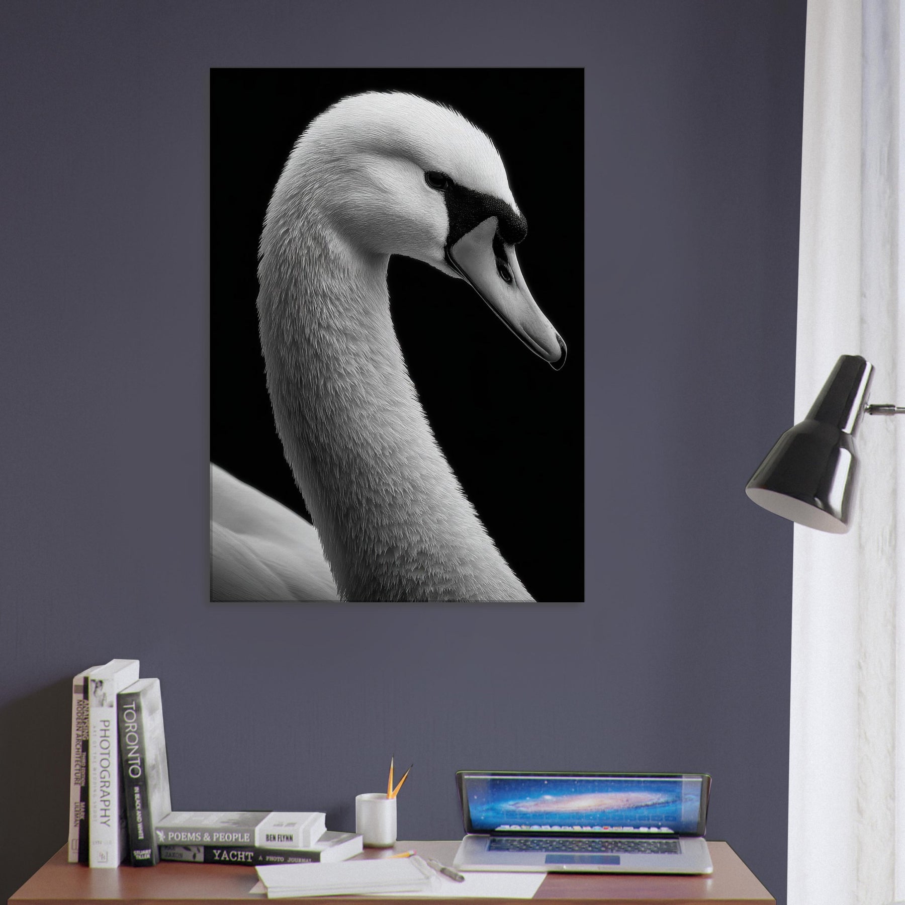 A quiet study in contrast, this black and white composition centers a graceful Swan whose slender neck curves like a whispered line. The tactile grain of the feathers, captured in soft grayscale, invites a closer look and a slower breath. Hung in a living room or study, it casts a serene, cinematic mood a focal point that enhances clean lines, muted palettes, and natural light. Let this Swan transform everyday space into a sanctuary of chic restraint and quiet wonder.