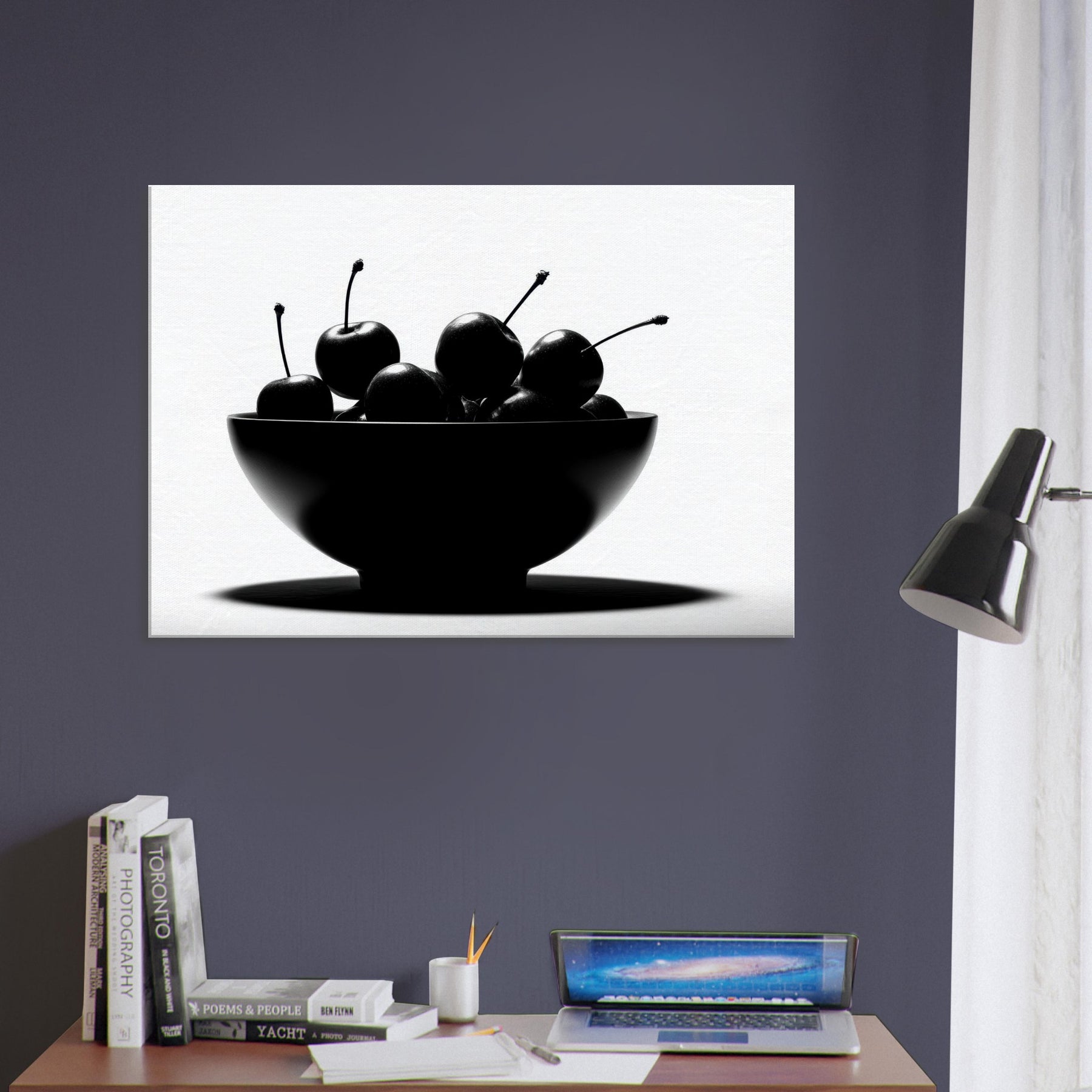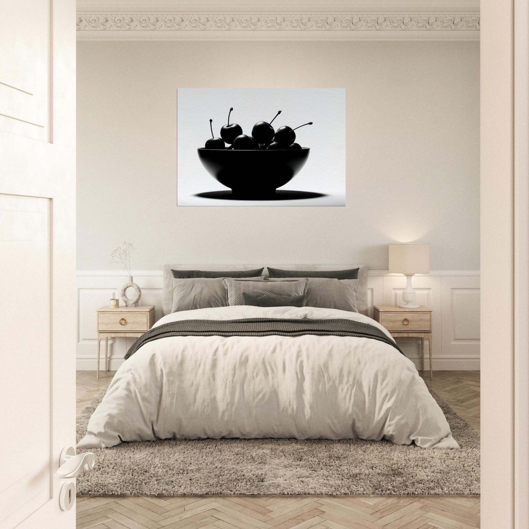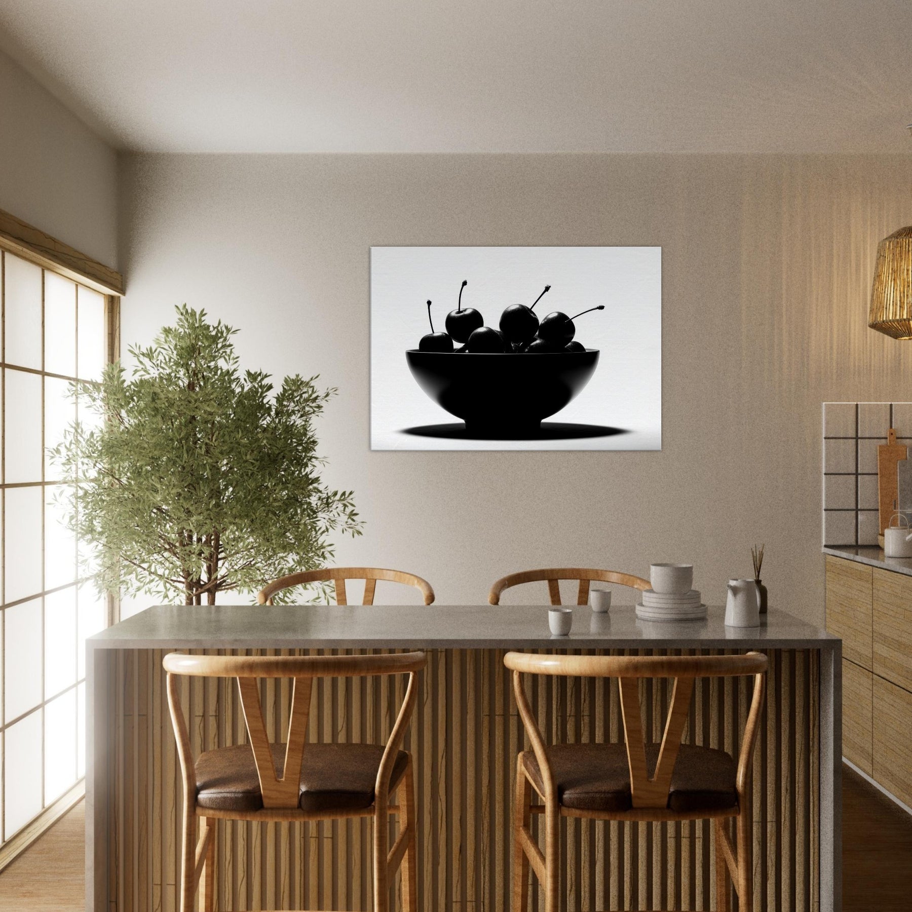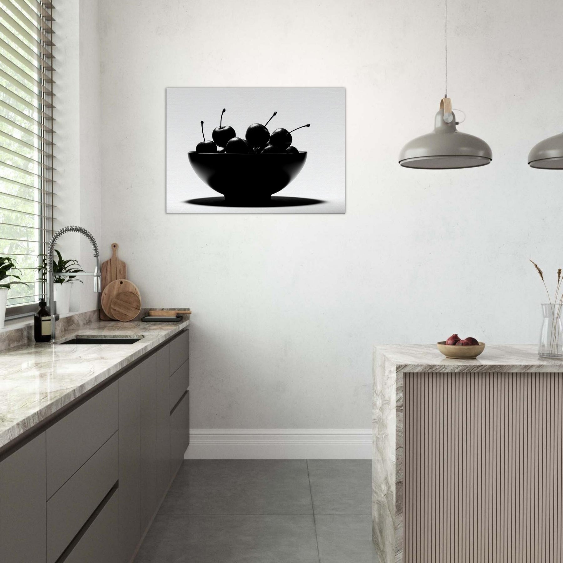 Within a clean, luminous frame, a Fruit Bowl becomes a study in shape and shadow. This striking image gathers glossy fruit in a single sculptural form, each stem arcing like a quiet note in a monochrome chorus. The high contrast light carves edges, leaving room for imagination to wander between appetite and art. Hang this piece where sunlight and stillness meet, and let the Fruit Bowl scene ground your living space with a timeless, sensorial calm.