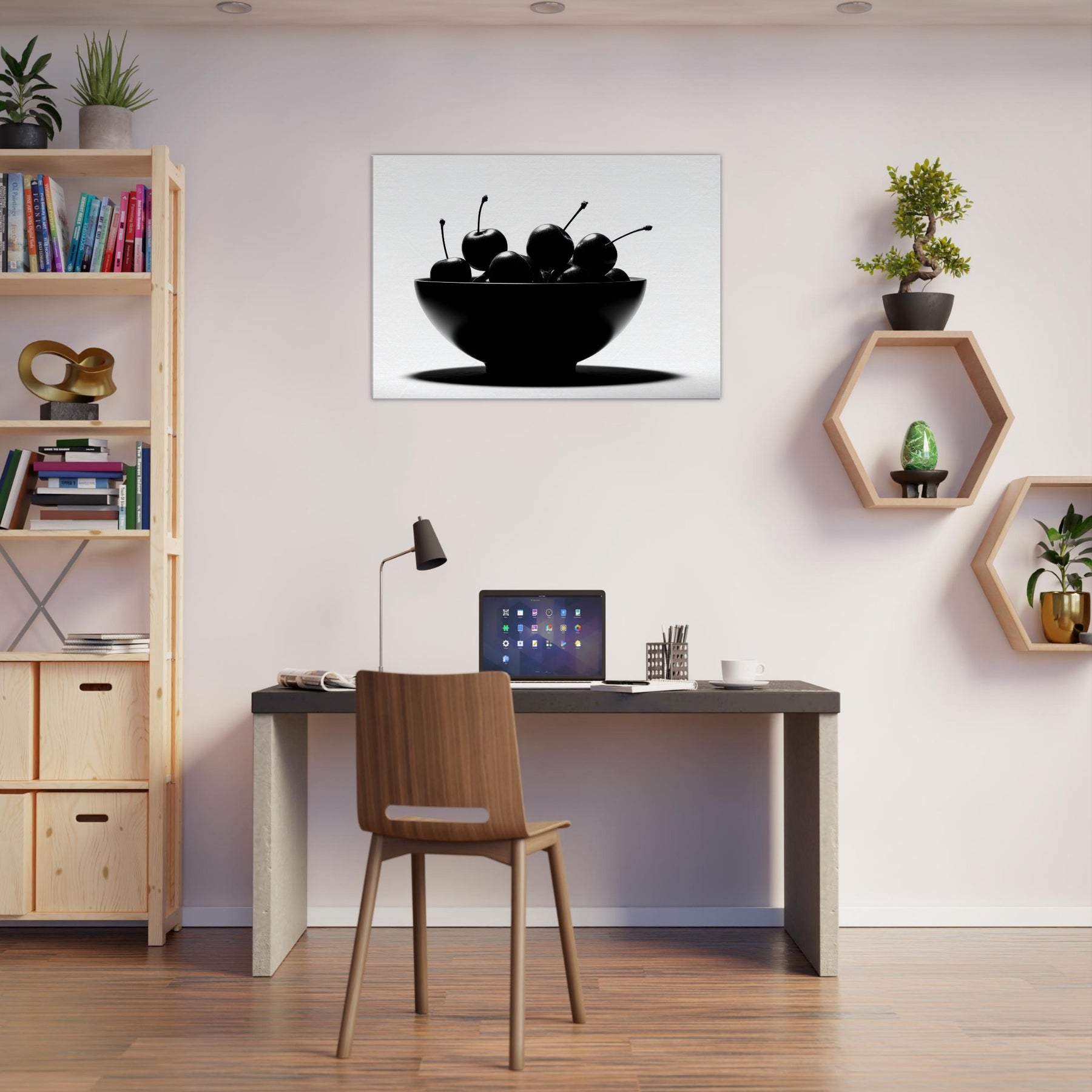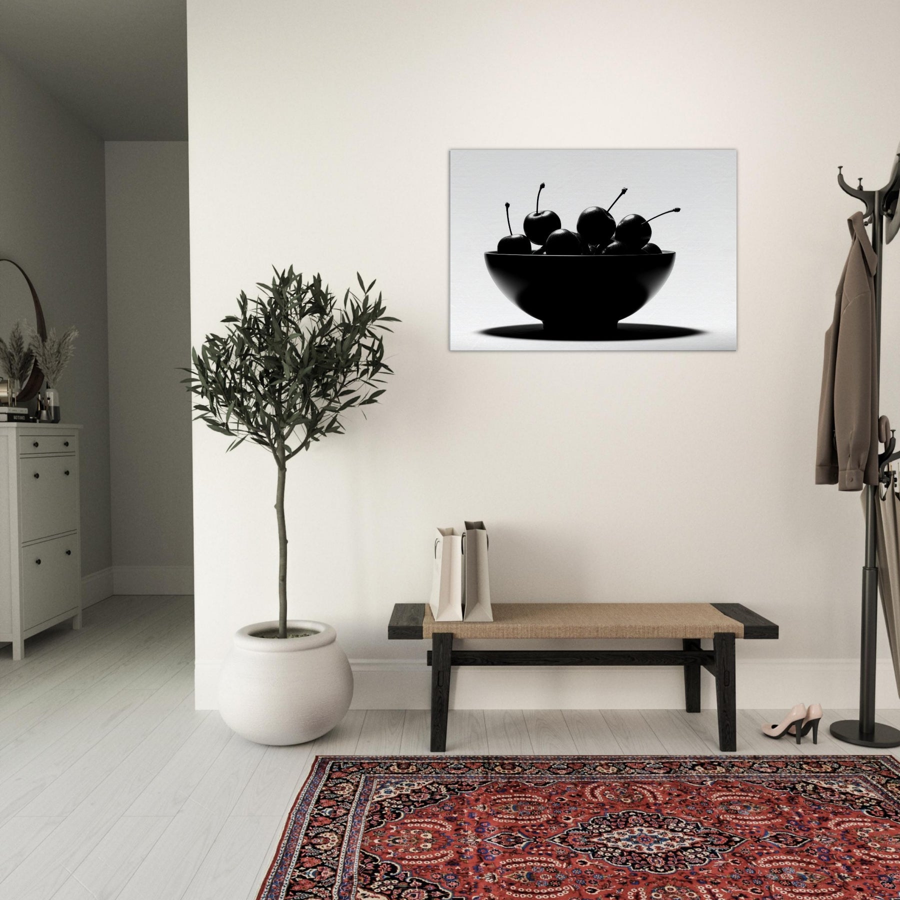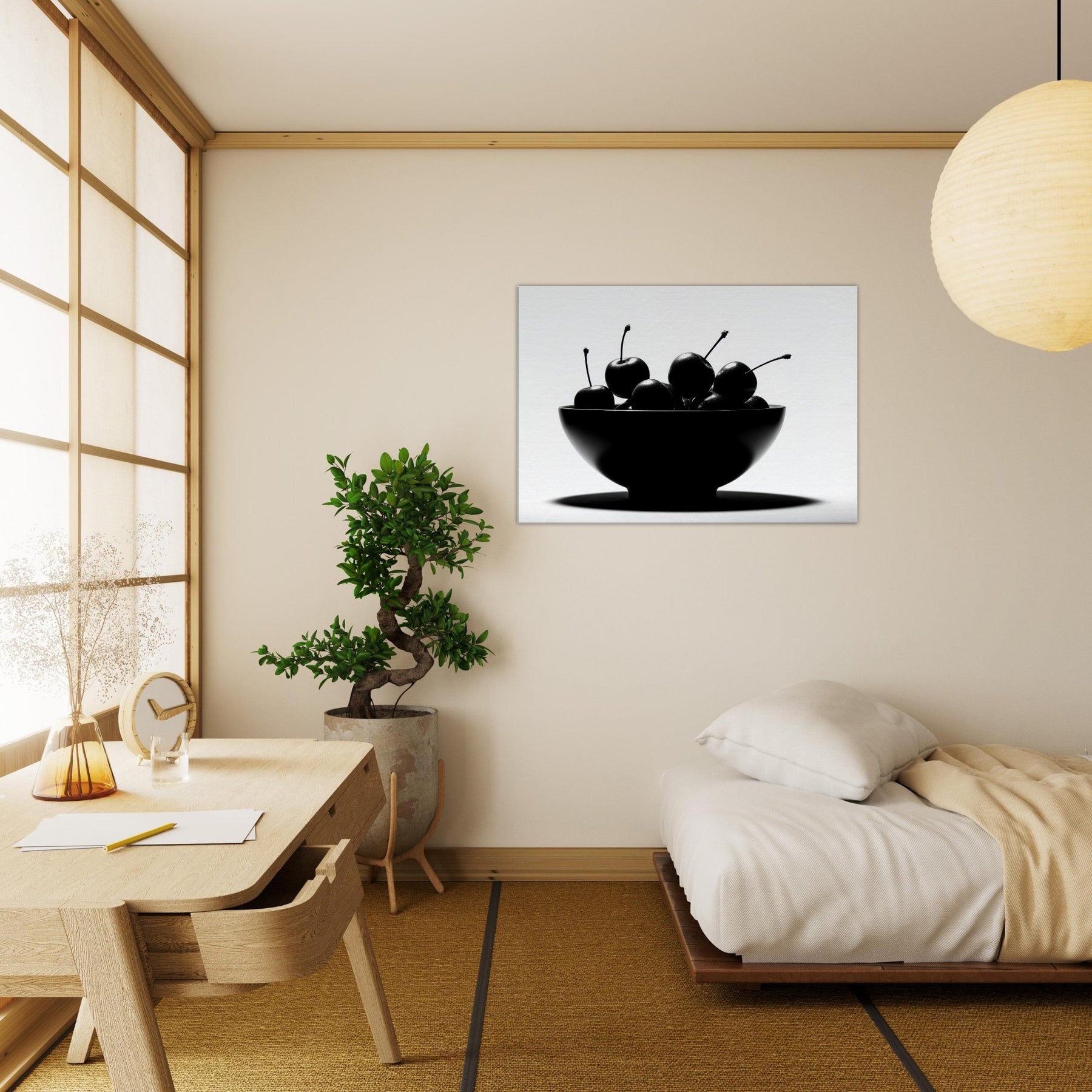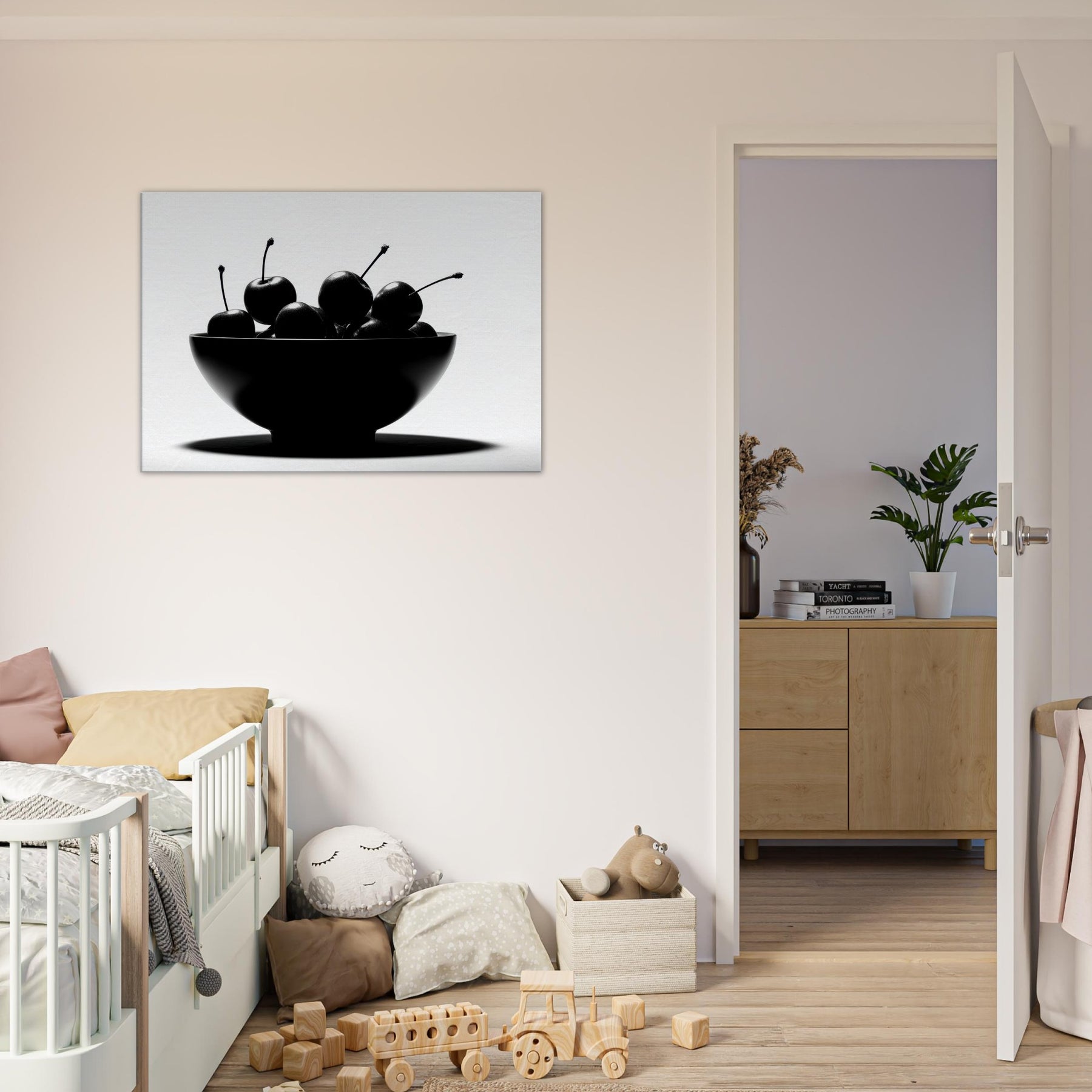Within a clean, luminous frame, a Fruit Bowl becomes a study in shape and shadow. This striking image gathers glossy fruit in a single sculptural form, each stem arcing like a quiet note in a monochrome chorus. The high contrast light carves edges, leaving room for imagination to wander between appetite and art. Hang this piece where sunlight and stillness meet, and let the Fruit Bowl scene ground your living space with a timeless, sensorial calm.