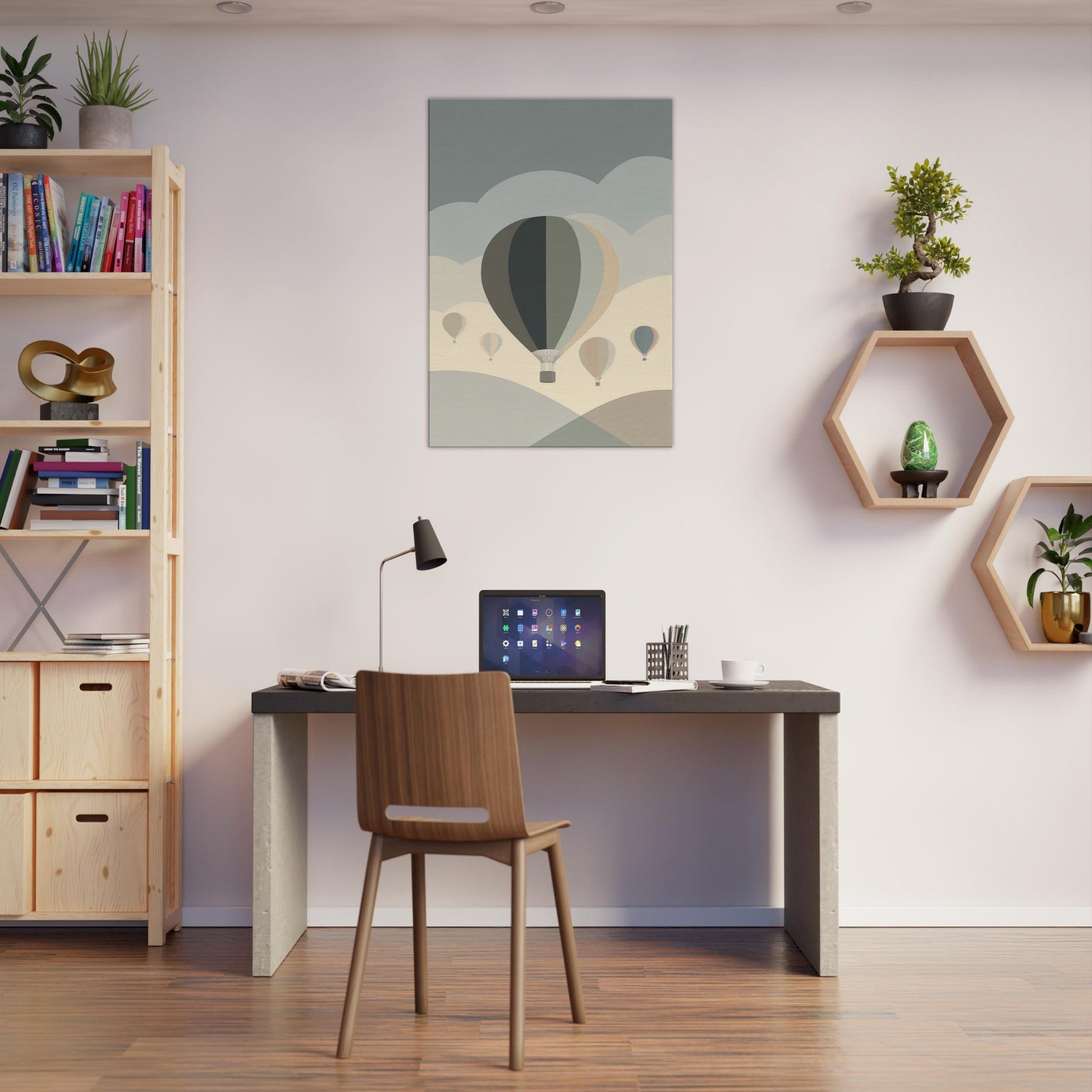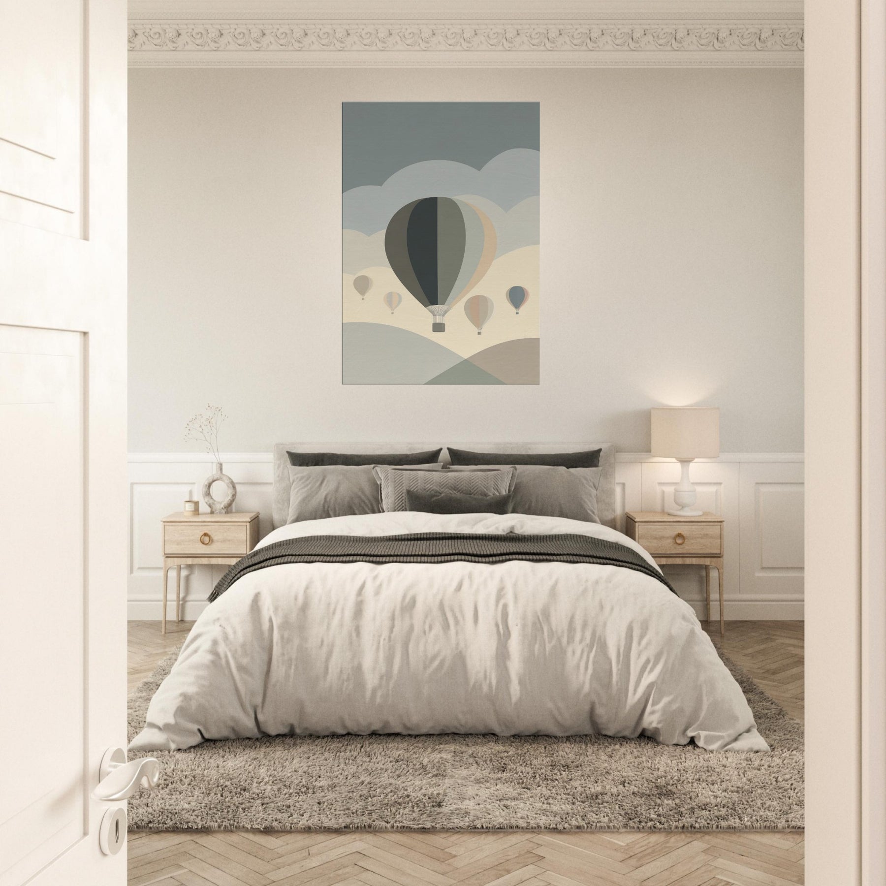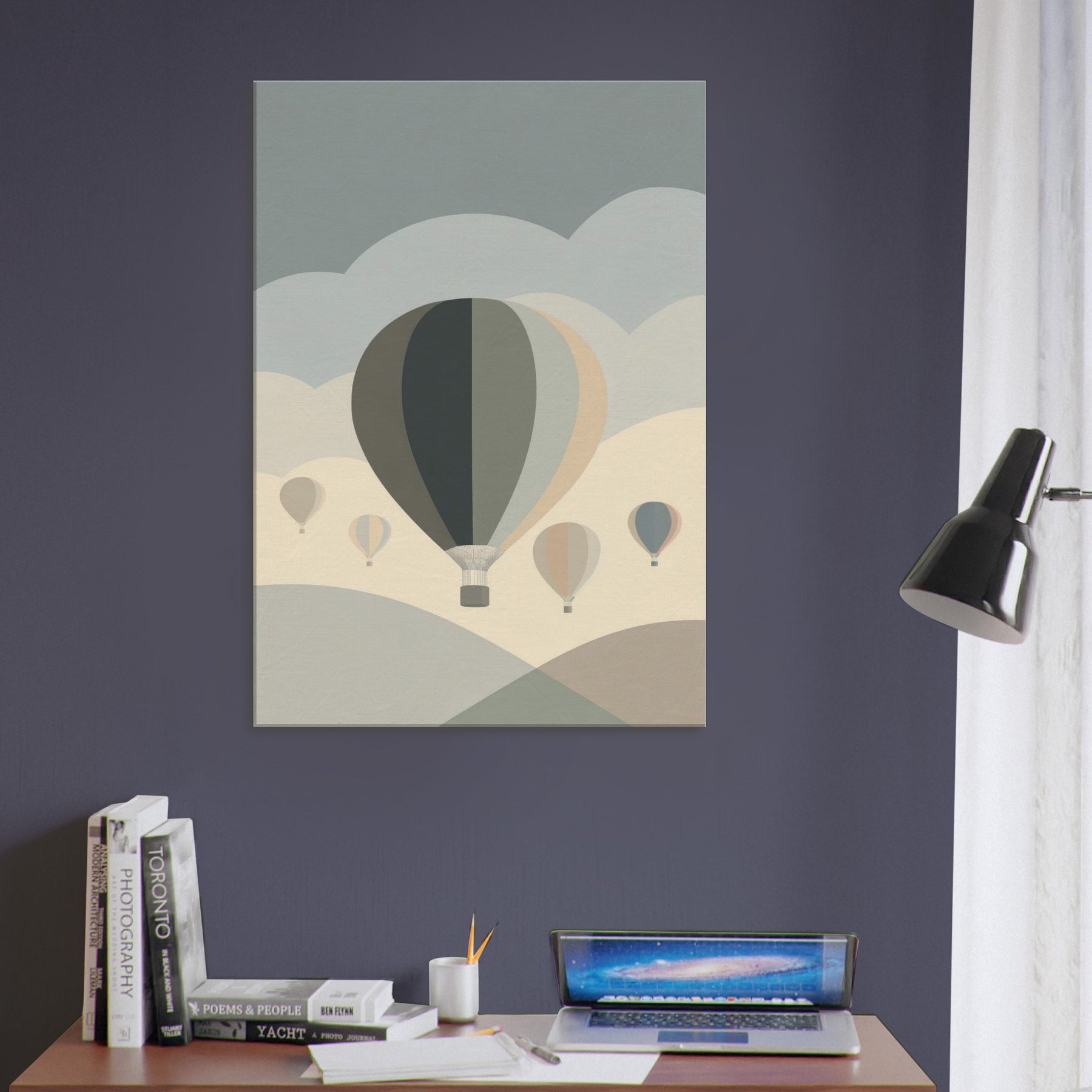 The primary subject, Hot Air Balloons, drifts across a softly weighted horizon in a minimalist ballet of muted tones. This calm composition invites quiet reflection, as if the room itself were catching a gentle breeze. The dissolves into serene curves and pale gradients, letting the balloons become meditations on ascent and release. Hang this piece where light lingers above a sofa, in a hallway, or by a bed to soften edges, invite breath, and elevate everyday living with airy, nature inspired grace.