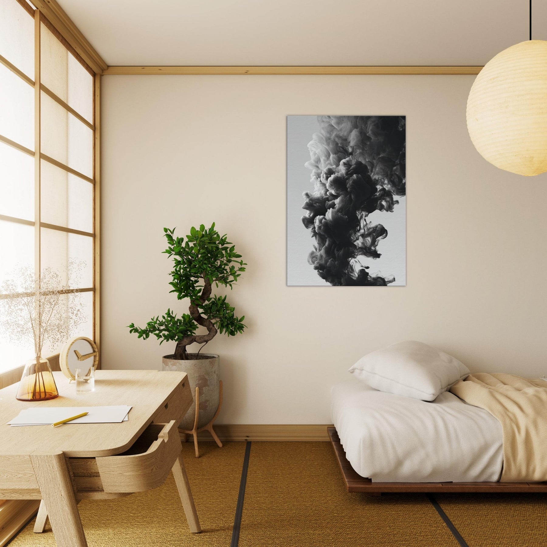 Let a quiet tide of ink transform your living room into a sanctuary of contemplation. This piece moves like a breath through glass gravity defying and softly luminous in grayscale.
