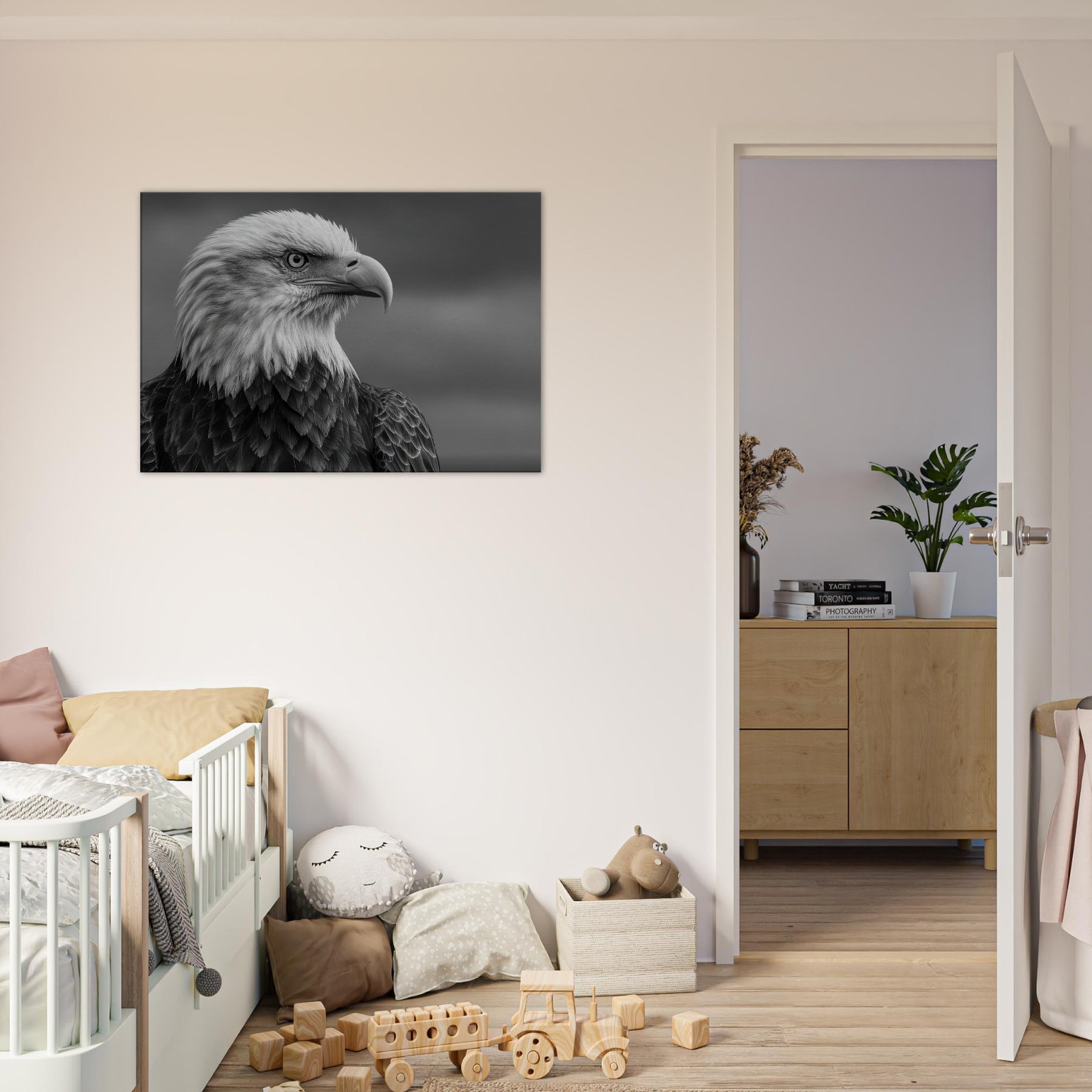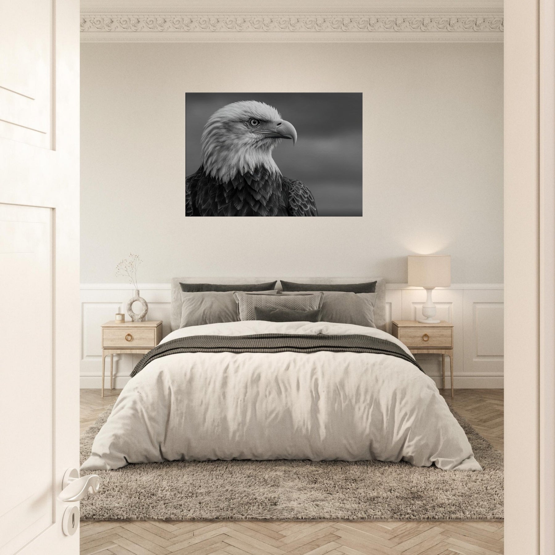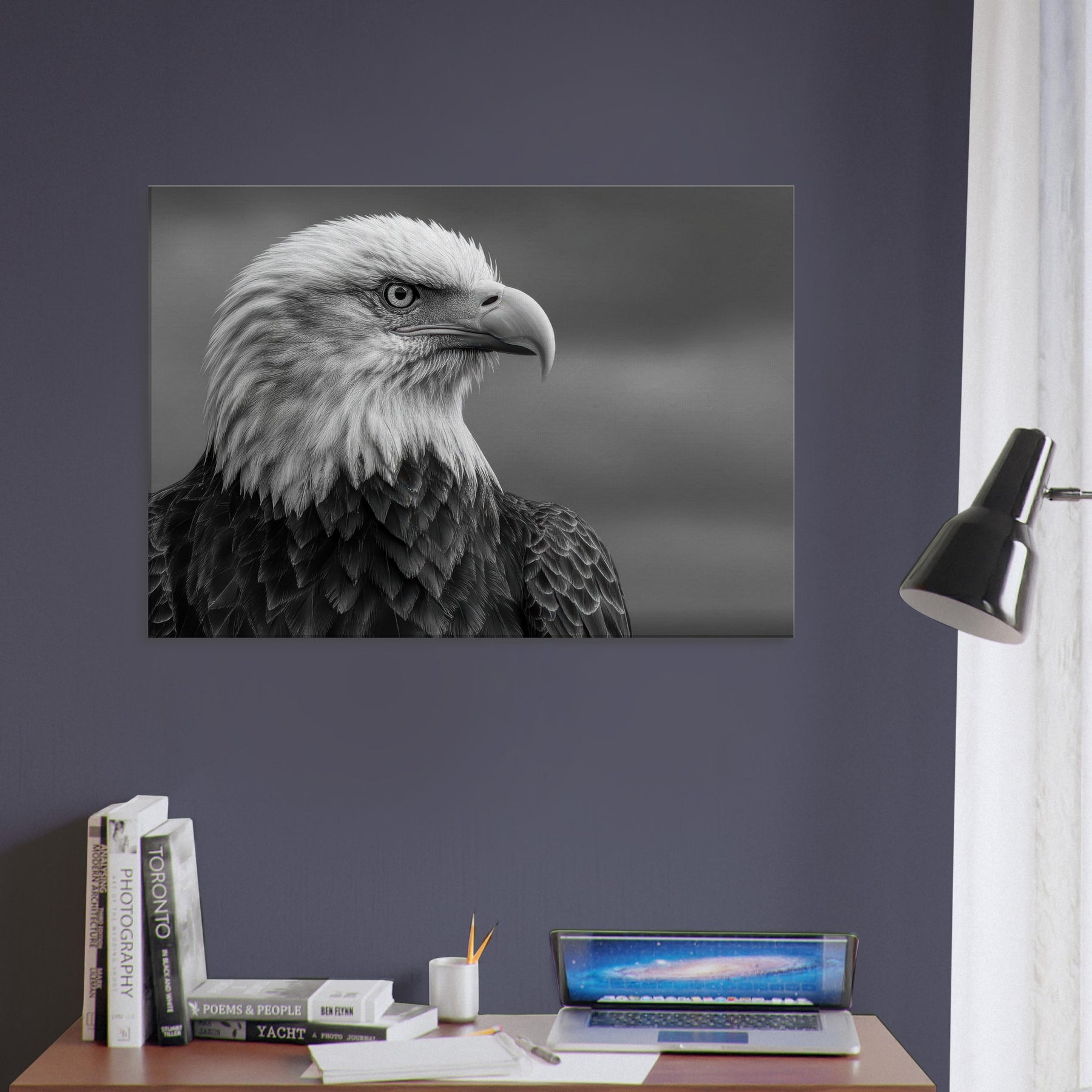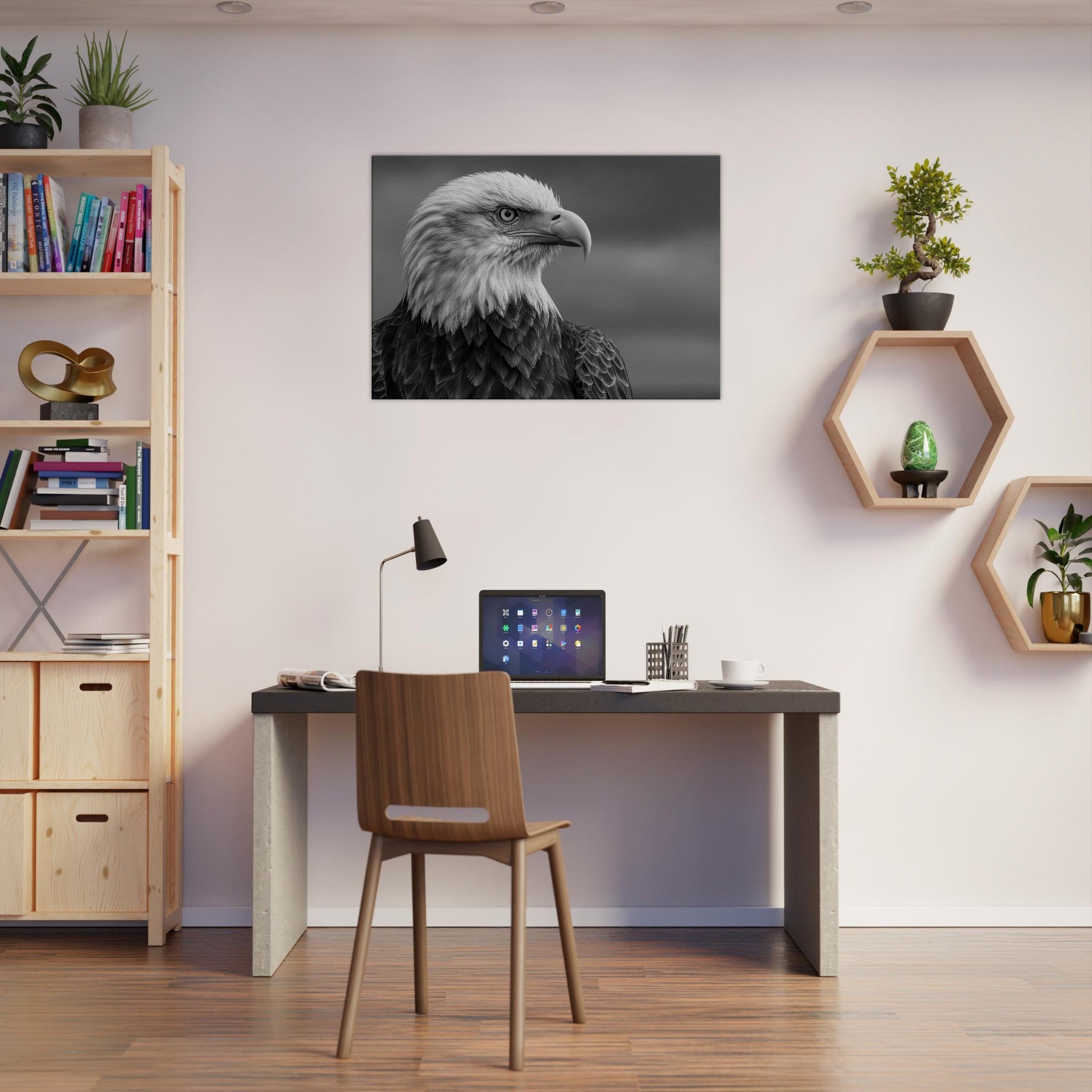 Where majesty meets monochrome, the Eagle commands the frame with quiet authority. The feather textures, rendered in crisp grayscale, invite the eye to linger on every contour and the glint of light on its beak.
